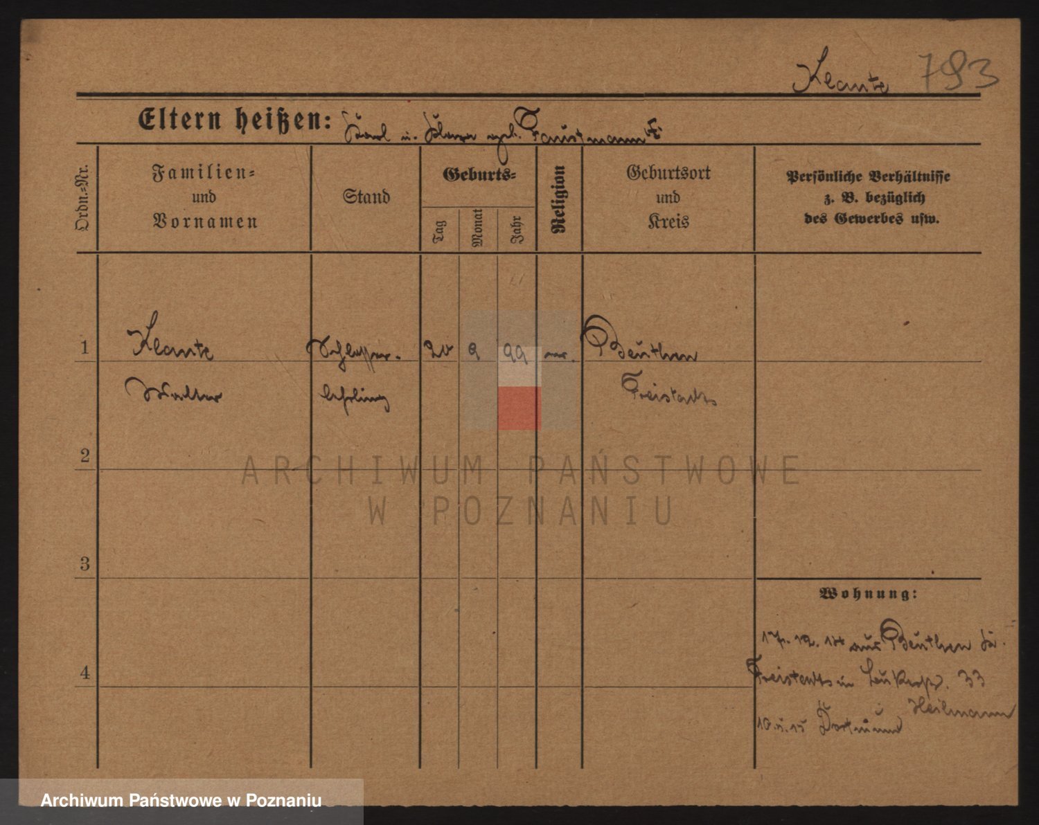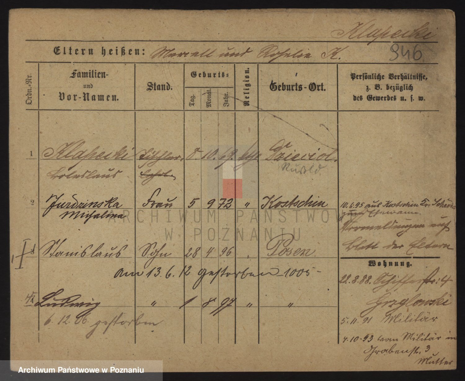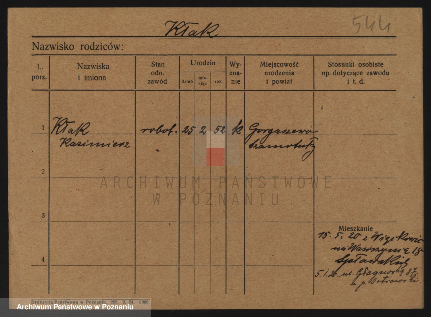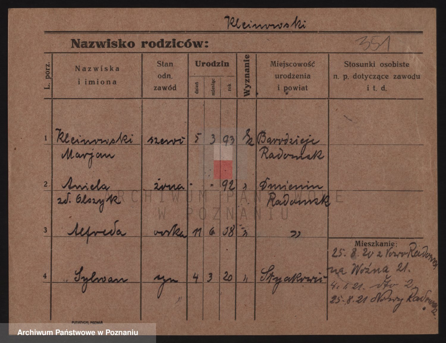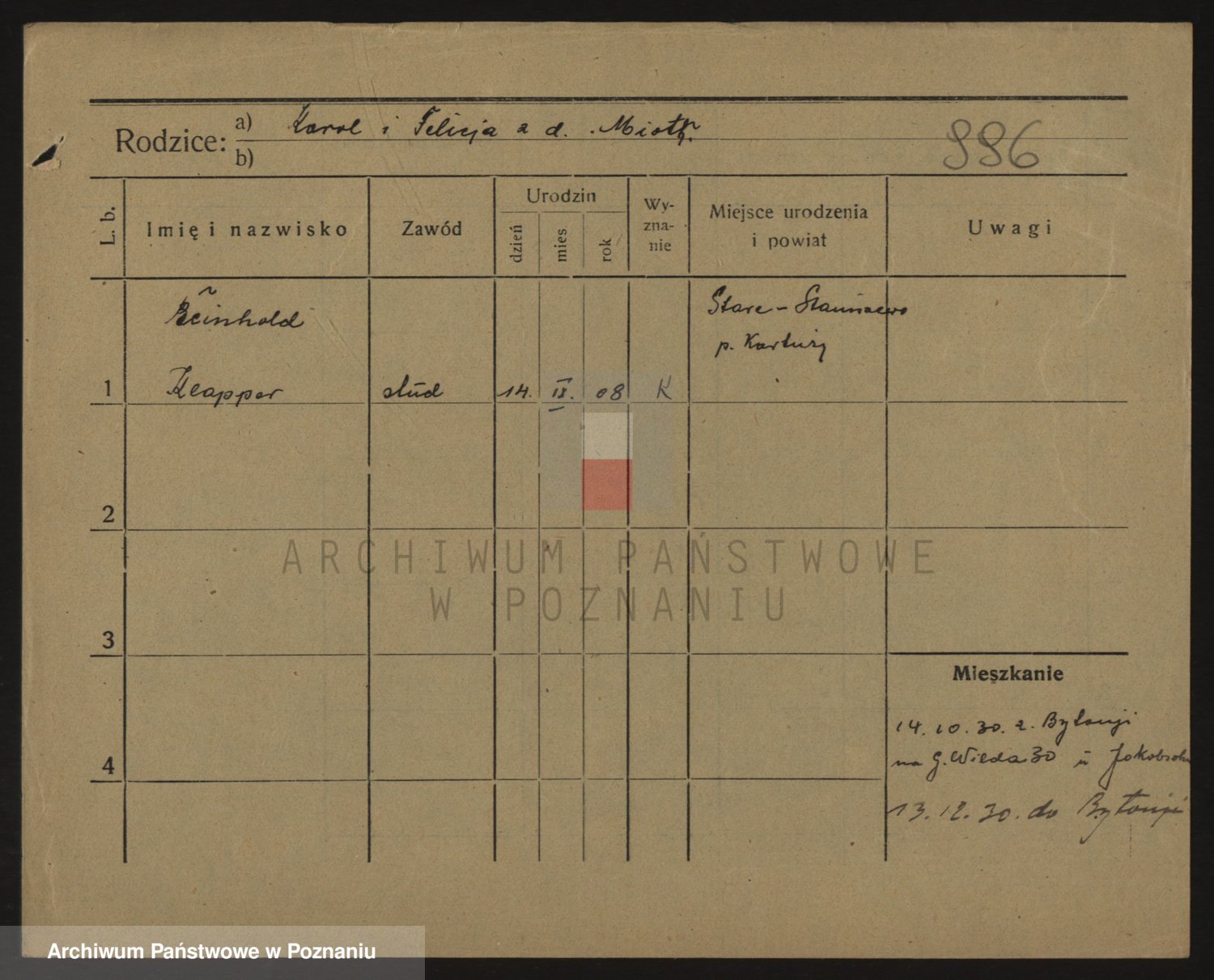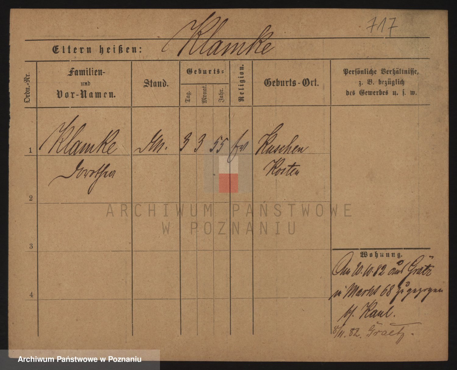 Podgląd karty osobowej dostępny jest po kliknięciu na nazwisko lub ikonkę karty. Można dokonywać powiększenia (ikony na górze) lub przechodzić między kolejnymi skanami (strzałki po bokach).