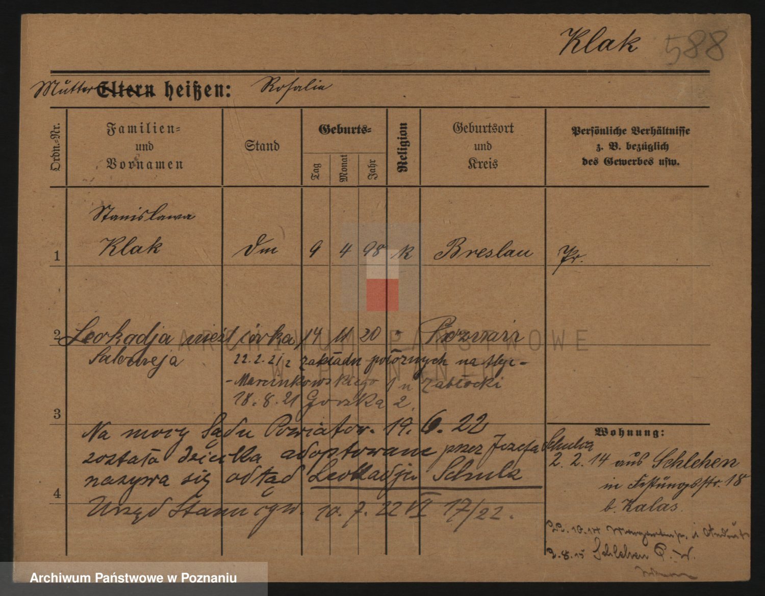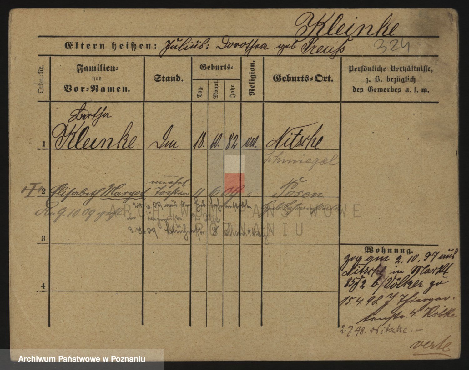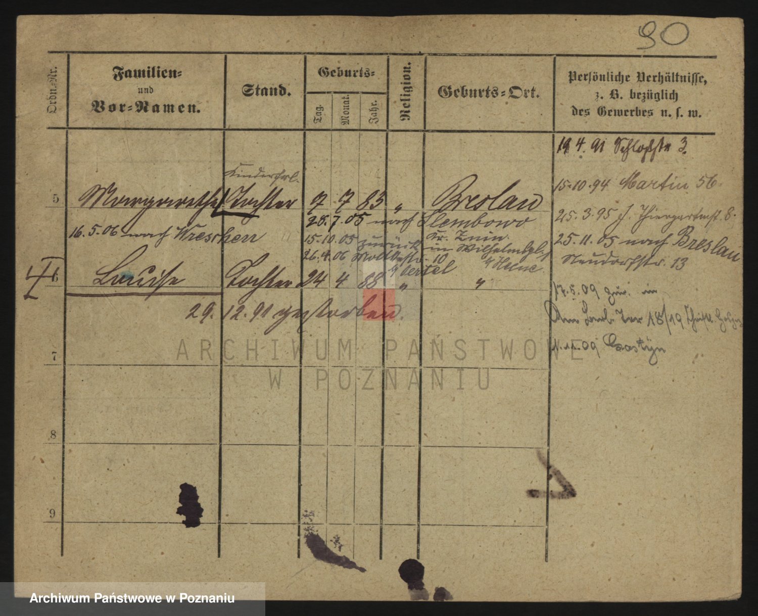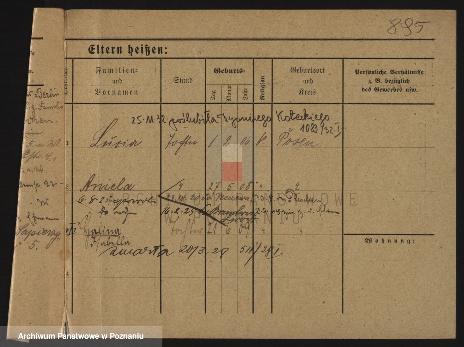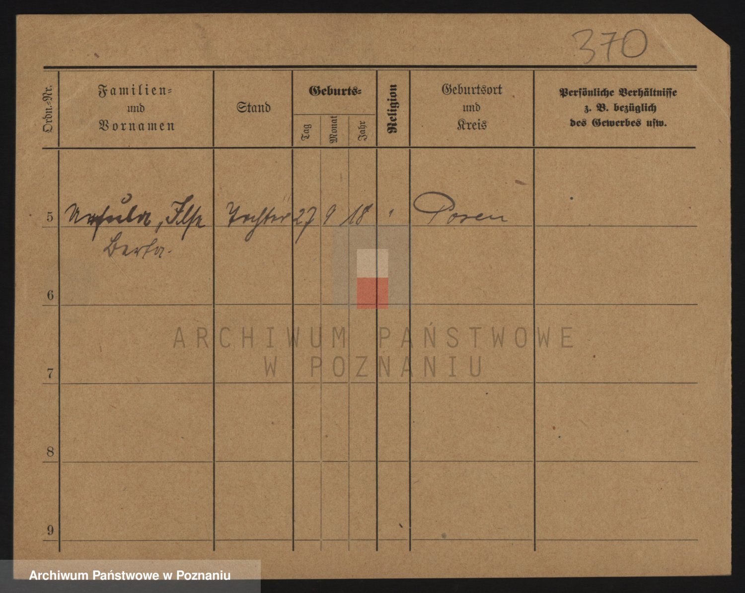 Podgląd karty osobowej dostępny jest po kliknięciu na nazwisko lub ikonkę karty. Można dokonywać powiększenia (ikony na górze) lub przechodzić między kolejnymi skanami (strzałki po bokach).