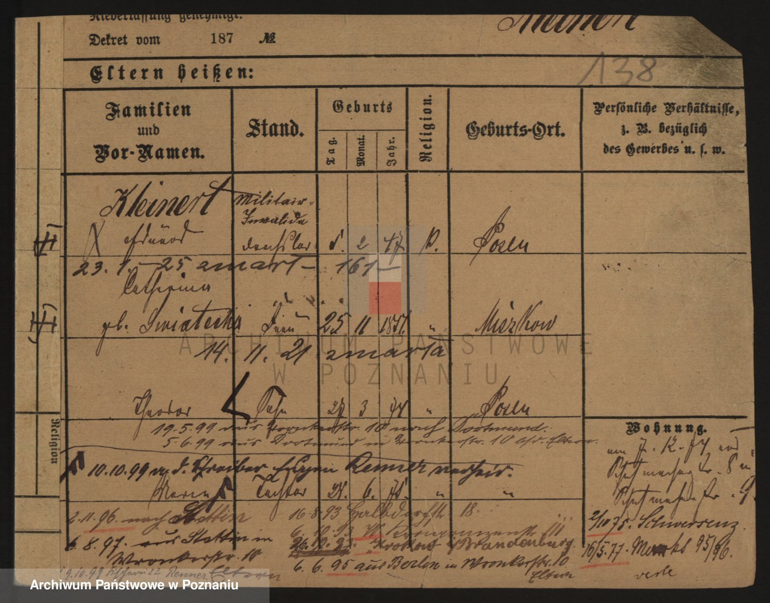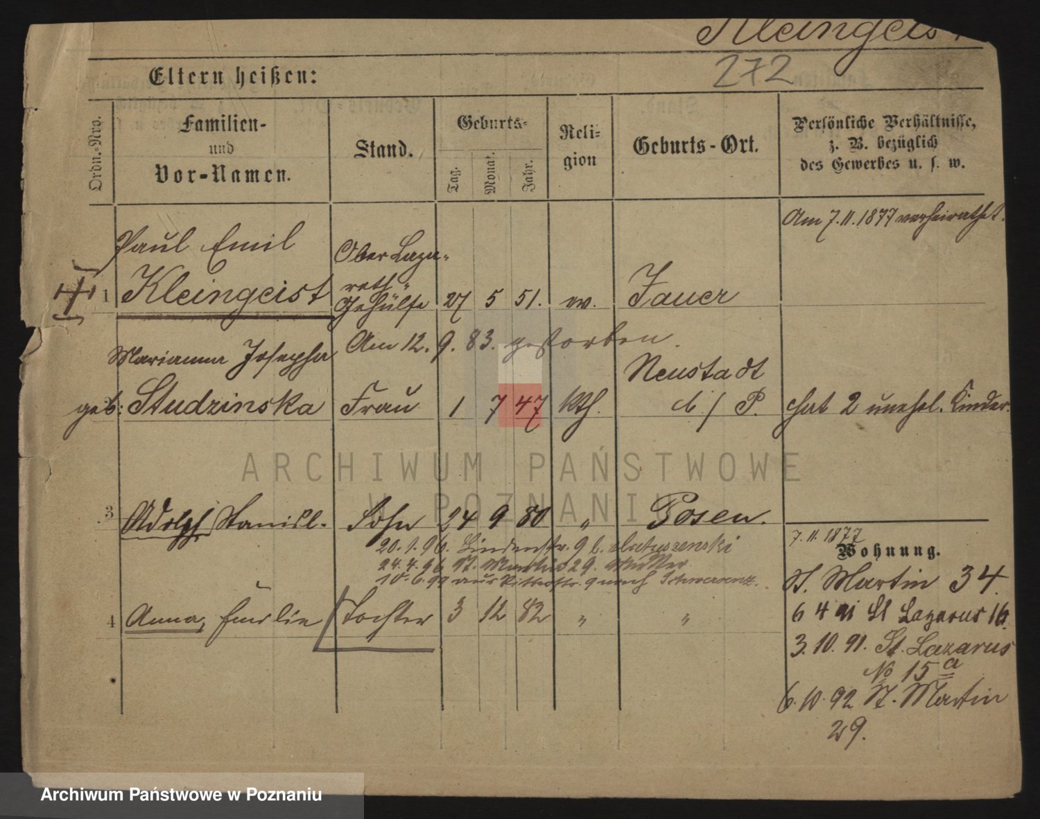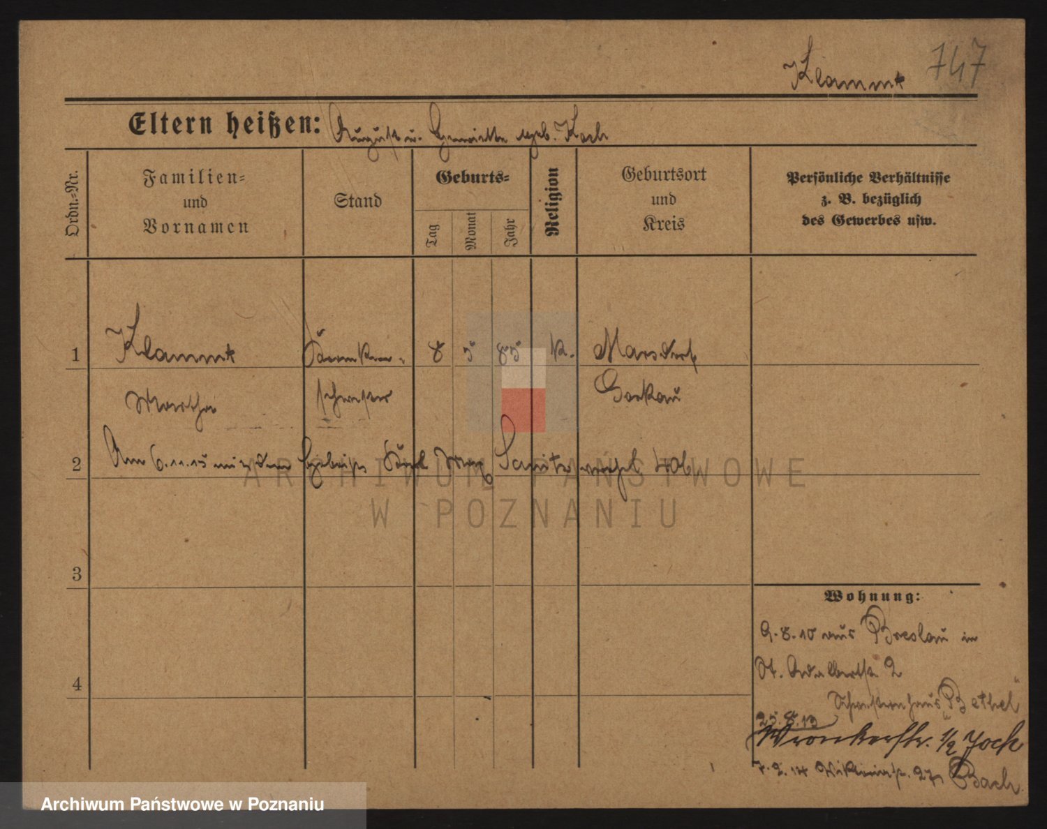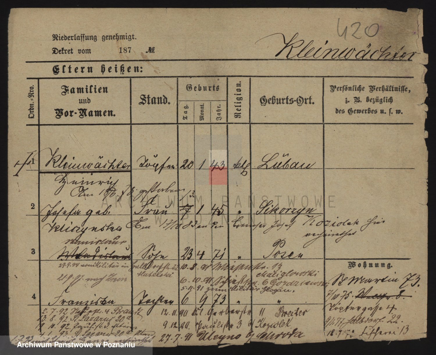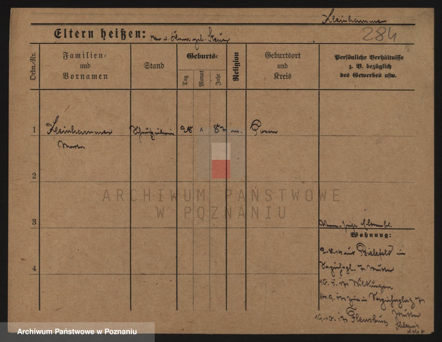 Podgląd karty osobowej dostępny jest po kliknięciu na nazwisko lub ikonkę karty. Można dokonywać powiększenia (ikony na górze) lub przechodzić między kolejnymi skanami (strzałki po bokach).