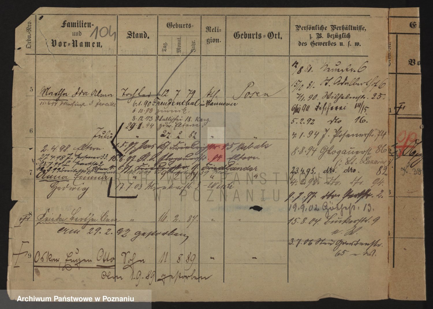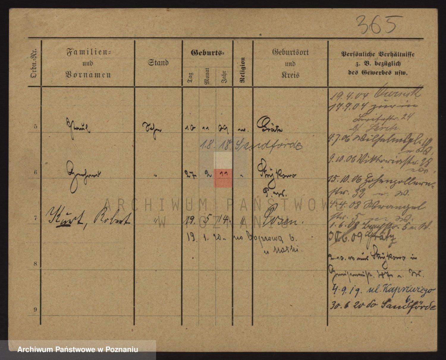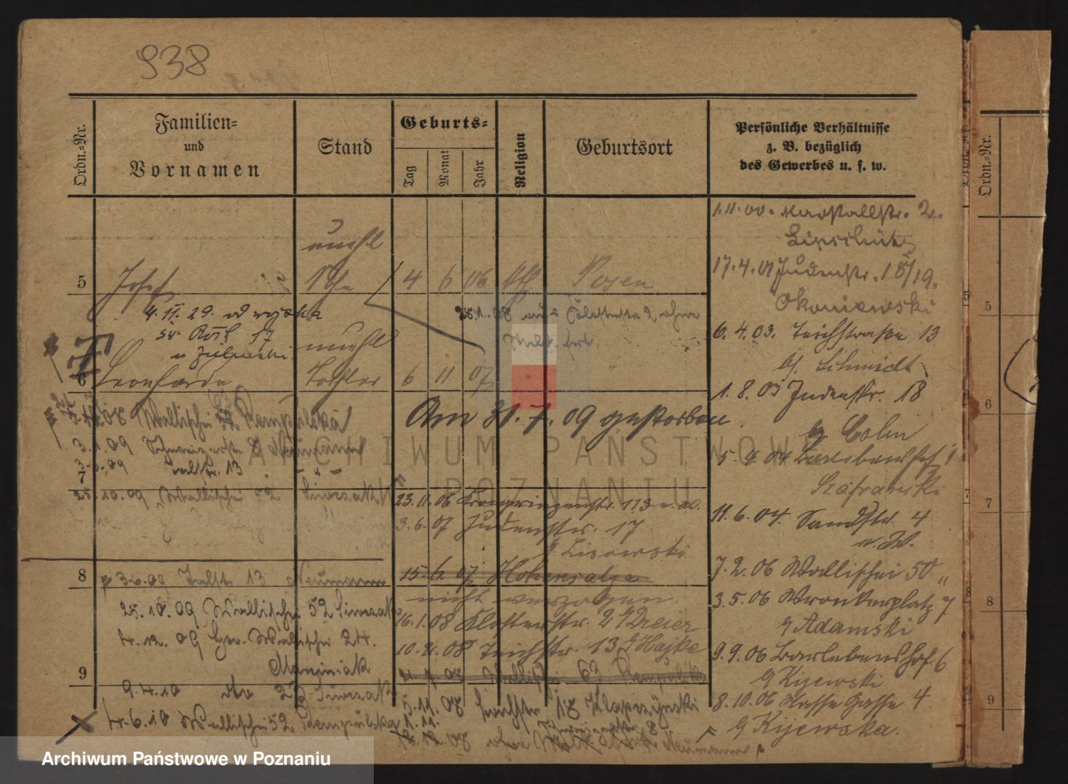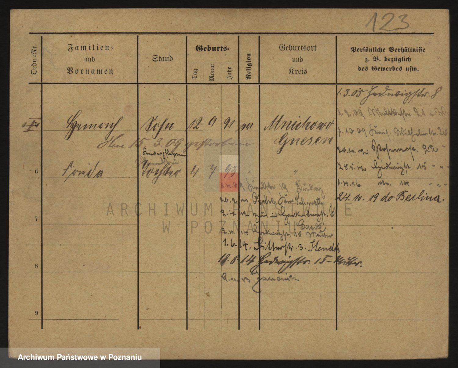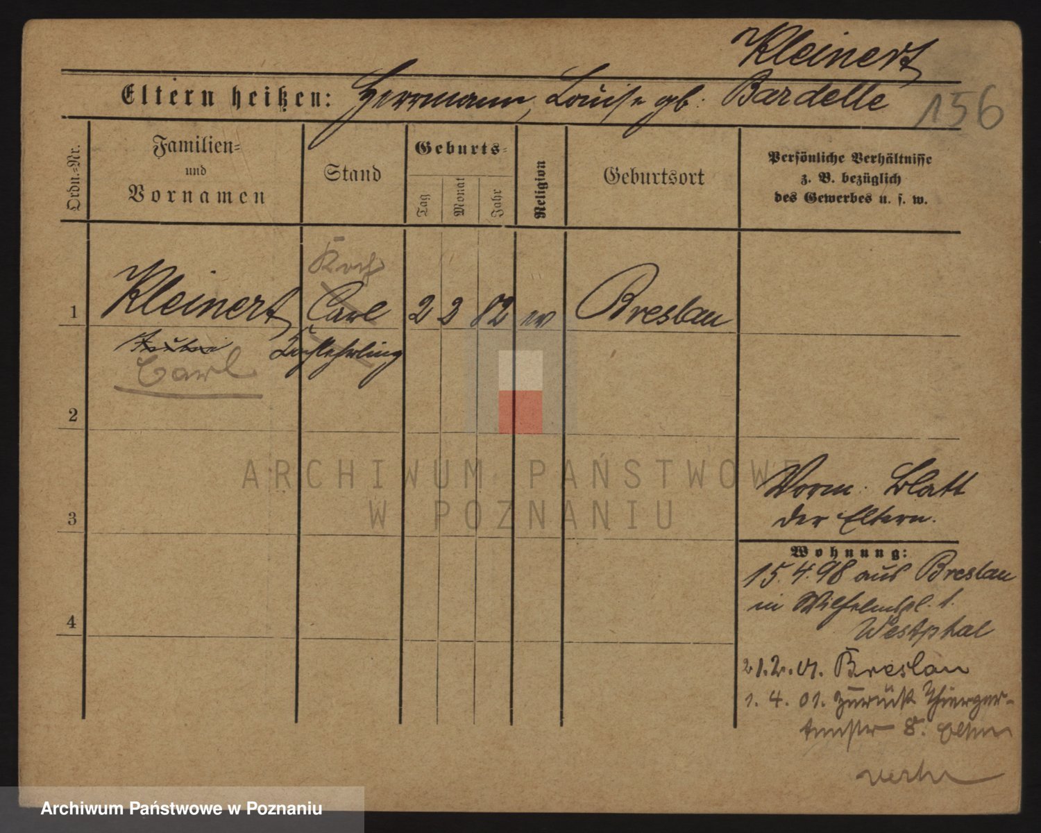 Podgląd karty osobowej dostępny jest po kliknięciu na nazwisko lub ikonkę karty. Można dokonywać powiększenia (ikony na górze) lub przechodzić między kolejnymi skanami (strzałki po bokach).