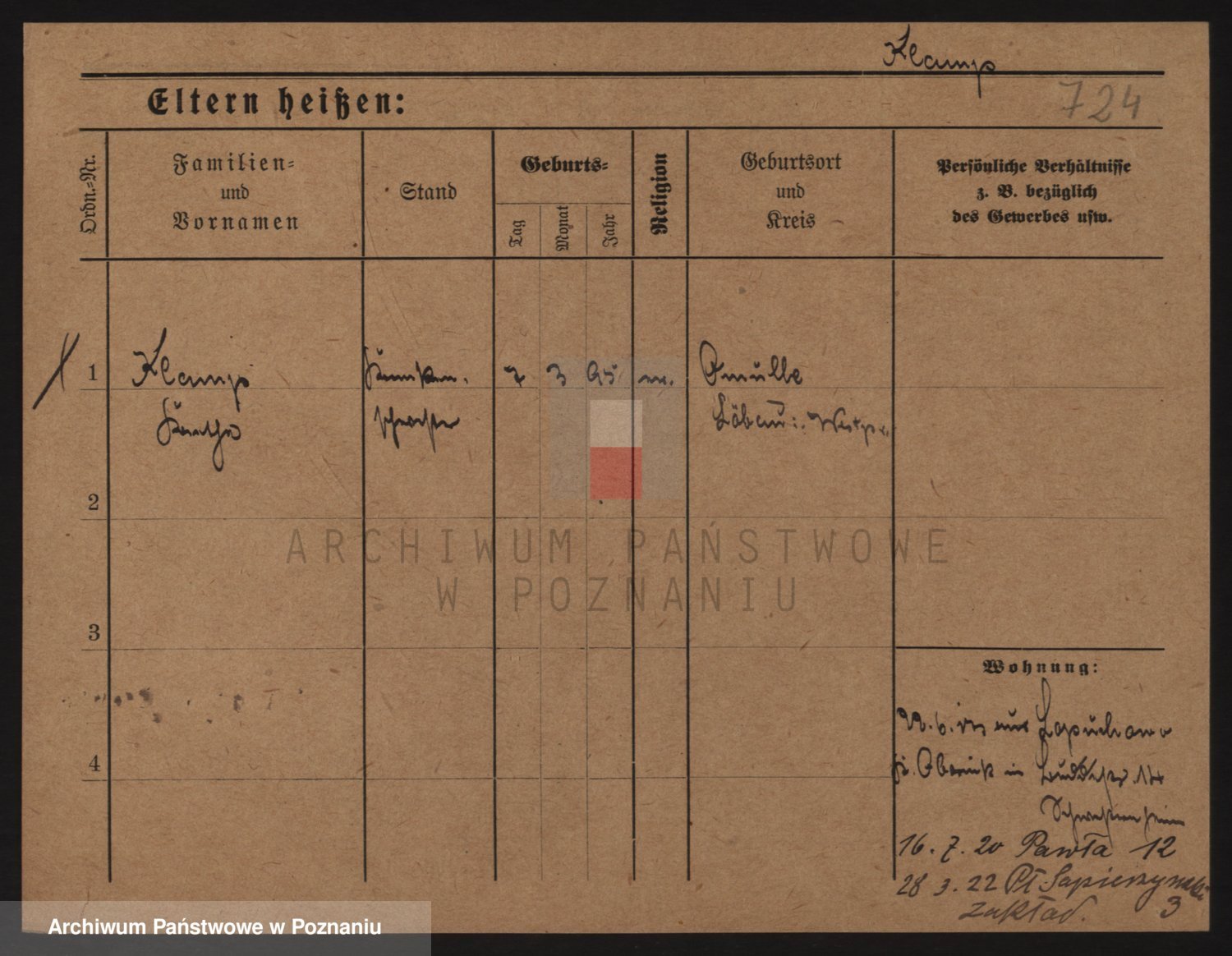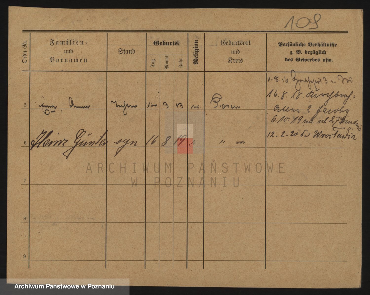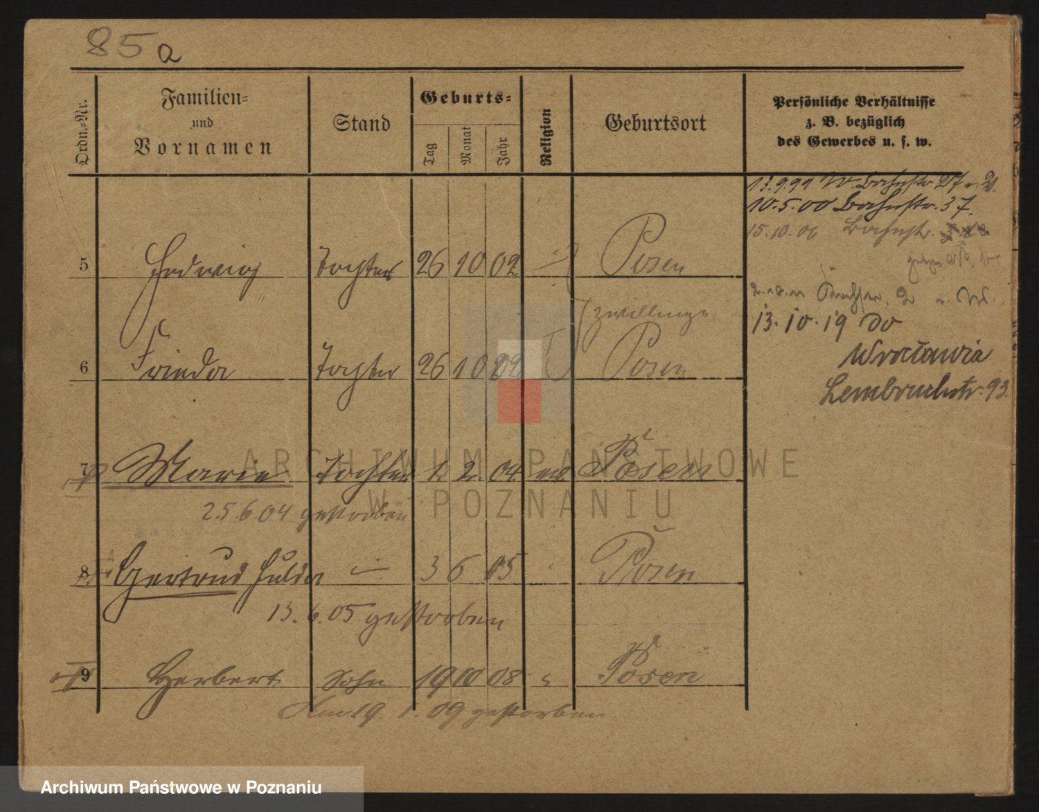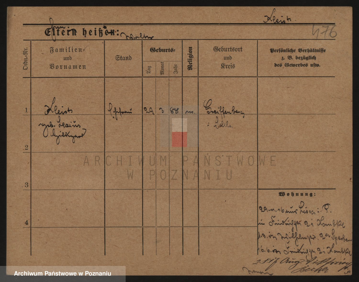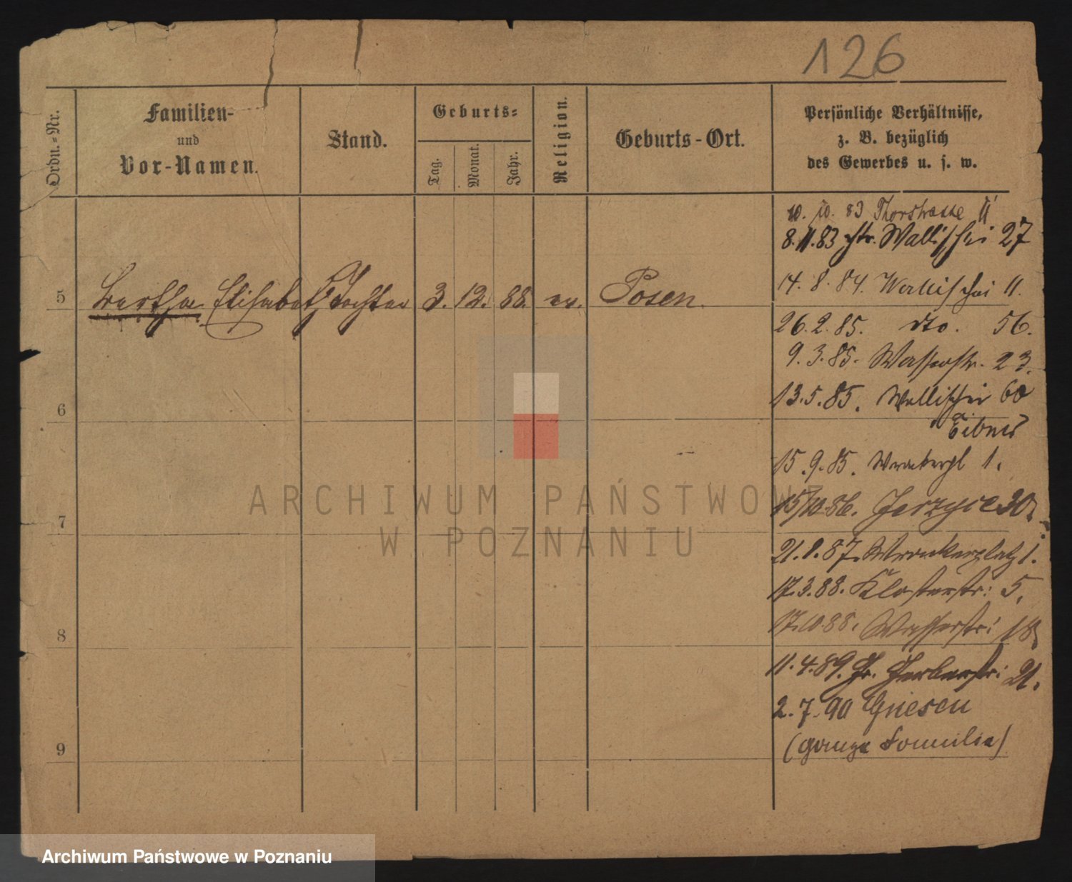 Podgląd karty osobowej dostępny jest po kliknięciu na nazwisko lub ikonkę karty. Można dokonywać powiększenia (ikony na górze) lub przechodzić między kolejnymi skanami (strzałki po bokach).