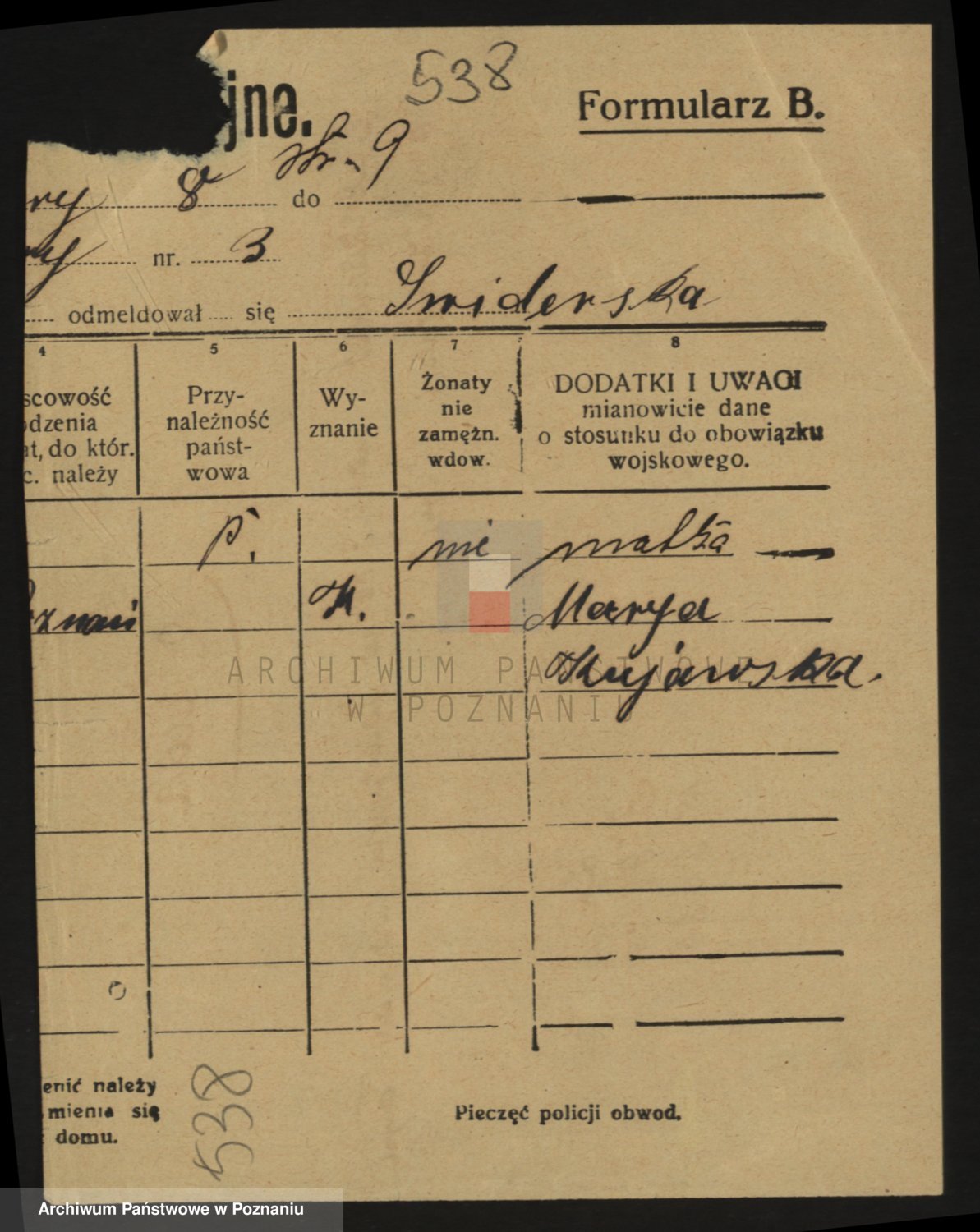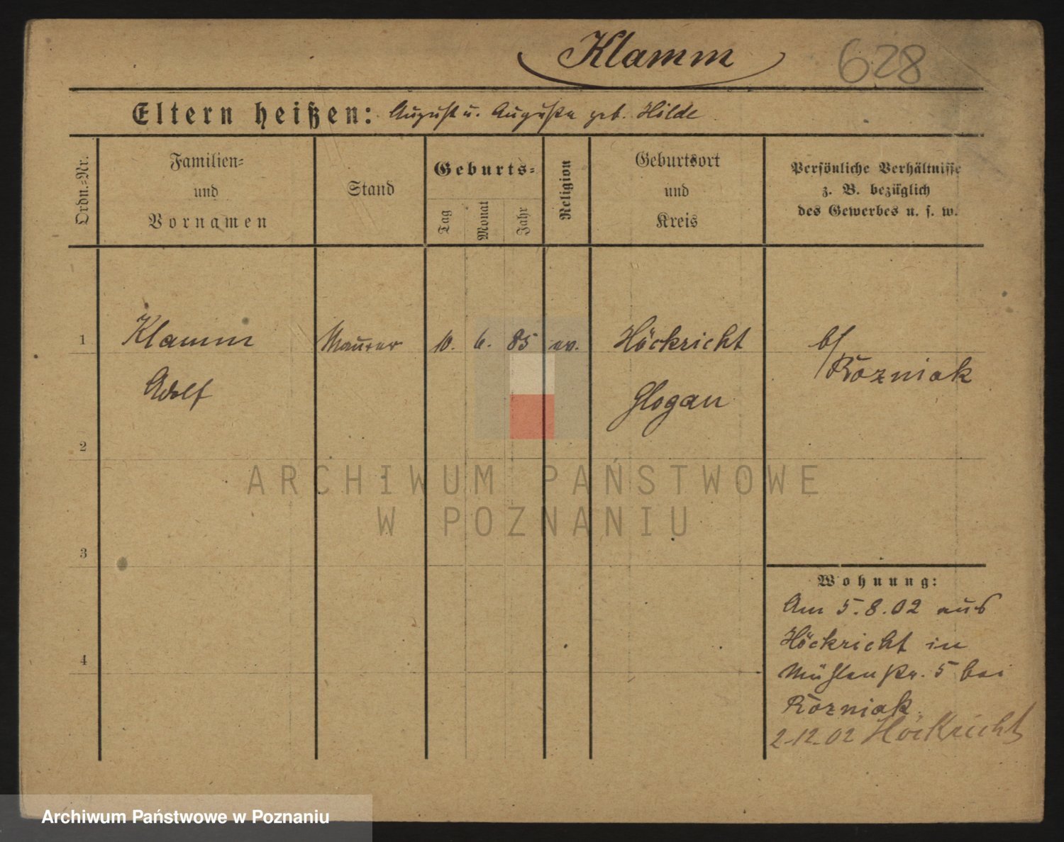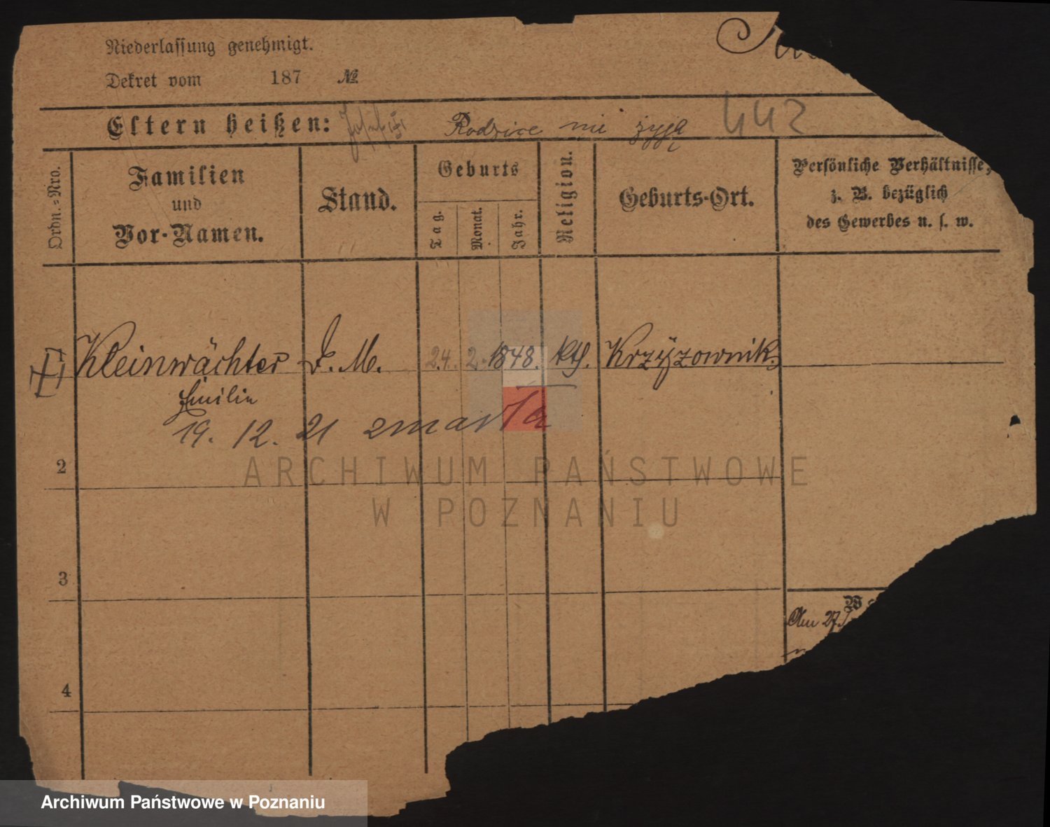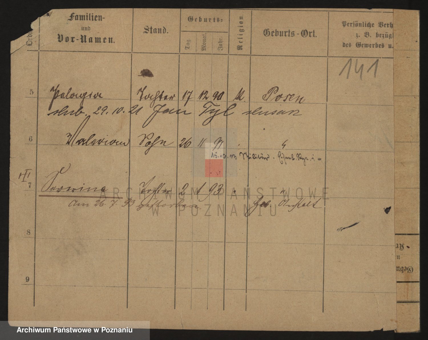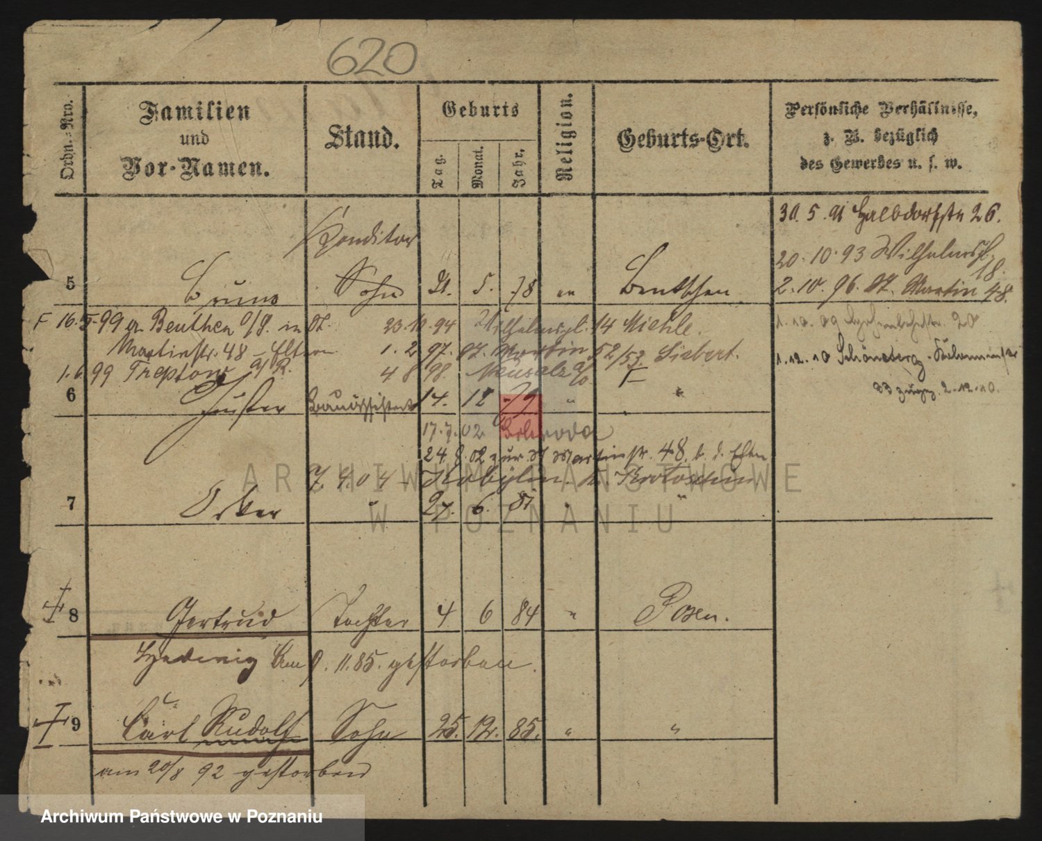 Podgląd karty osobowej dostępny jest po kliknięciu na nazwisko lub ikonkę karty. Można dokonywać powiększenia (ikony na górze) lub przechodzić między kolejnymi skanami (strzałki po bokach).