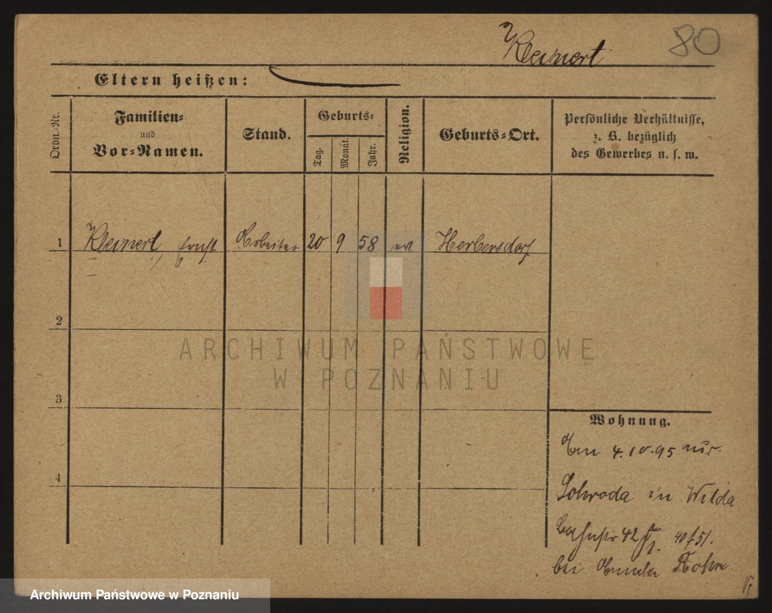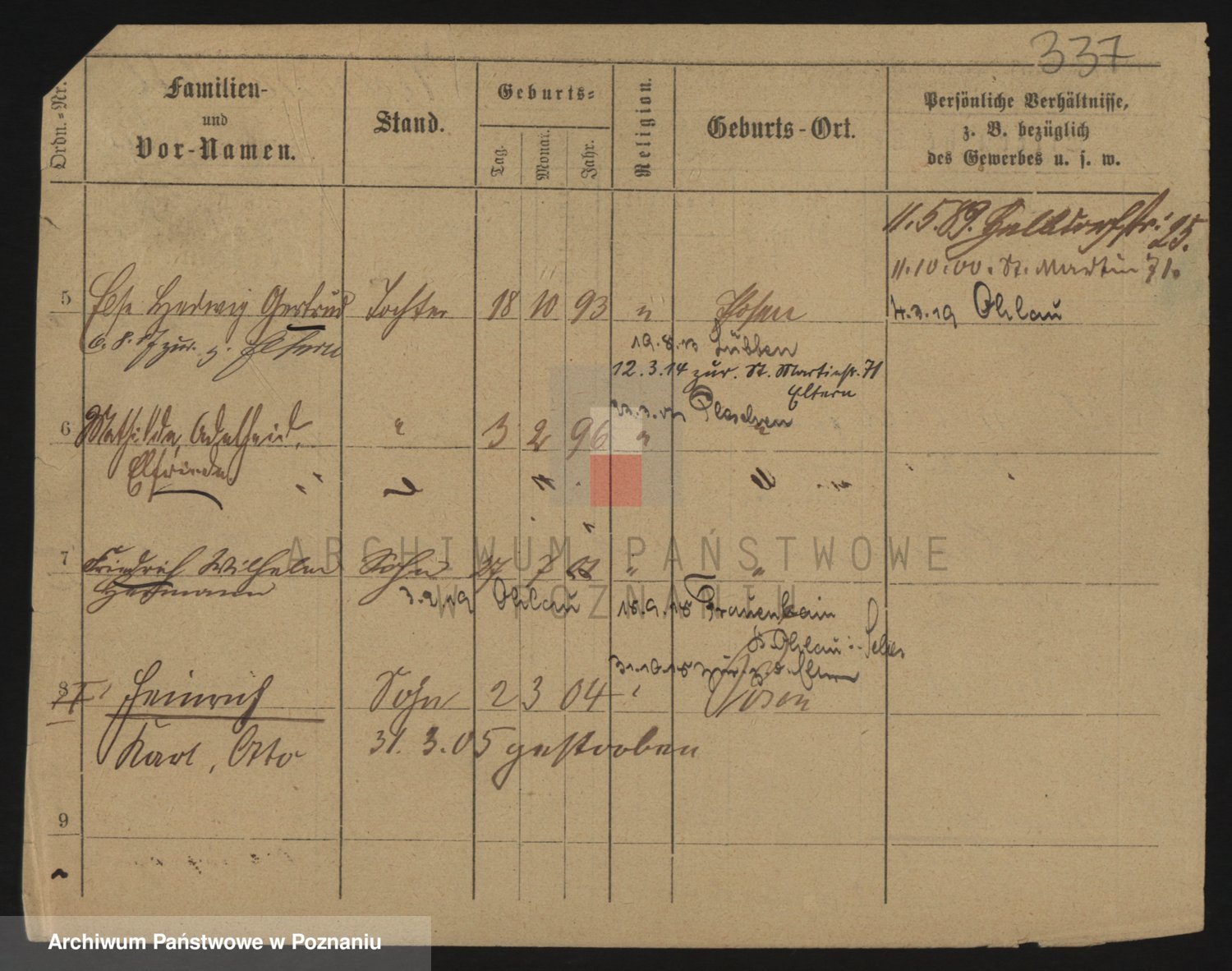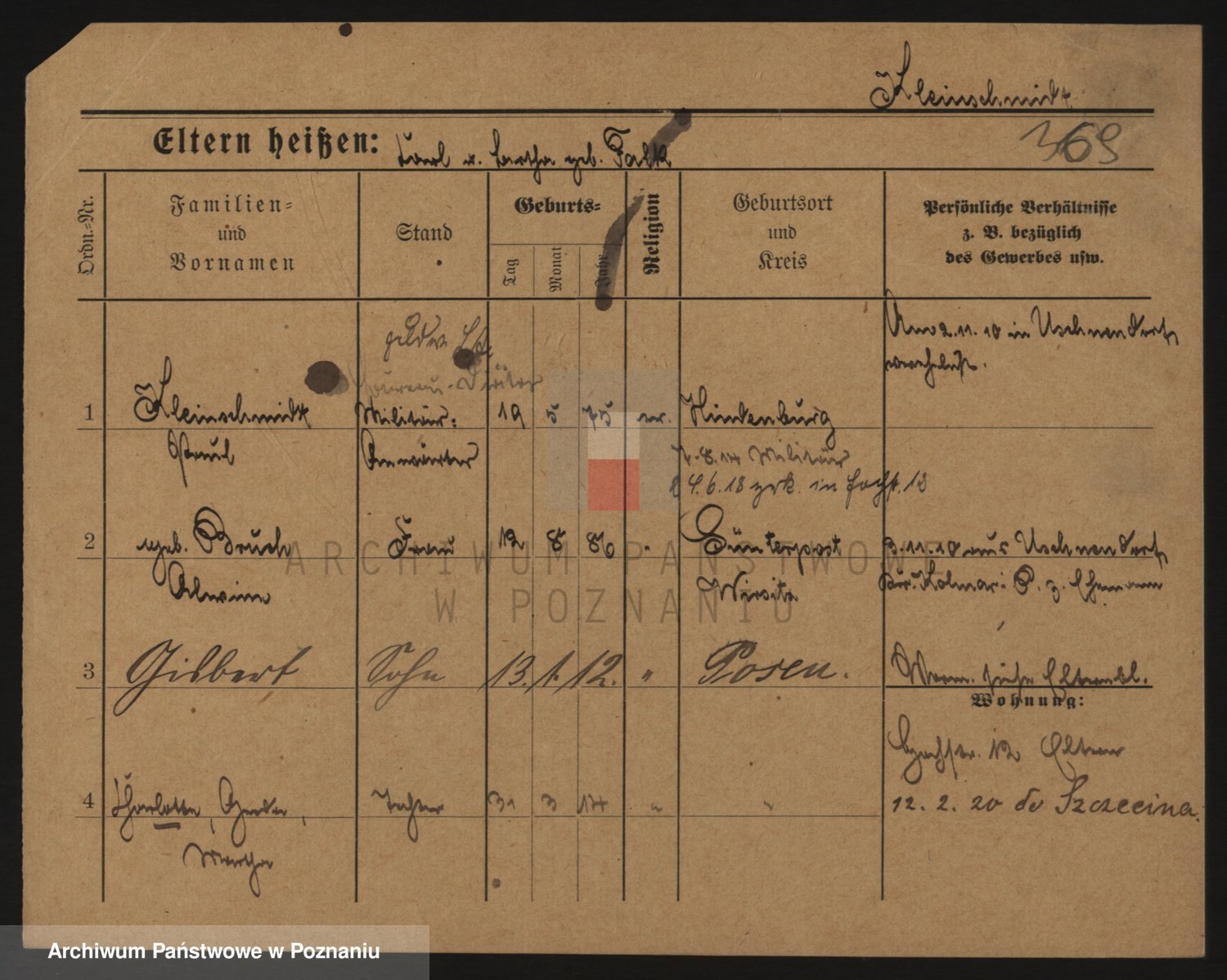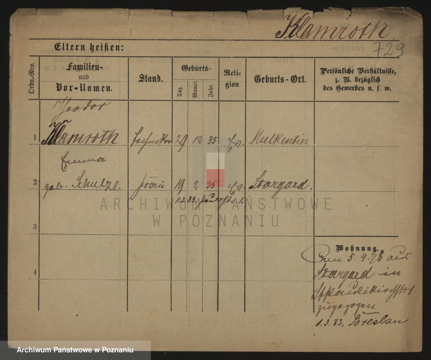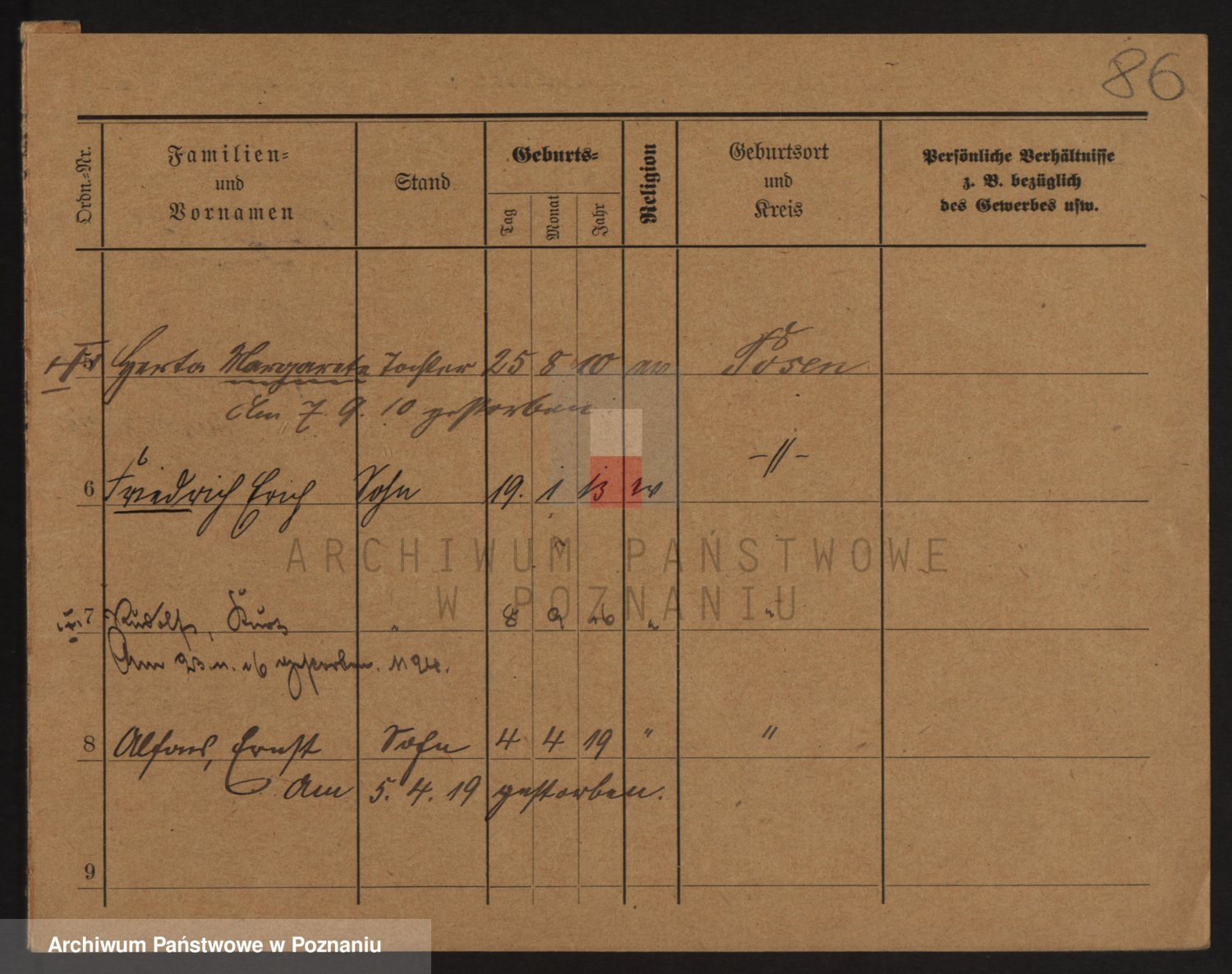 Podgląd karty osobowej dostępny jest po kliknięciu na nazwisko lub ikonkę karty. Można dokonywać powiększenia (ikony na górze) lub przechodzić między kolejnymi skanami (strzałki po bokach).