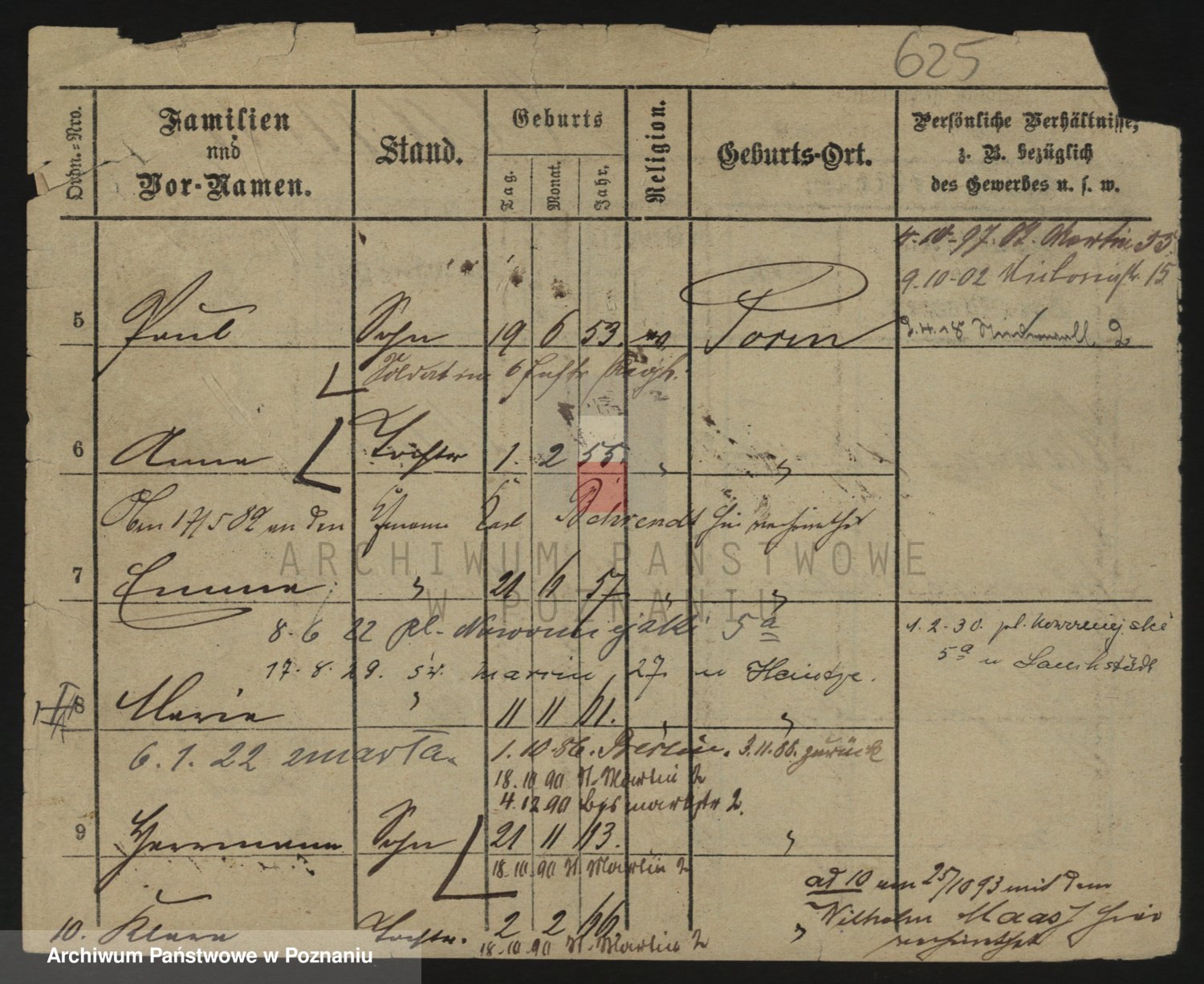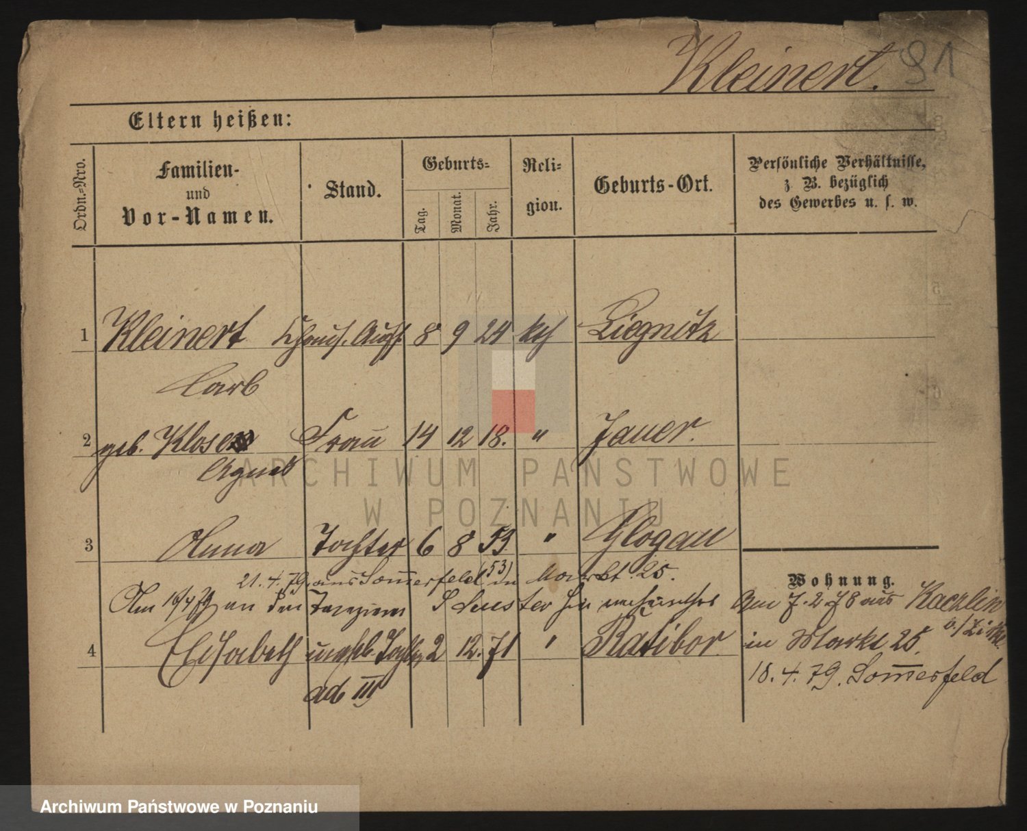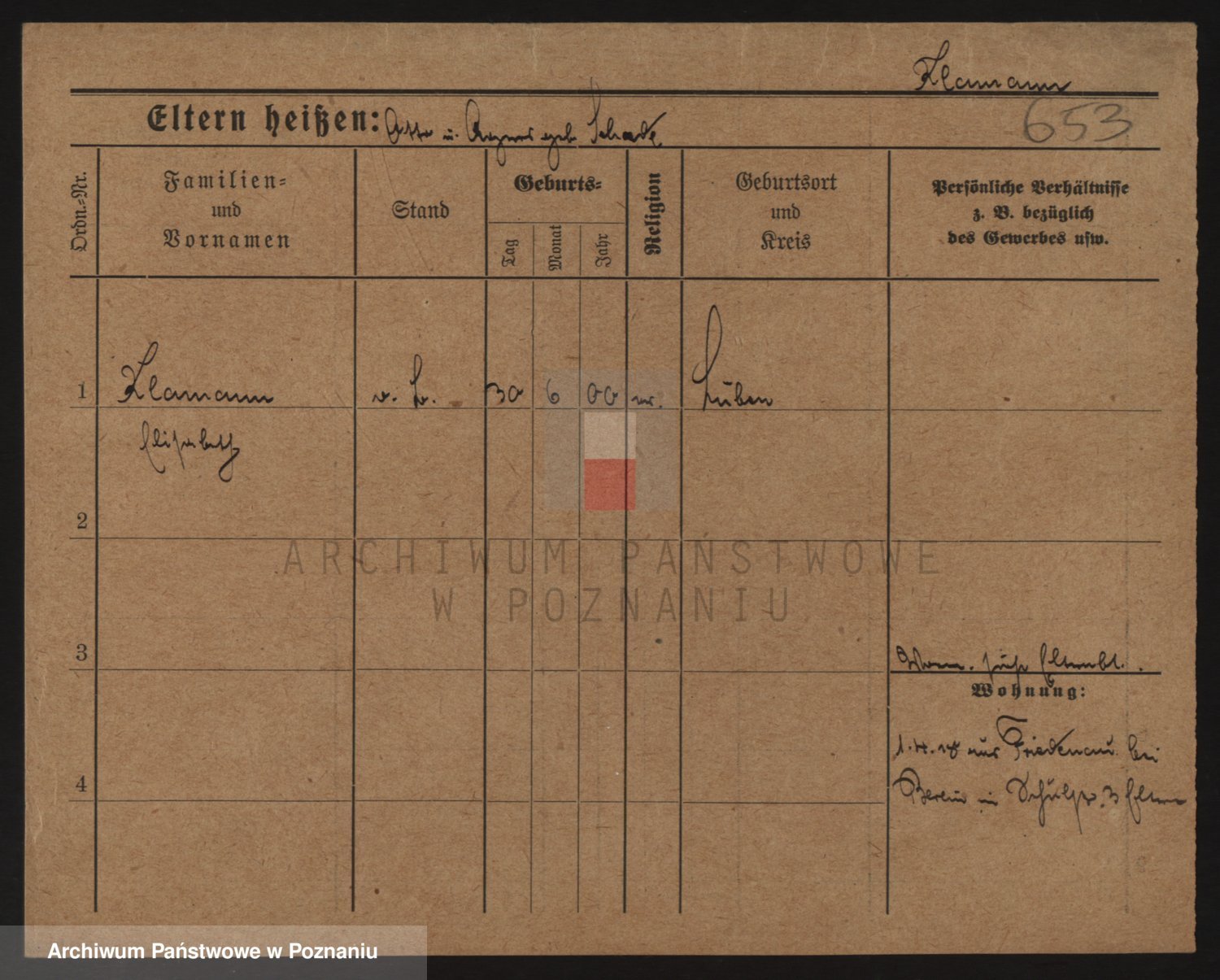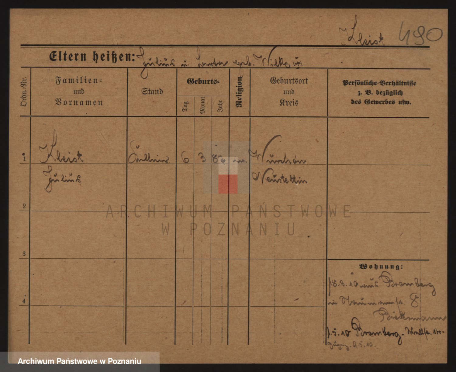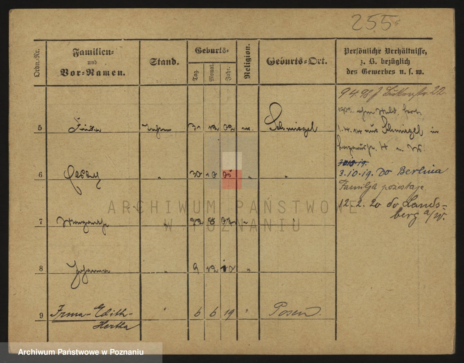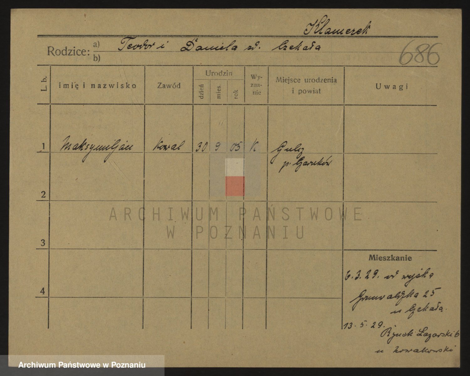 Podgląd karty osobowej dostępny jest po kliknięciu na nazwisko lub ikonkę karty. Można dokonywać powiększenia (ikony na górze) lub przechodzić między kolejnymi skanami (strzałki po bokach).