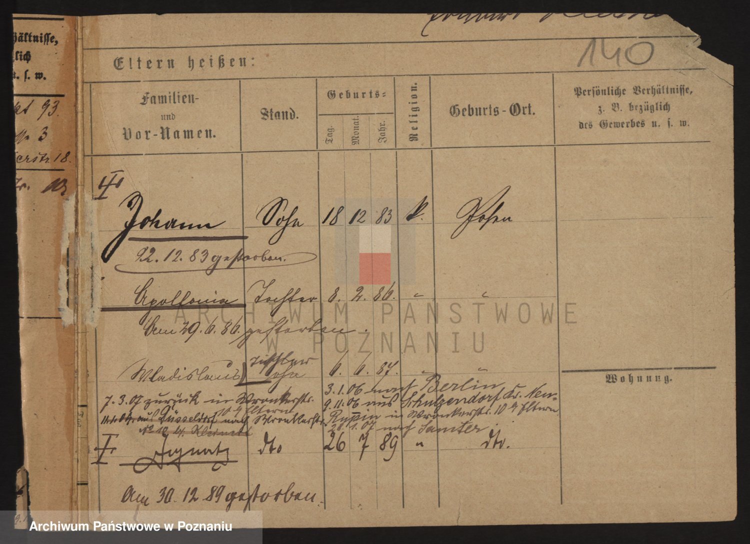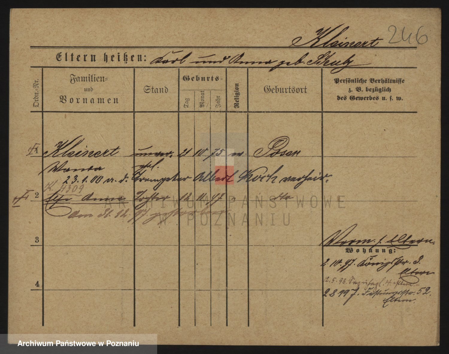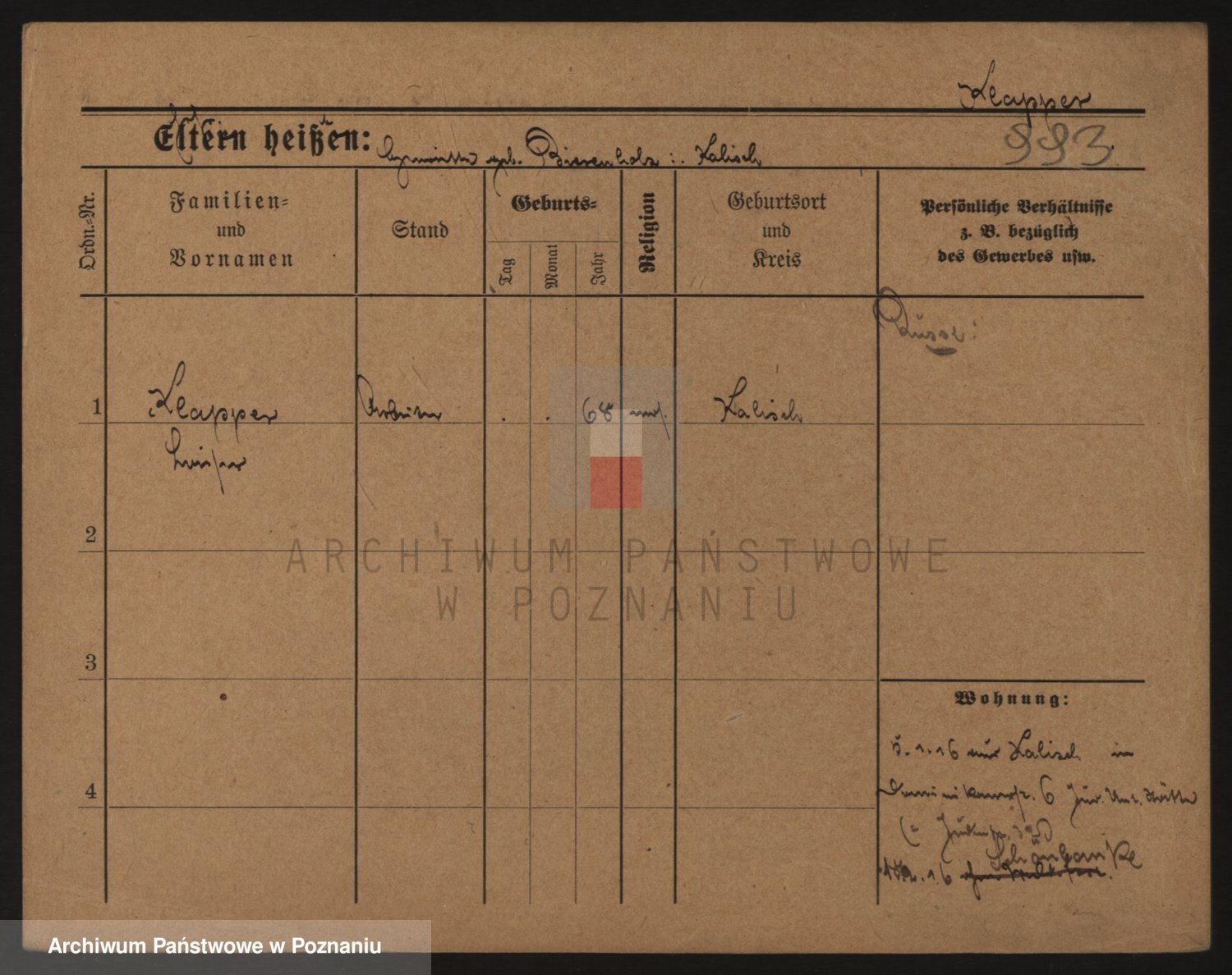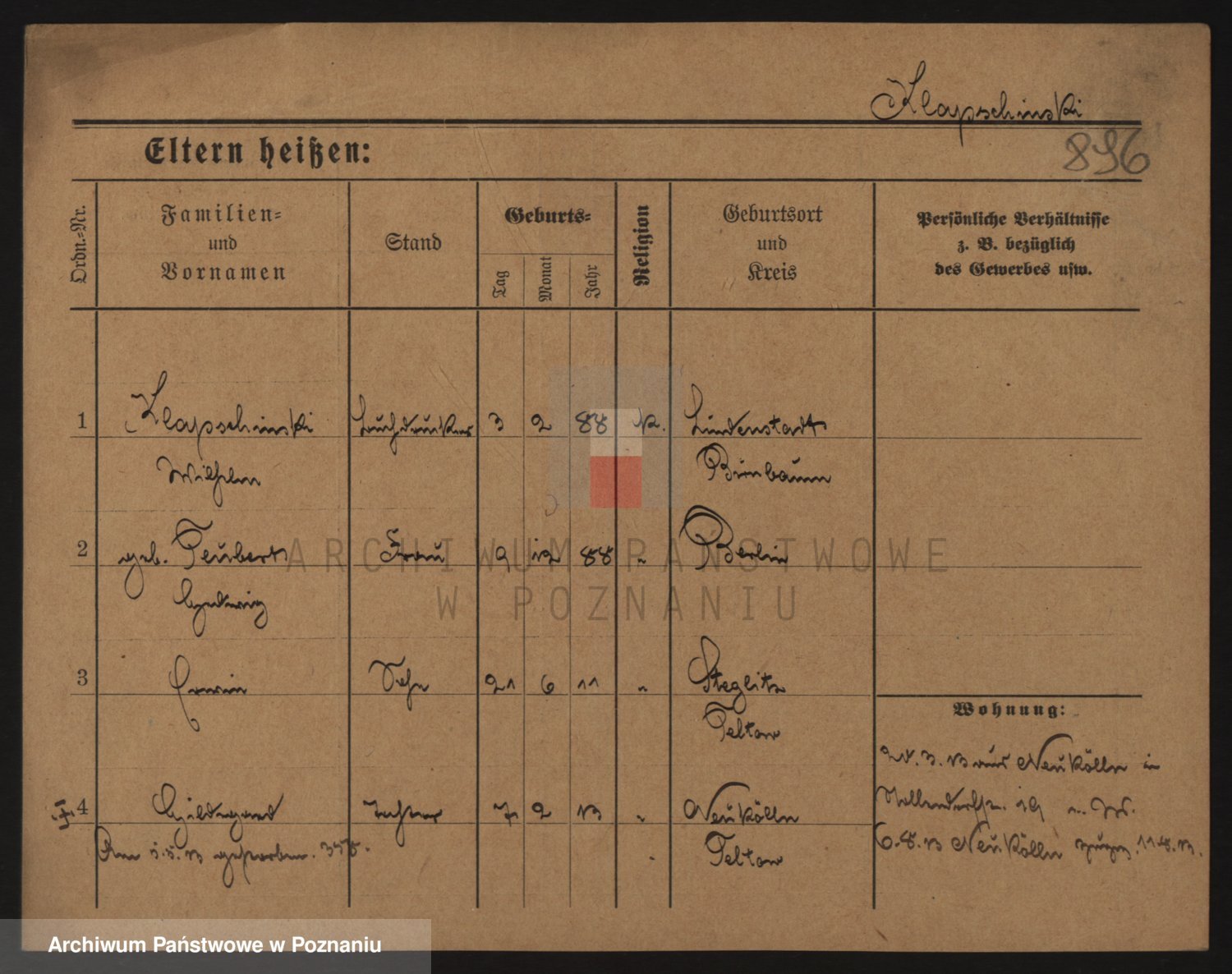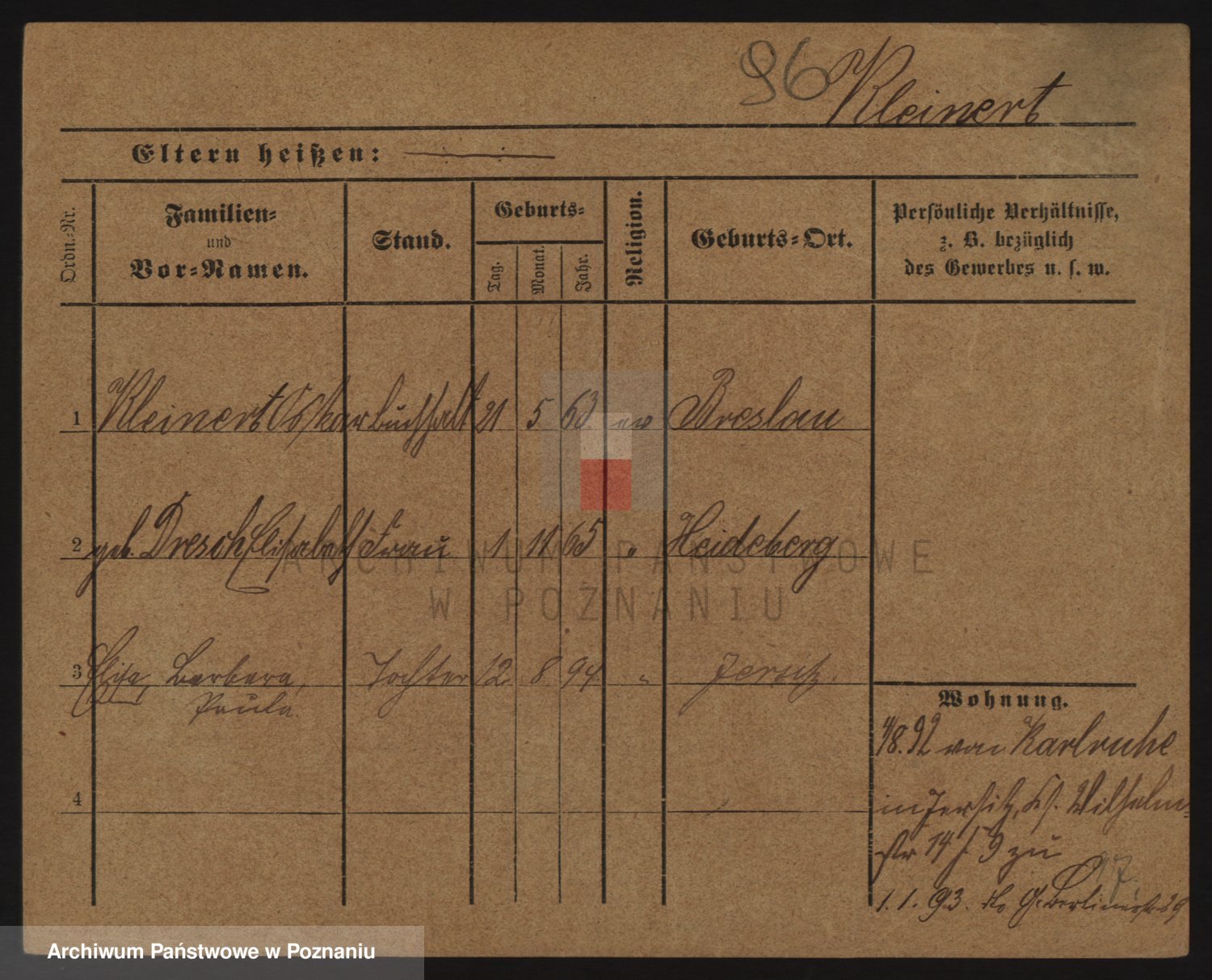 Podgląd karty osobowej dostępny jest po kliknięciu na nazwisko lub ikonkę karty. Można dokonywać powiększenia (ikony na górze) lub przechodzić między kolejnymi skanami (strzałki po bokach).