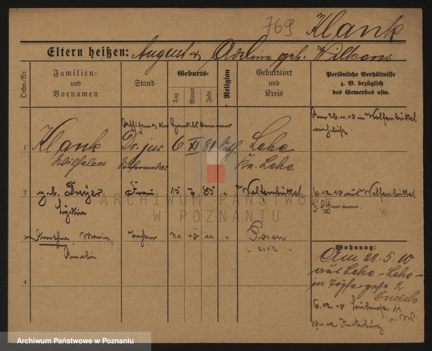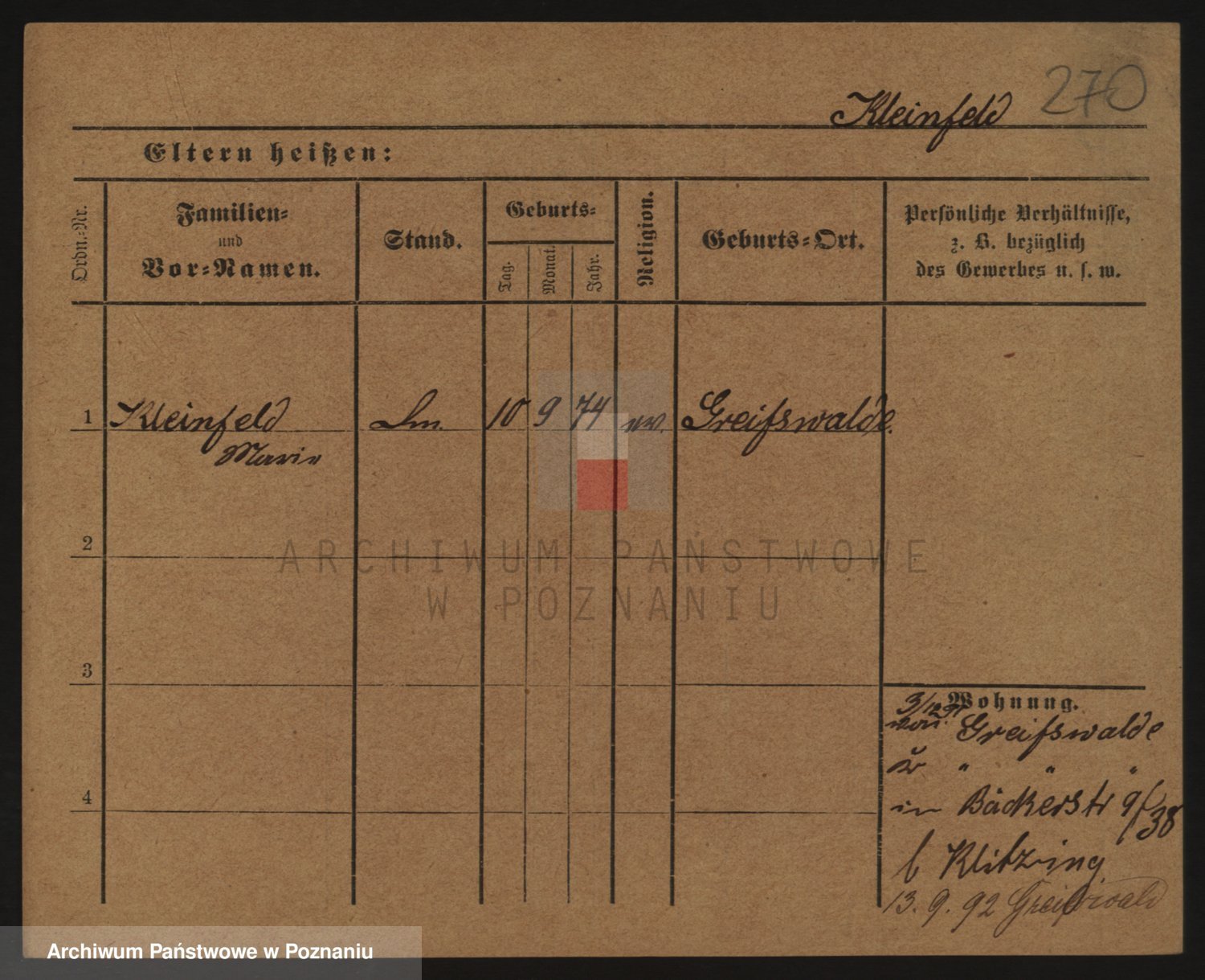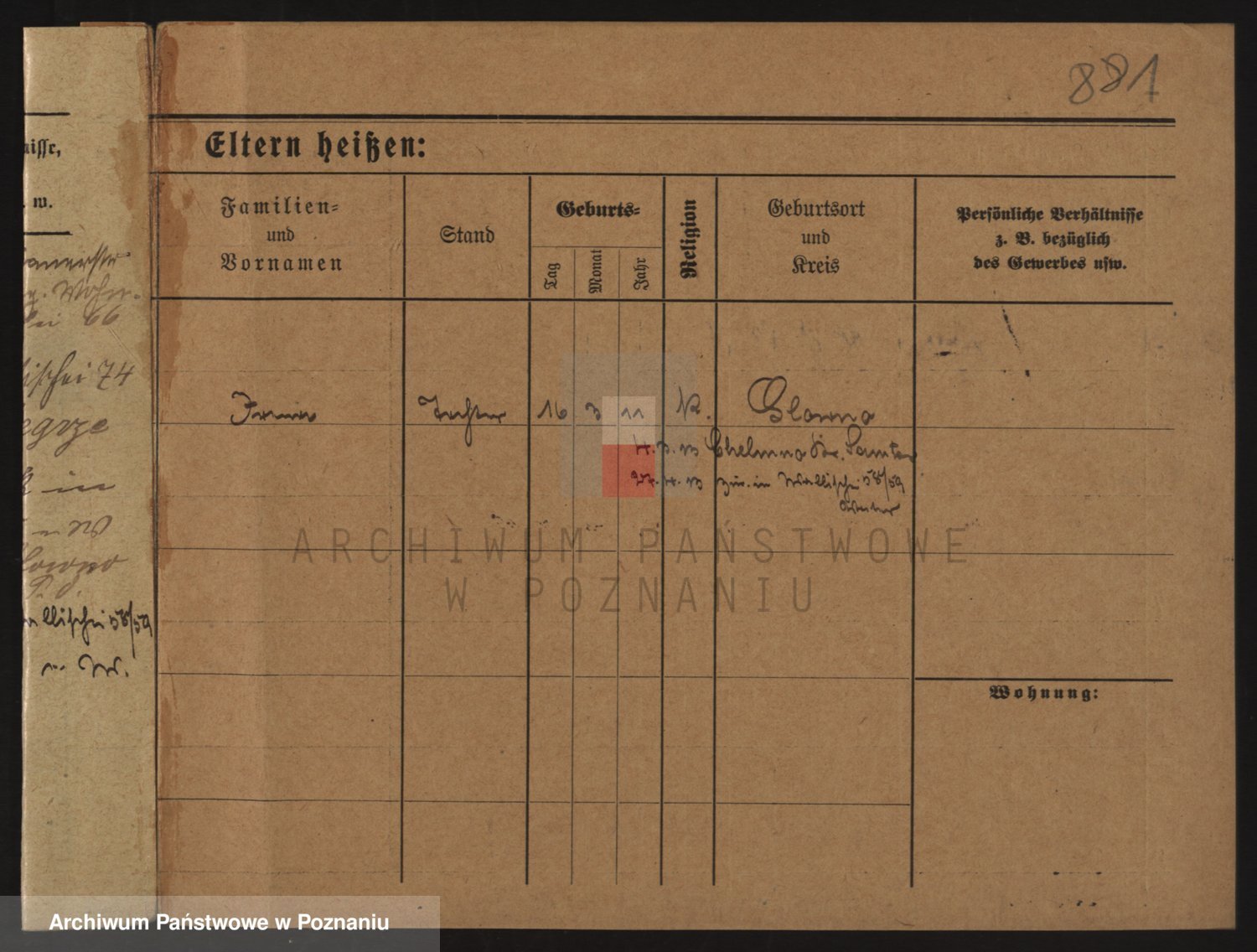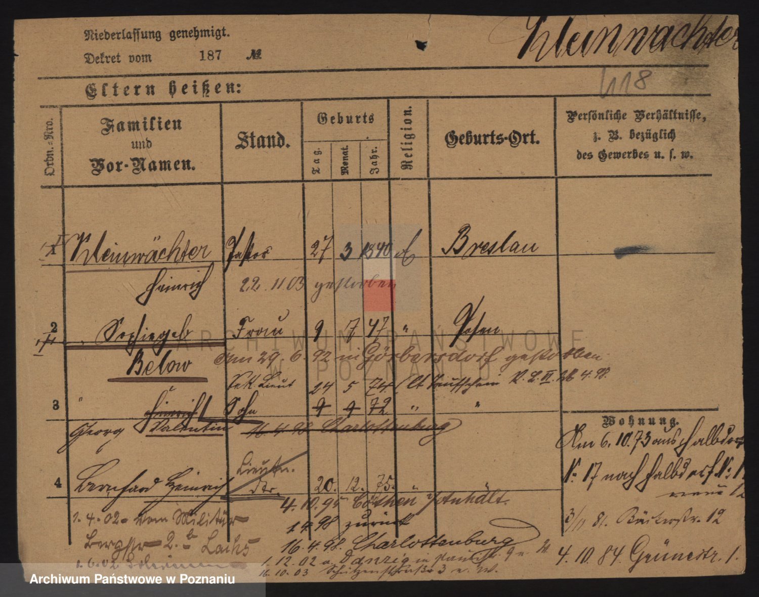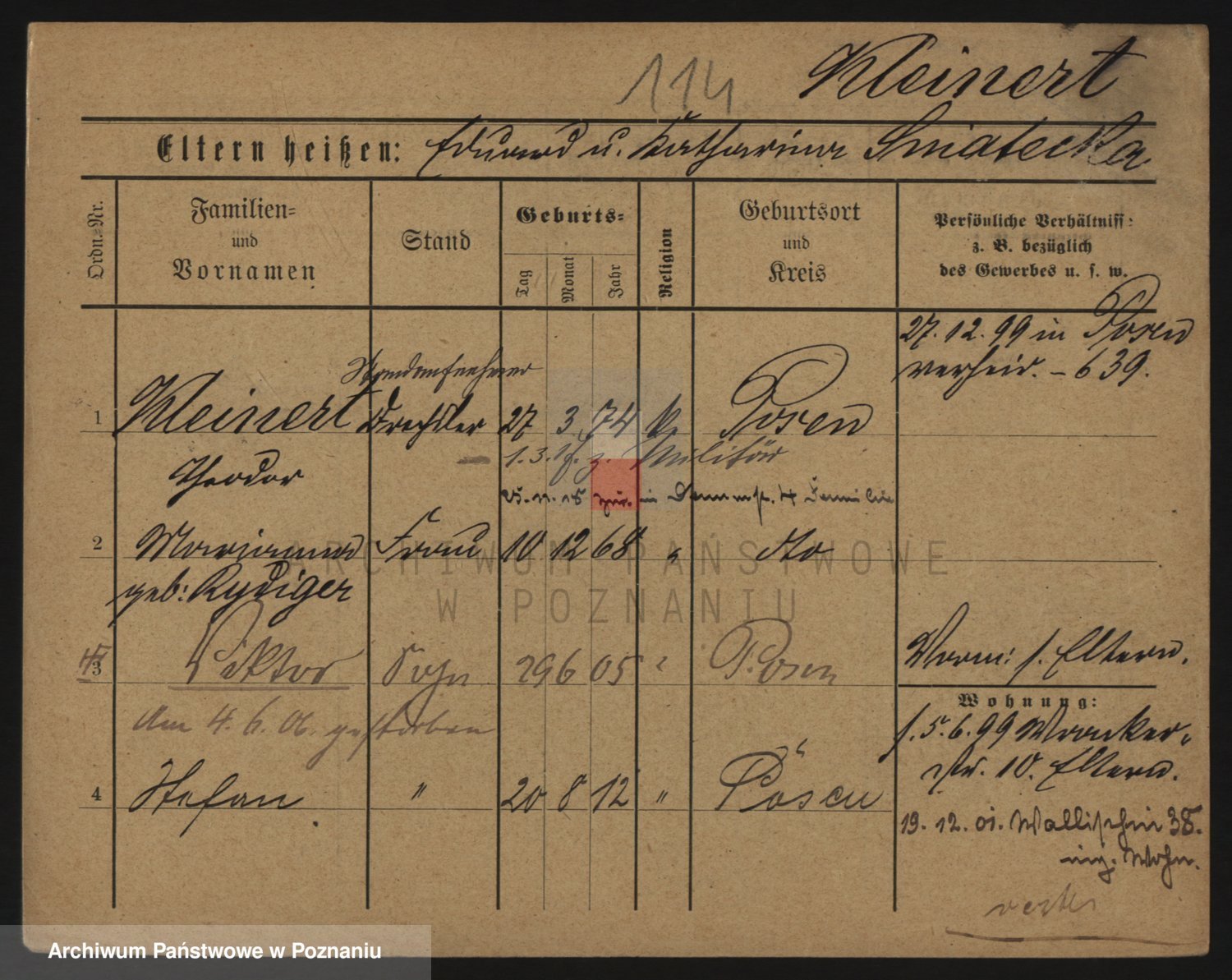 Podgląd karty osobowej dostępny jest po kliknięciu na nazwisko lub ikonkę karty. Można dokonywać powiększenia (ikony na górze) lub przechodzić między kolejnymi skanami (strzałki po bokach).