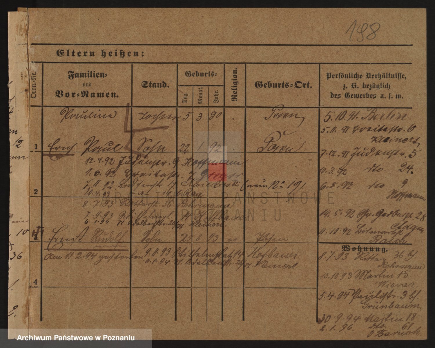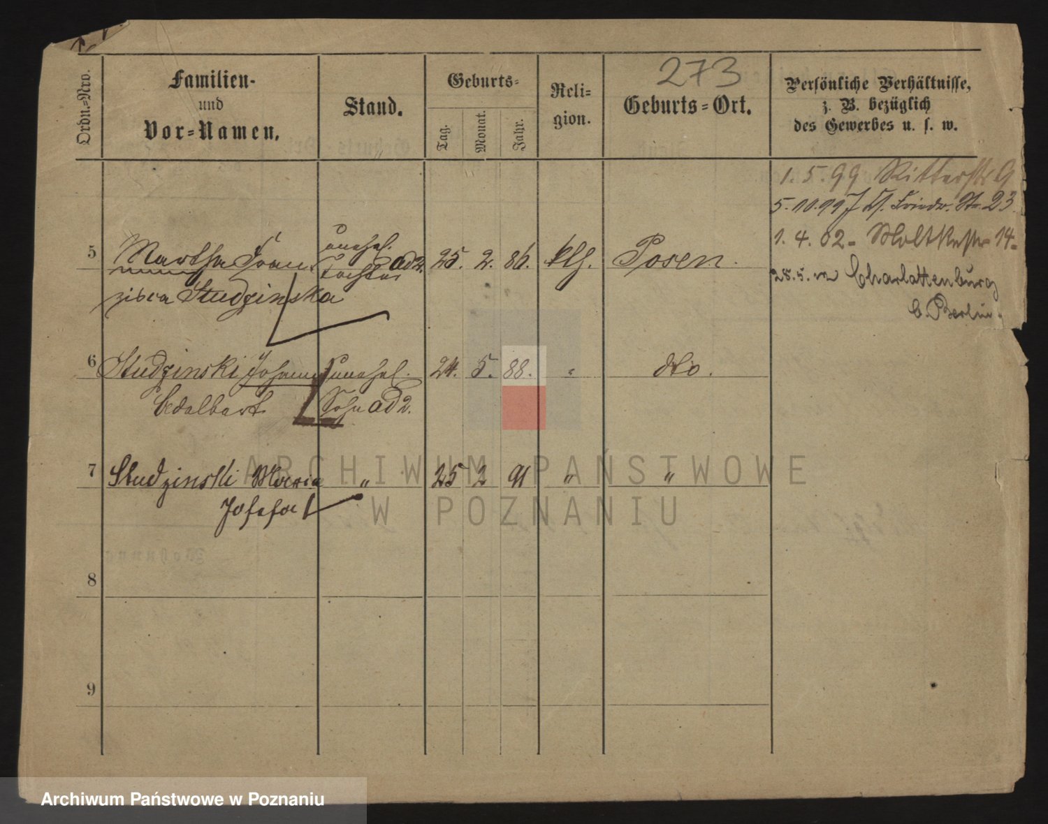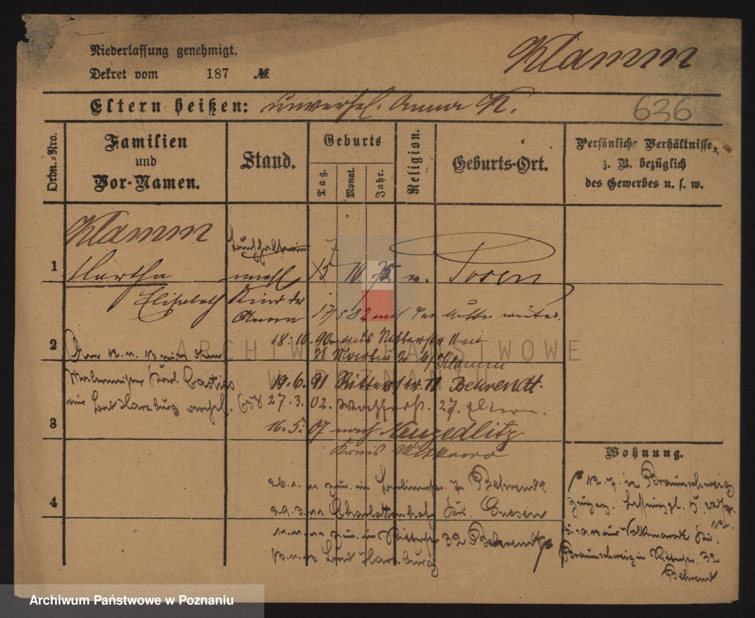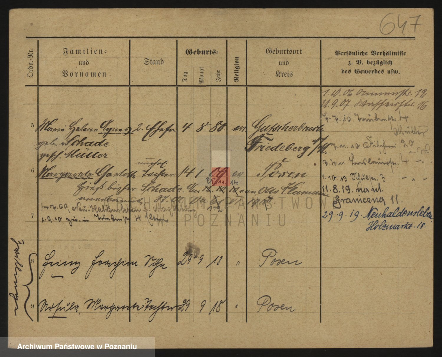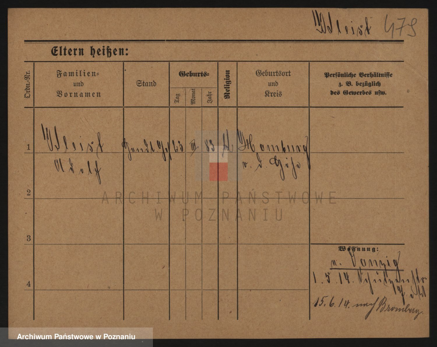 Podgląd karty osobowej dostępny jest po kliknięciu na nazwisko lub ikonkę karty. Można dokonywać powiększenia (ikony na górze) lub przechodzić między kolejnymi skanami (strzałki po bokach).