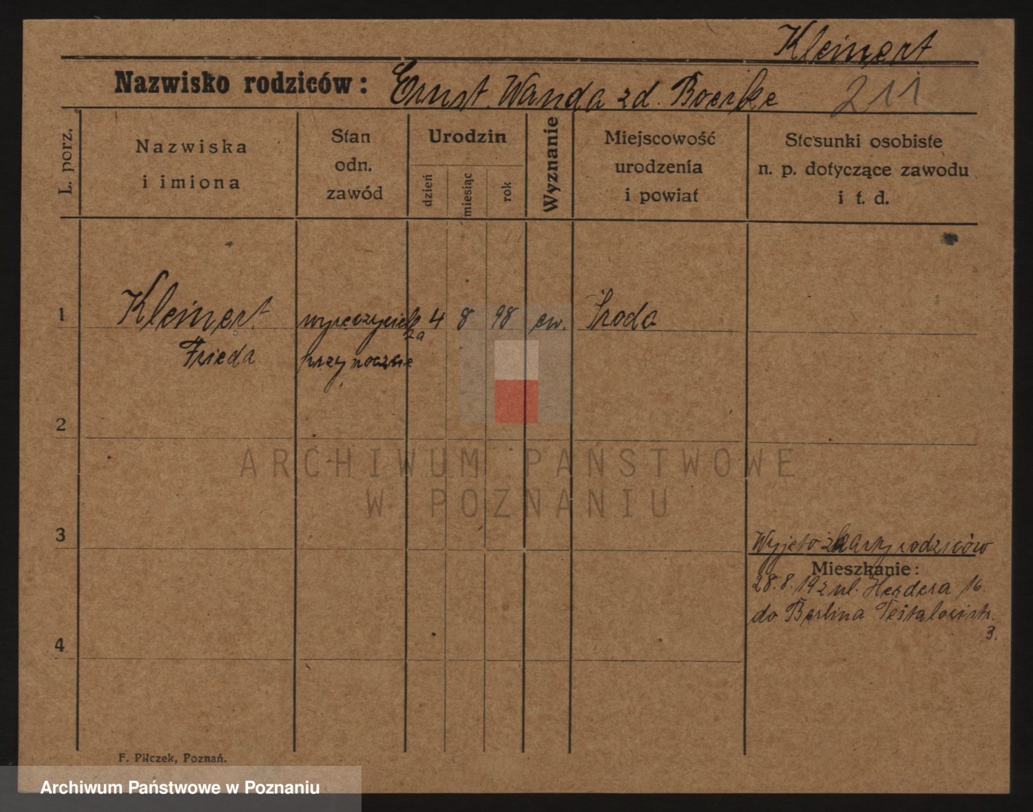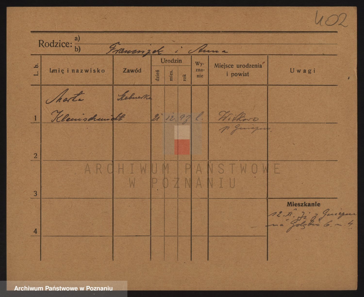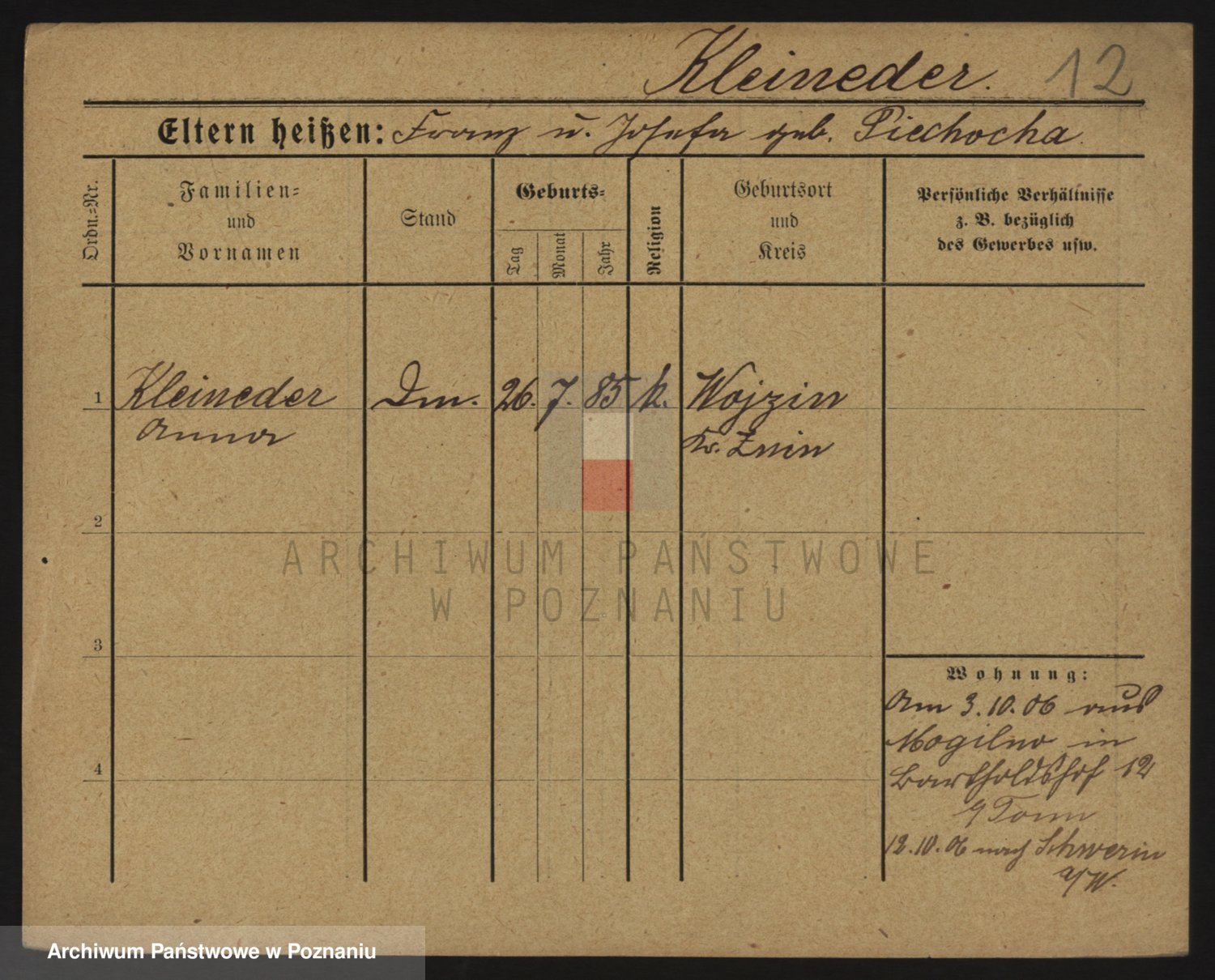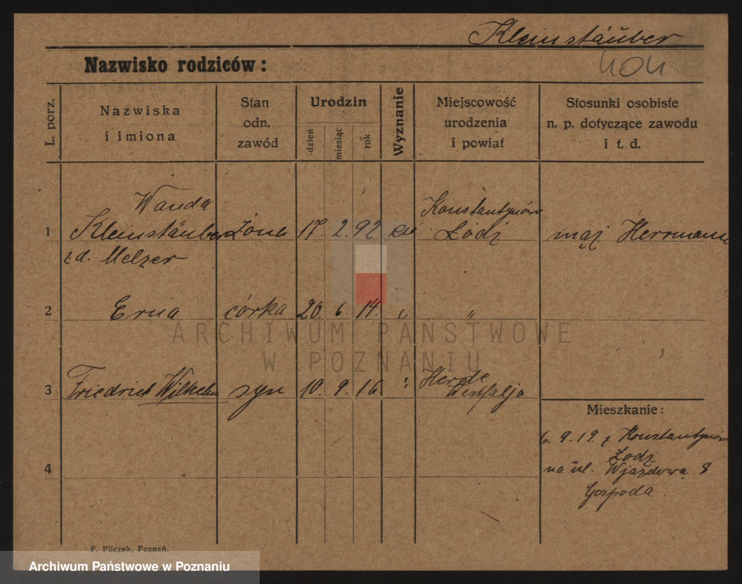 Kleineder z d. Wieczorek, Franciszka