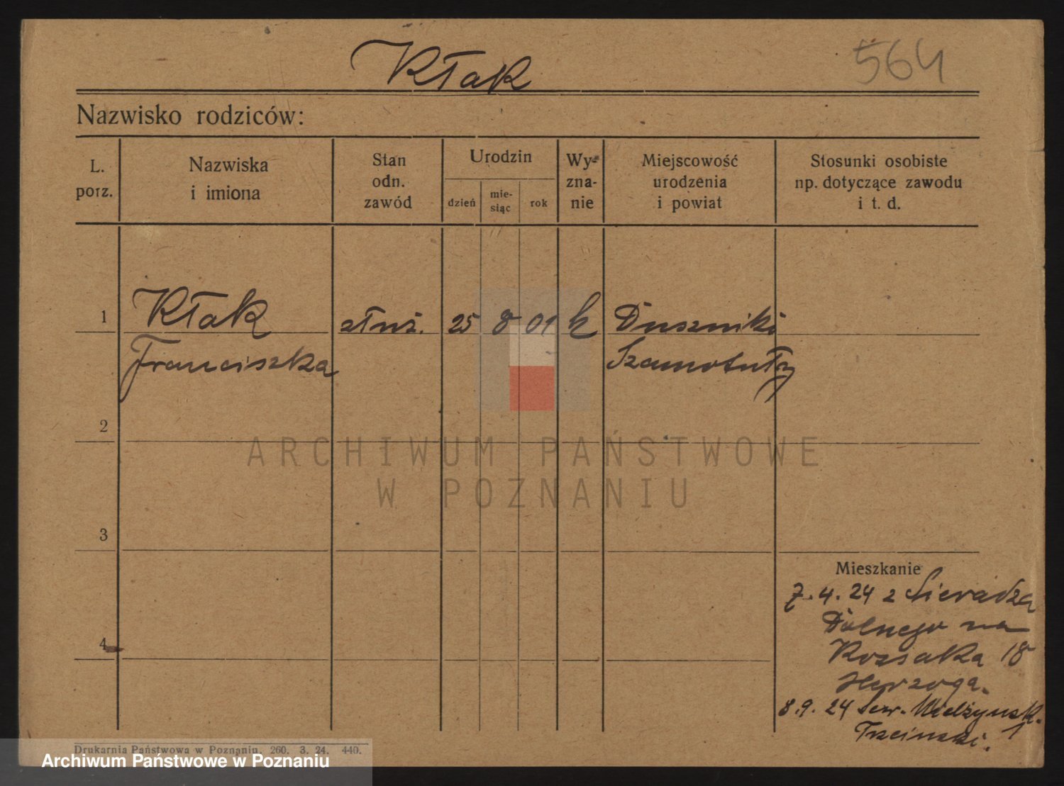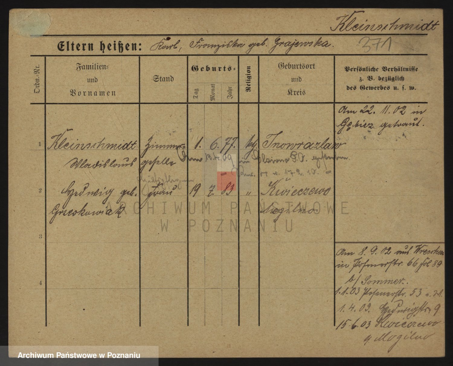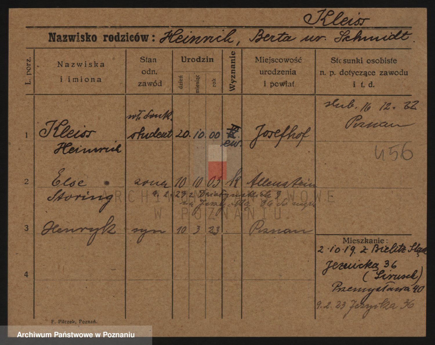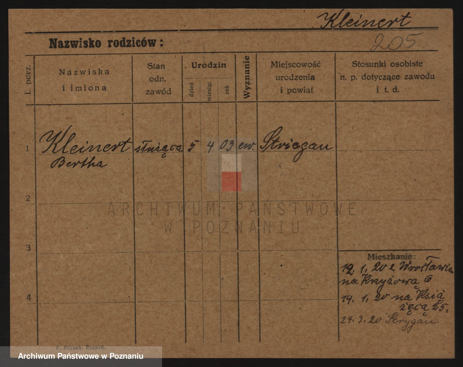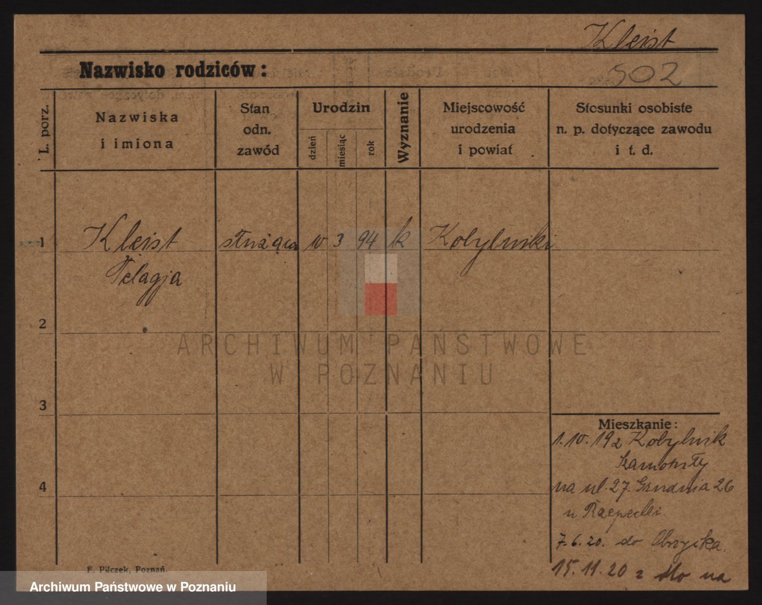 Kleineder z d. Wieczorek, Franciszka