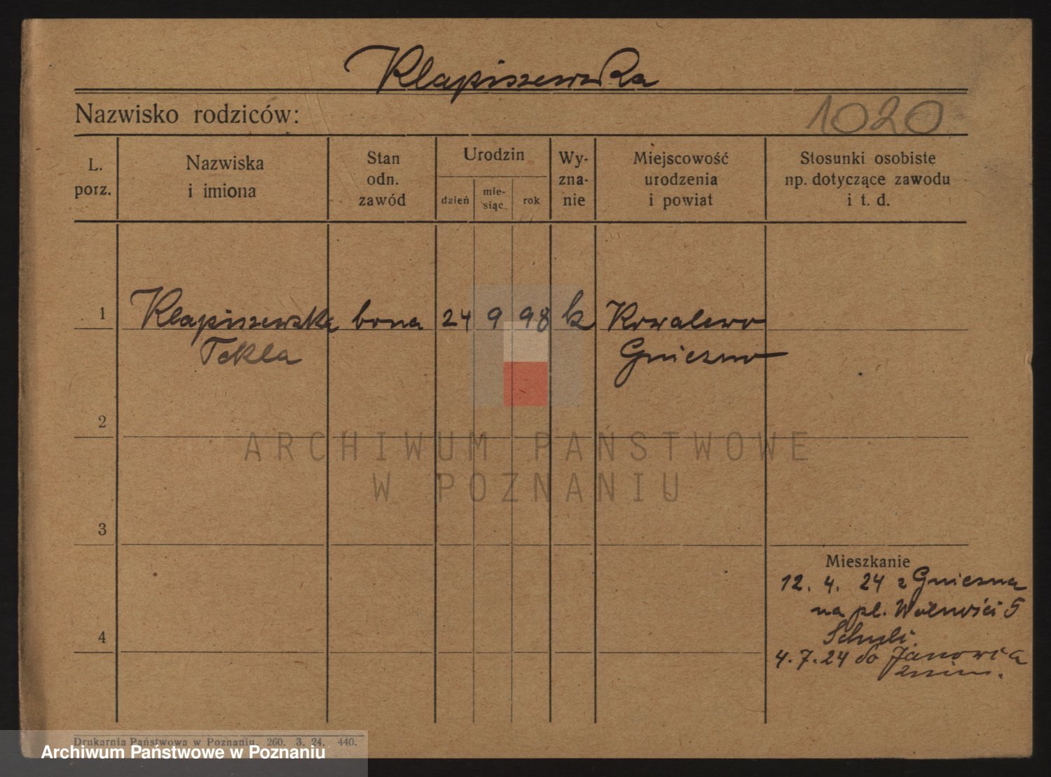 karta: 1020