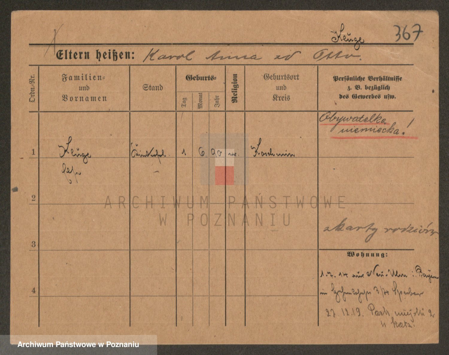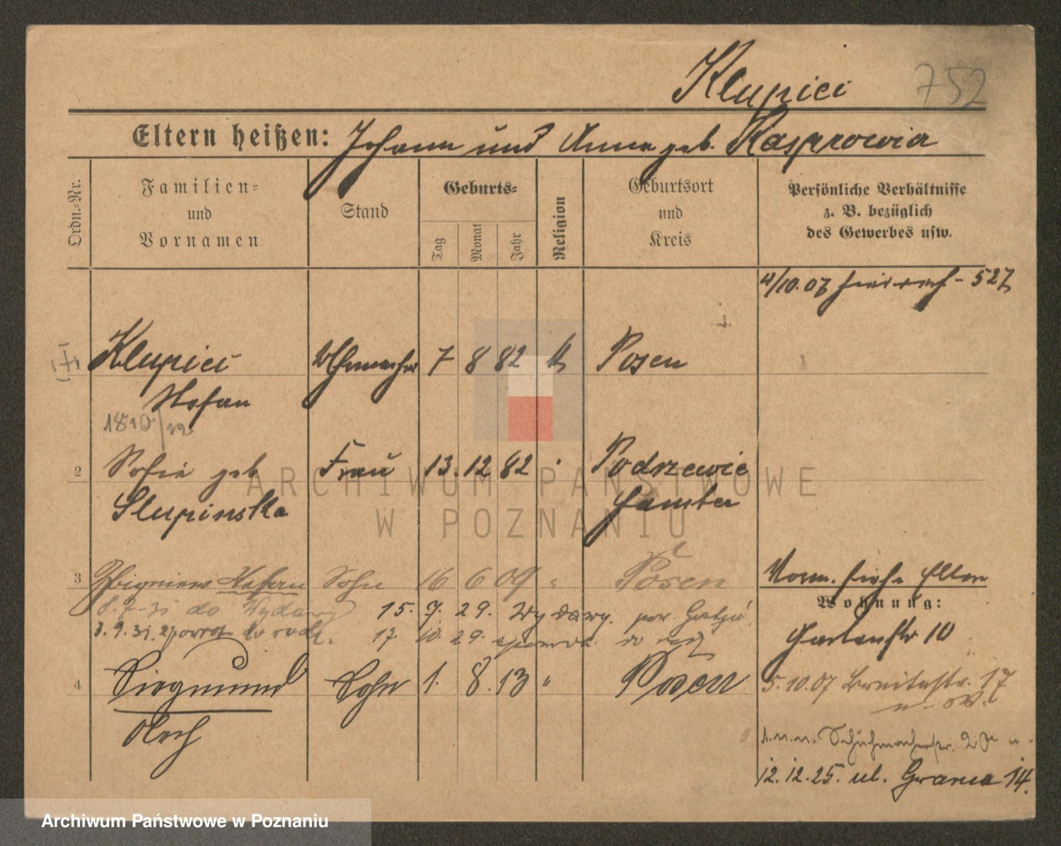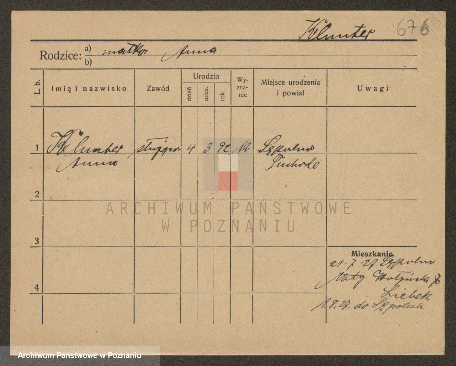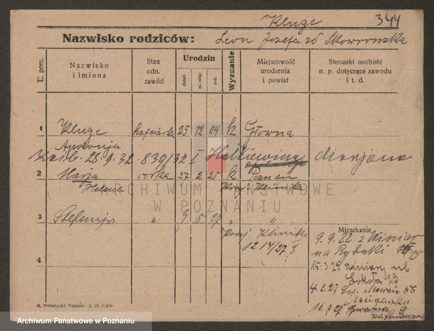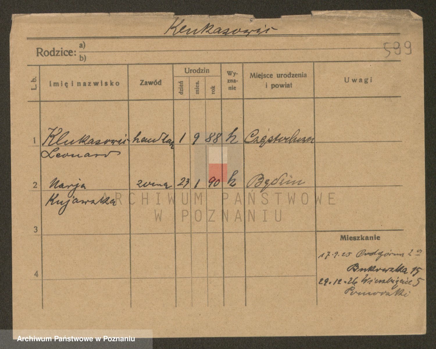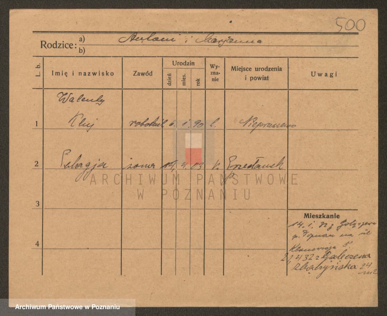 Podgląd karty osobowej dostępny jest po kliknięciu na nazwisko lub ikonkę karty. Można dokonywać powiększenia (ikony na górze) lub przechodzić między kolejnymi skanami (strzałki po bokach).