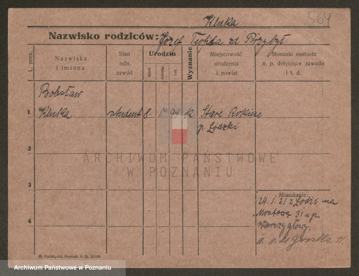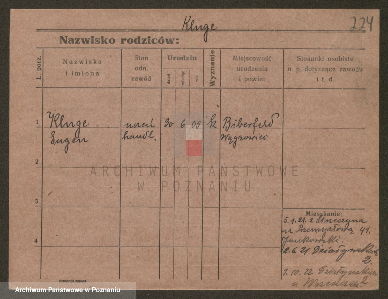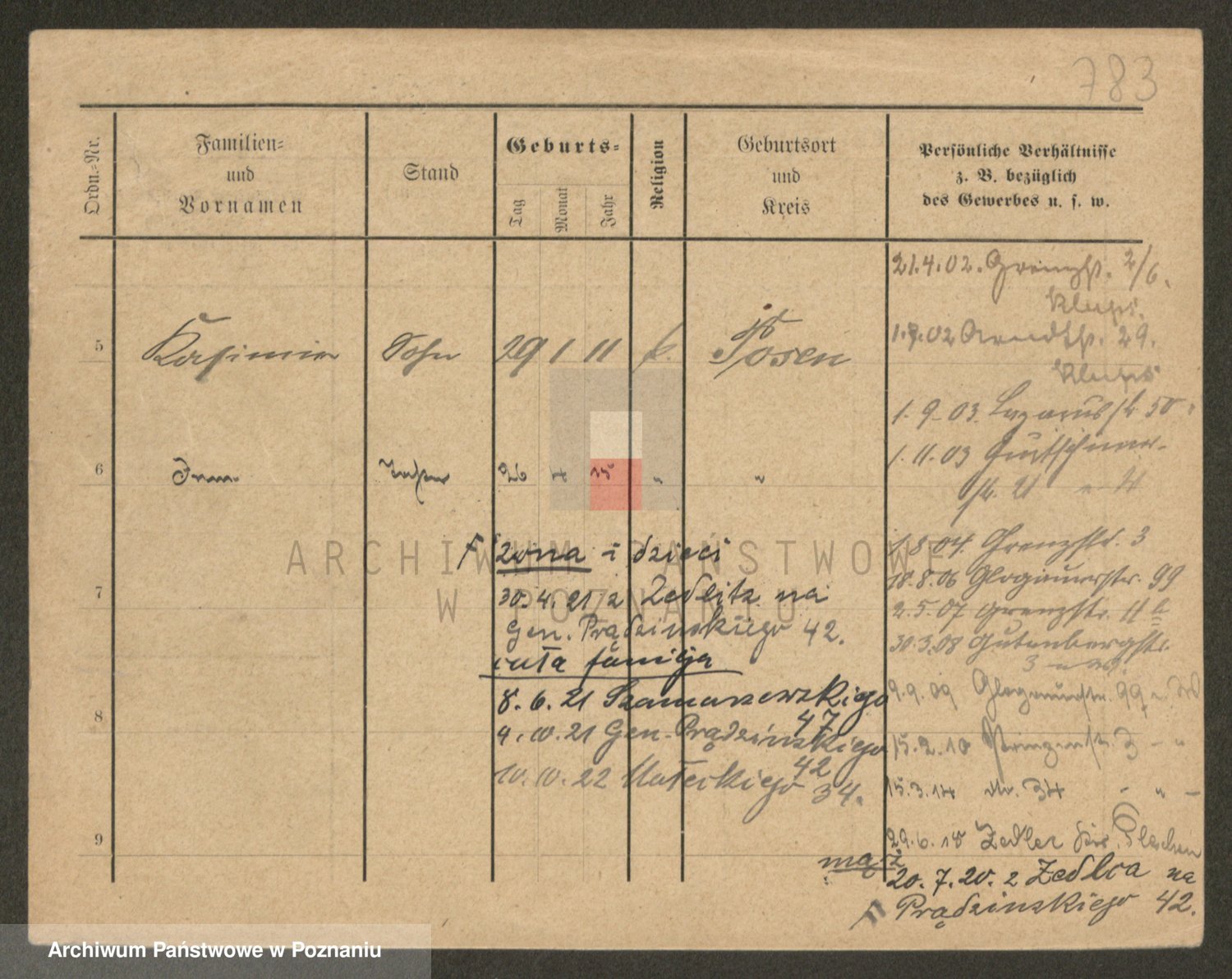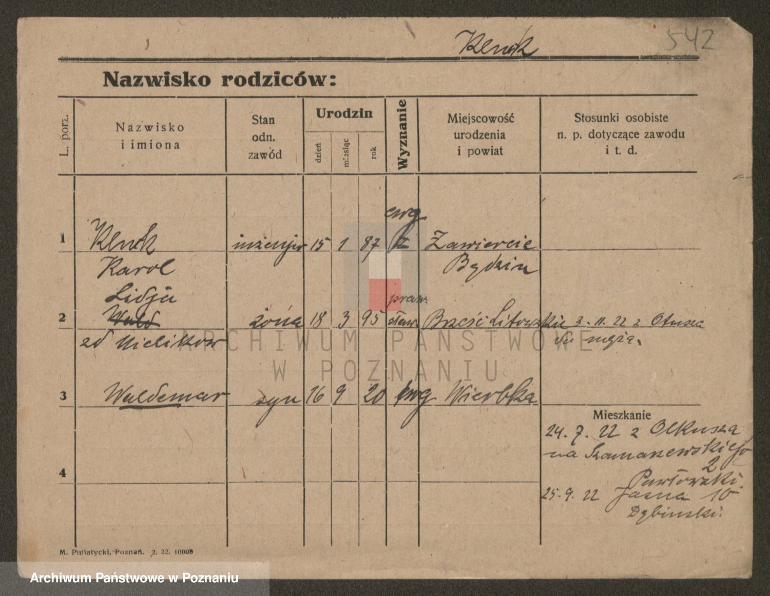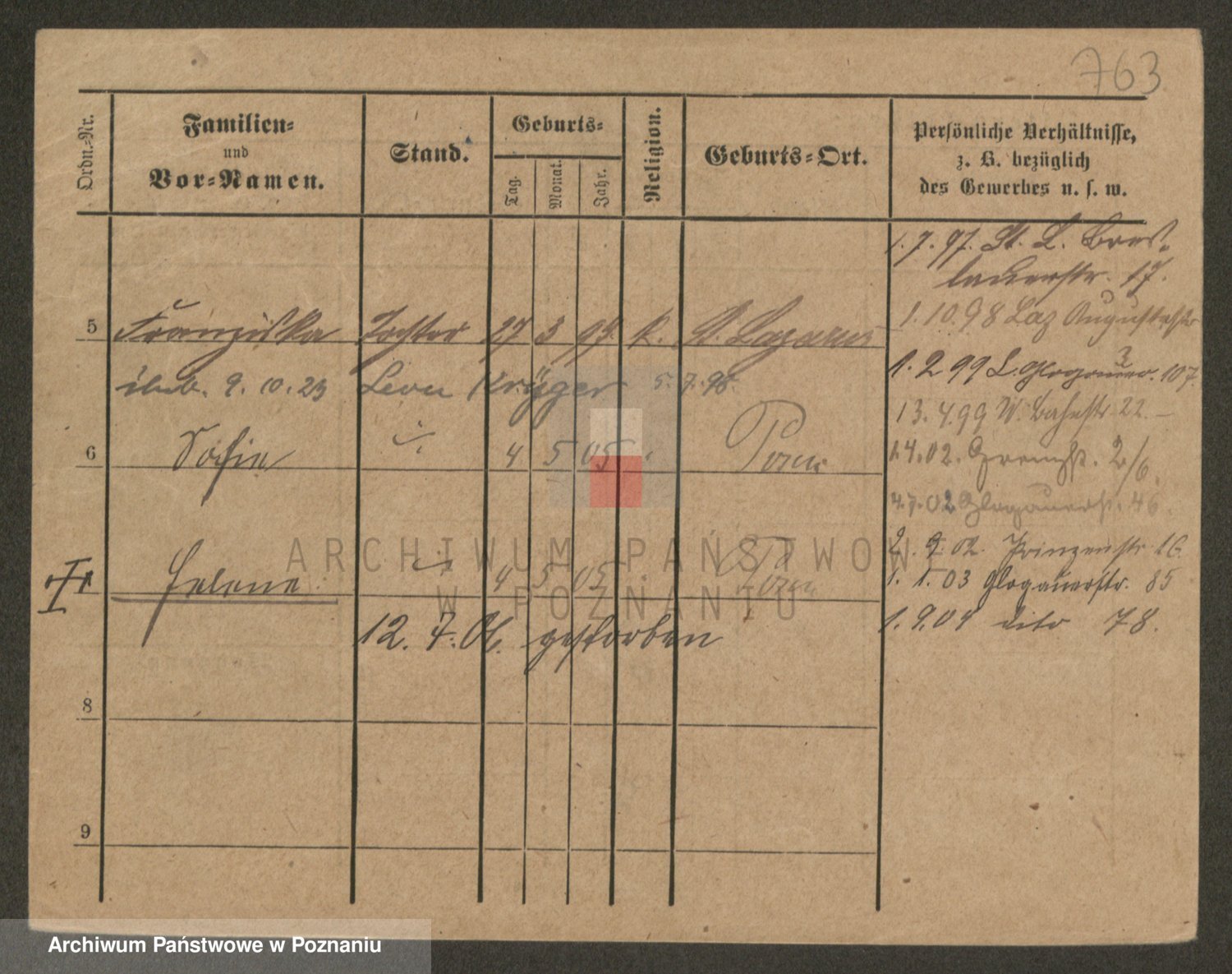 Podgląd karty osobowej dostępny jest po kliknięciu na nazwisko lub ikonkę karty. Można dokonywać powiększenia (ikony na górze) lub przechodzić między kolejnymi skanami (strzałki po bokach).