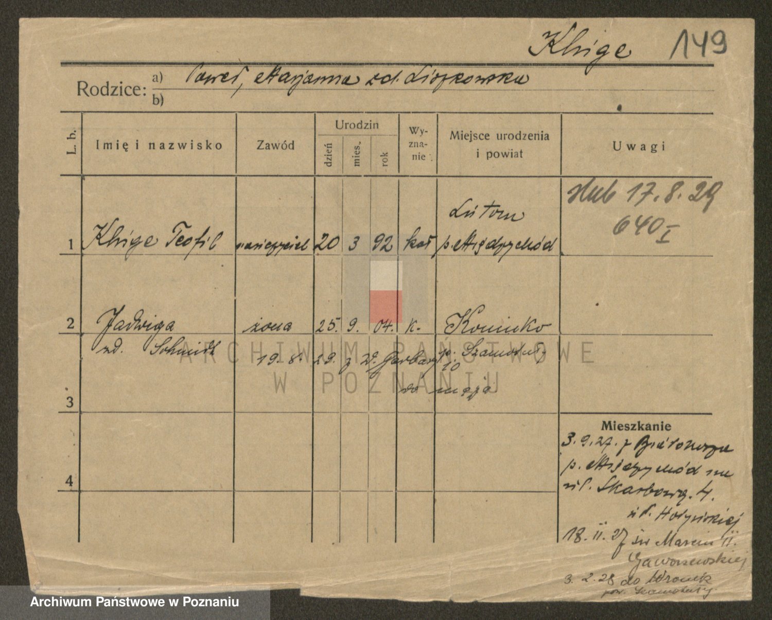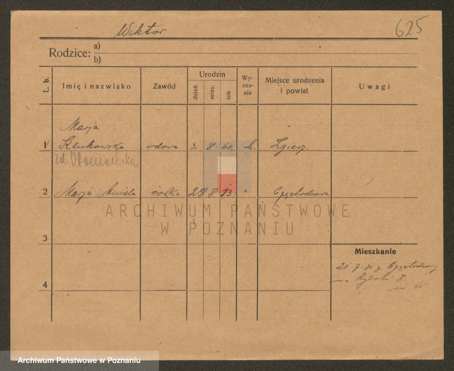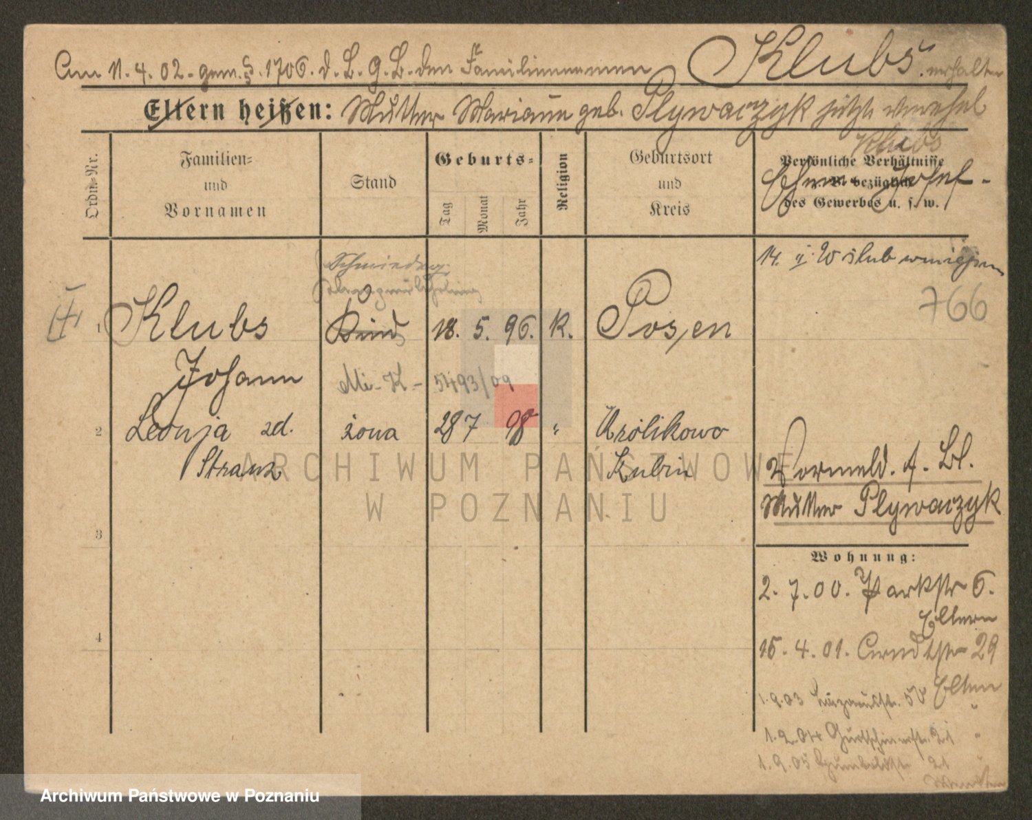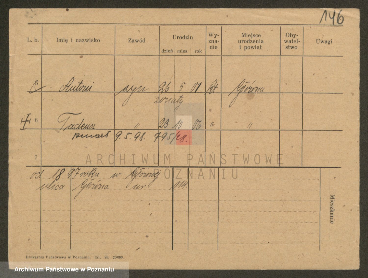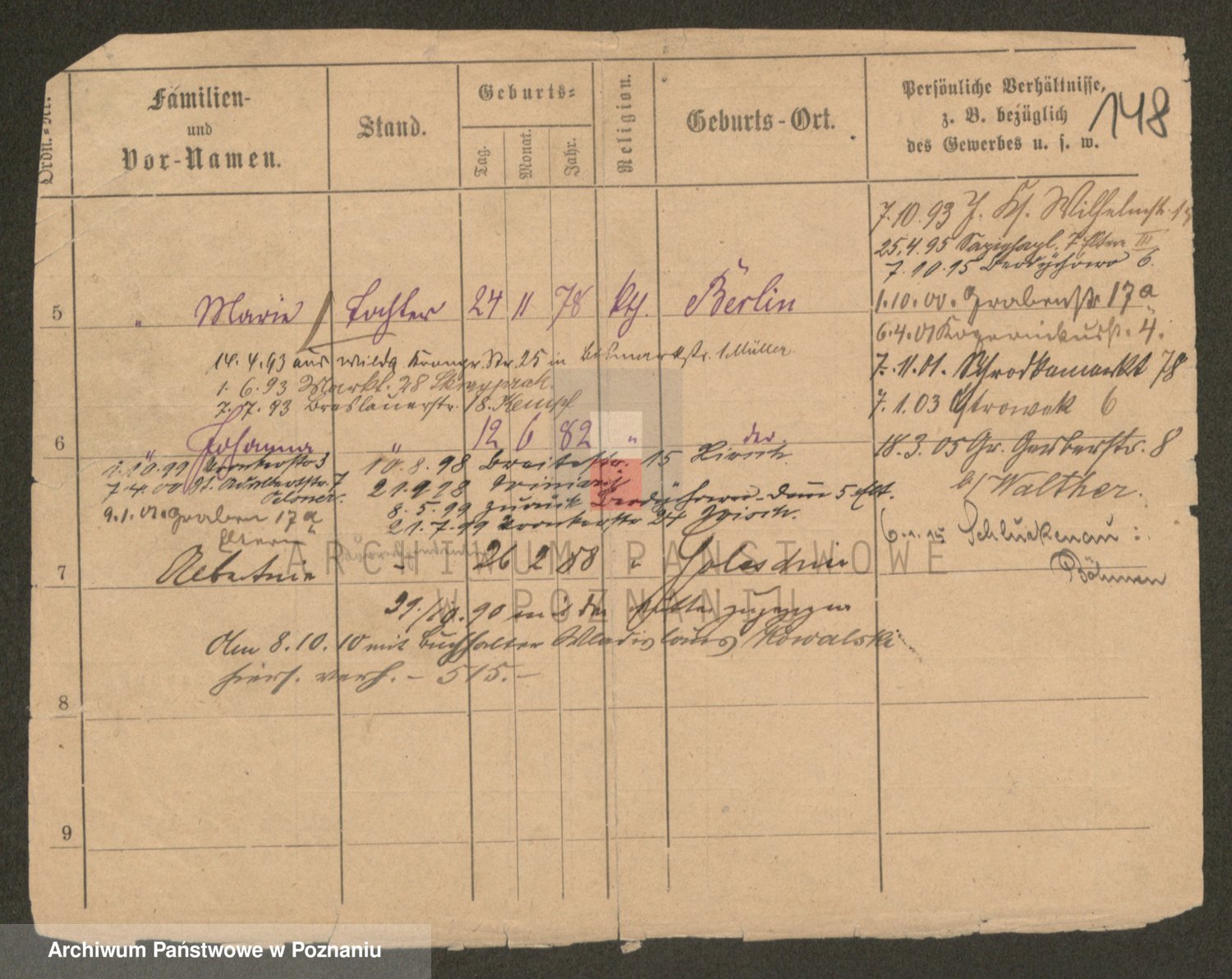 Podgląd karty osobowej dostępny jest po kliknięciu na nazwisko lub ikonkę karty. Można dokonywać powiększenia (ikony na górze) lub przechodzić między kolejnymi skanami (strzałki po bokach).