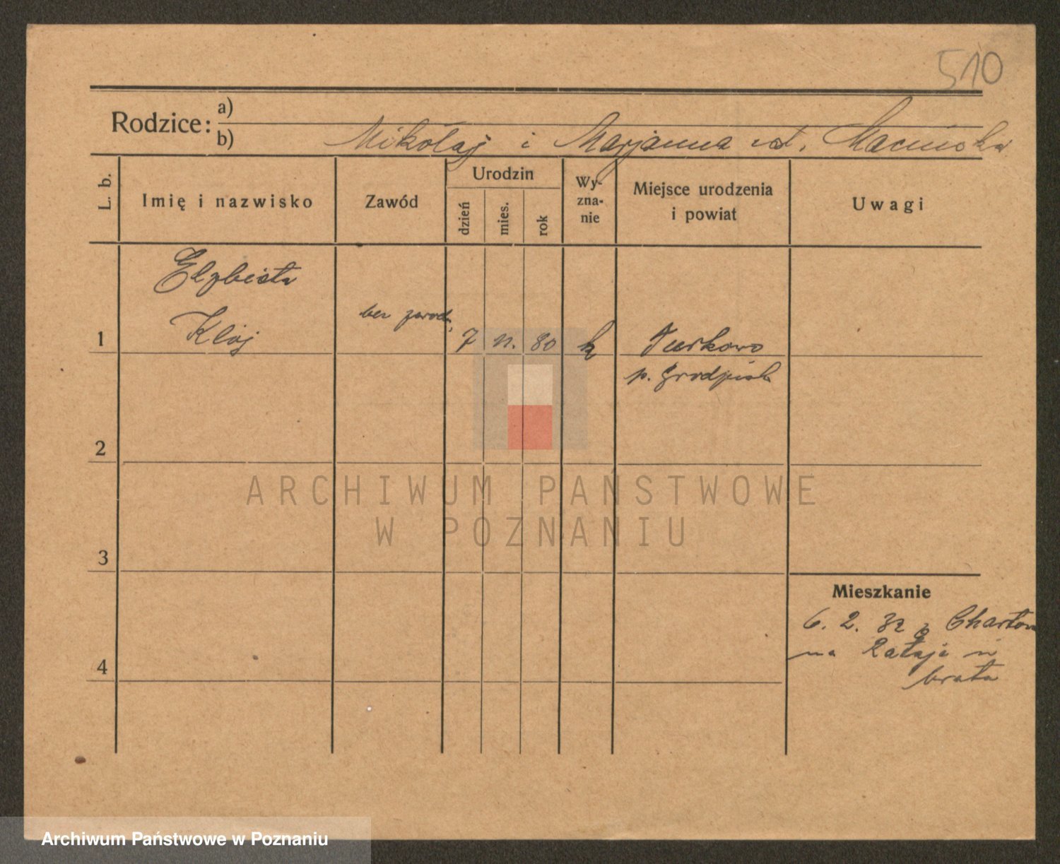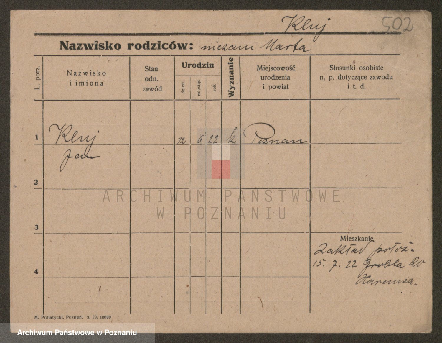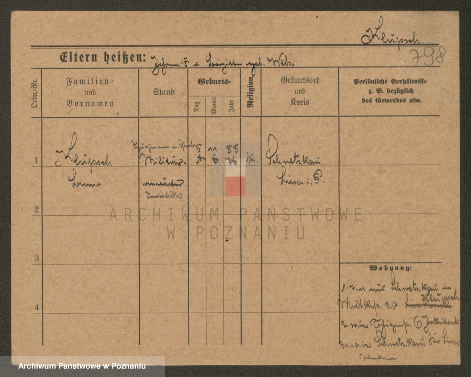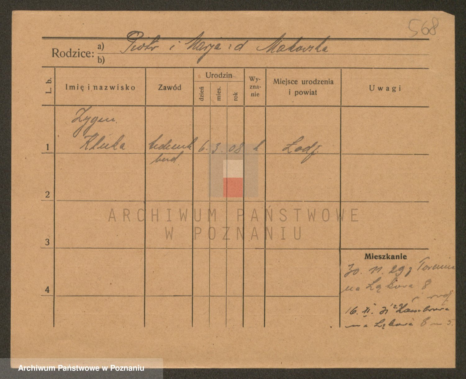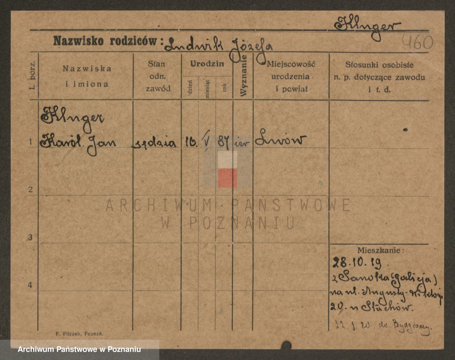 Podgląd karty osobowej dostępny jest po kliknięciu na nazwisko lub ikonkę karty. Można dokonywać powiększenia (ikony na górze) lub przechodzić między kolejnymi skanami (strzałki po bokach).