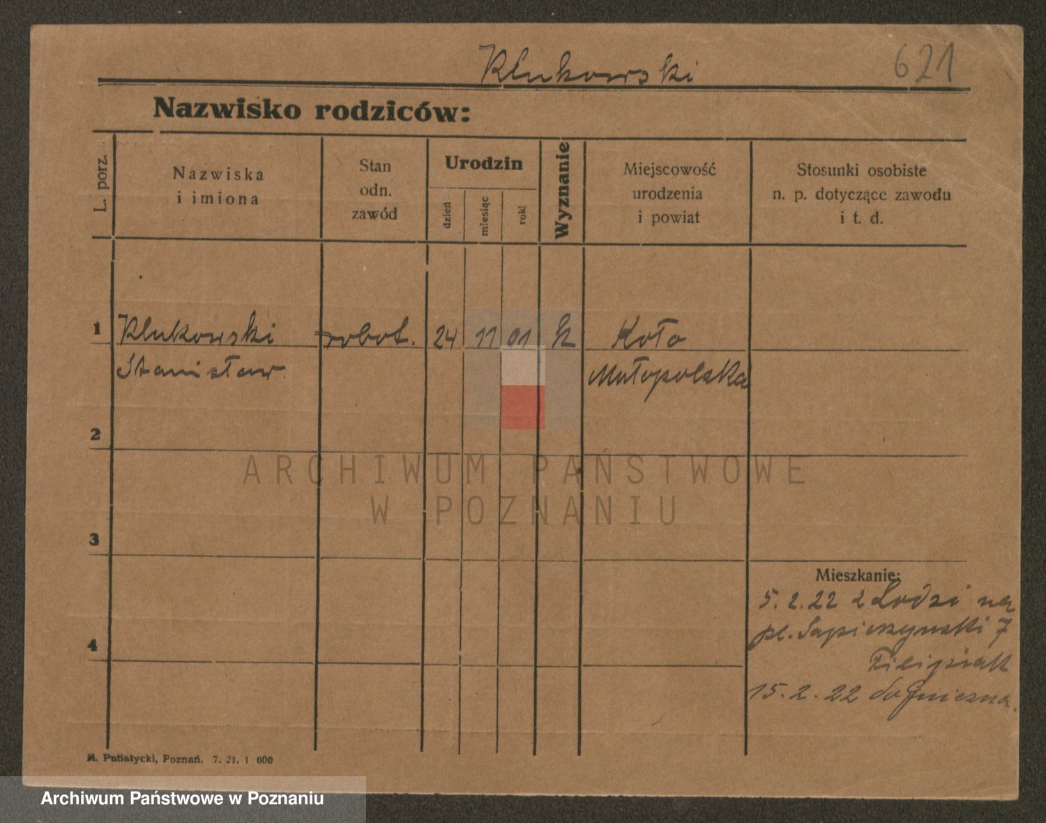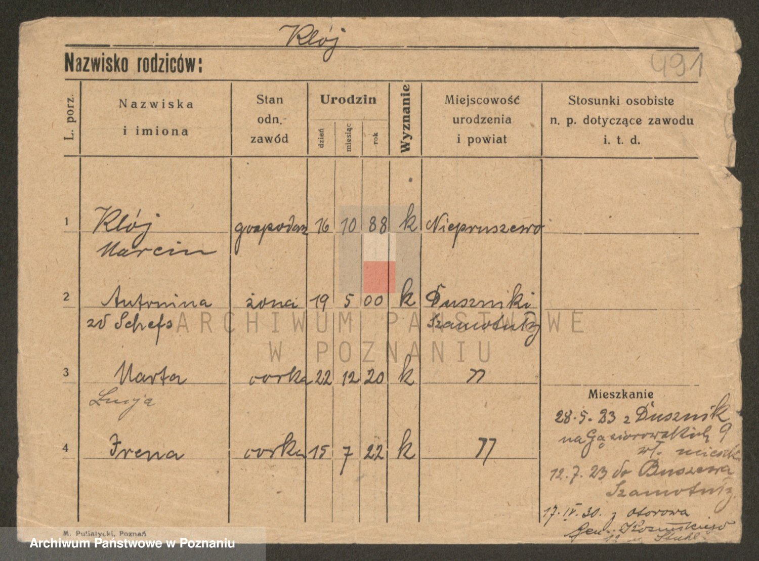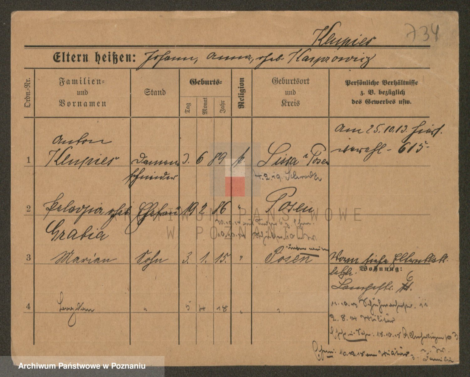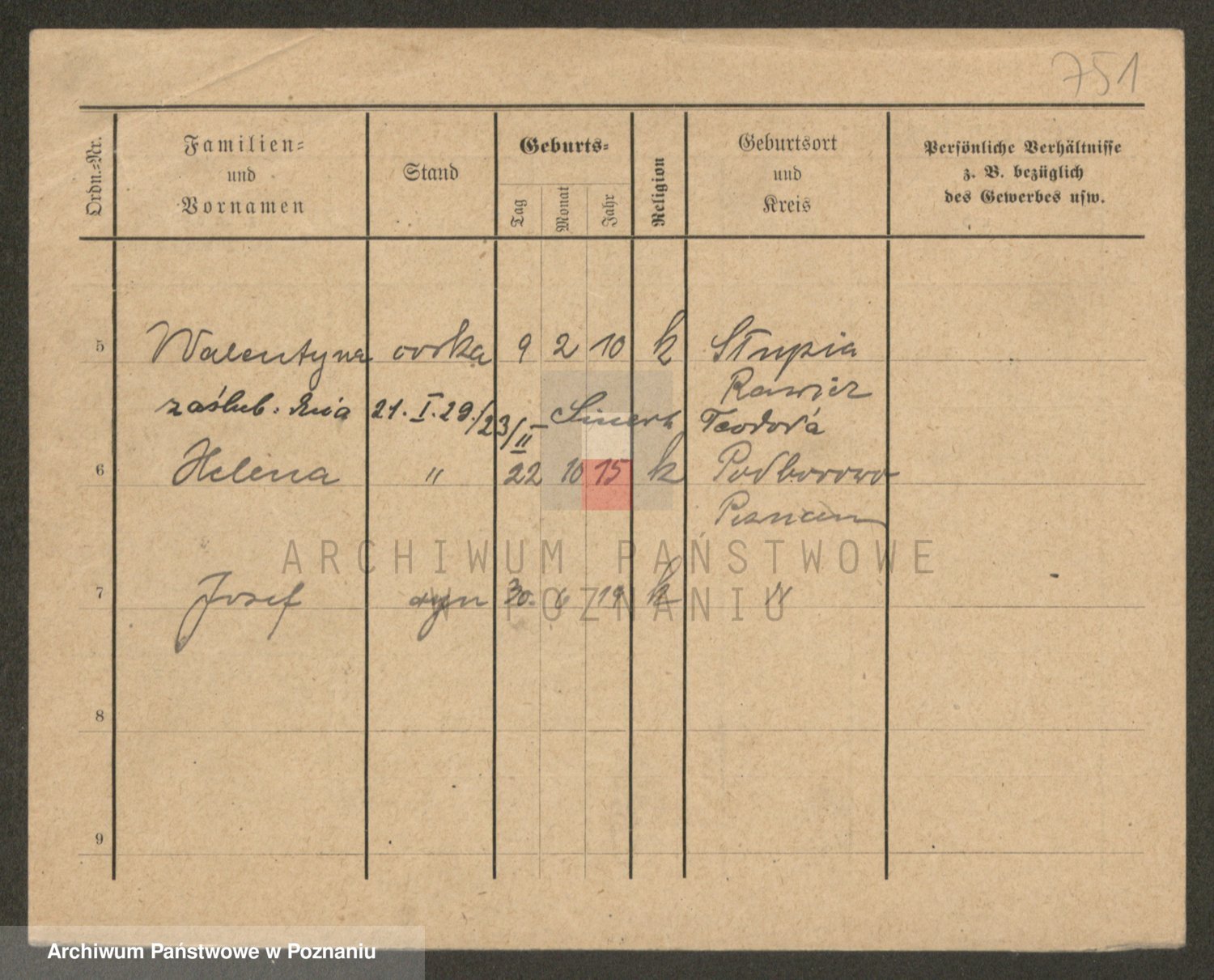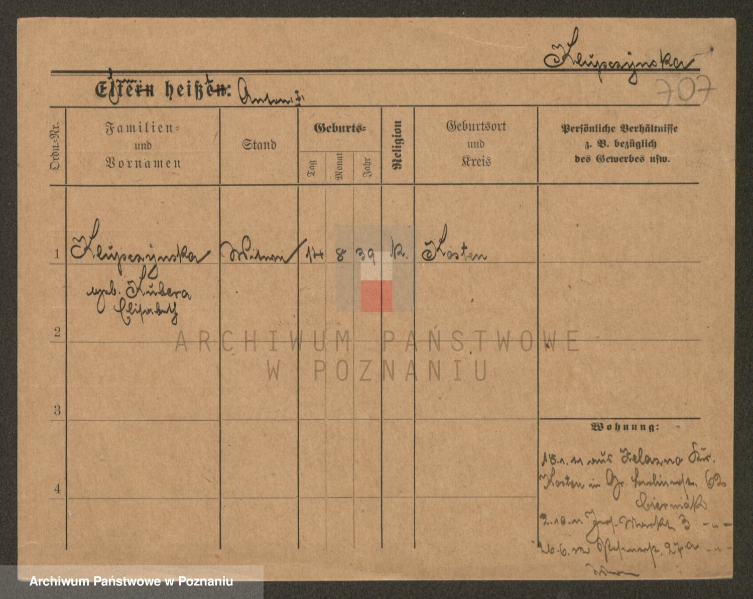 Podgląd karty osobowej dostępny jest po kliknięciu na nazwisko lub ikonkę karty. Można dokonywać powiększenia (ikony na górze) lub przechodzić między kolejnymi skanami (strzałki po bokach).