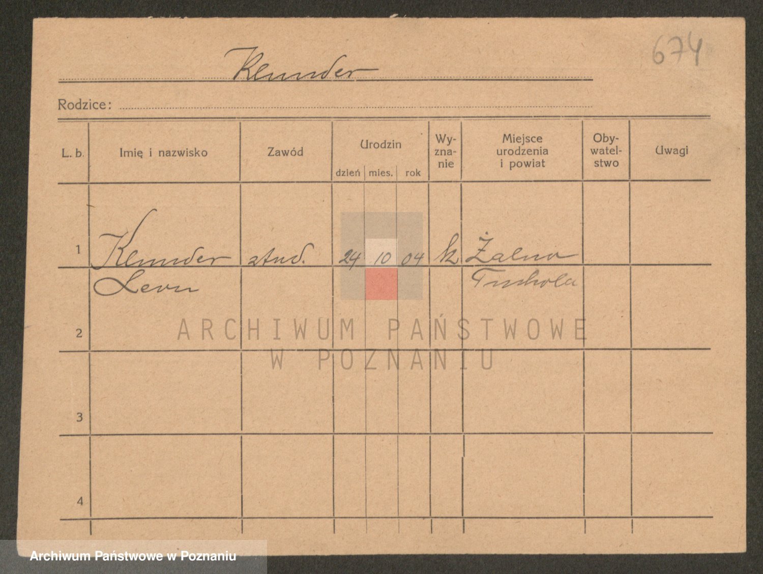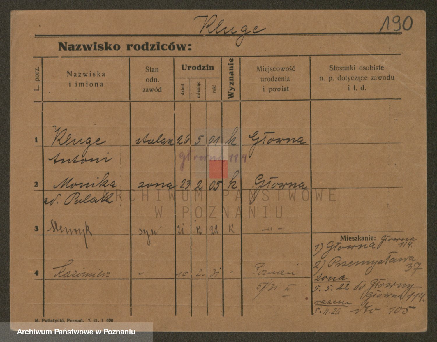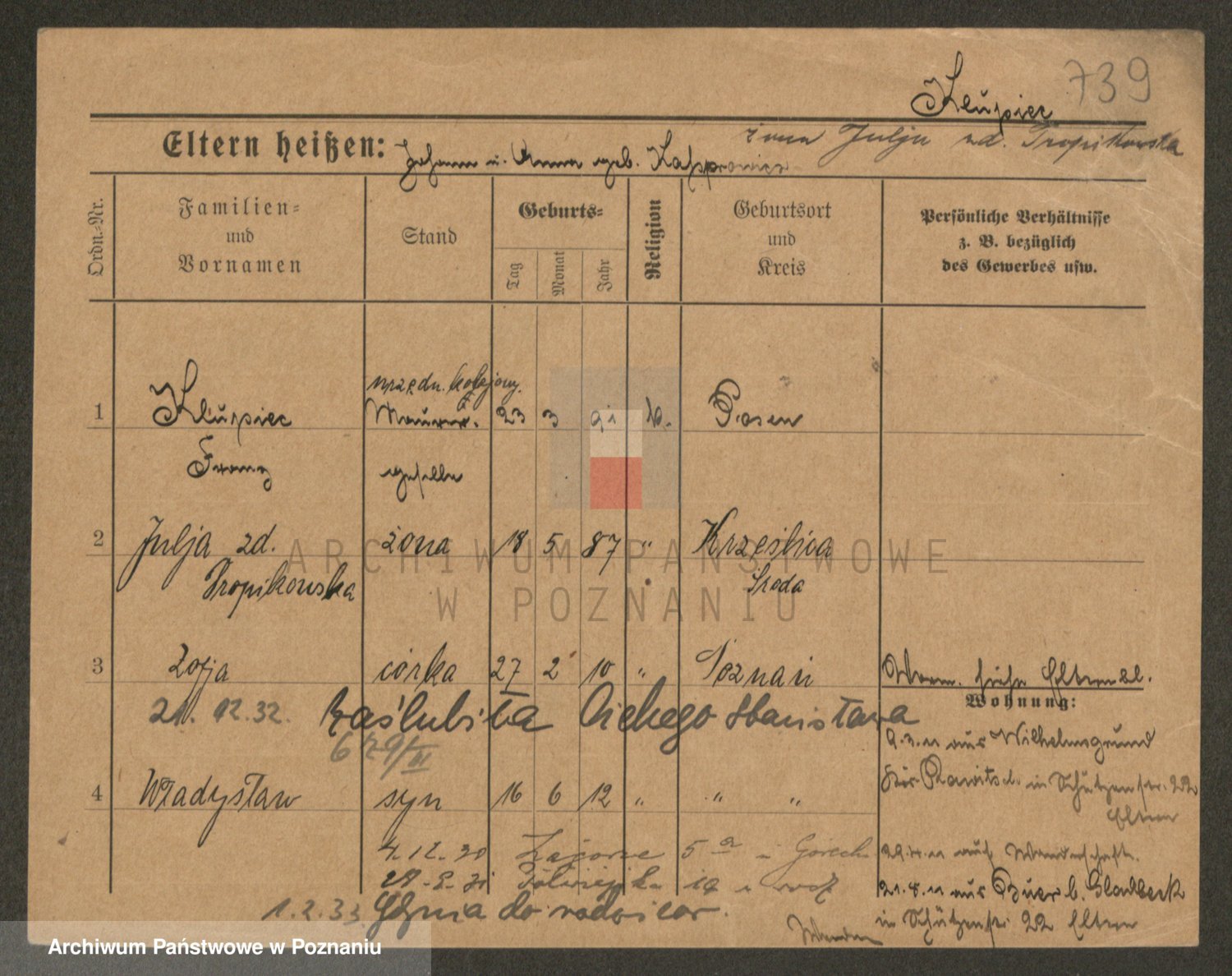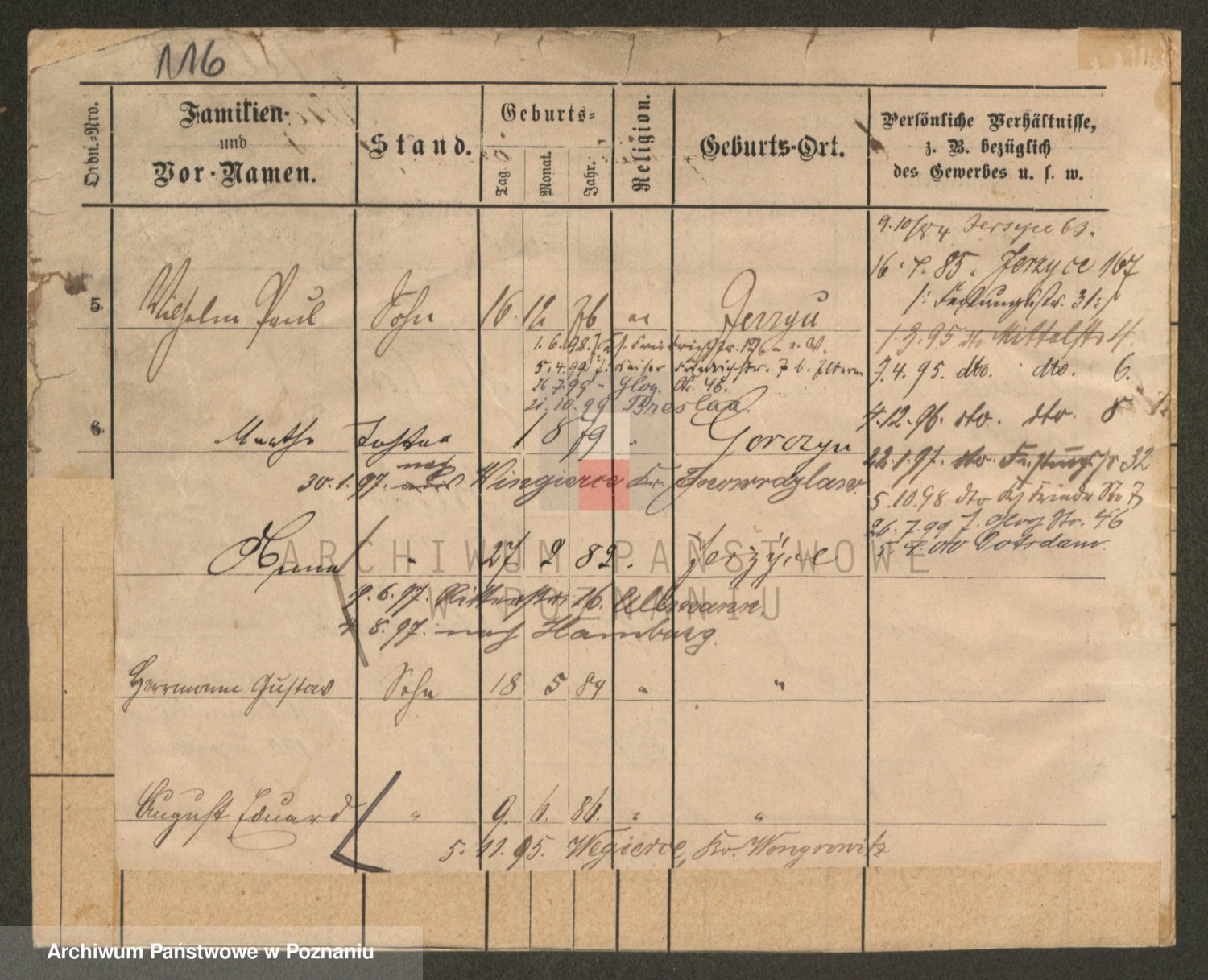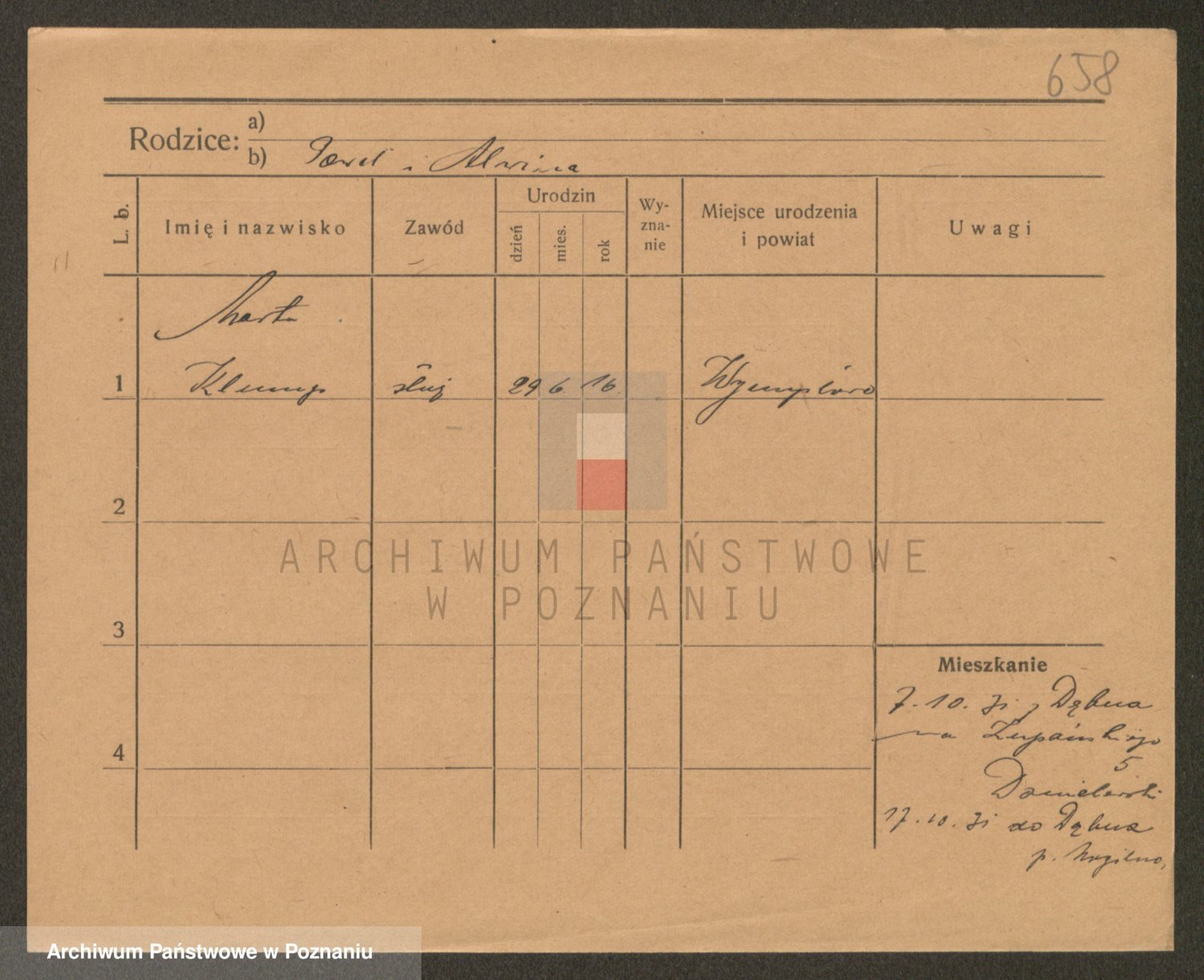 Podgląd karty osobowej dostępny jest po kliknięciu na nazwisko lub ikonkę karty. Można dokonywać powiększenia (ikony na górze) lub przechodzić między kolejnymi skanami (strzałki po bokach).