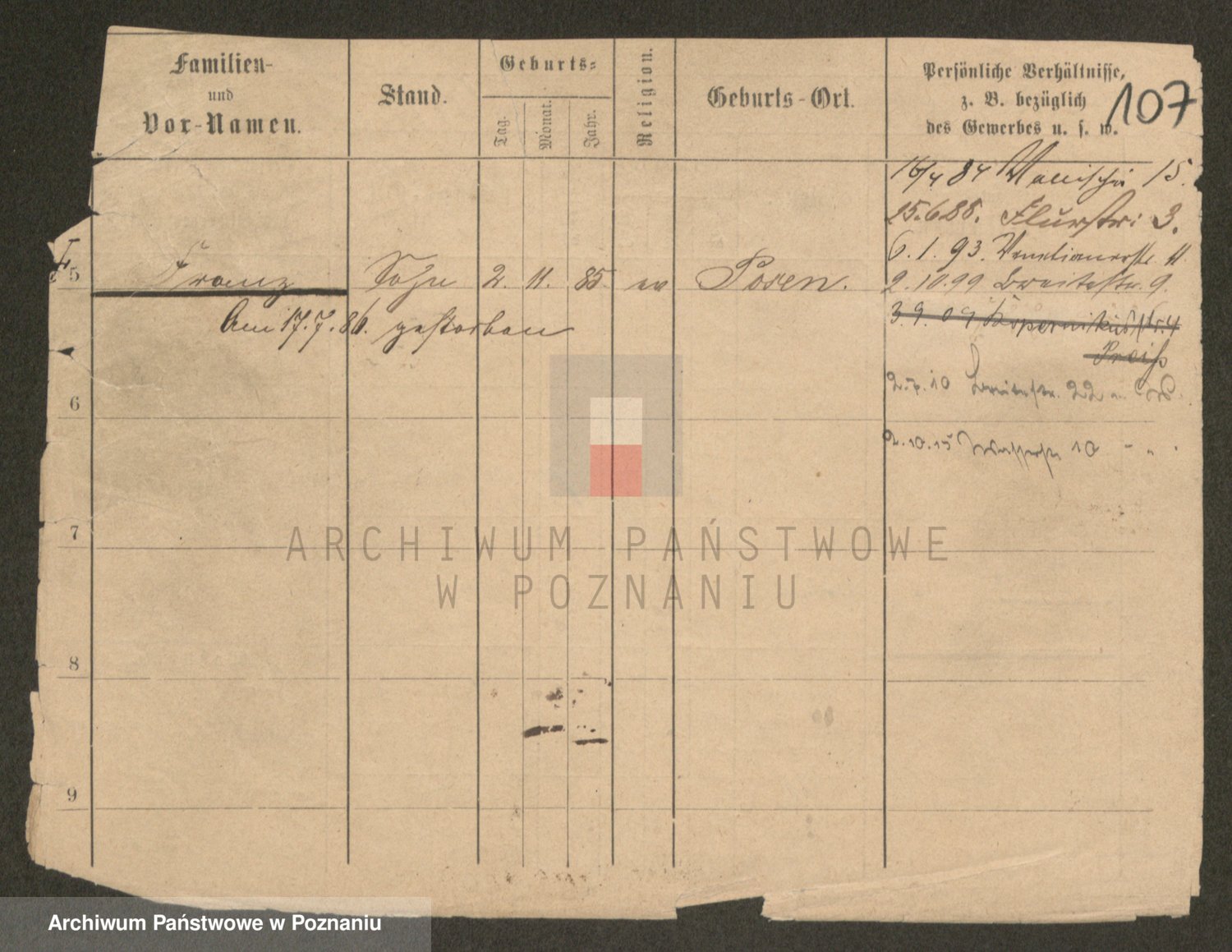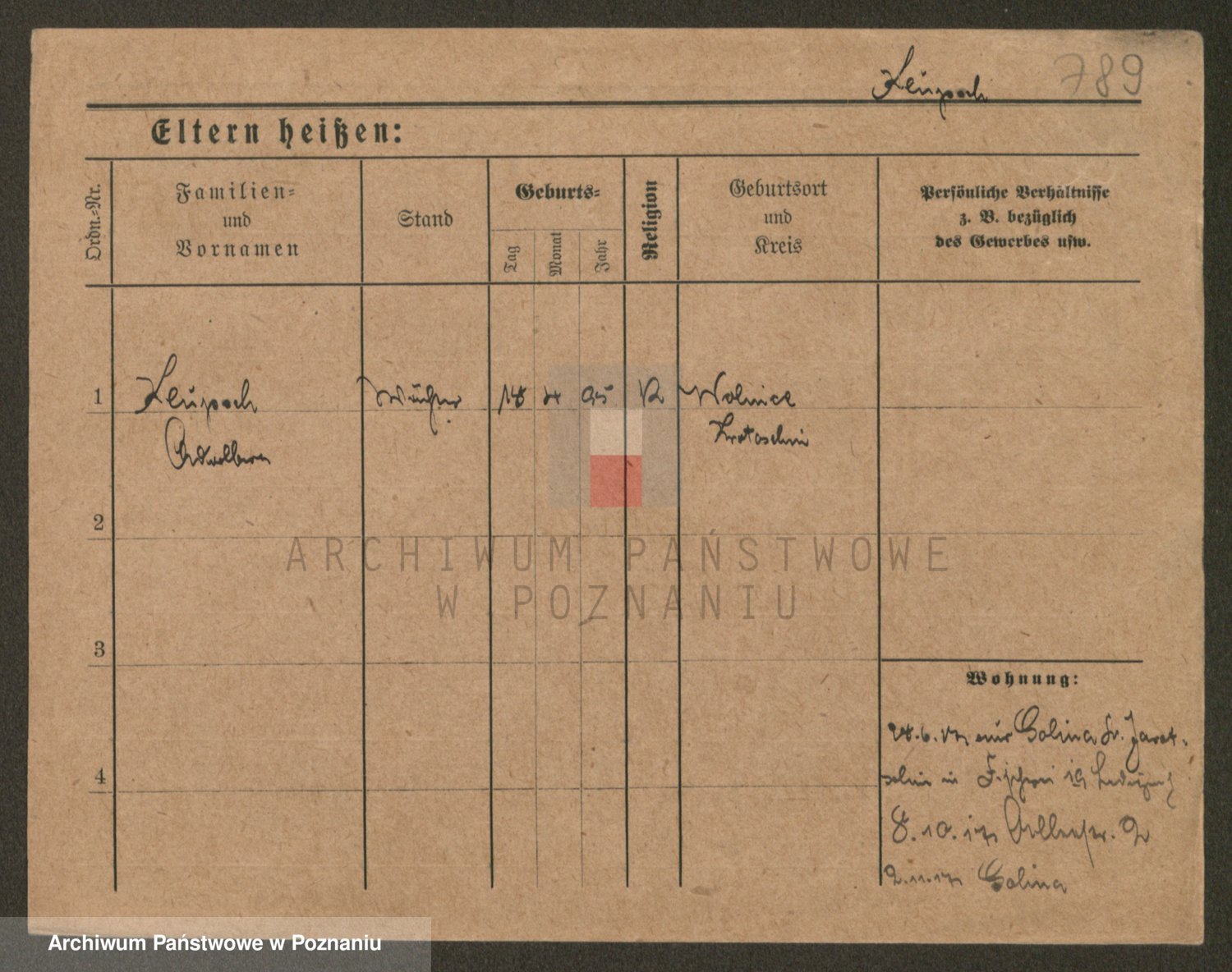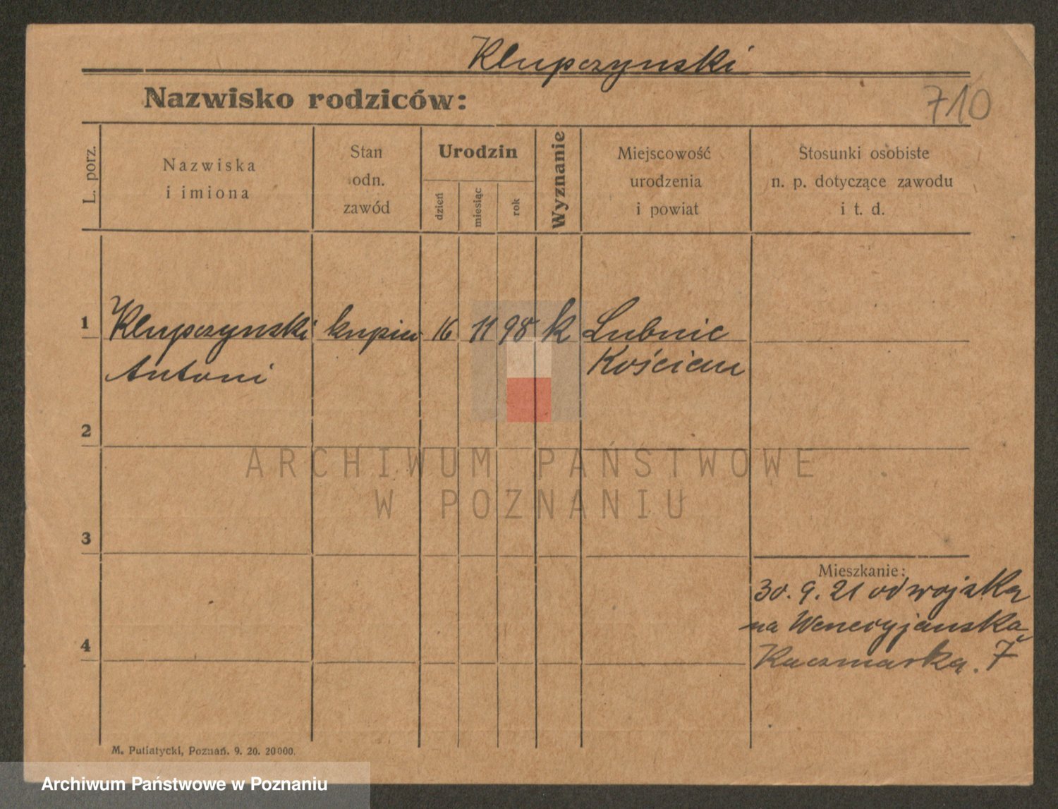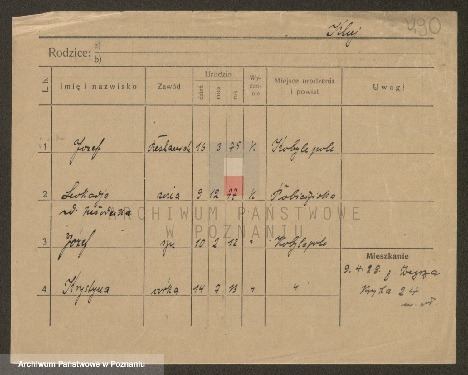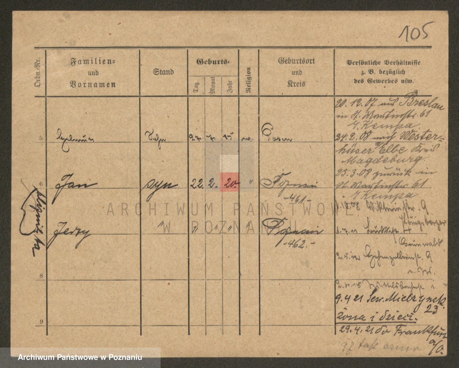 Podgląd karty osobowej dostępny jest po kliknięciu na nazwisko lub ikonkę karty. Można dokonywać powiększenia (ikony na górze) lub przechodzić między kolejnymi skanami (strzałki po bokach).