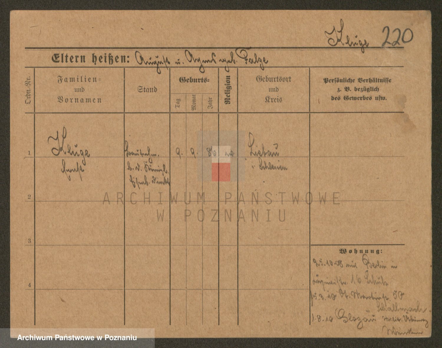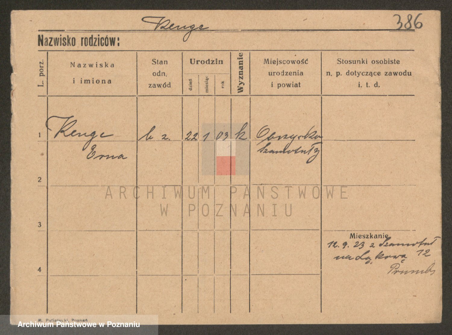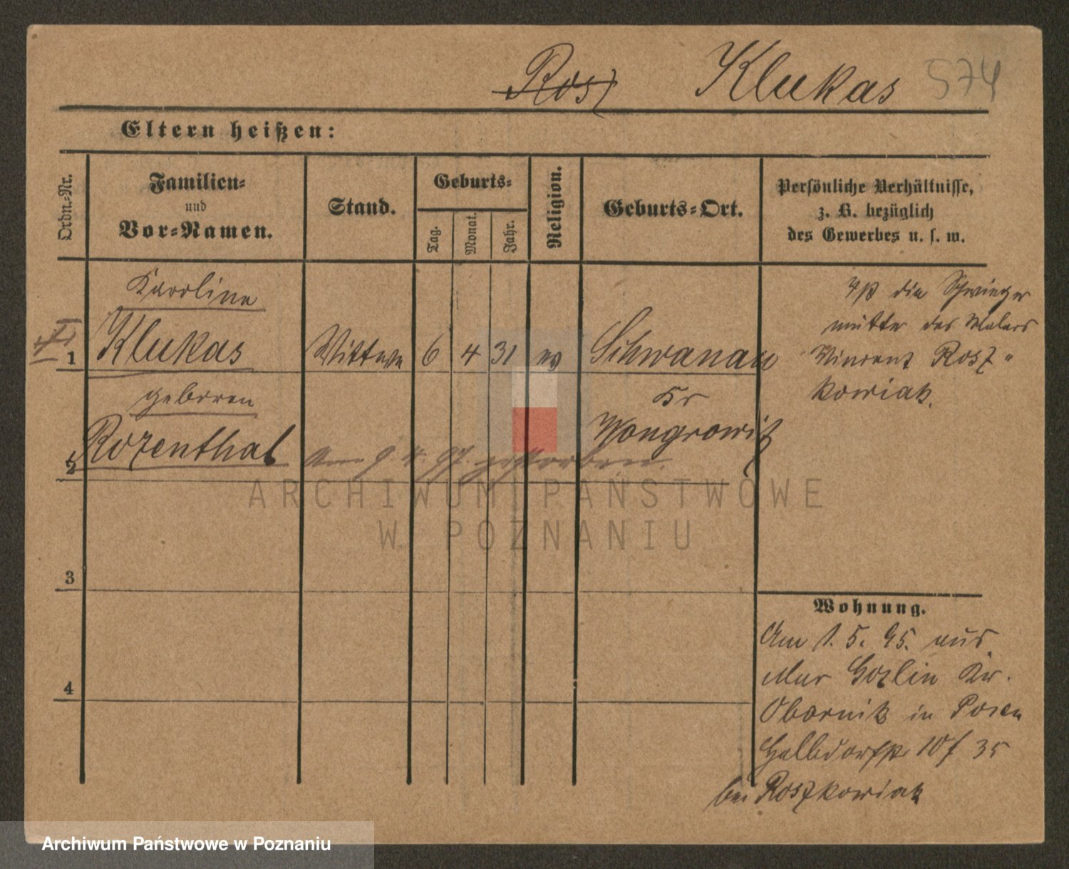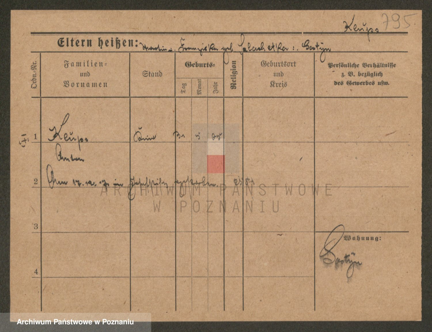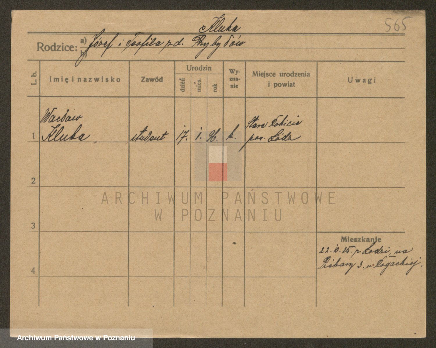 Podgląd karty osobowej dostępny jest po kliknięciu na nazwisko lub ikonkę karty. Można dokonywać powiększenia (ikony na górze) lub przechodzić między kolejnymi skanami (strzałki po bokach).