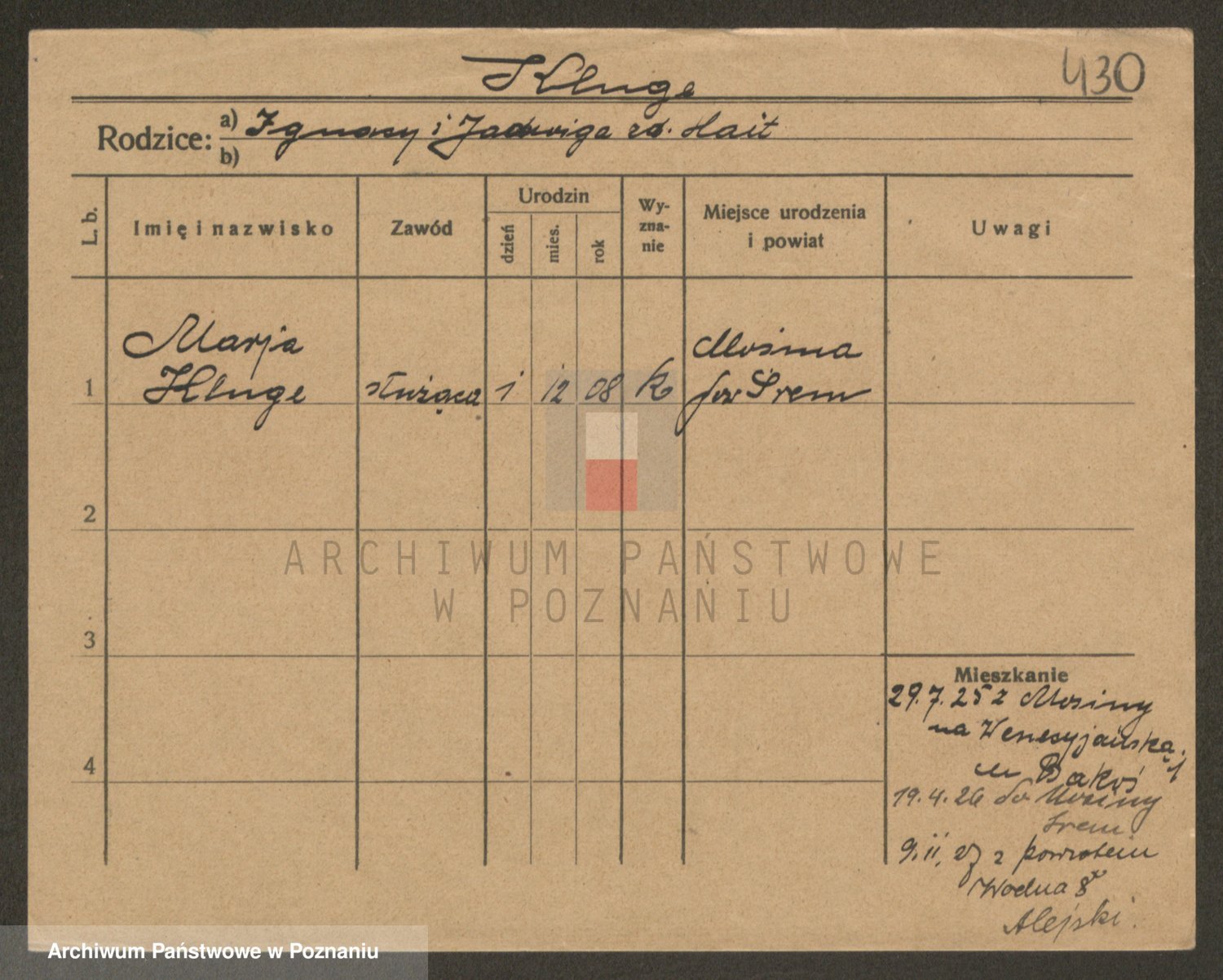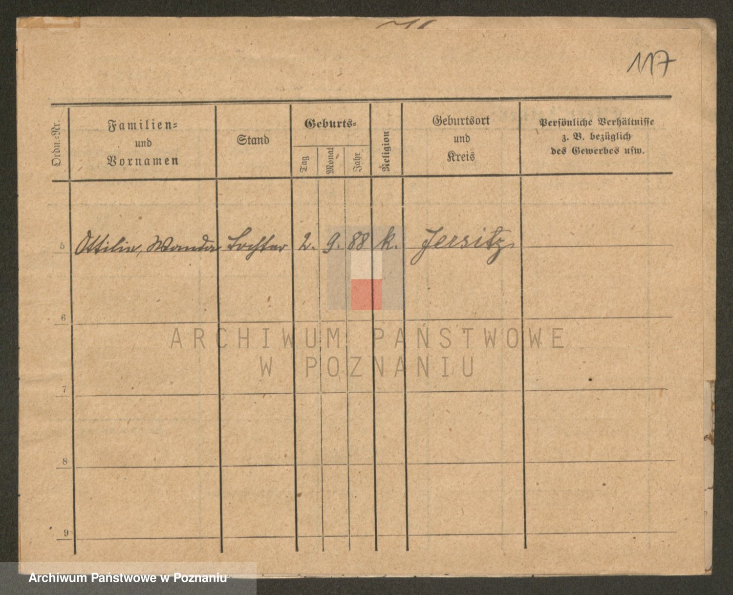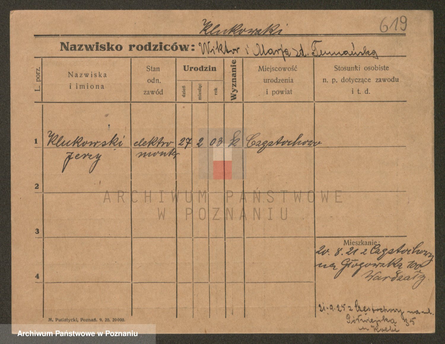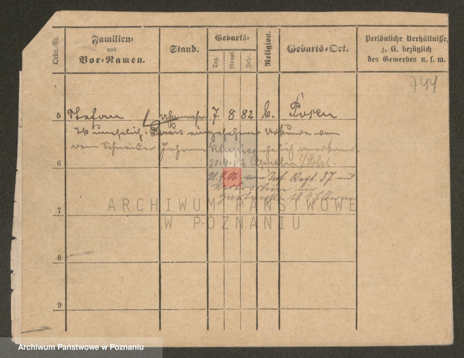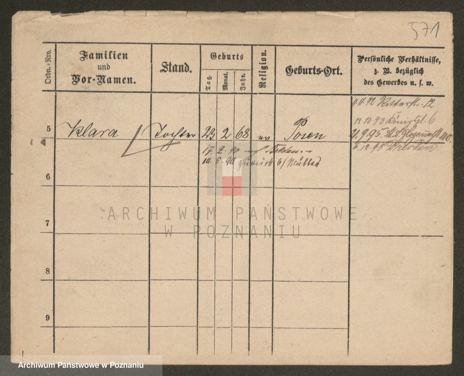 Podgląd karty osobowej dostępny jest po kliknięciu na nazwisko lub ikonkę karty. Można dokonywać powiększenia (ikony na górze) lub przechodzić między kolejnymi skanami (strzałki po bokach).