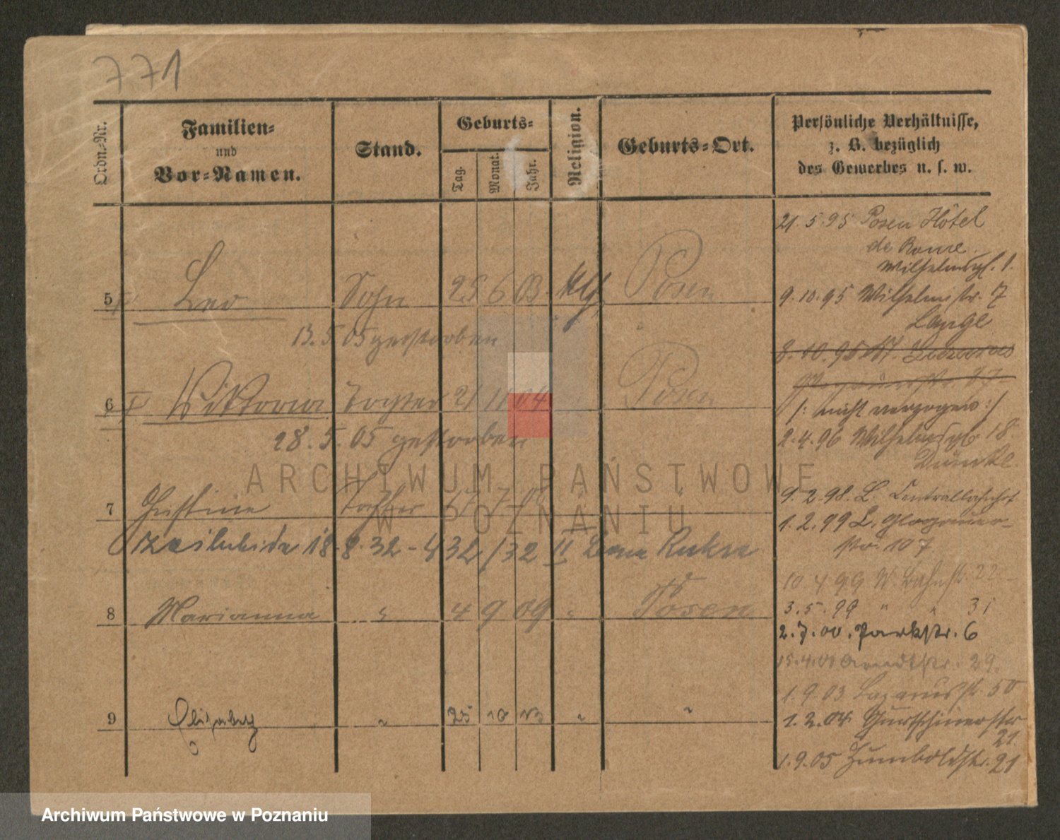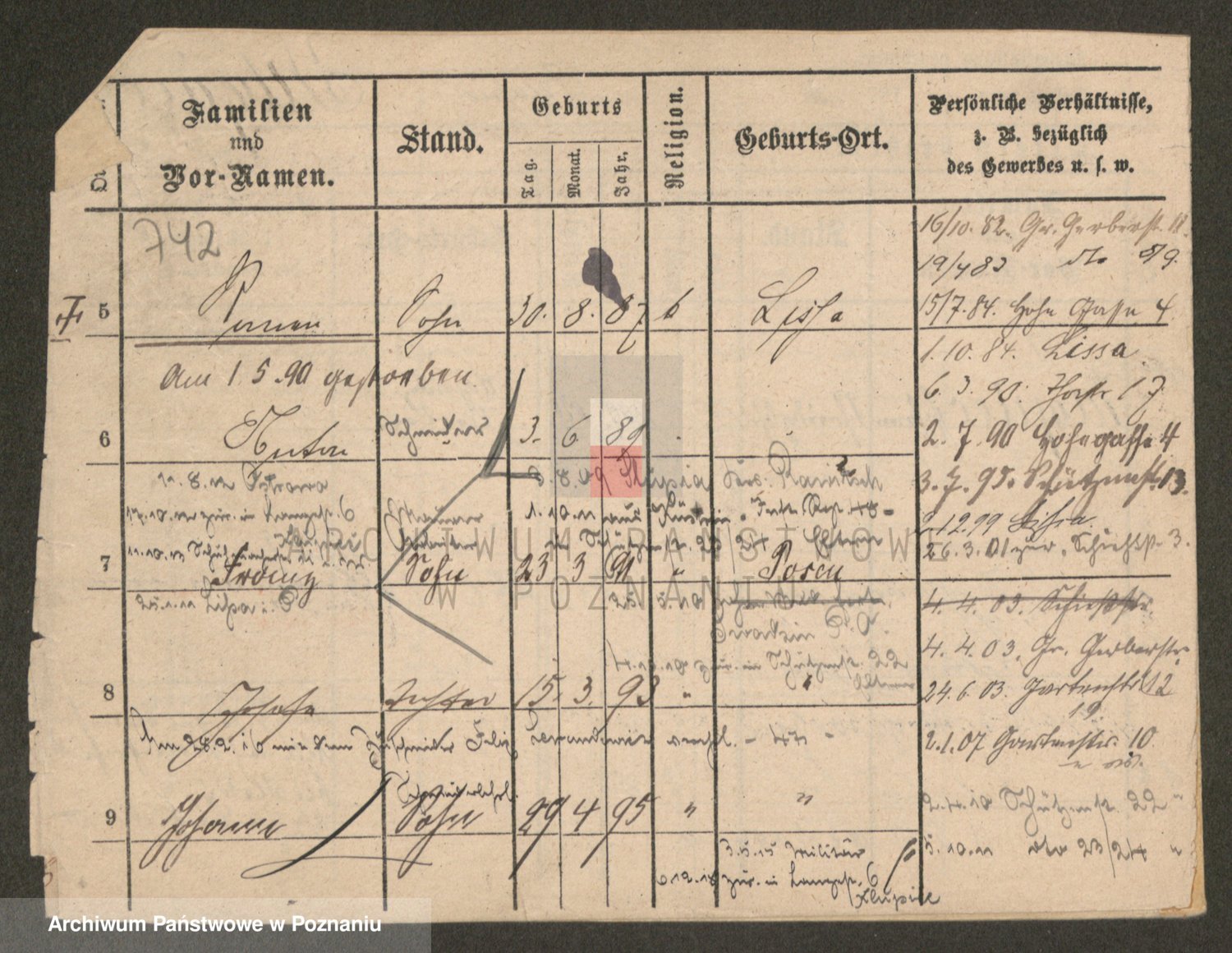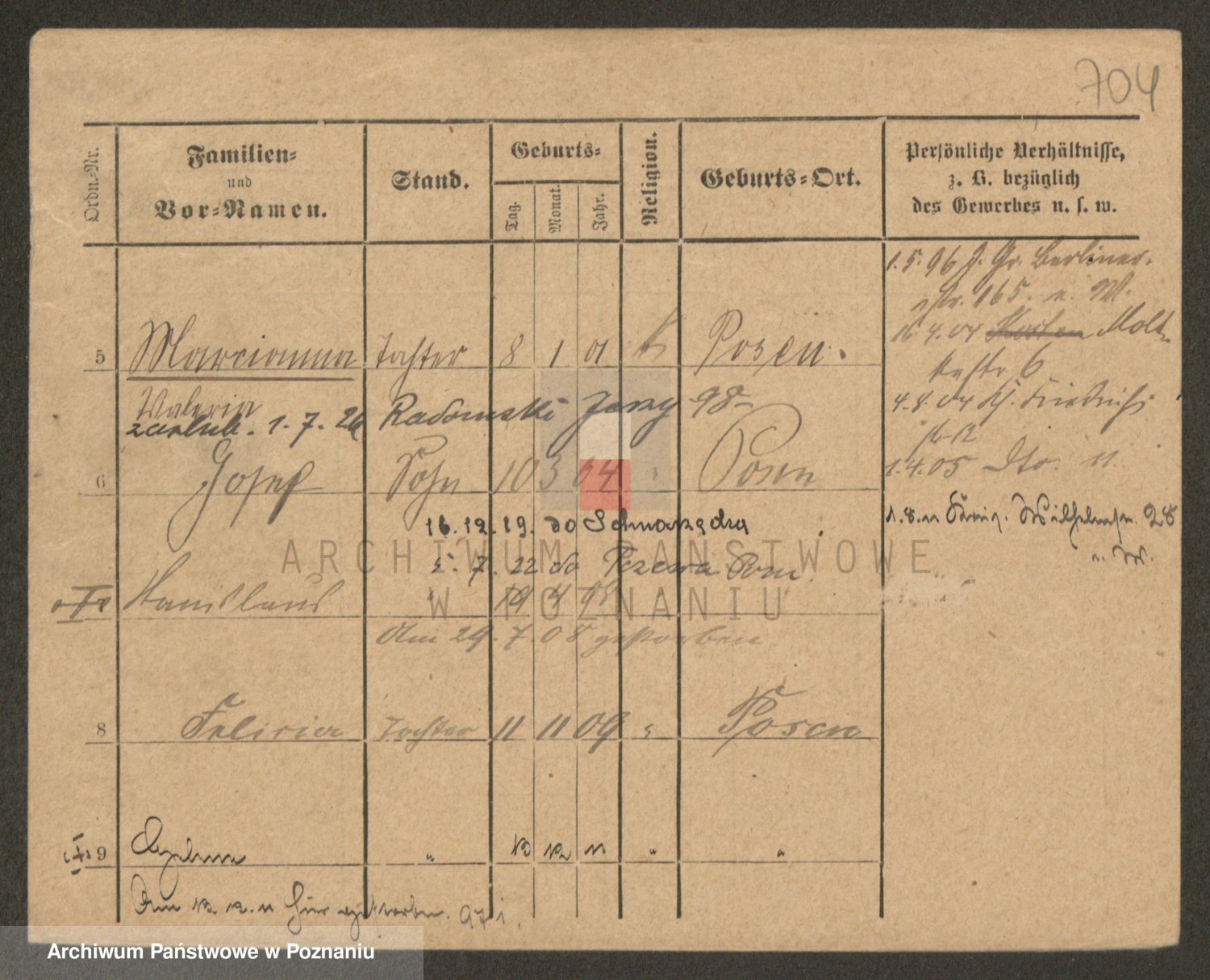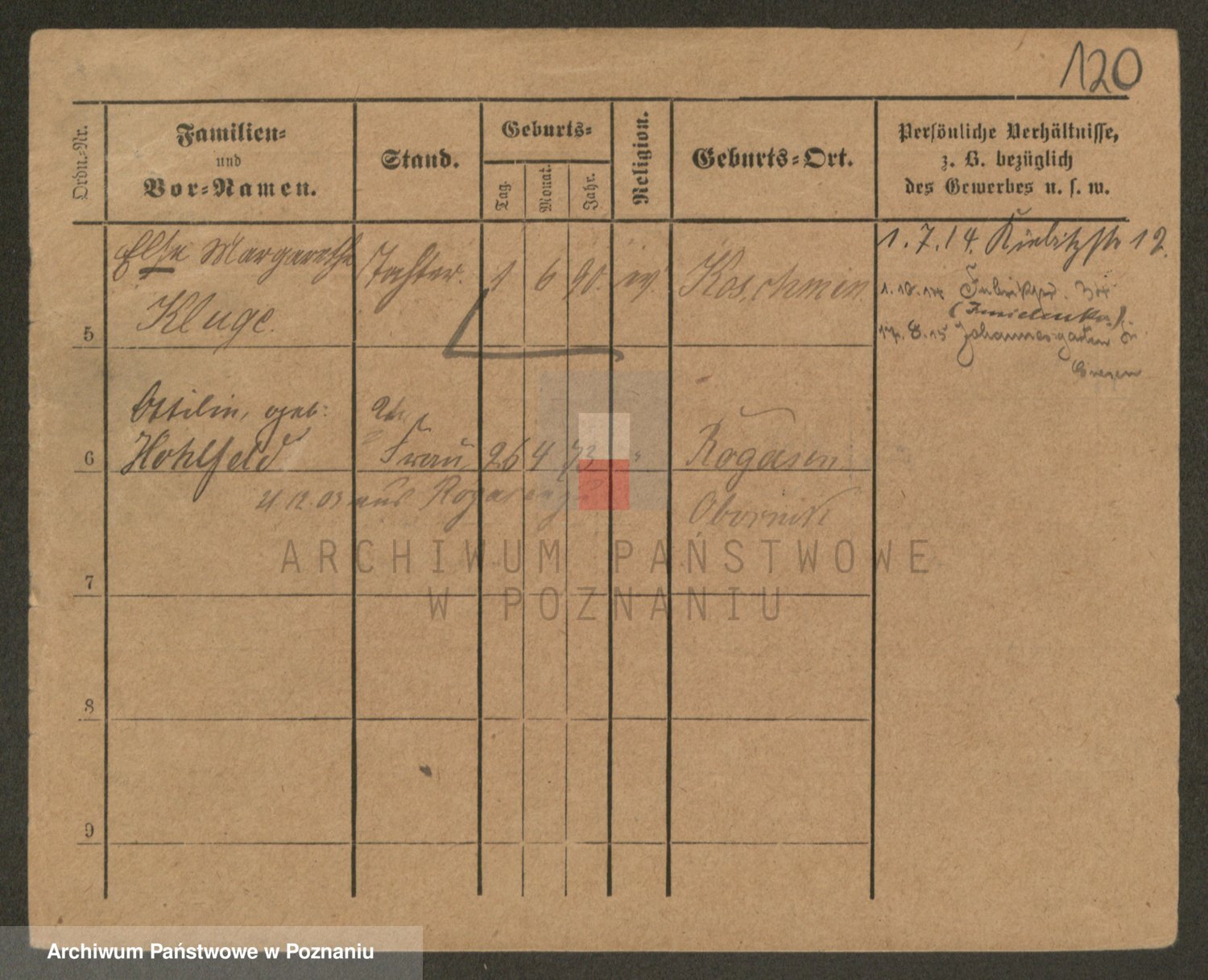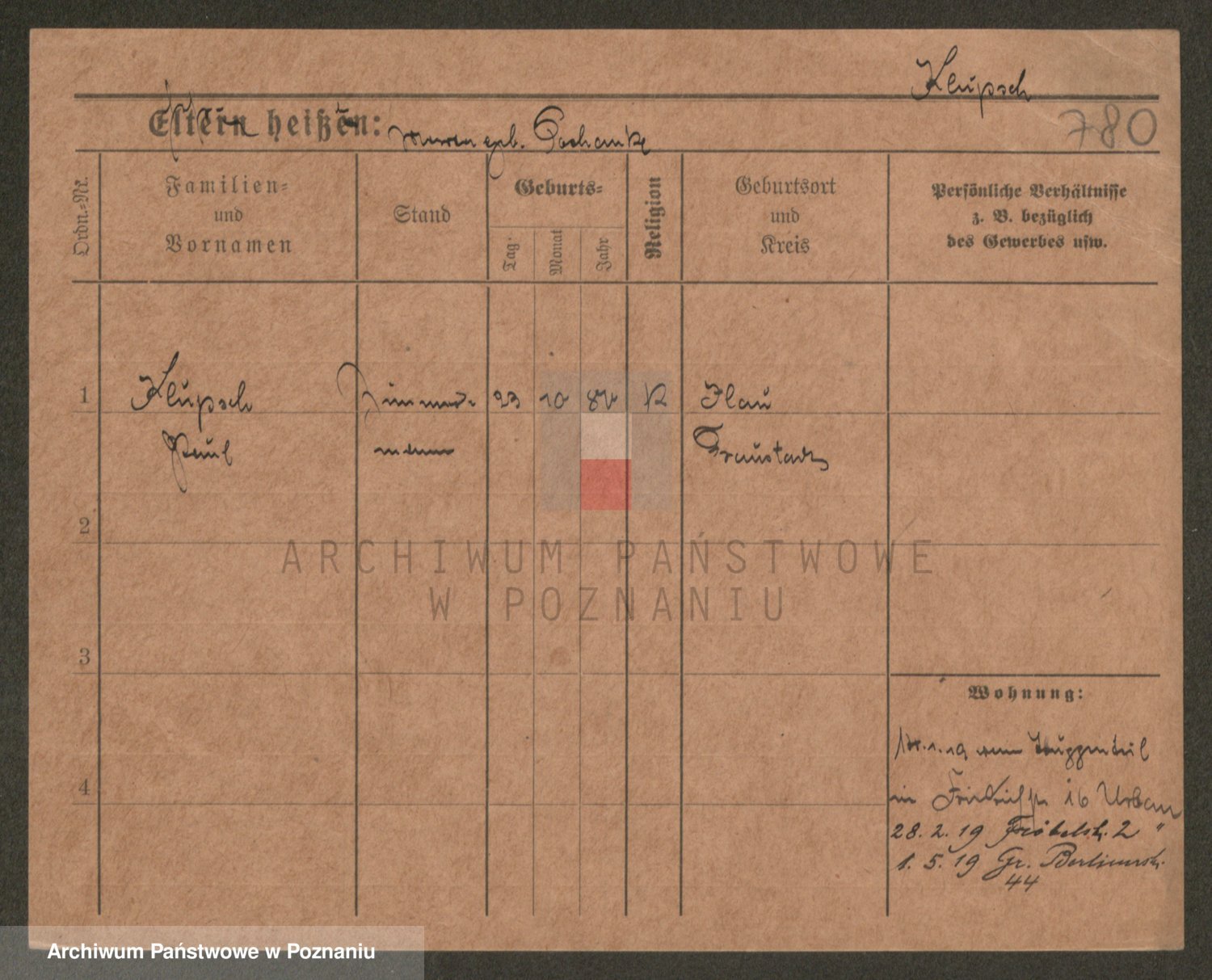 Podgląd karty osobowej dostępny jest po kliknięciu na nazwisko lub ikonkę karty. Można dokonywać powiększenia (ikony na górze) lub przechodzić między kolejnymi skanami (strzałki po bokach).