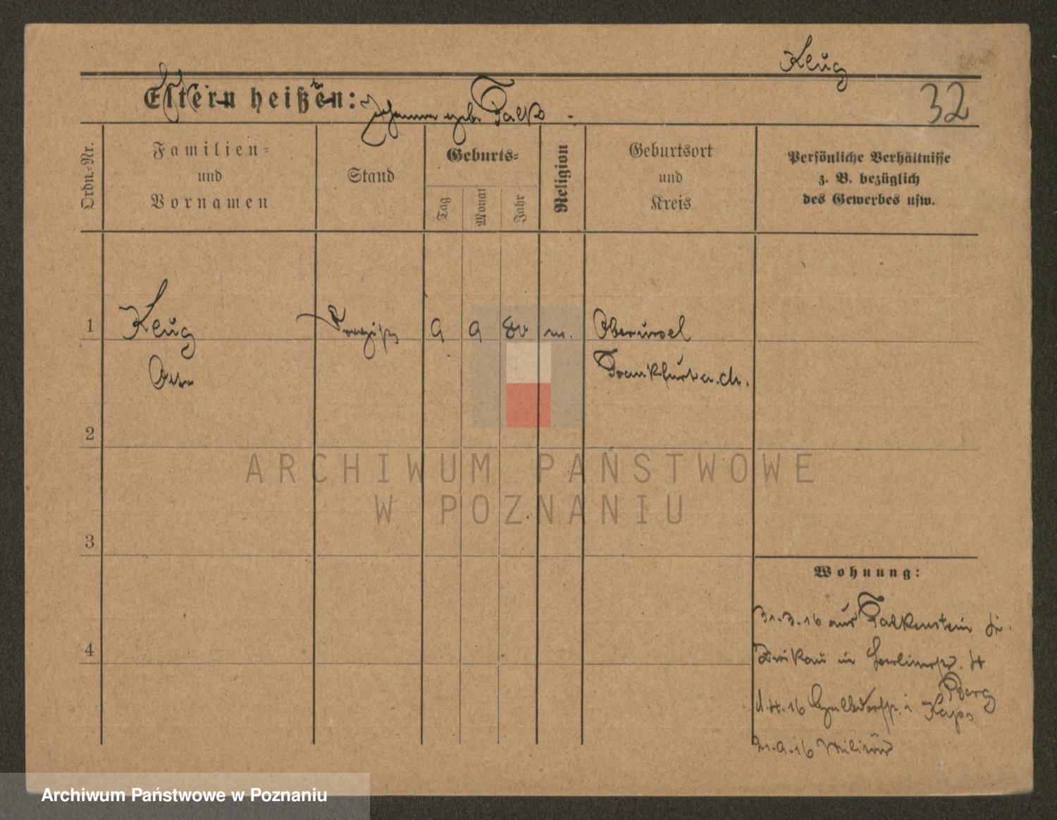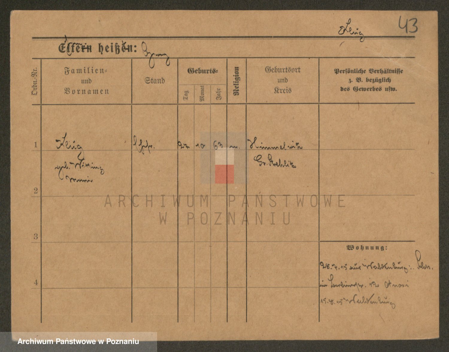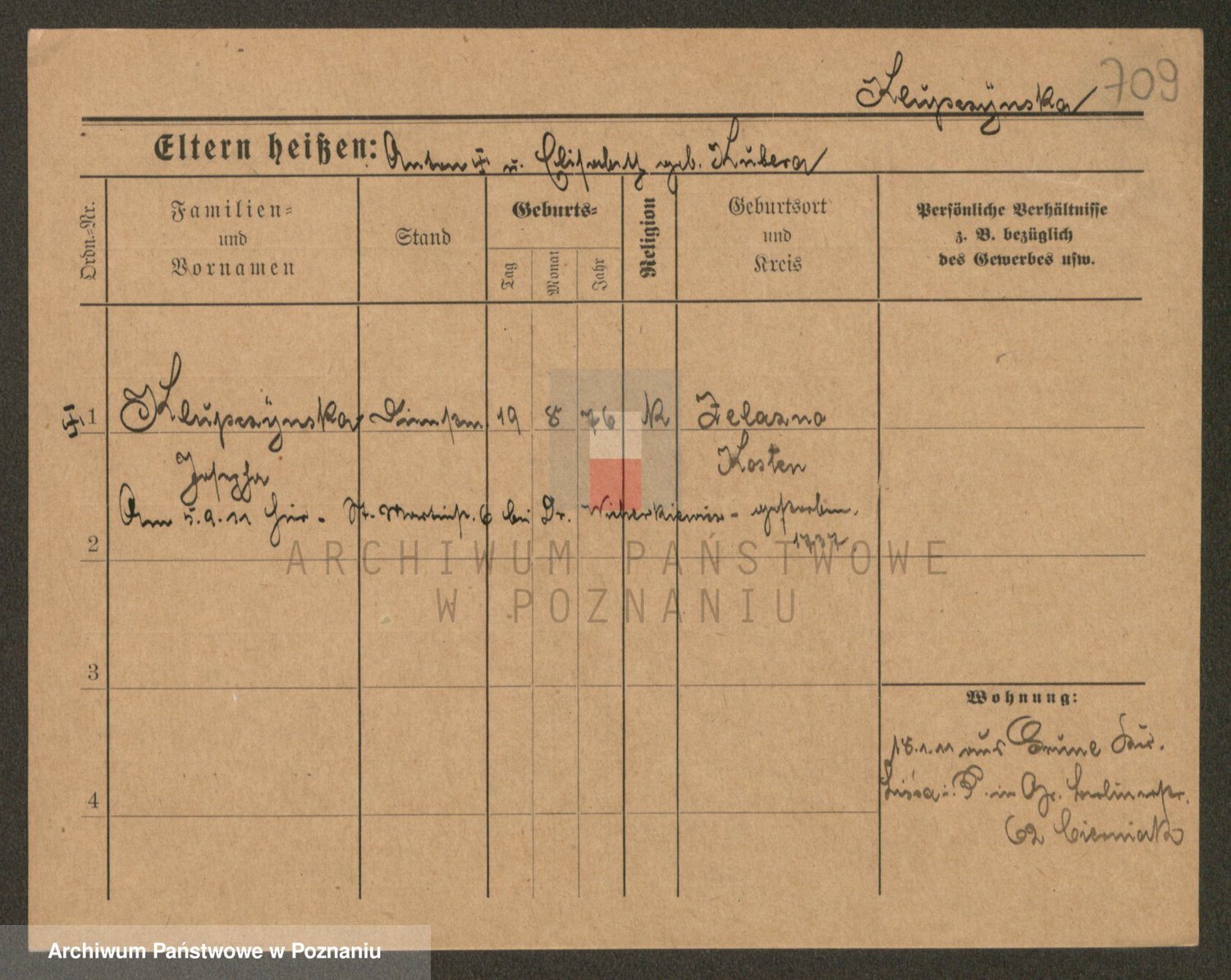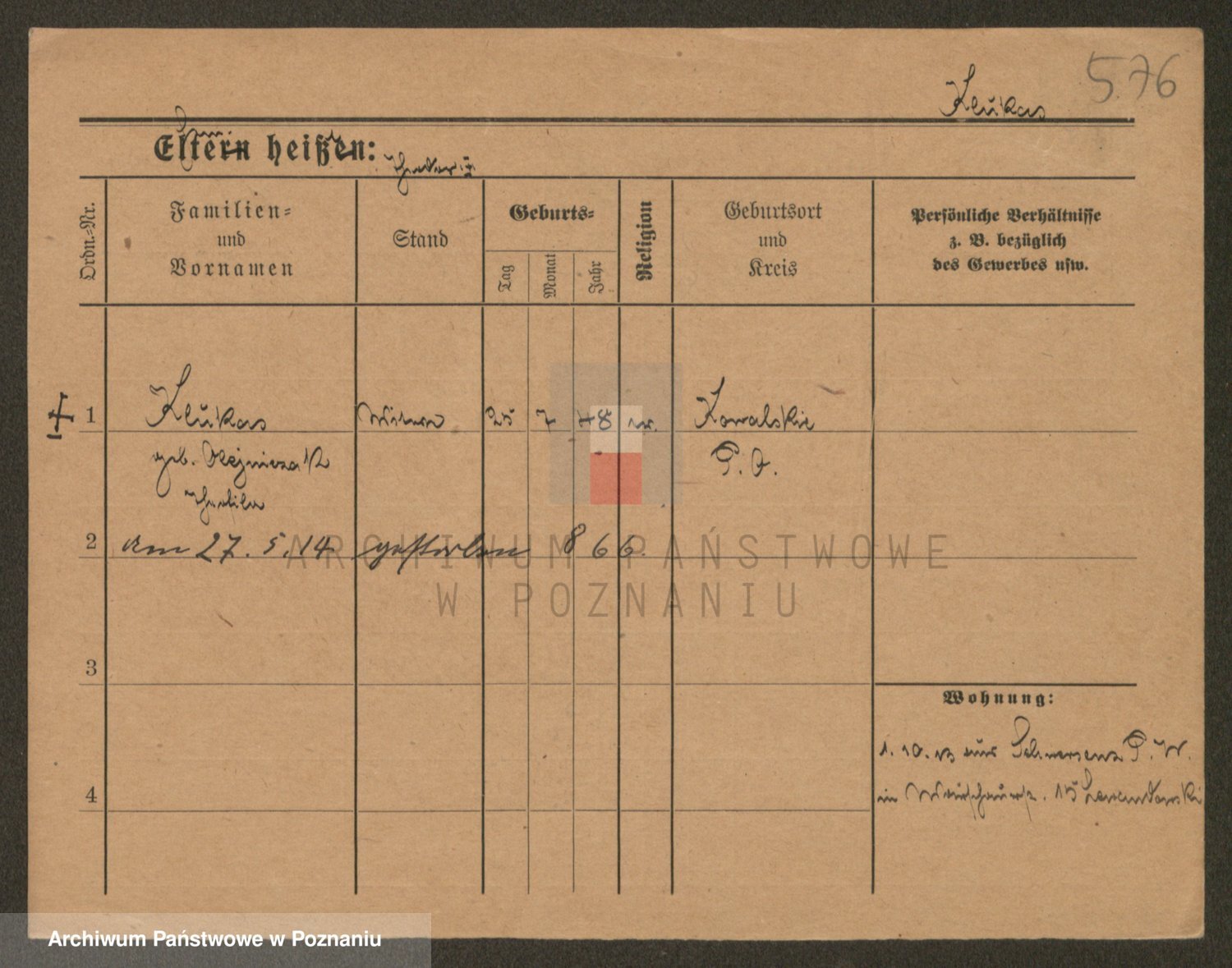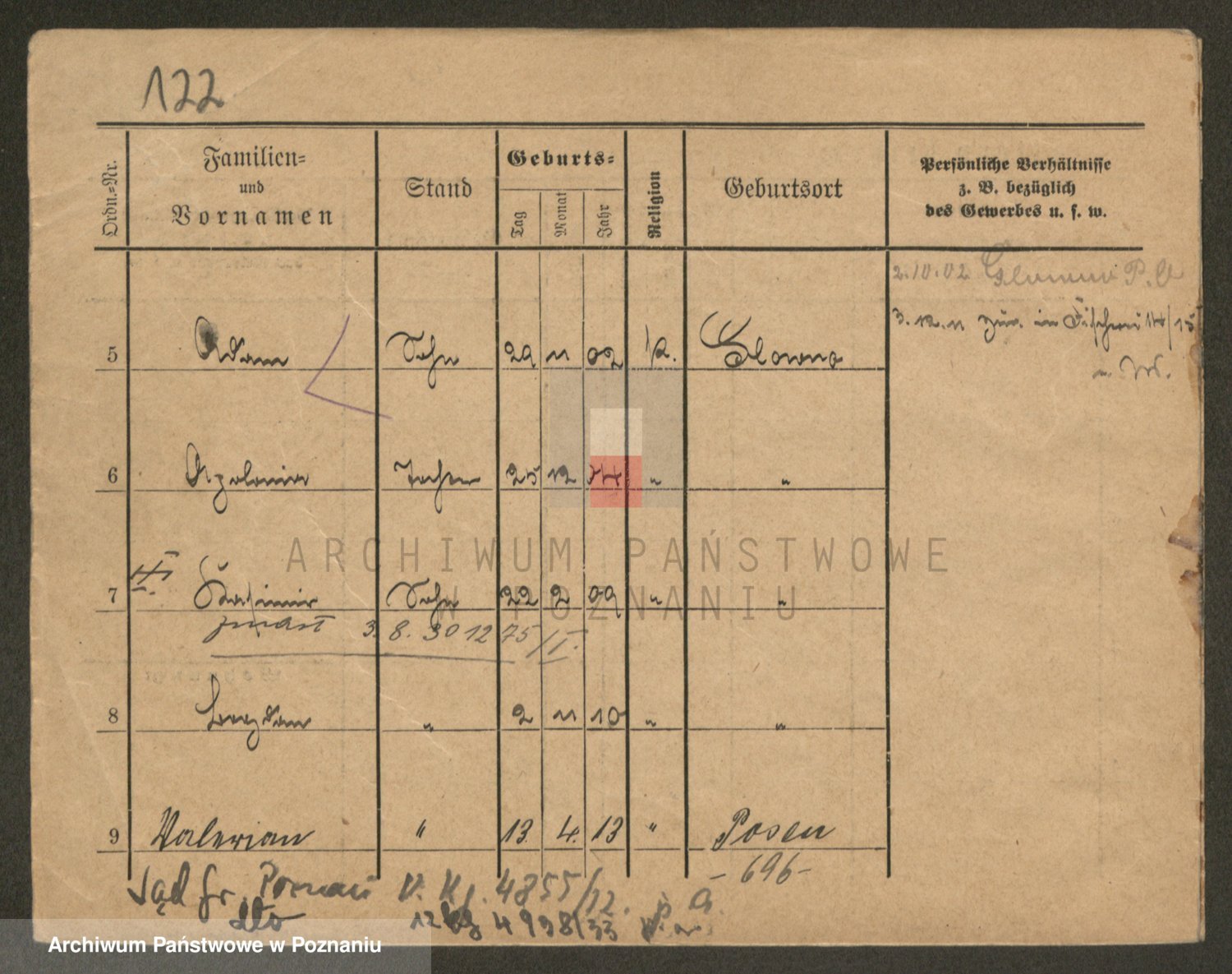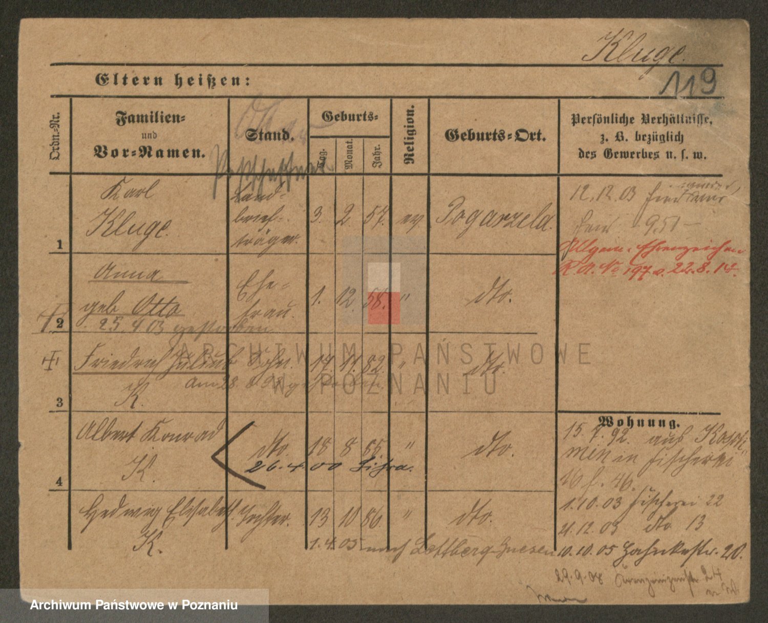 Podgląd karty osobowej dostępny jest po kliknięciu na nazwisko lub ikonkę karty. Można dokonywać powiększenia (ikony na górze) lub przechodzić między kolejnymi skanami (strzałki po bokach).