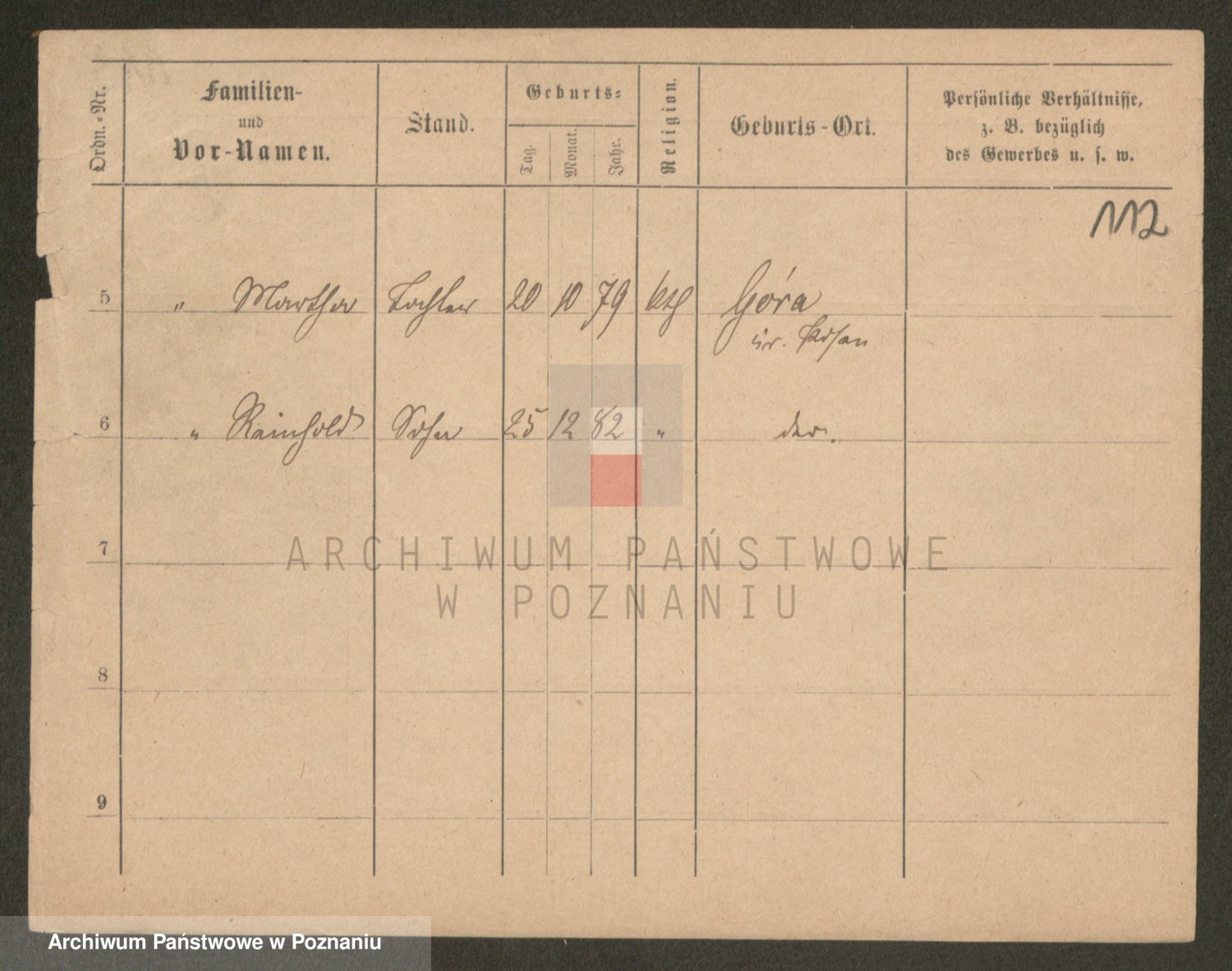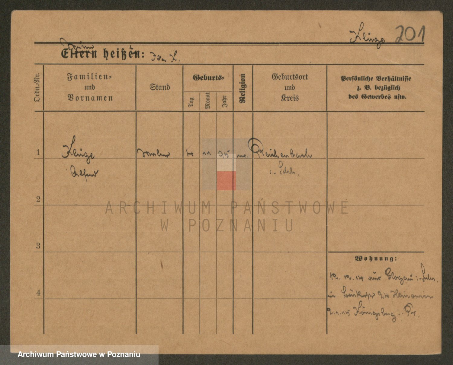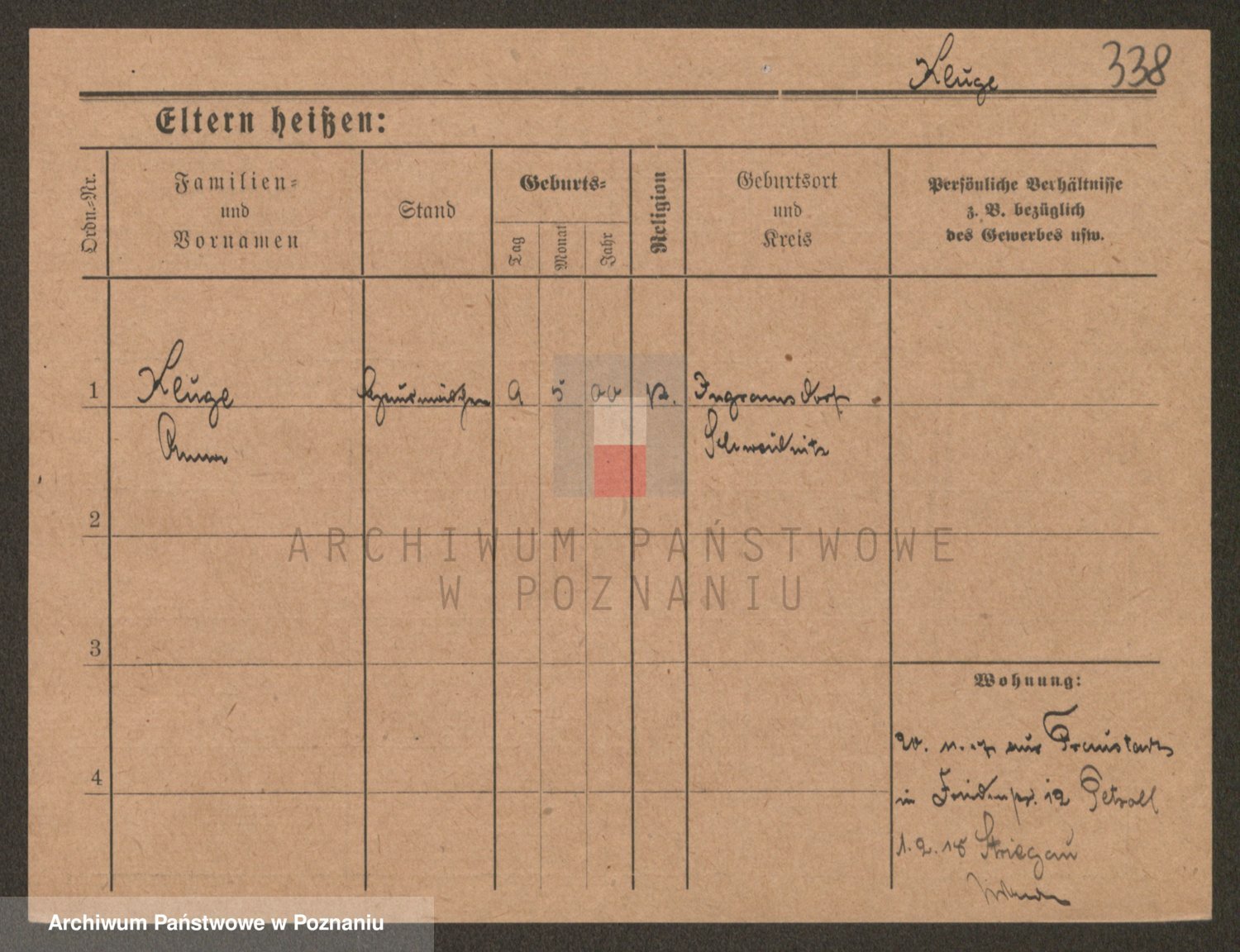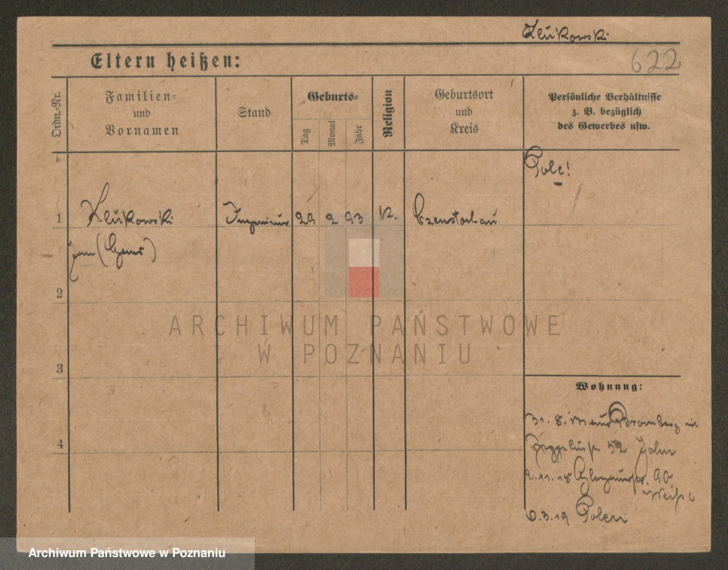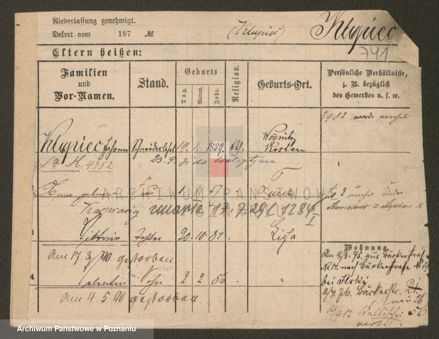 Podgląd karty osobowej dostępny jest po kliknięciu na nazwisko lub ikonkę karty. Można dokonywać powiększenia (ikony na górze) lub przechodzić między kolejnymi skanami (strzałki po bokach).