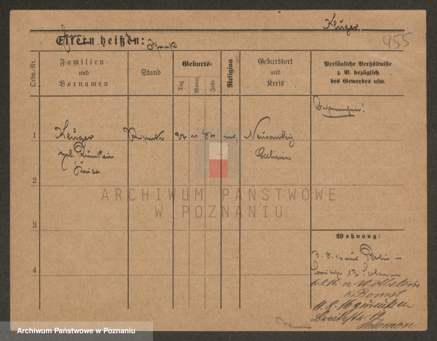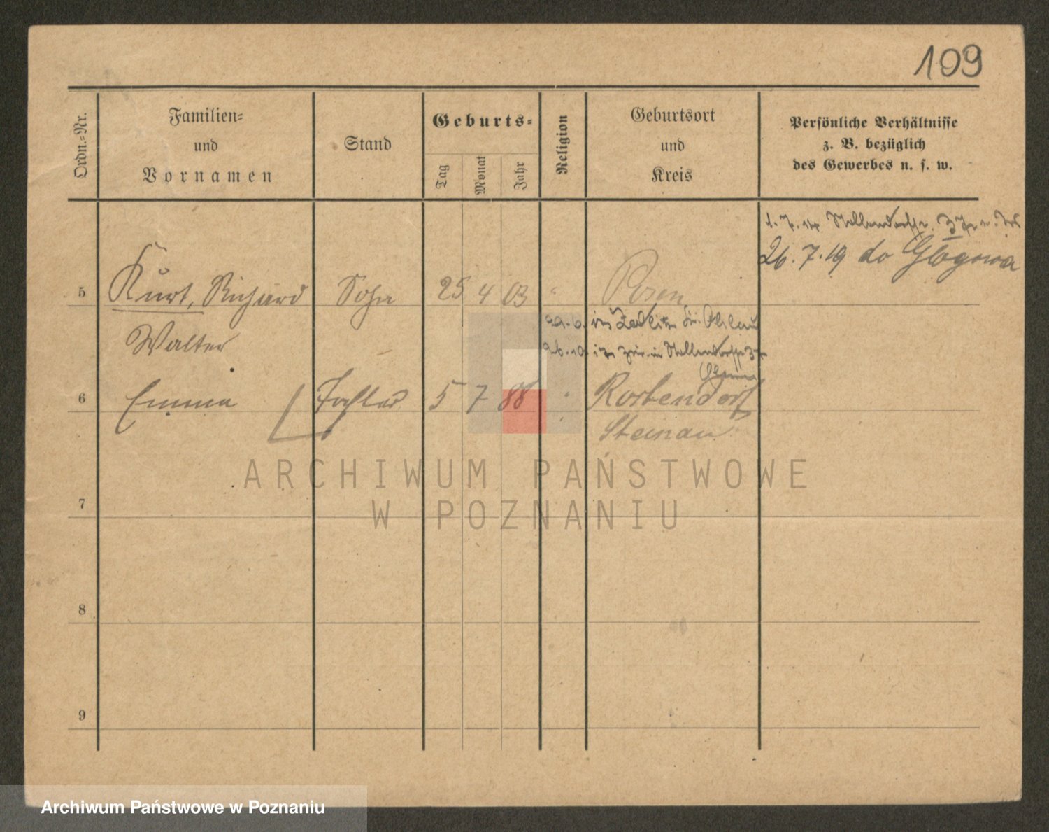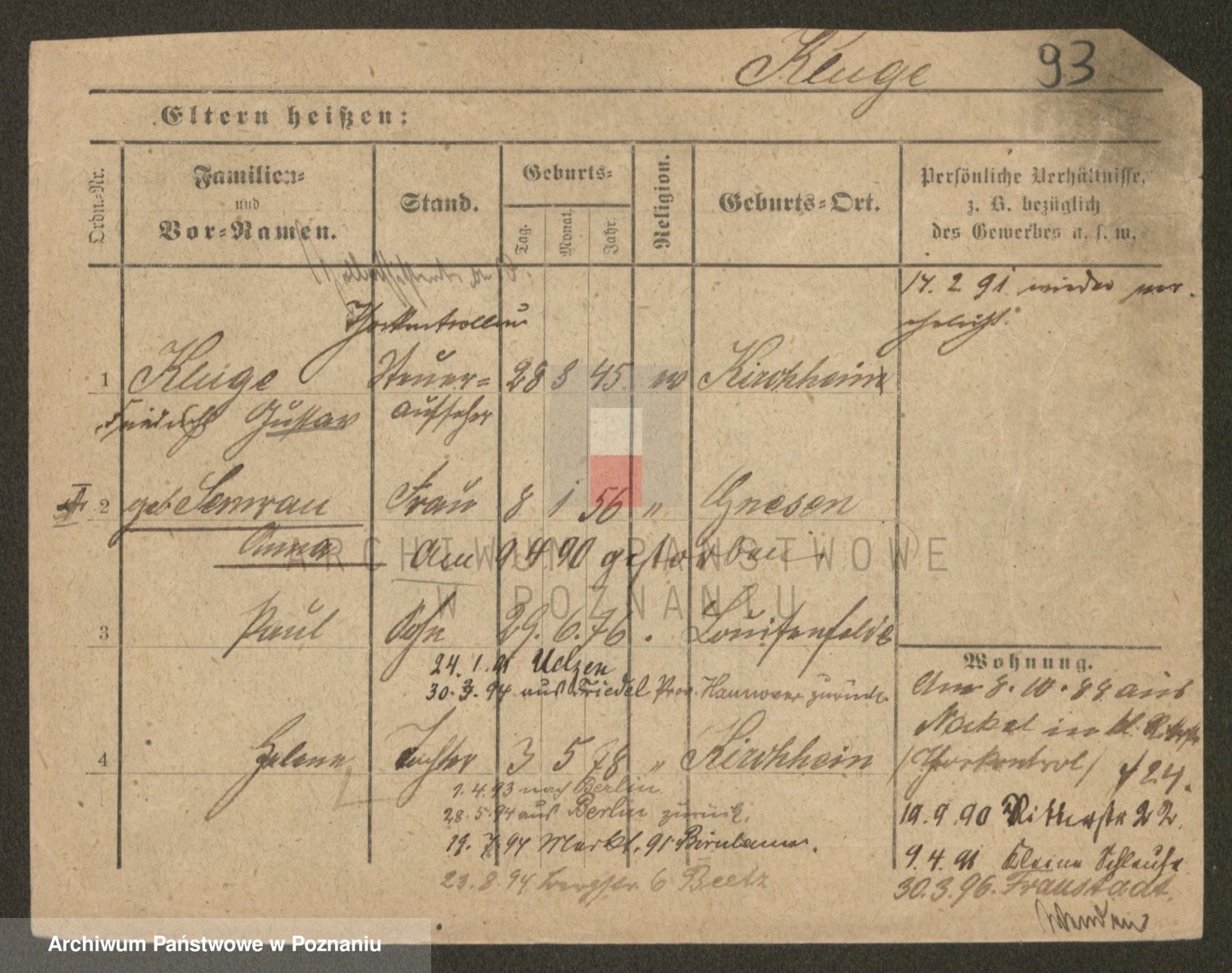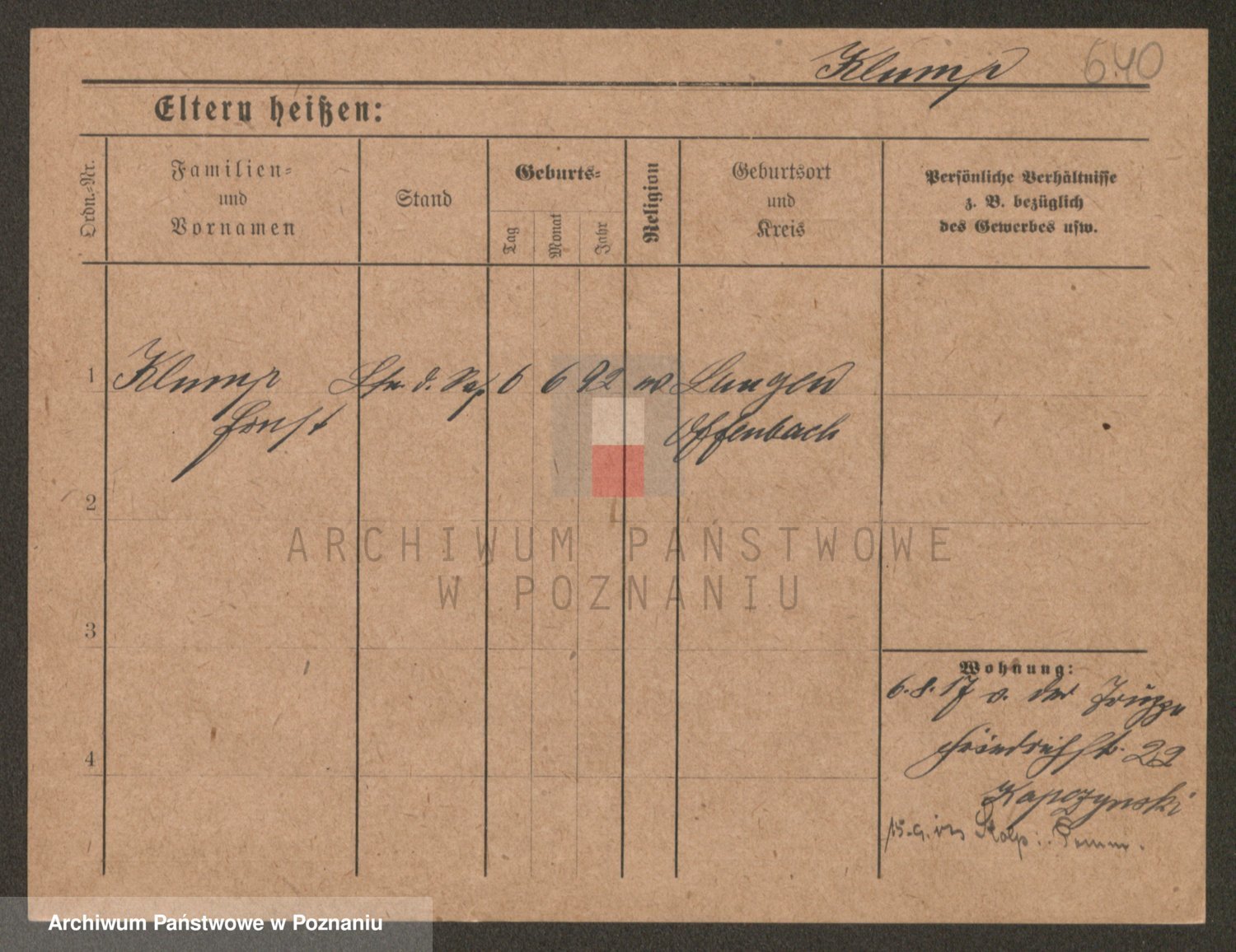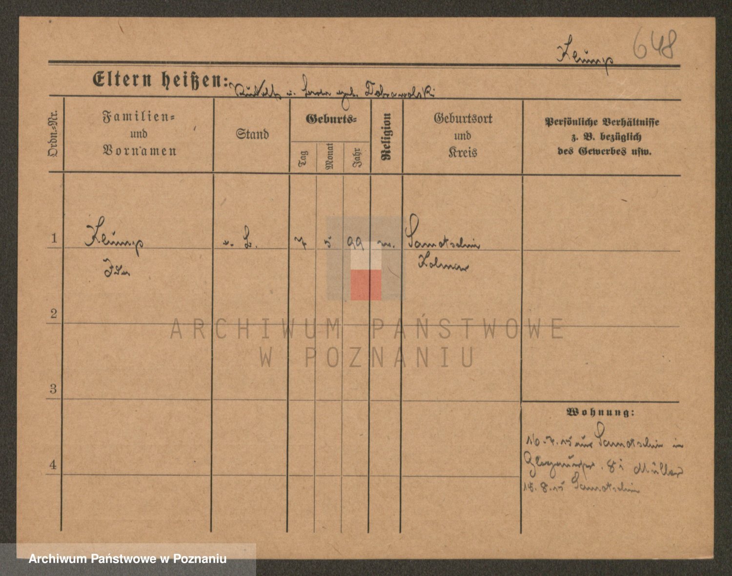 Podgląd karty osobowej dostępny jest po kliknięciu na nazwisko lub ikonkę karty. Można dokonywać powiększenia (ikony na górze) lub przechodzić między kolejnymi skanami (strzałki po bokach).