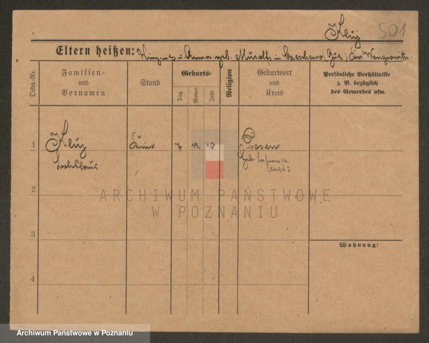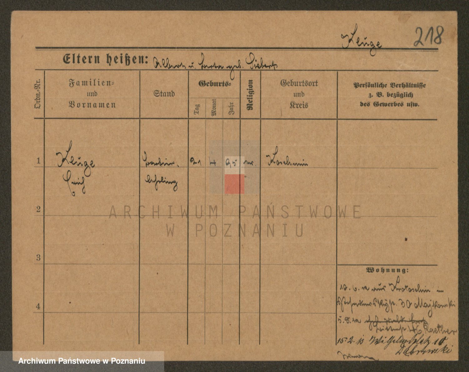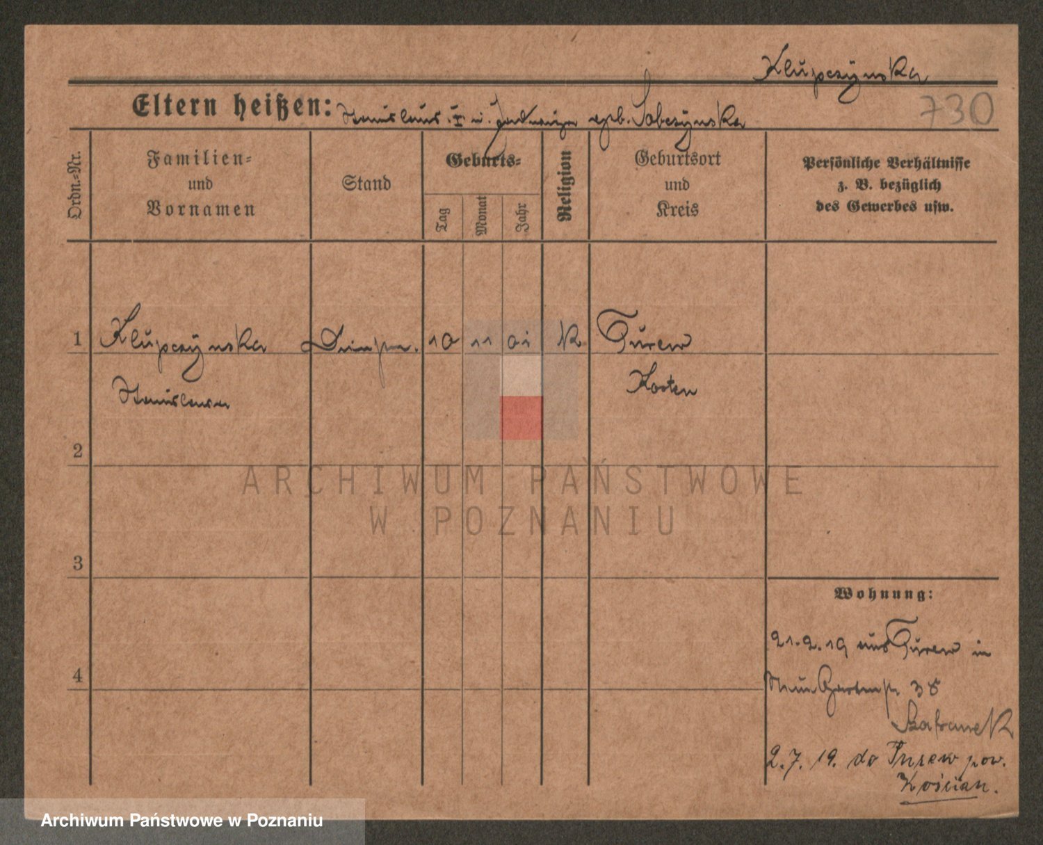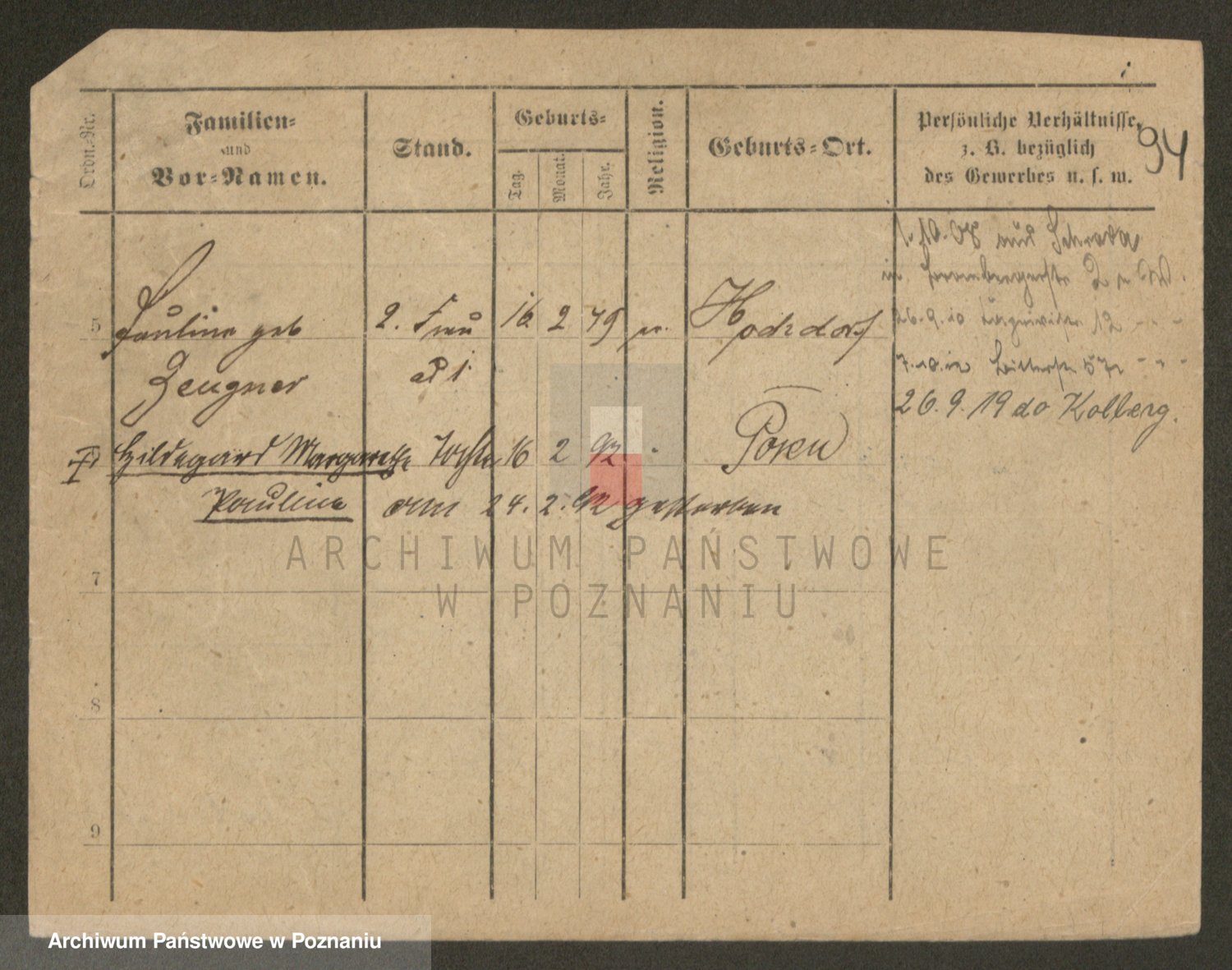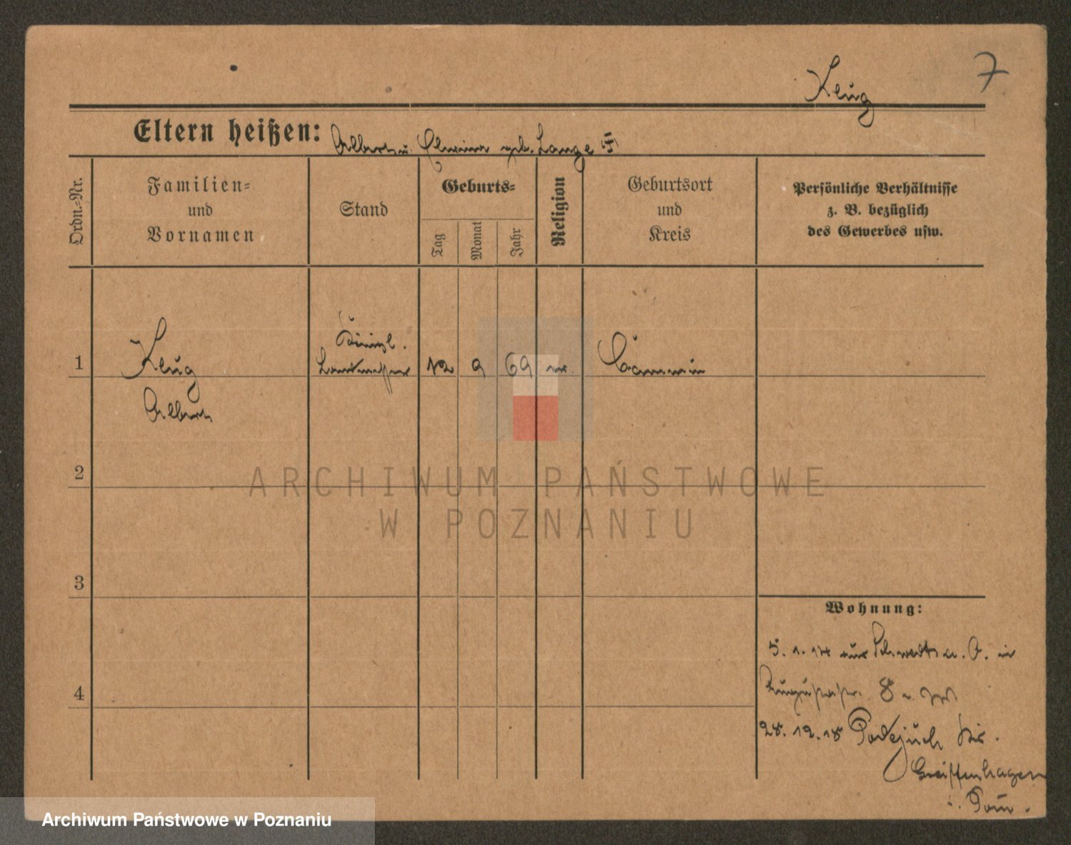 Podgląd karty osobowej dostępny jest po kliknięciu na nazwisko lub ikonkę karty. Można dokonywać powiększenia (ikony na górze) lub przechodzić między kolejnymi skanami (strzałki po bokach).