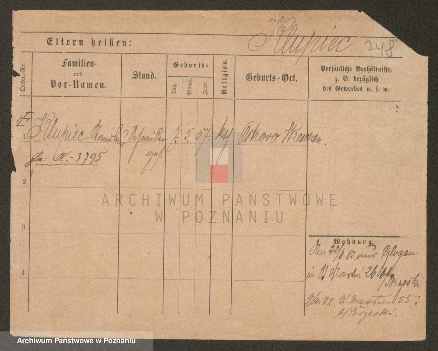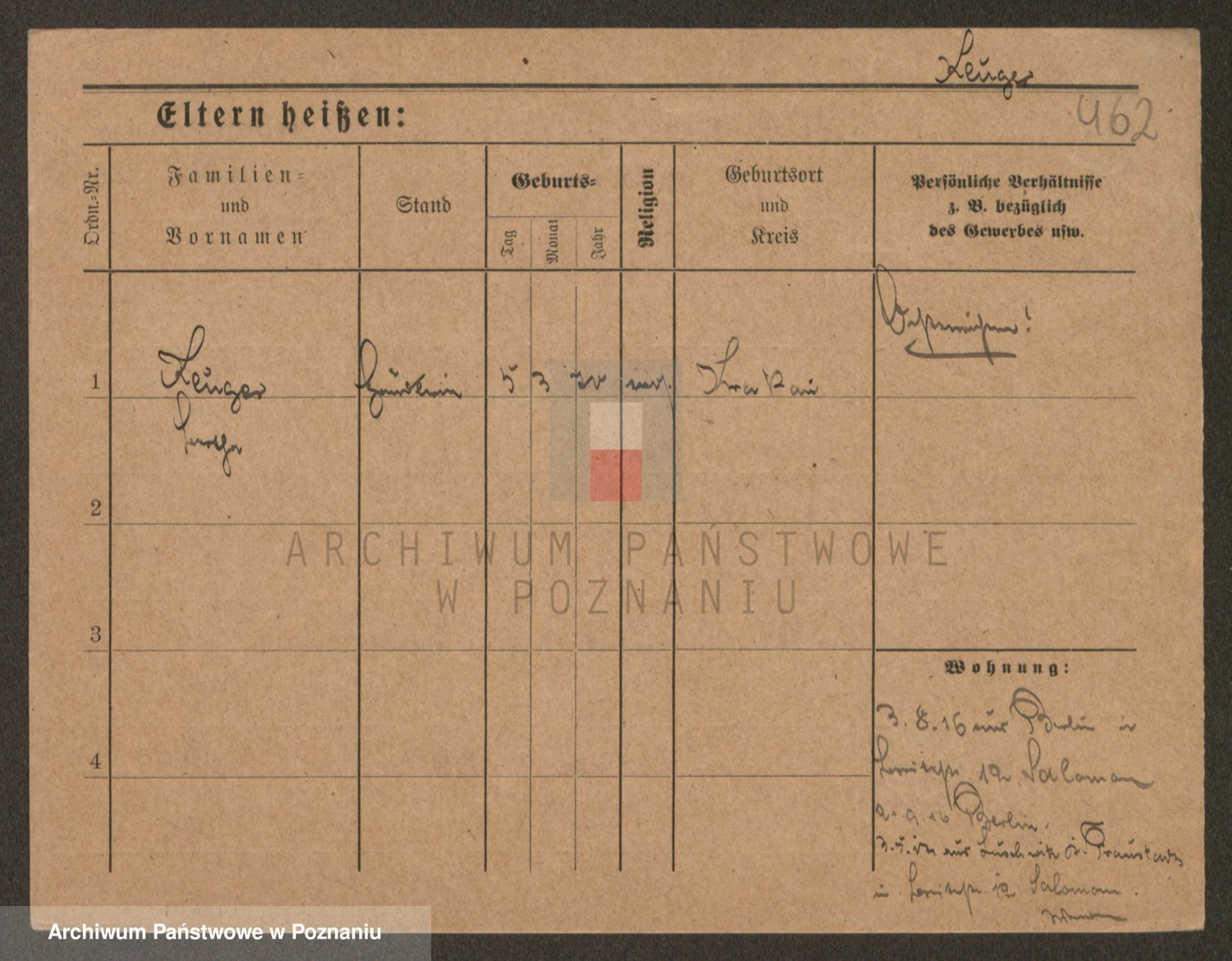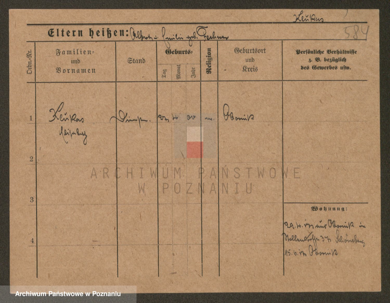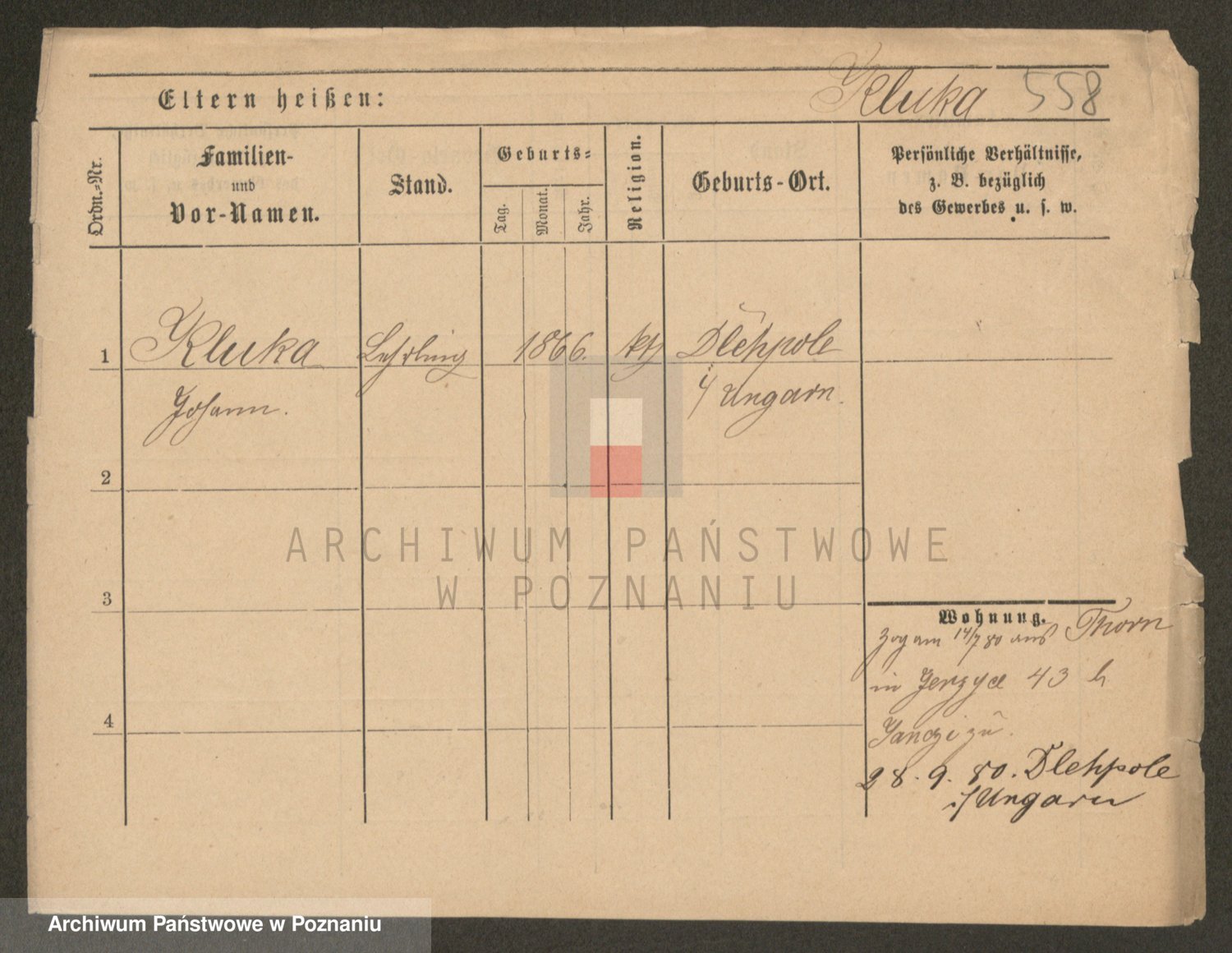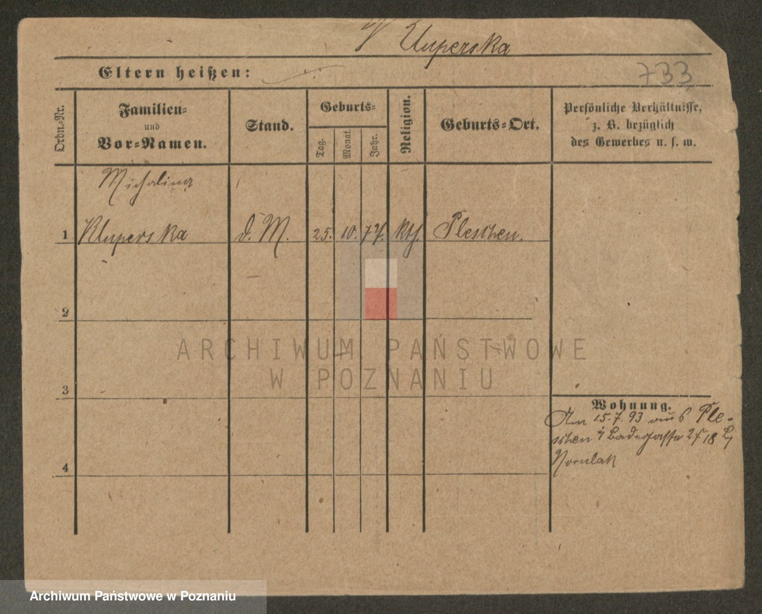 Podgląd karty osobowej dostępny jest po kliknięciu na nazwisko lub ikonkę karty. Można dokonywać powiększenia (ikony na górze) lub przechodzić między kolejnymi skanami (strzałki po bokach).