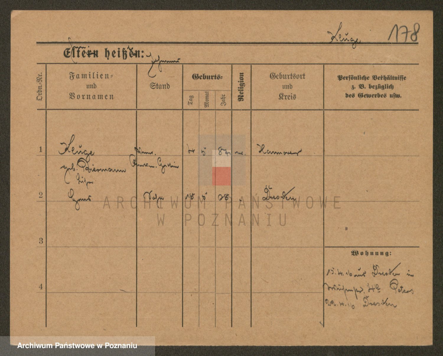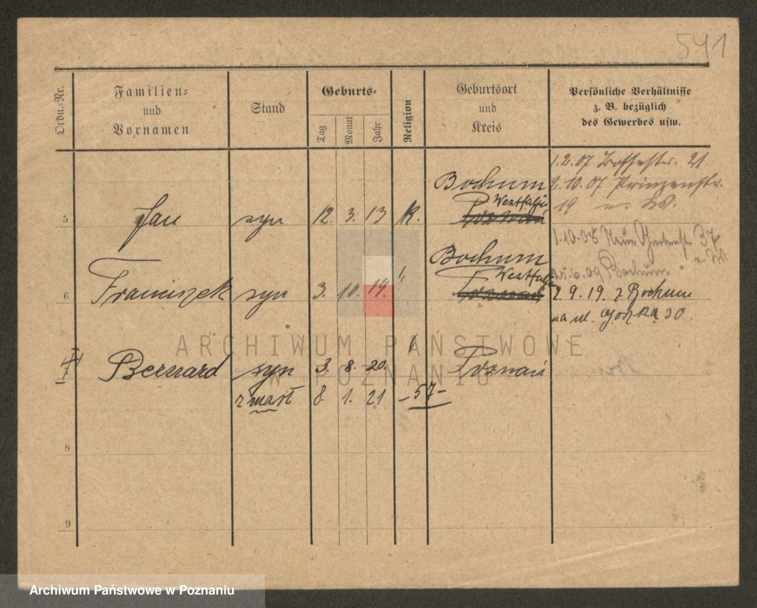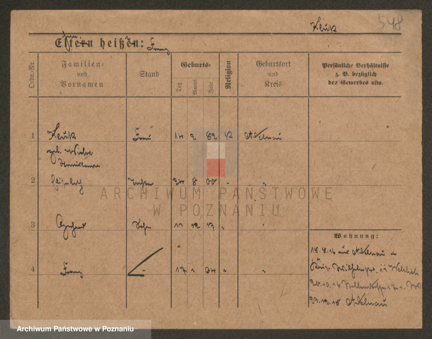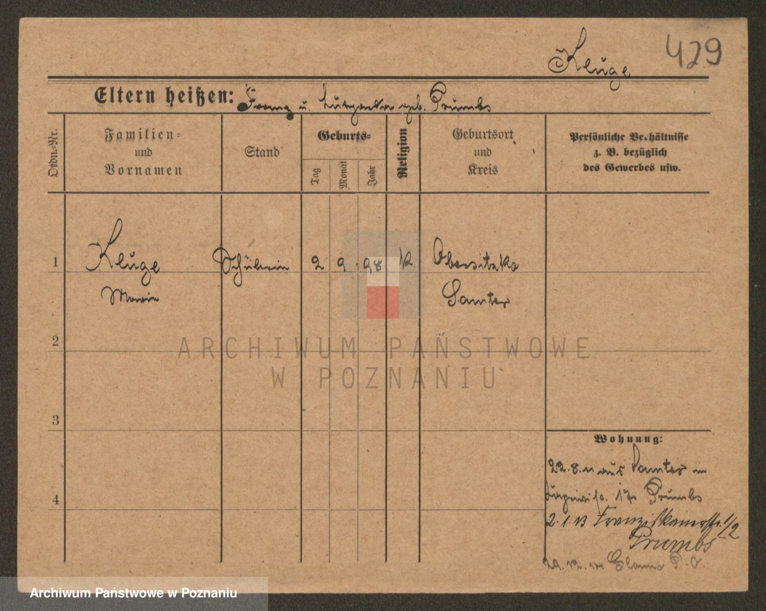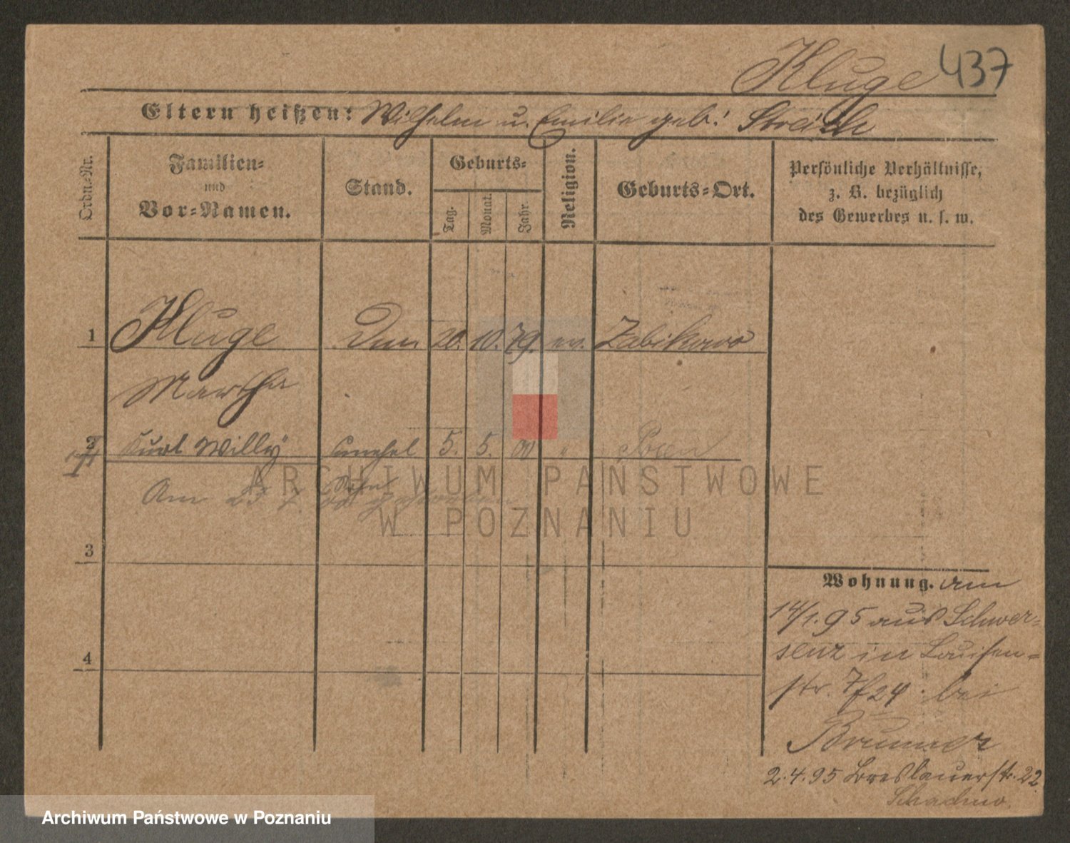 Podgląd karty osobowej dostępny jest po kliknięciu na nazwisko lub ikonkę karty. Można dokonywać powiększenia (ikony na górze) lub przechodzić między kolejnymi skanami (strzałki po bokach).
