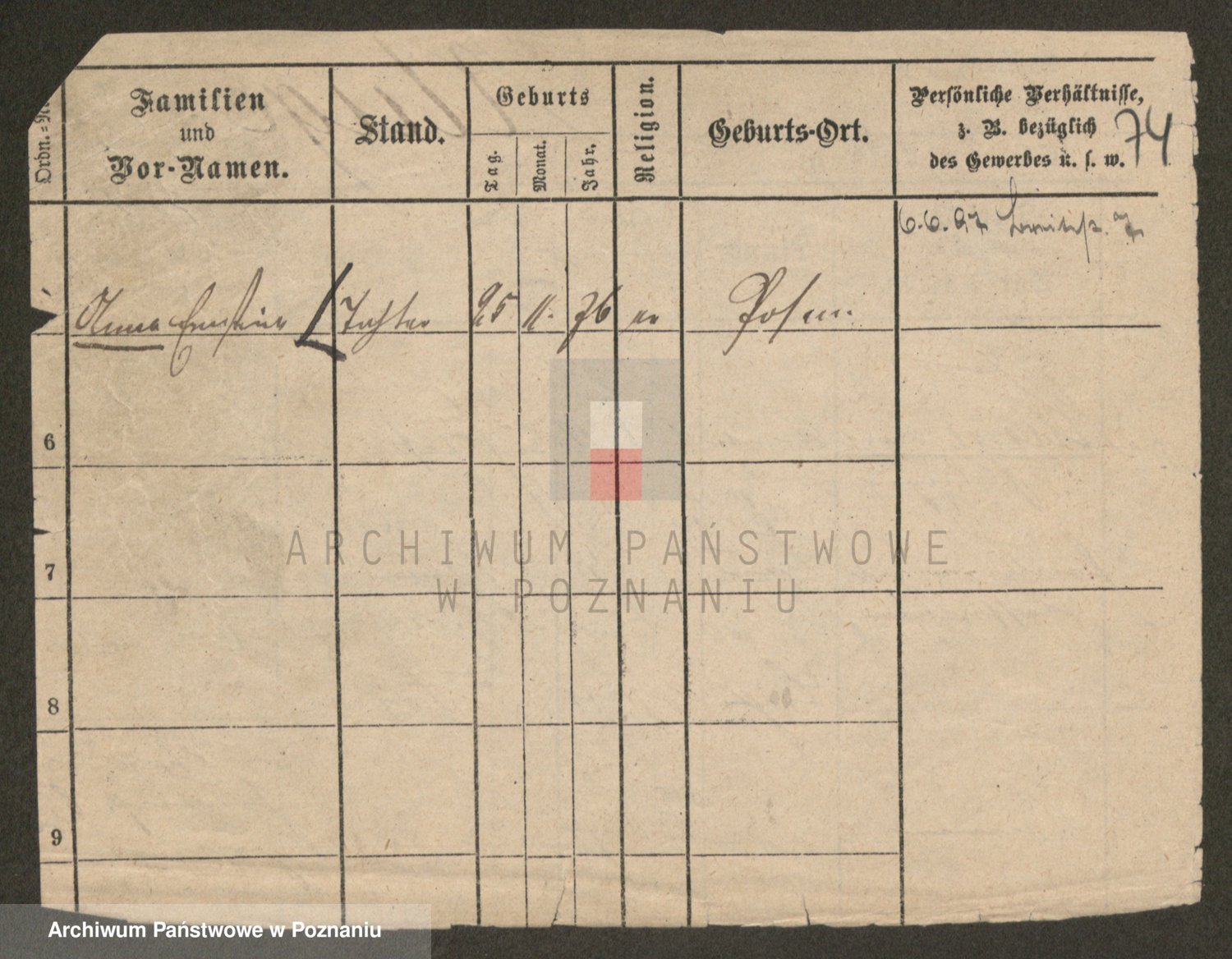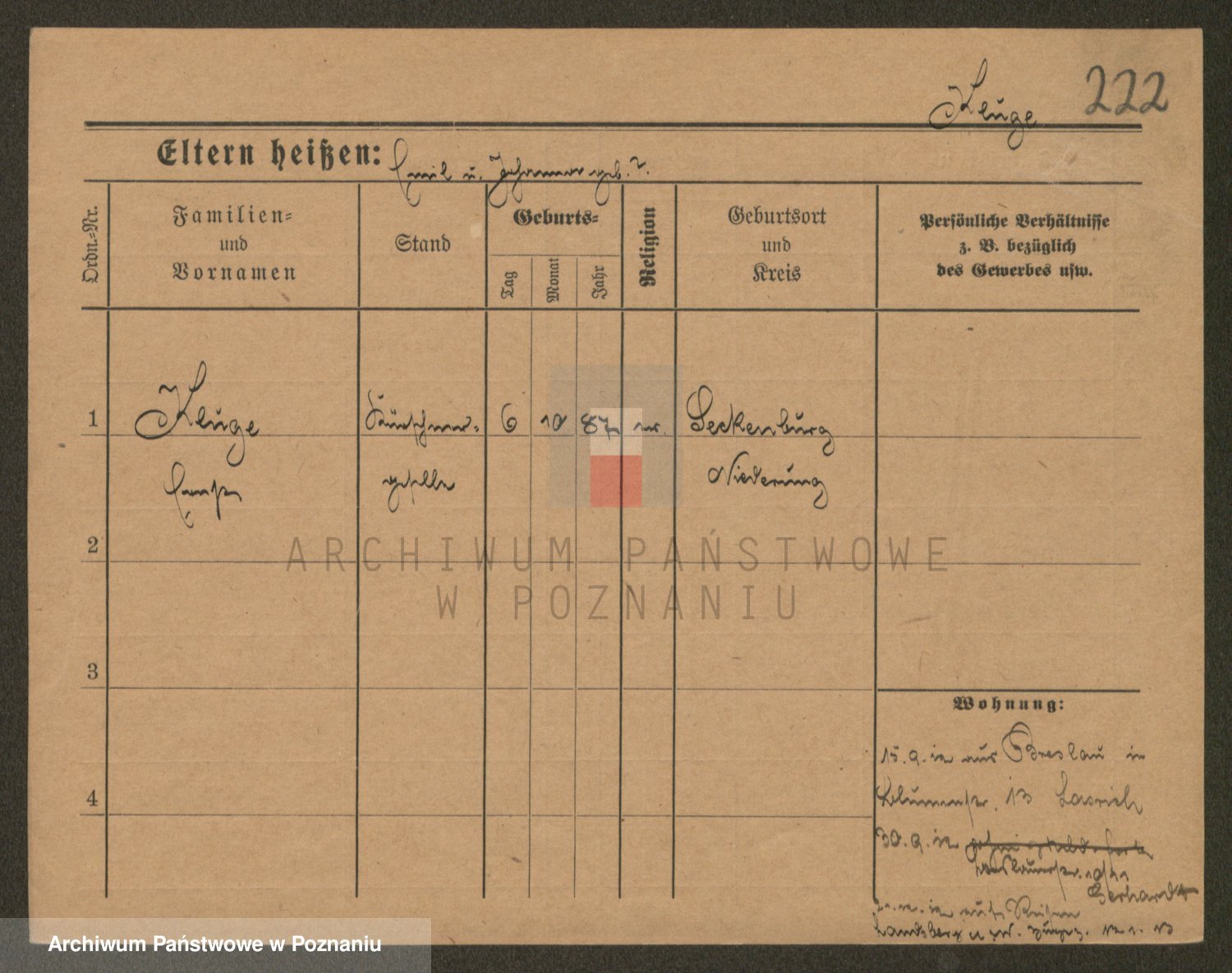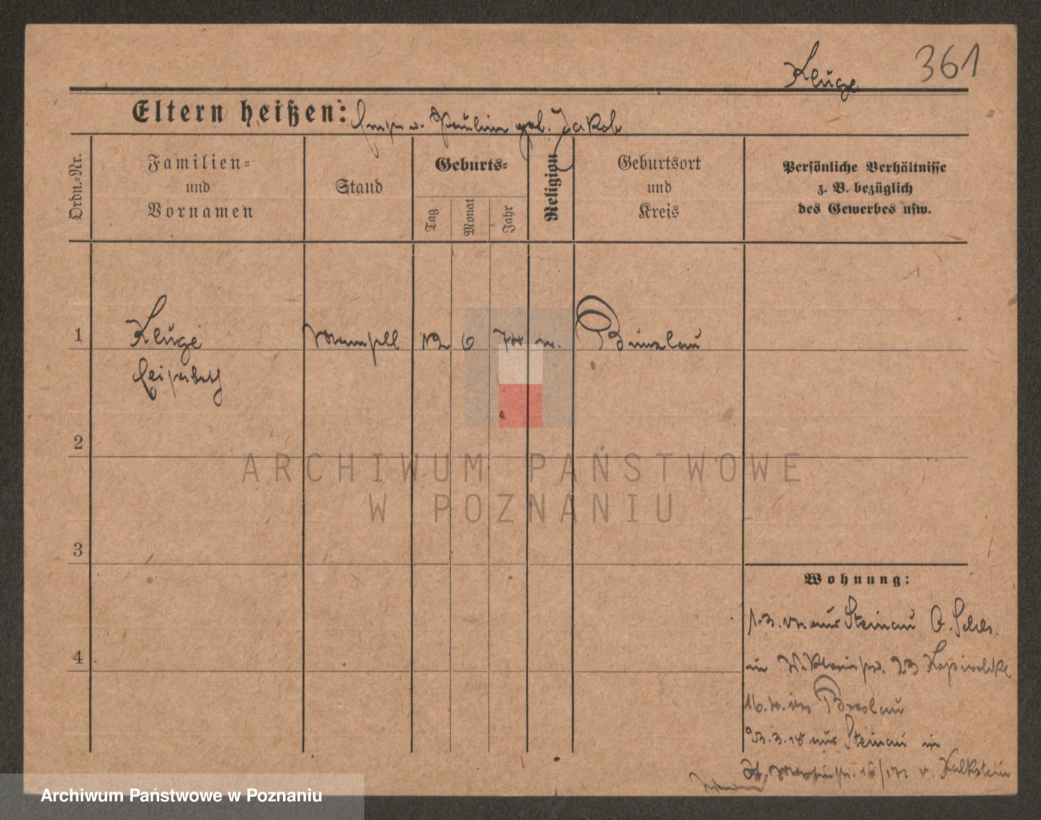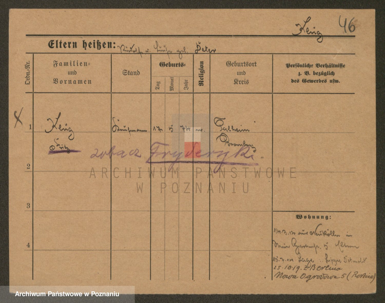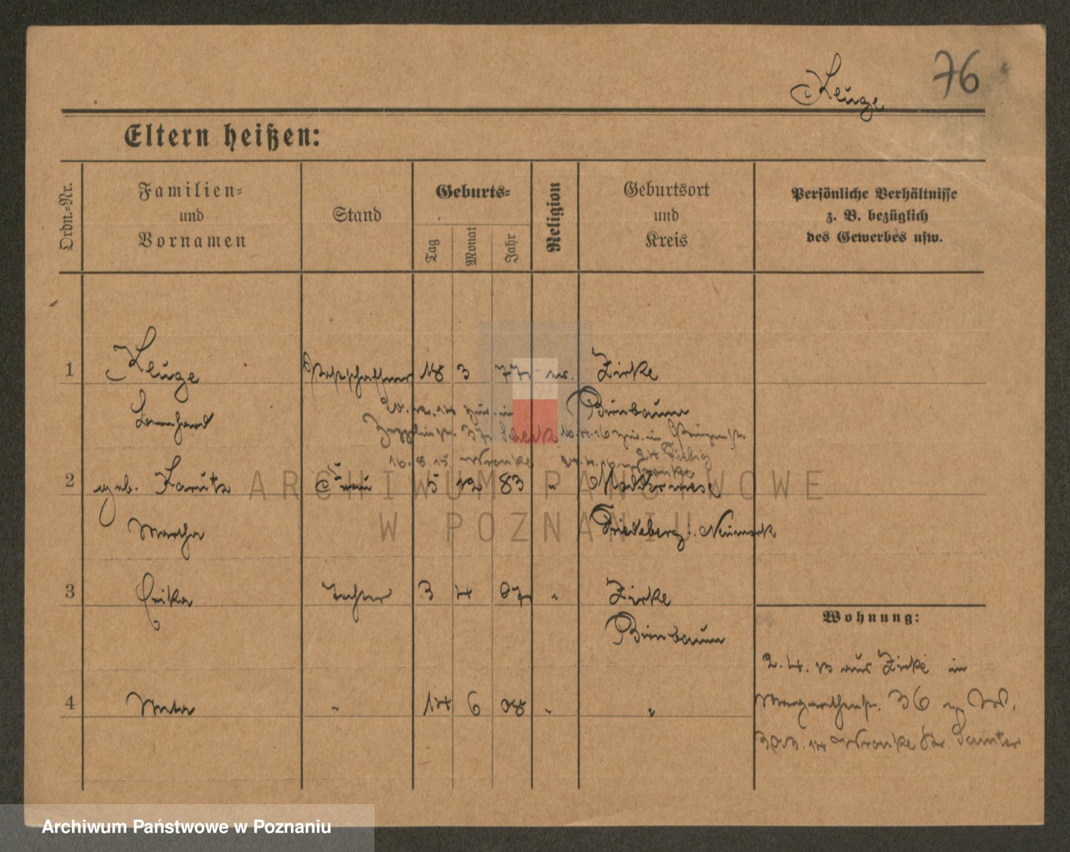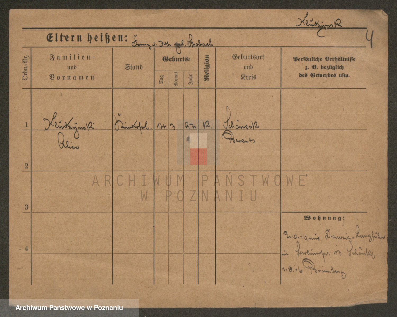Podgląd karty osobowej dostępny jest po kliknięciu na nazwisko lub ikonkę karty. Można dokonywać powiększenia (ikony na górze) lub przechodzić między kolejnymi skanami (strzałki po bokach).