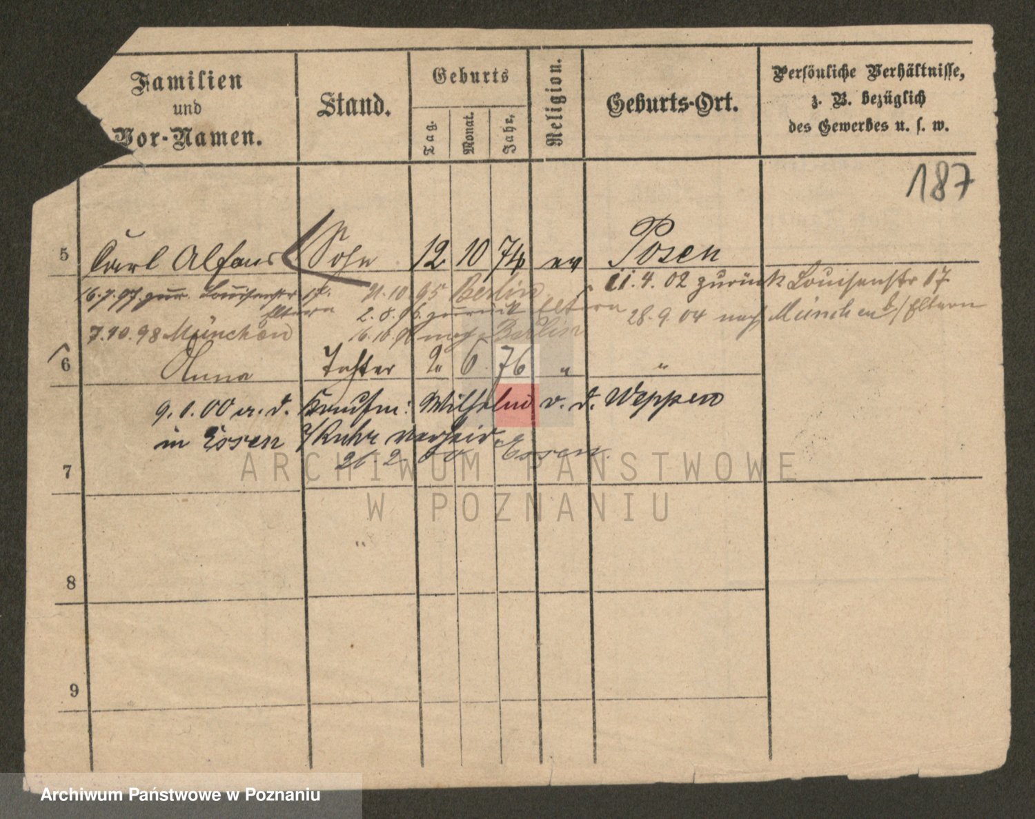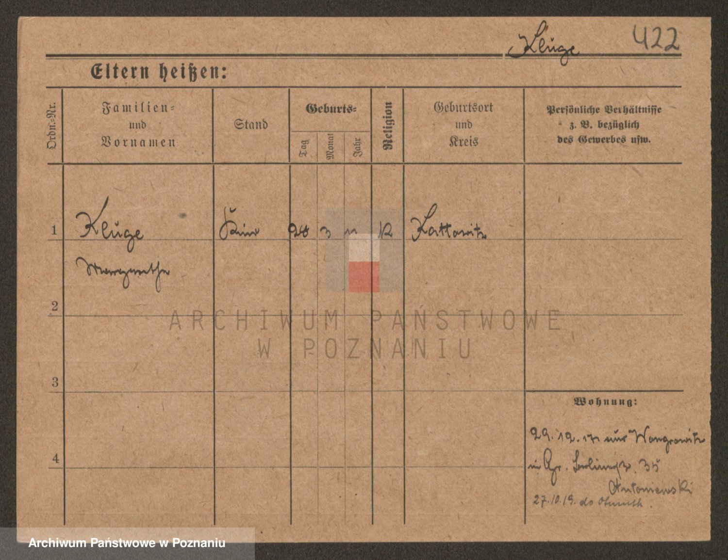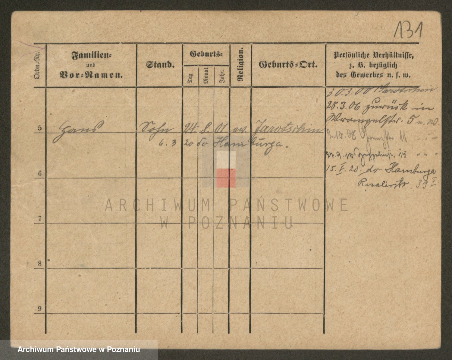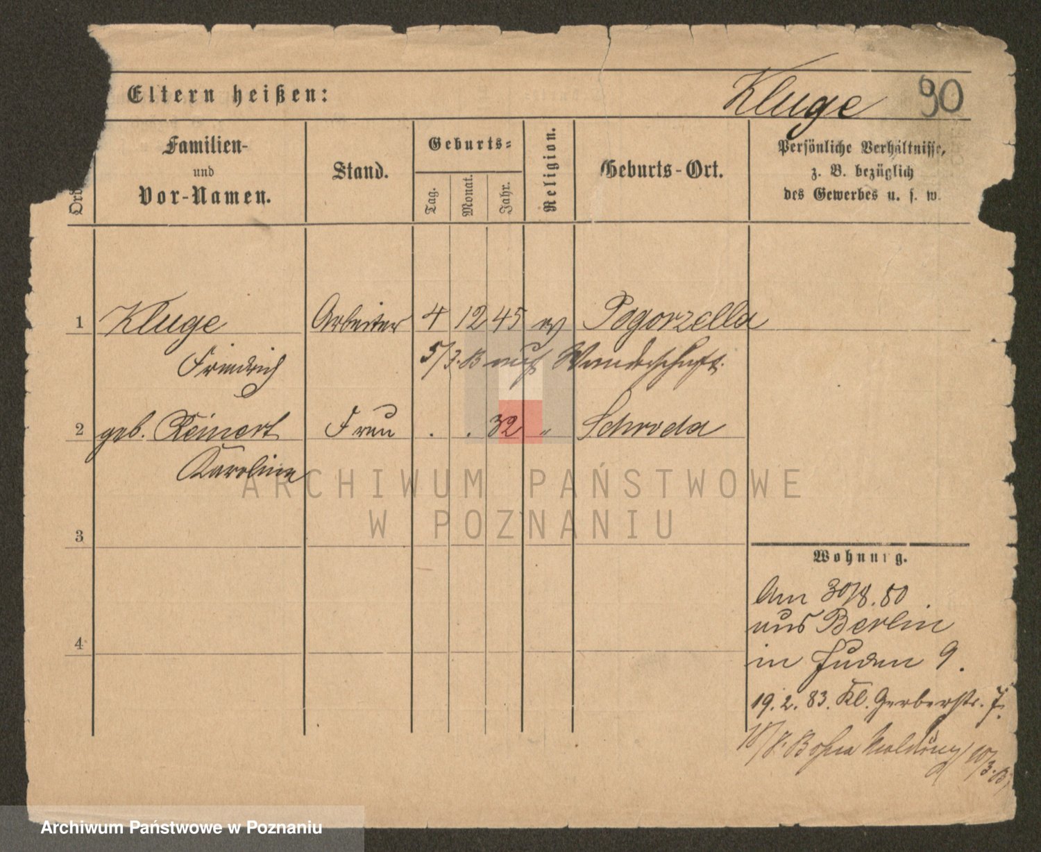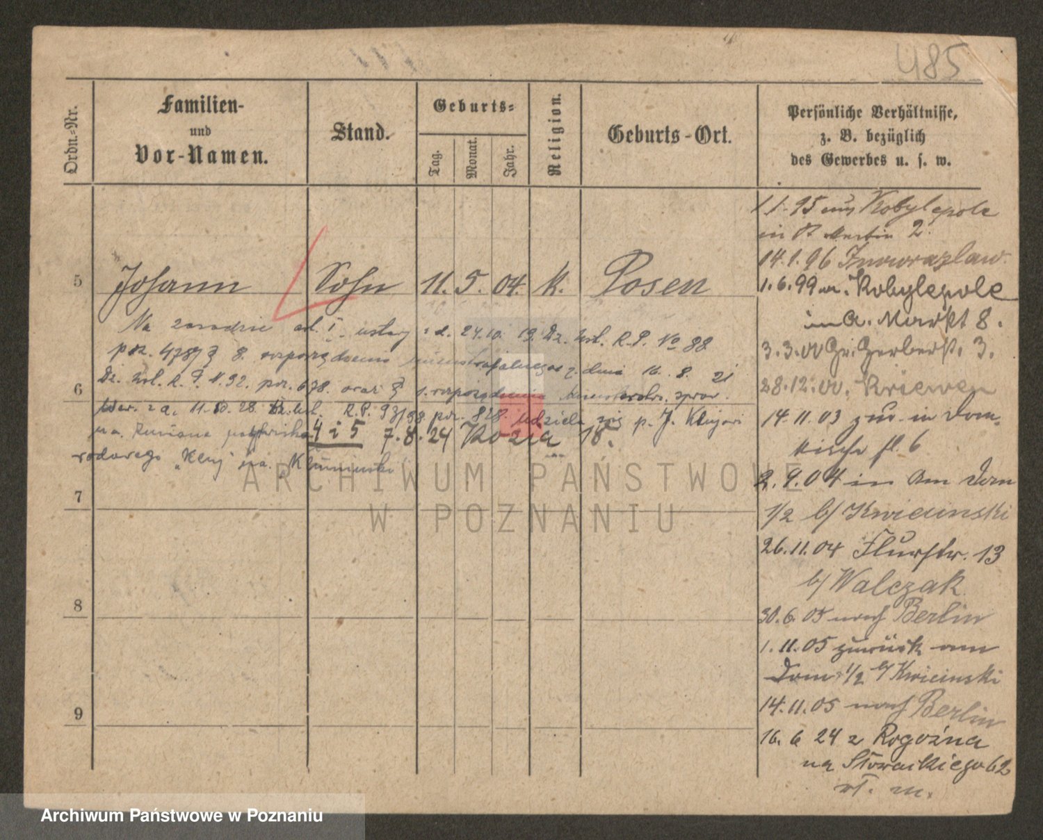 Podgląd karty osobowej dostępny jest po kliknięciu na nazwisko lub ikonkę karty. Można dokonywać powiększenia (ikony na górze) lub przechodzić między kolejnymi skanami (strzałki po bokach).