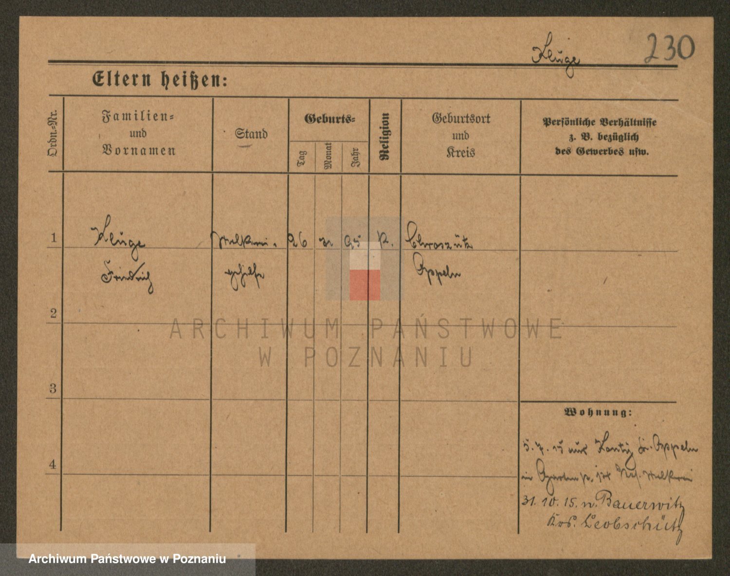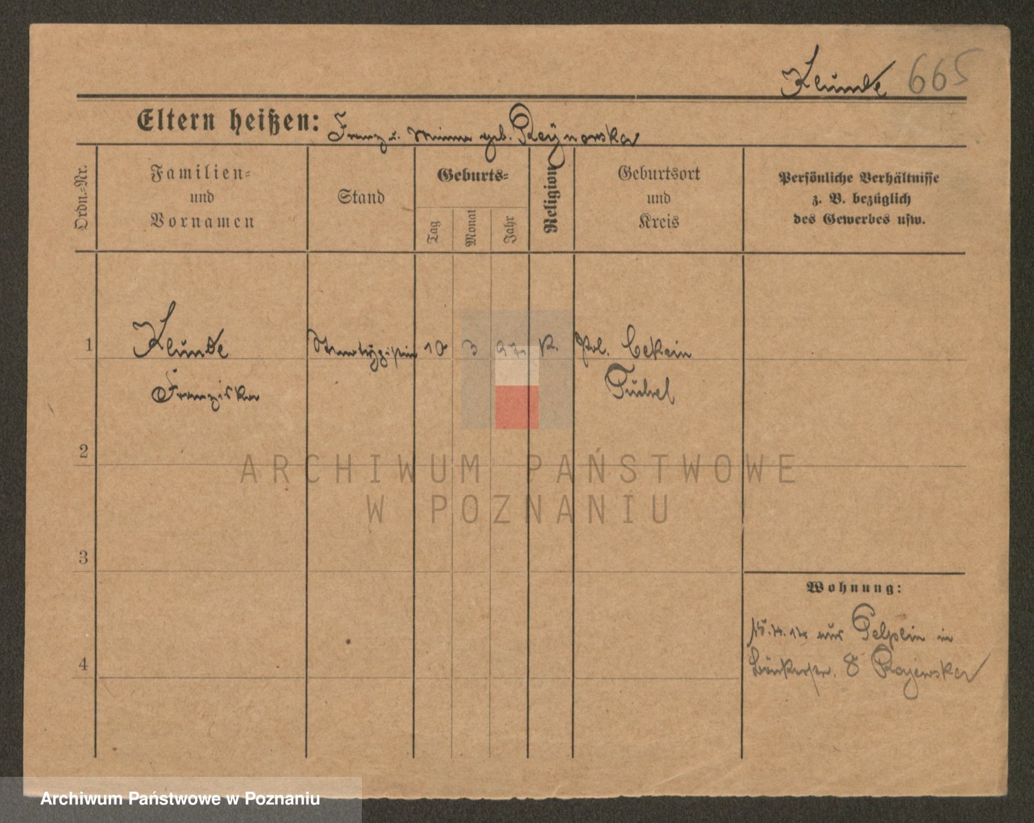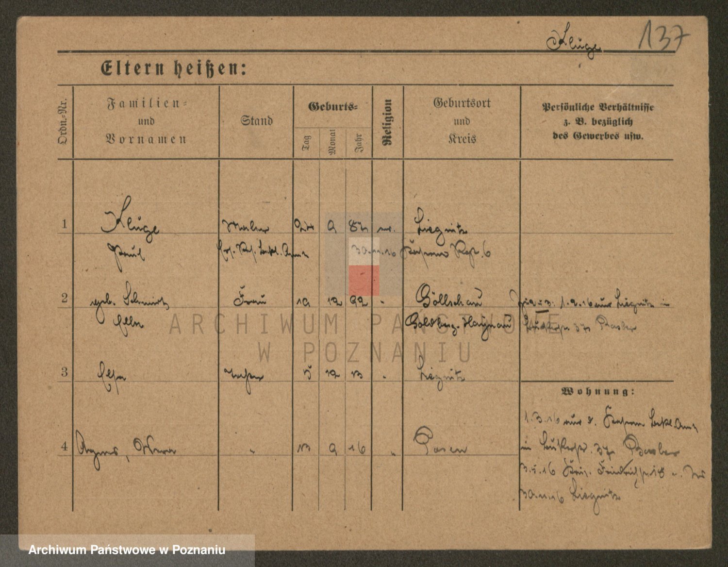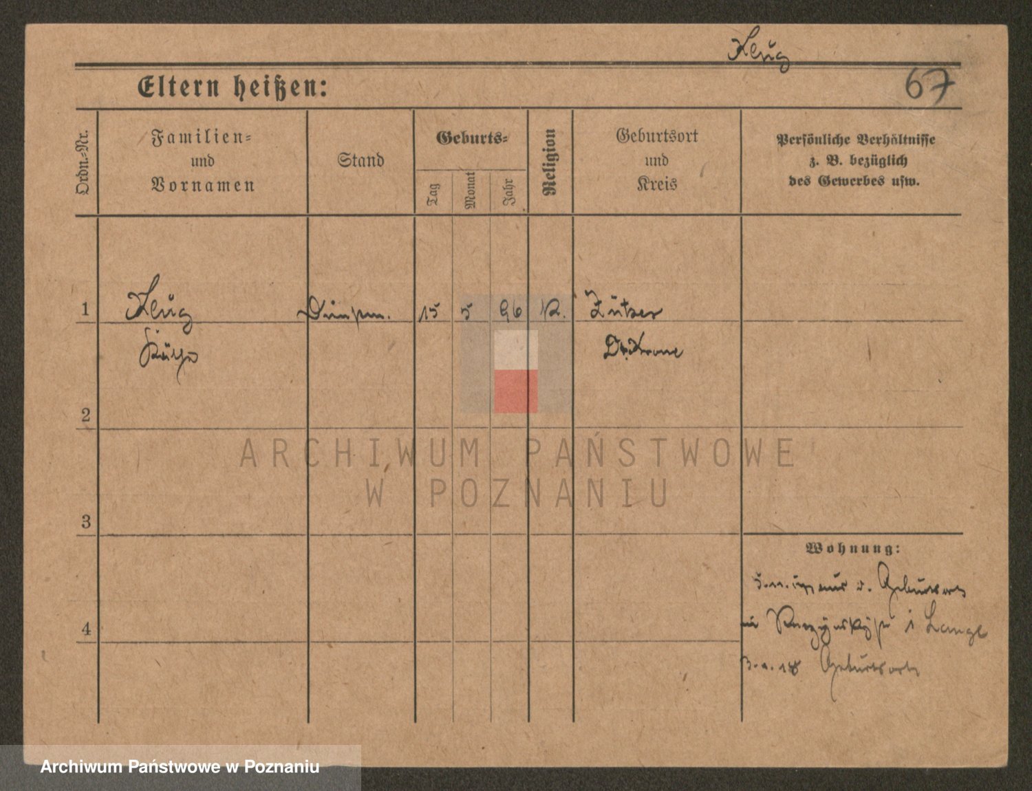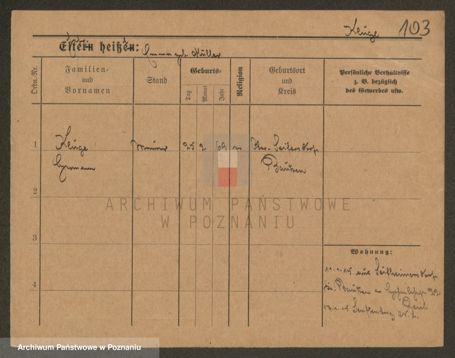 Podgląd karty osobowej dostępny jest po kliknięciu na nazwisko lub ikonkę karty. Można dokonywać powiększenia (ikony na górze) lub przechodzić między kolejnymi skanami (strzałki po bokach).