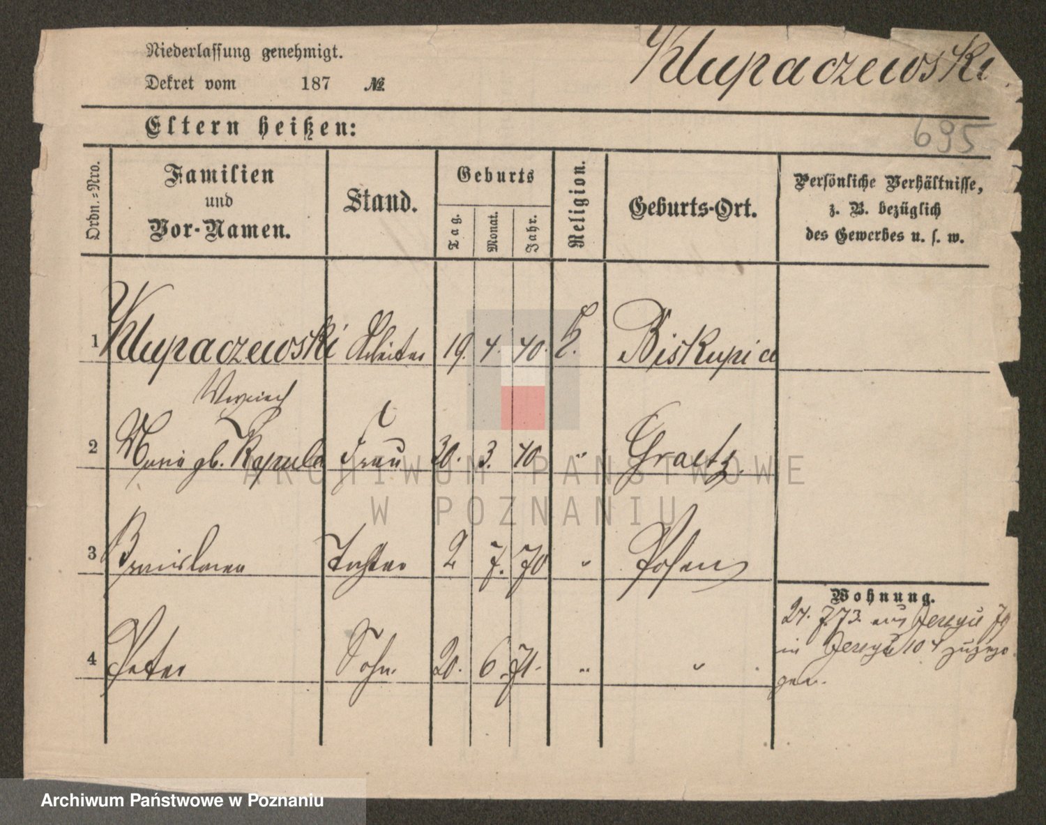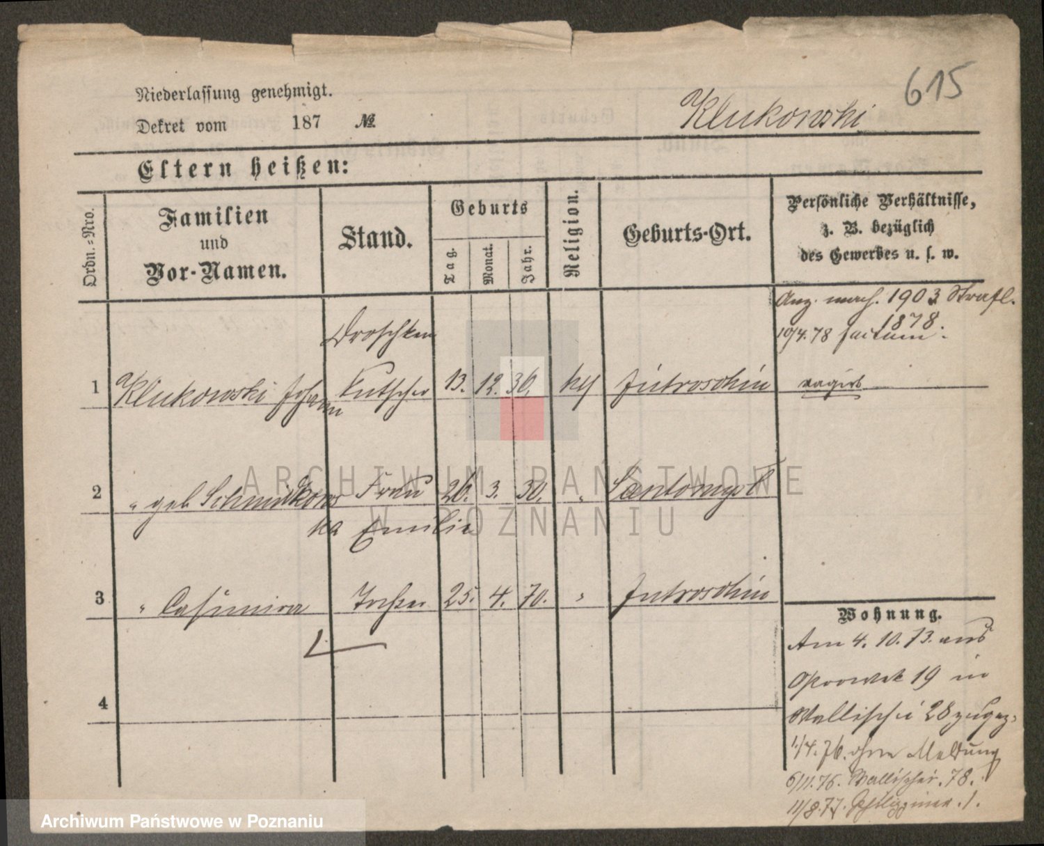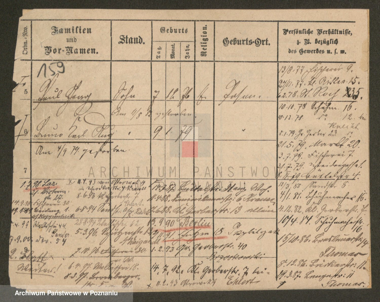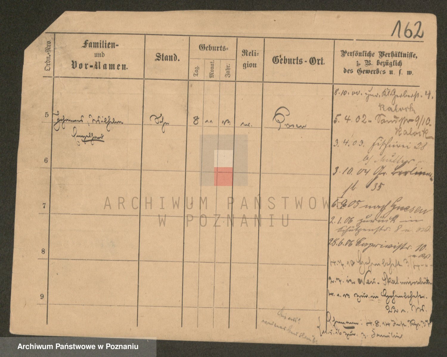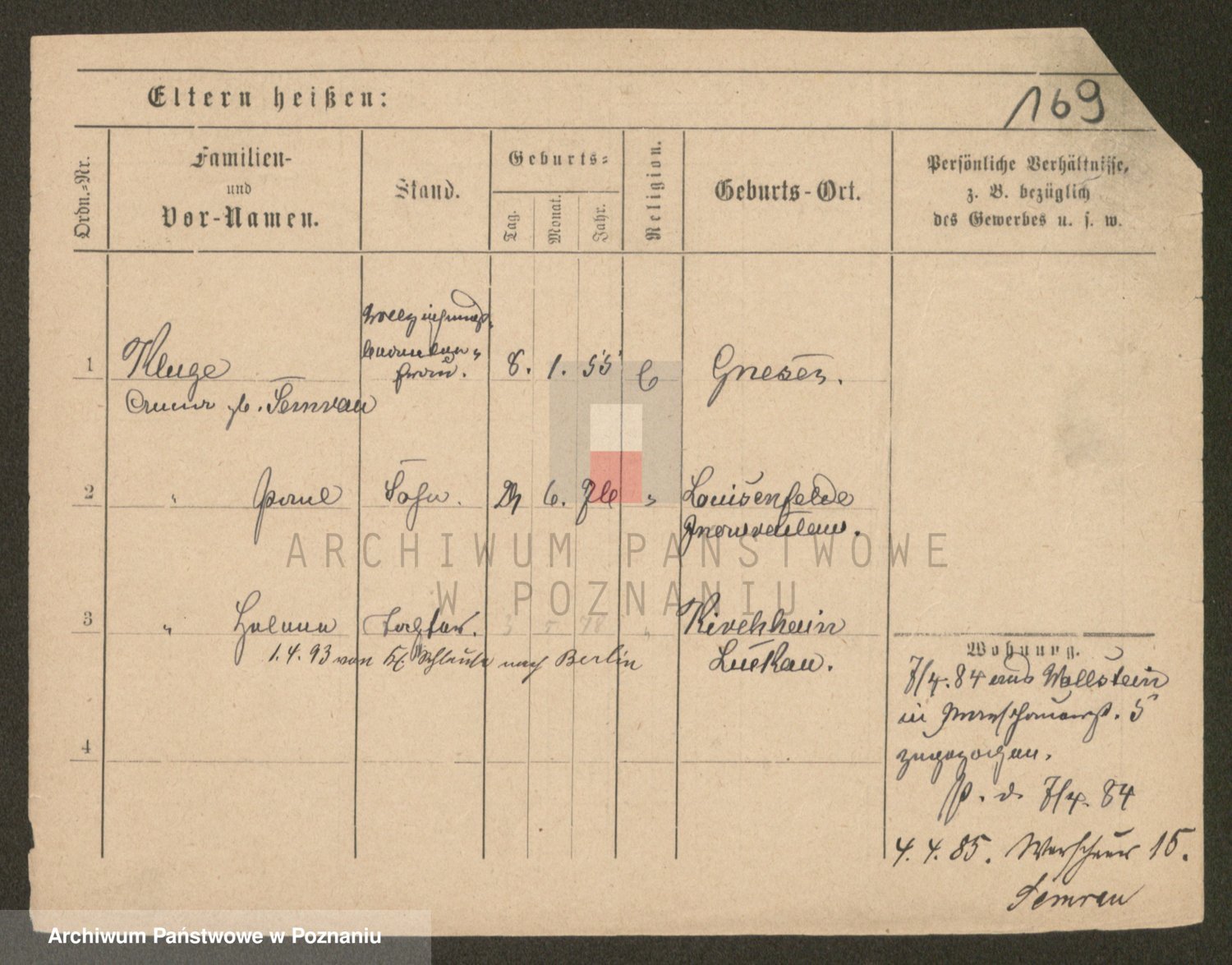 Podgląd karty osobowej dostępny jest po kliknięciu na nazwisko lub ikonkę karty. Można dokonywać powiększenia (ikony na górze) lub przechodzić między kolejnymi skanami (strzałki po bokach).