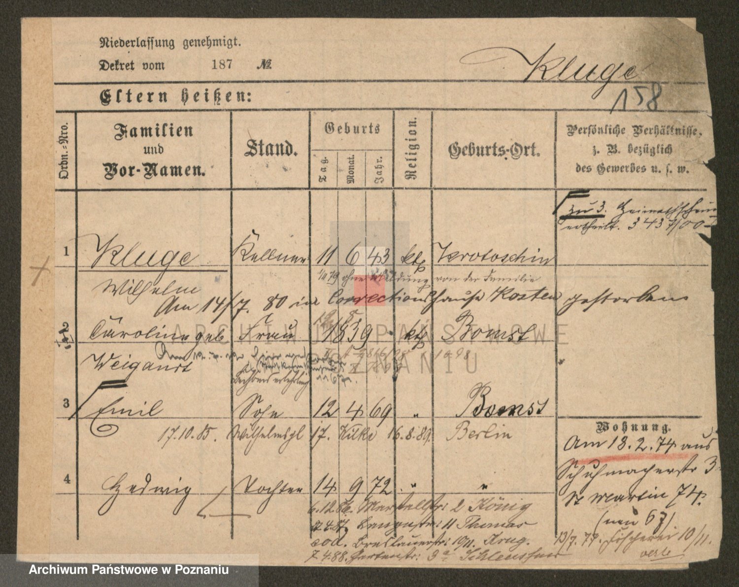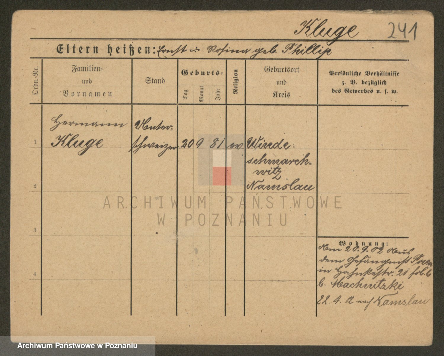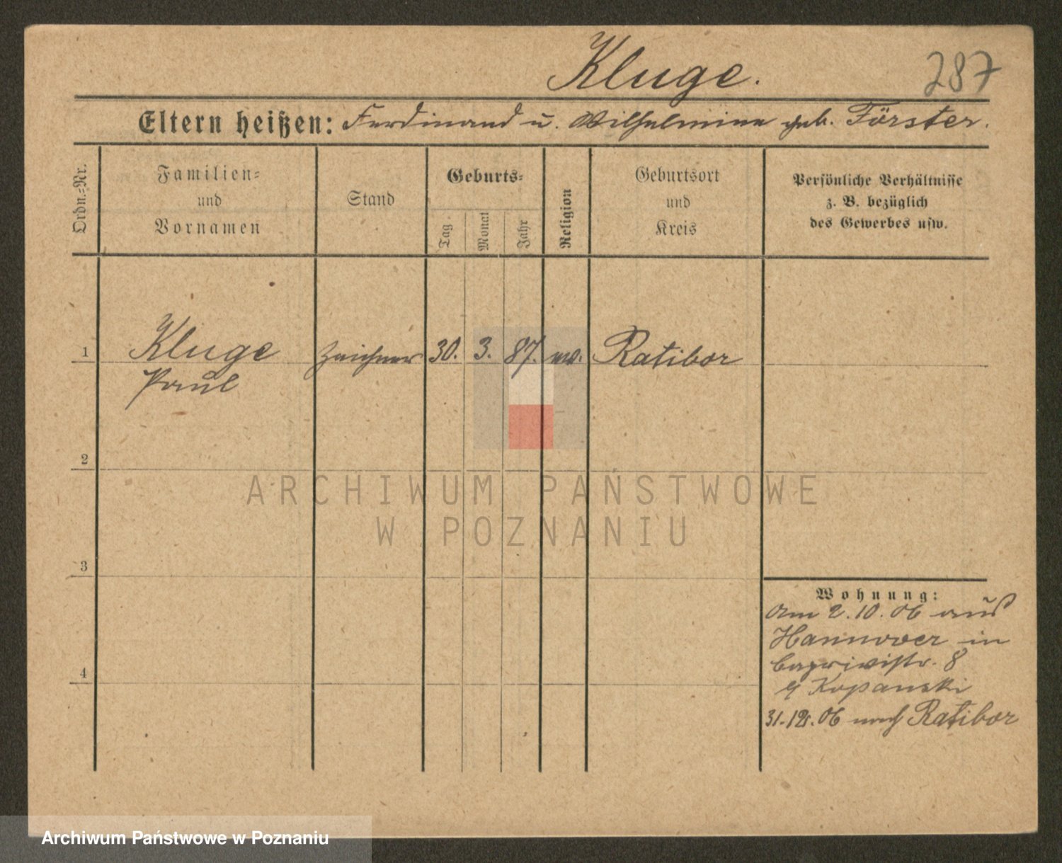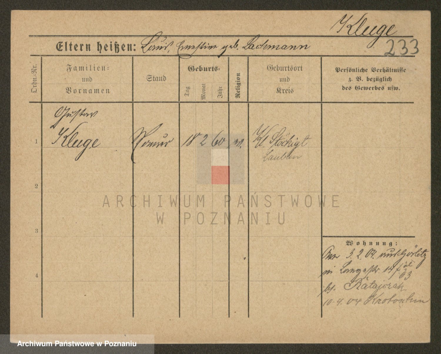 Klug z d. Komisarek, Emilie Karoline