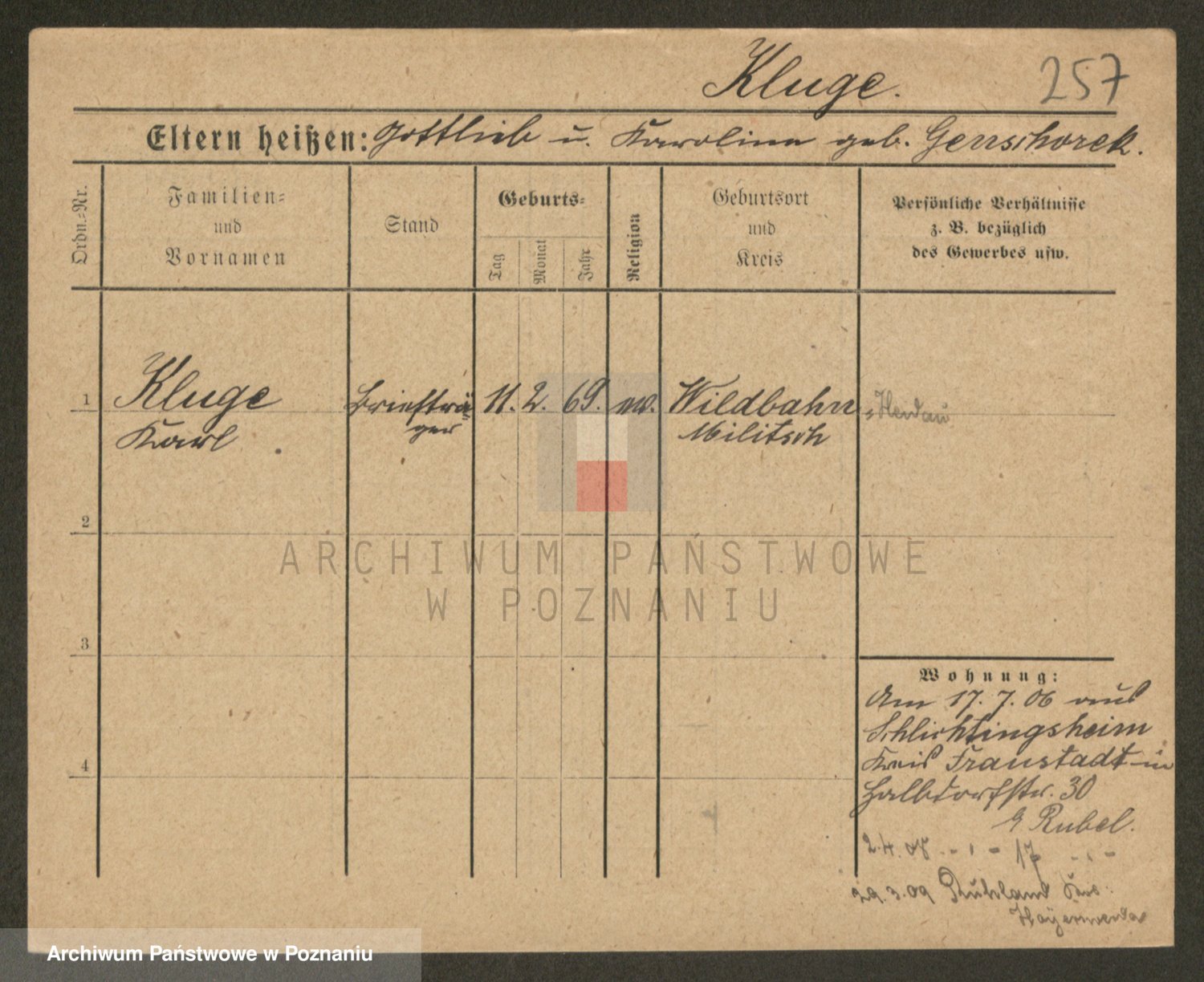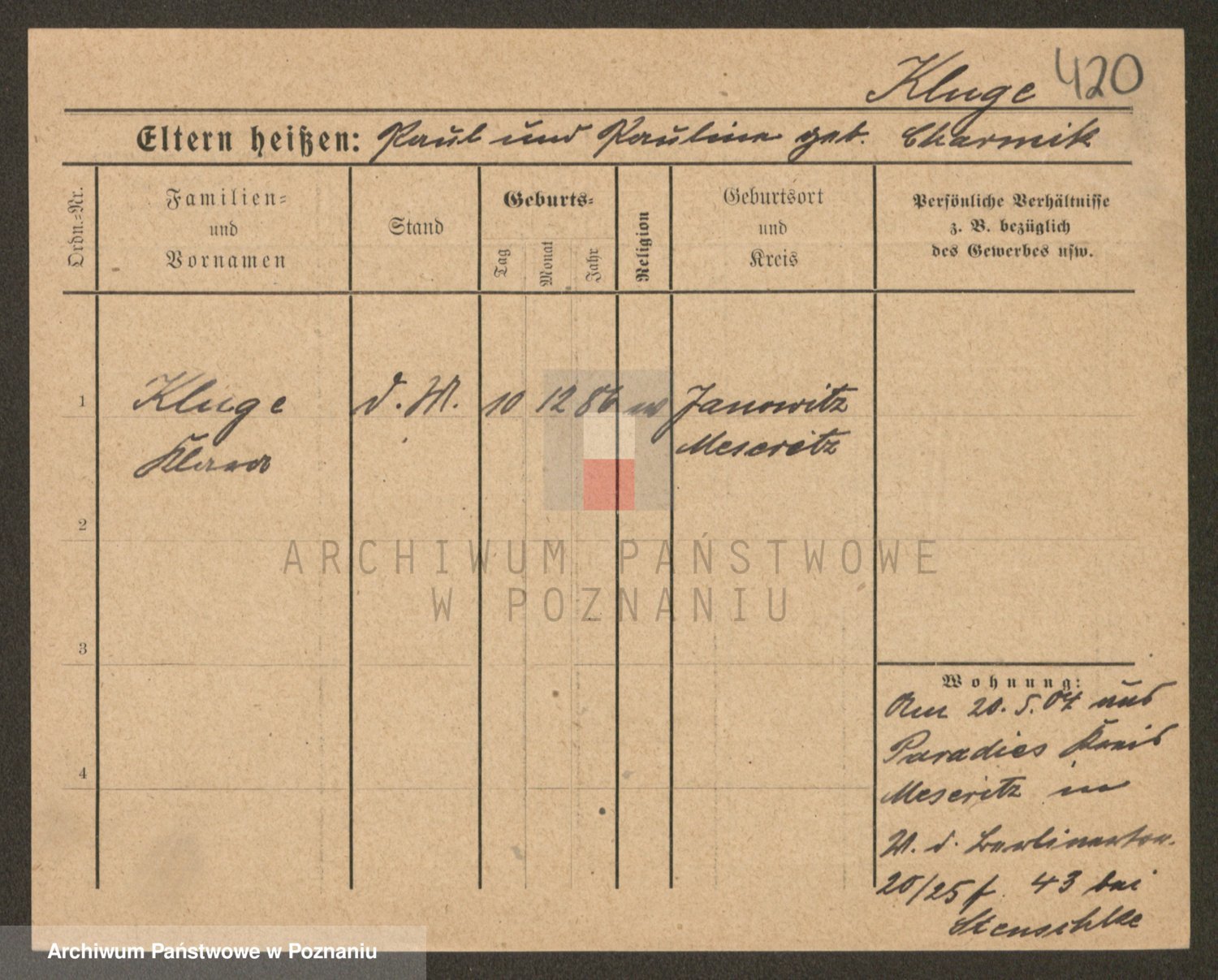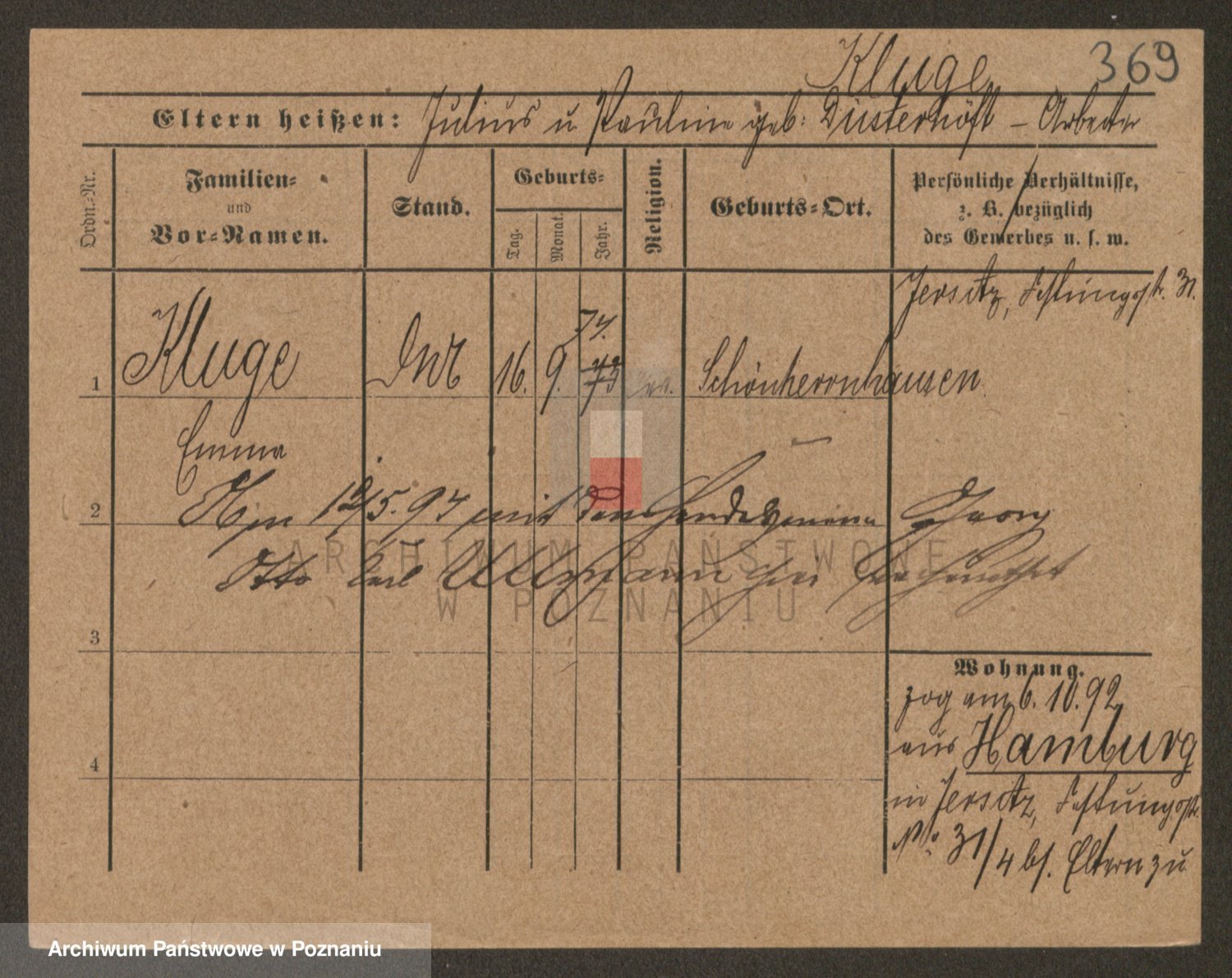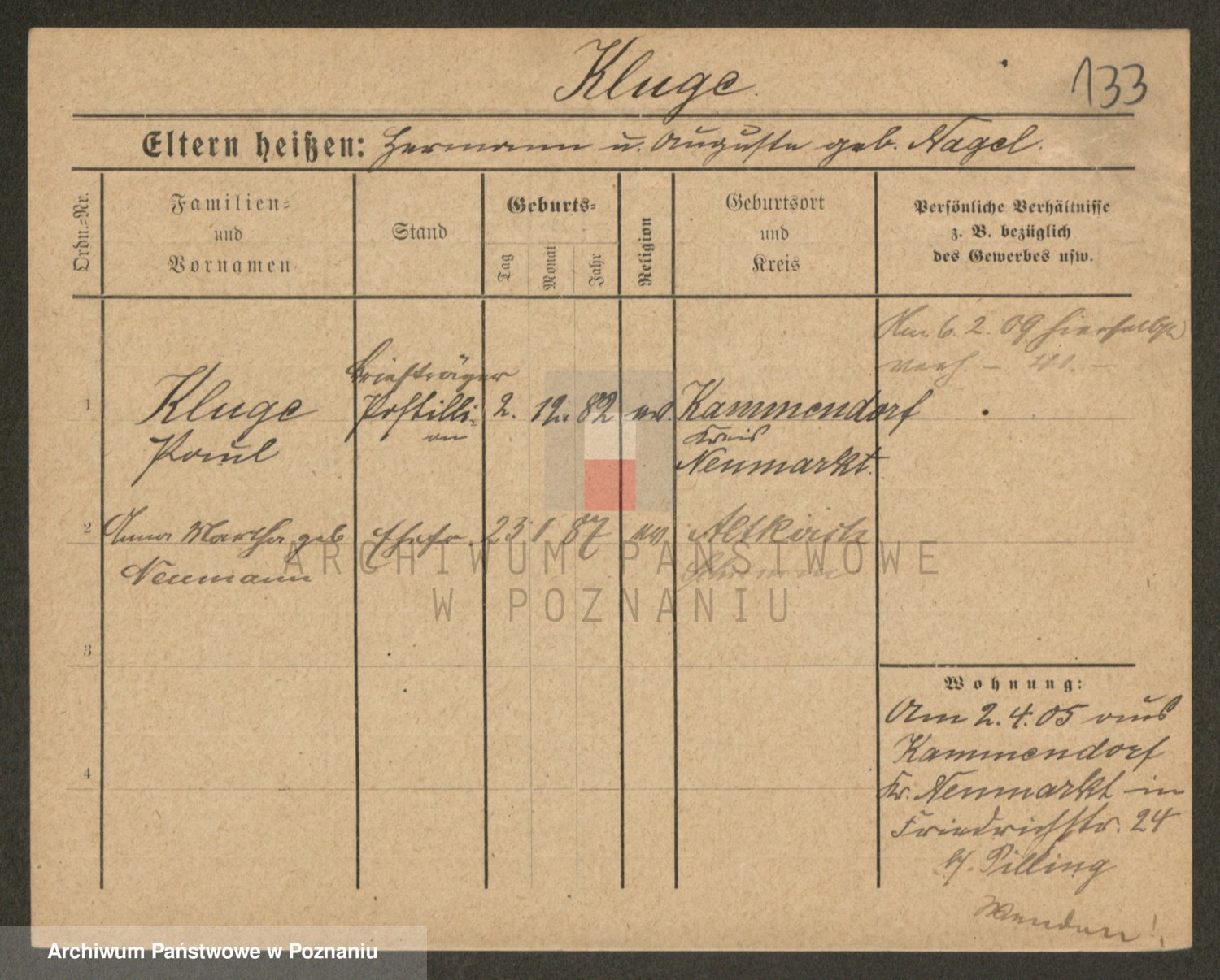 Klug z d. Komisarek, Emilie Karoline