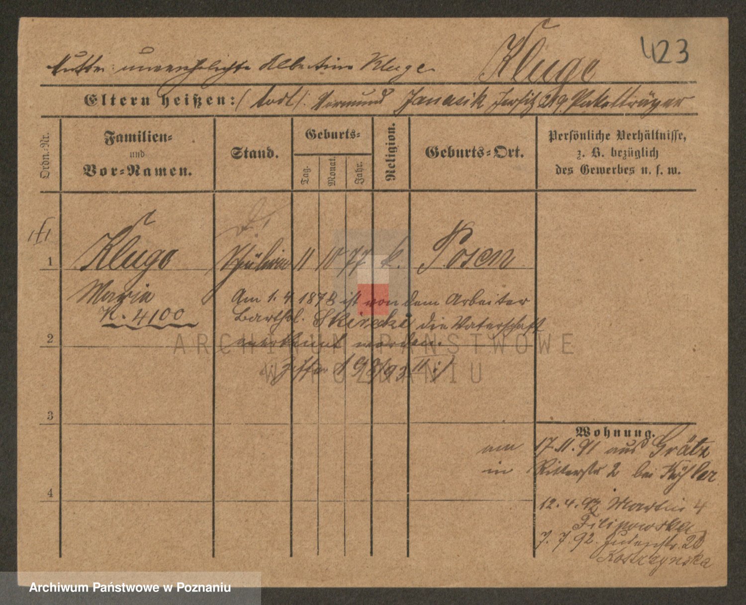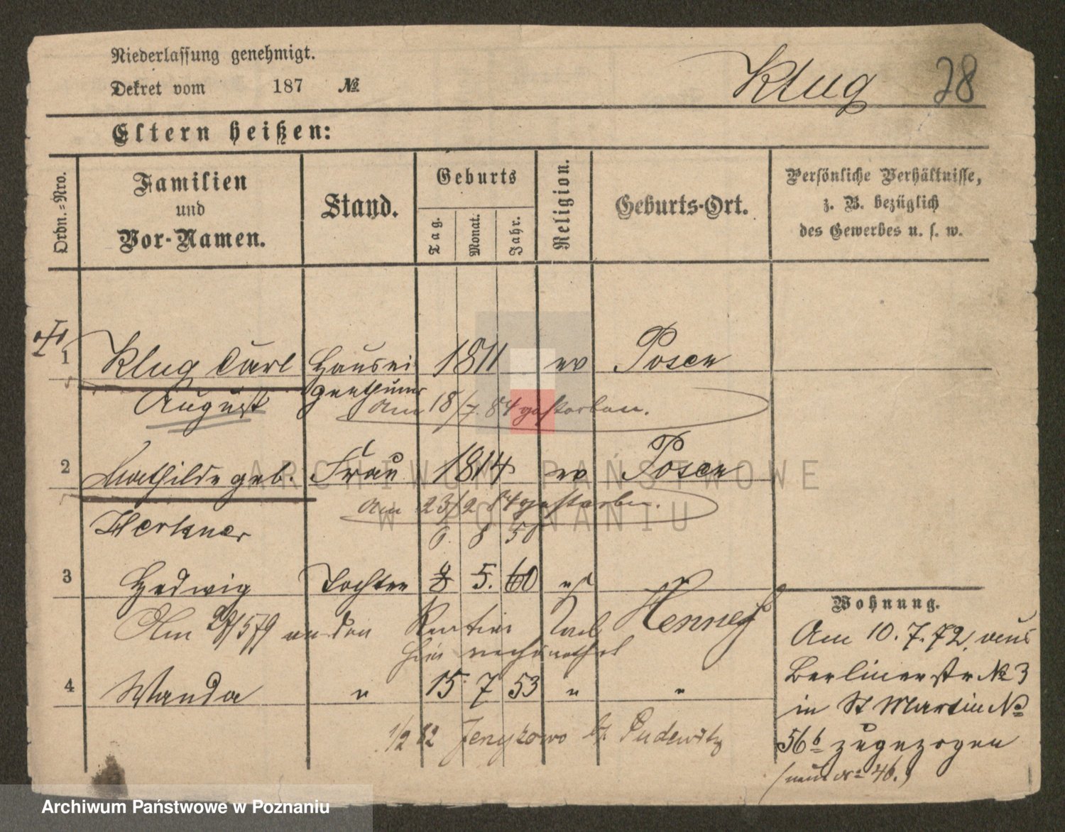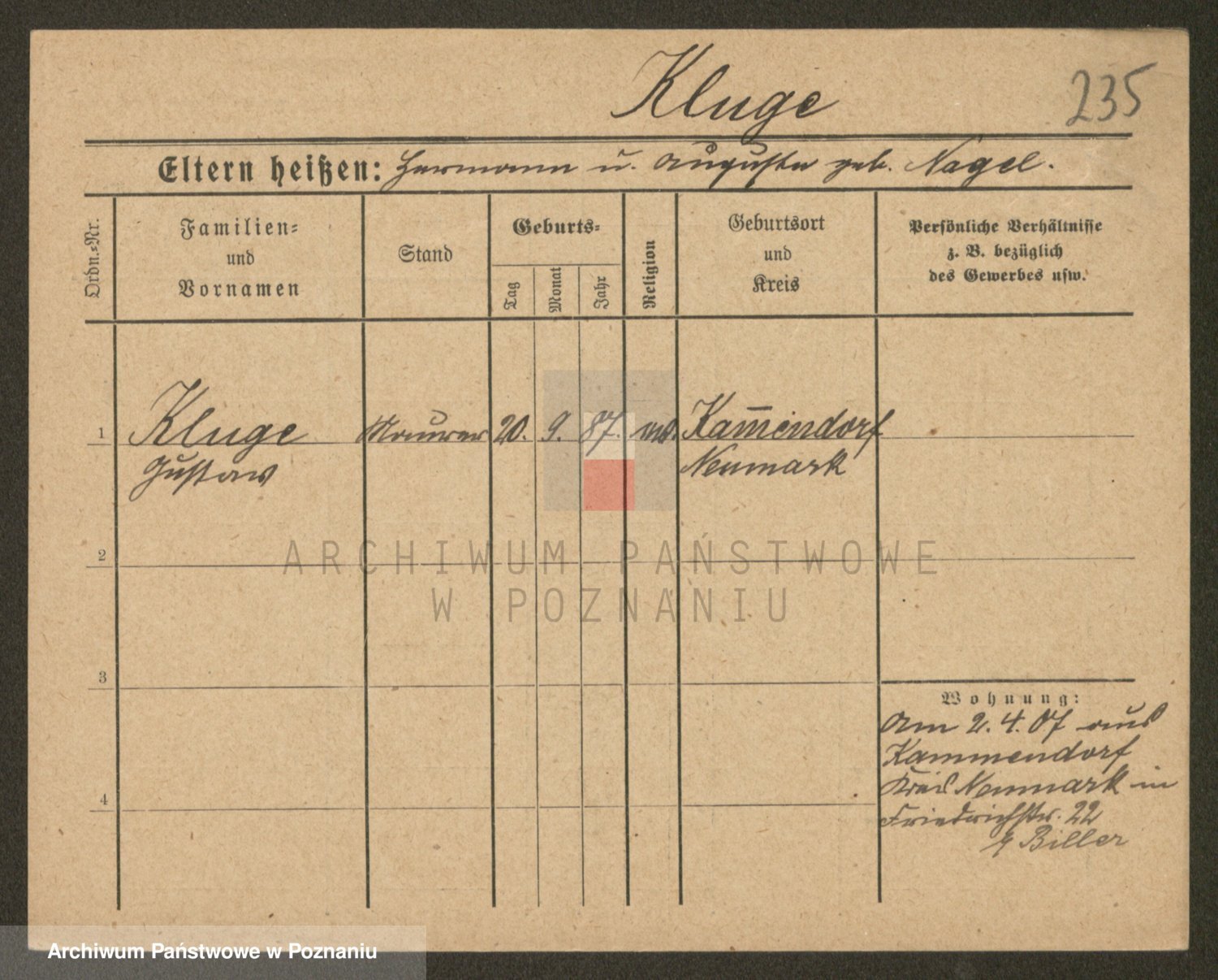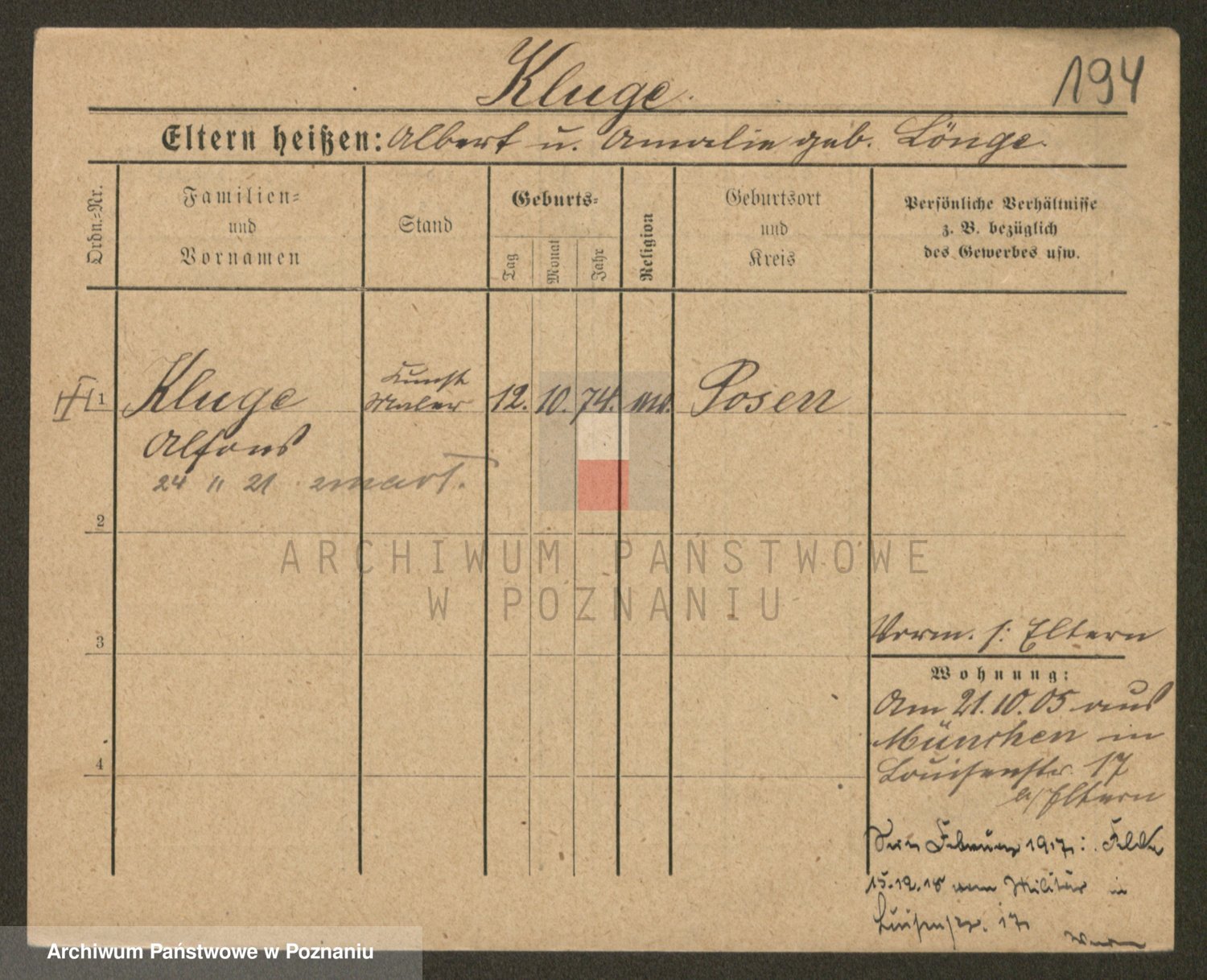 Klug z d. Komisarek, Emilie Karoline