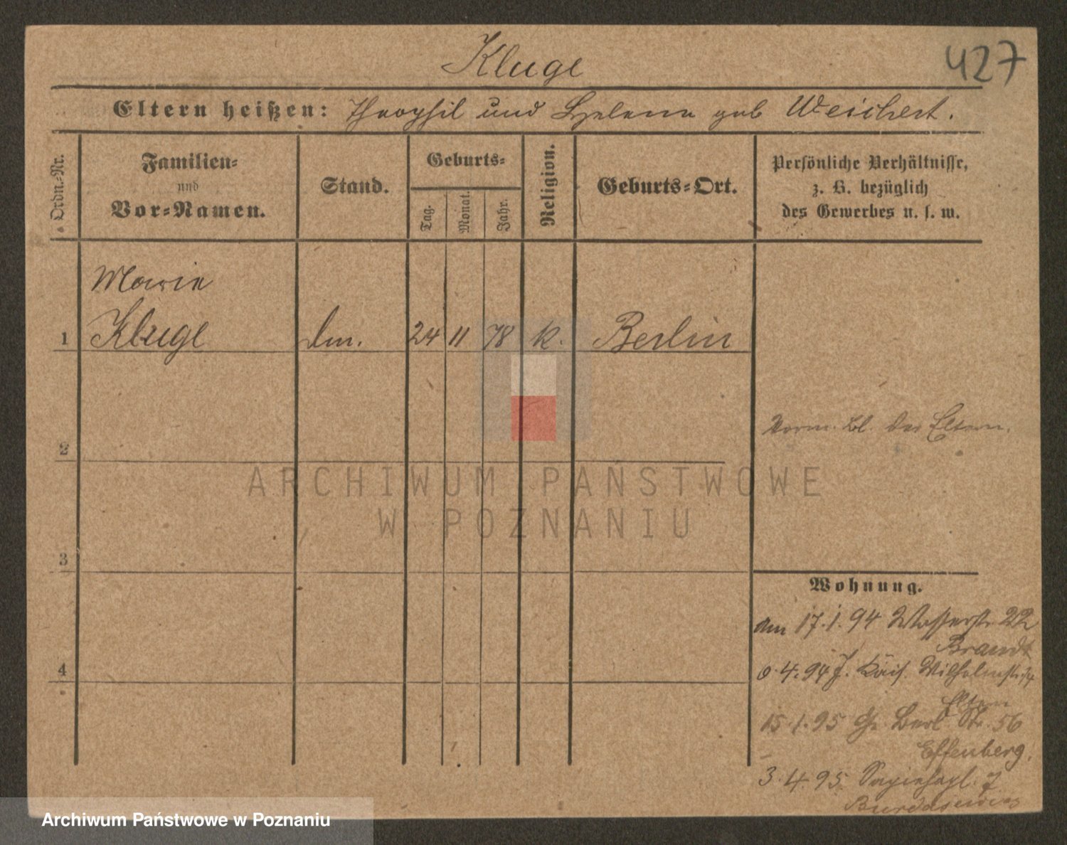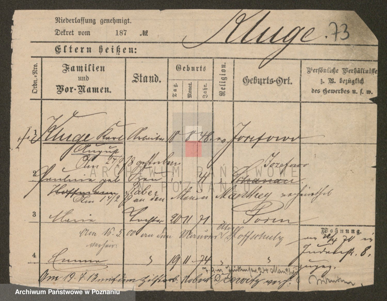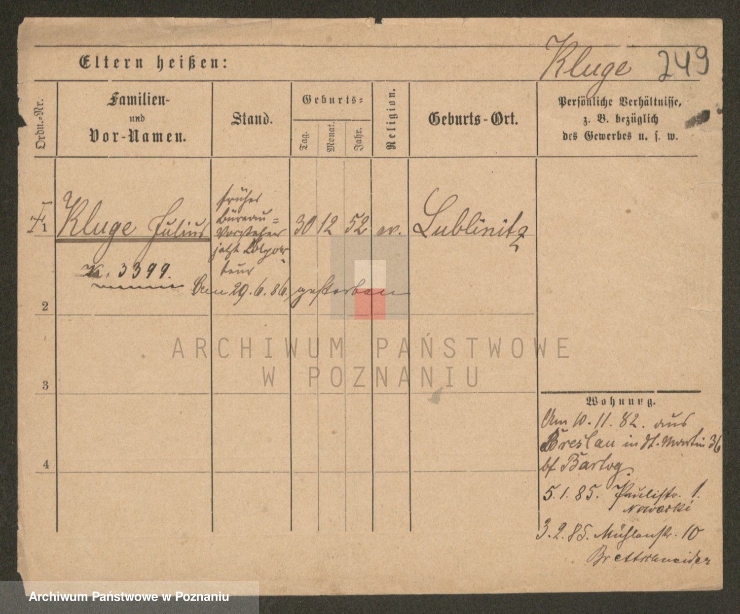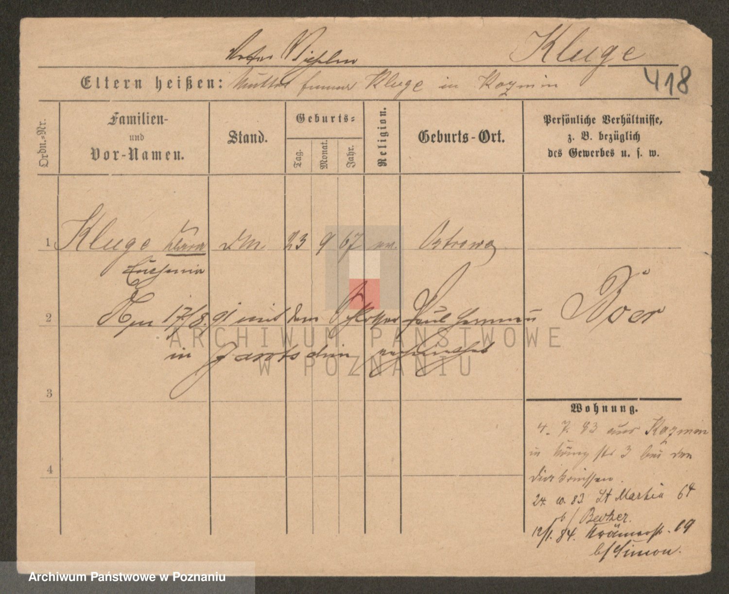 Klug z d. Komisarek, Emilie Karoline