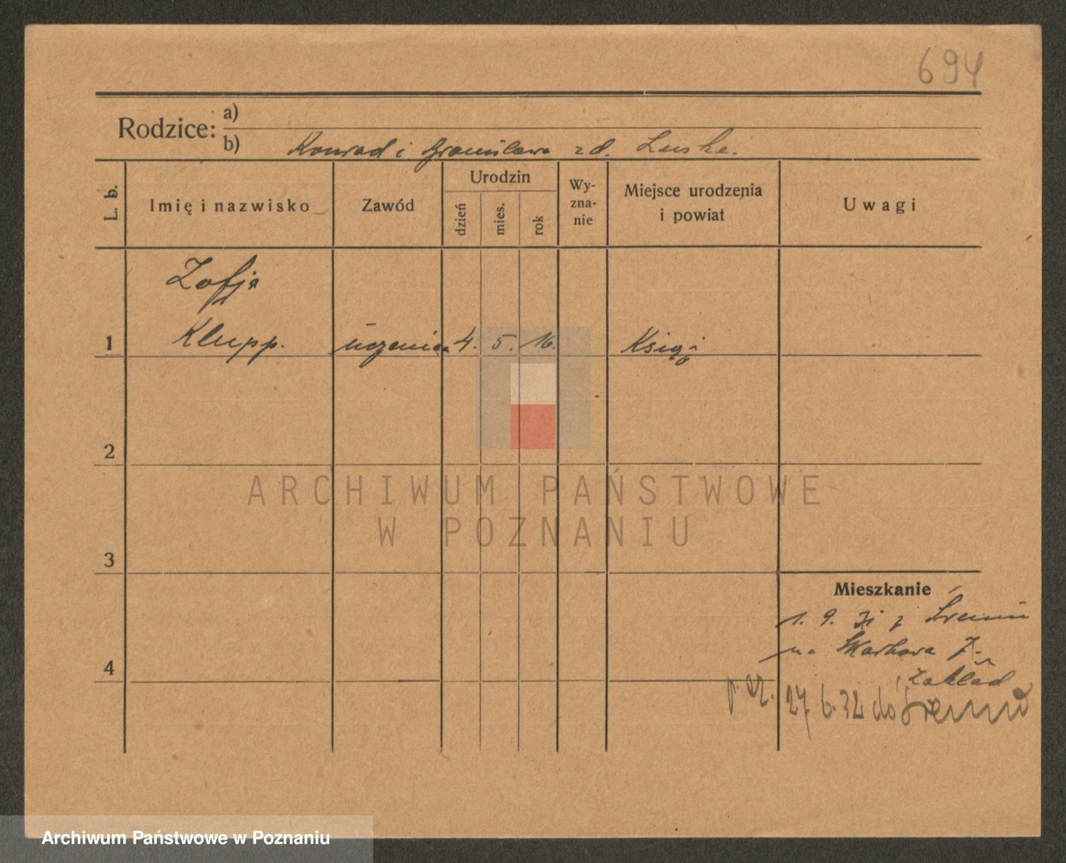 Klupś, Zofja