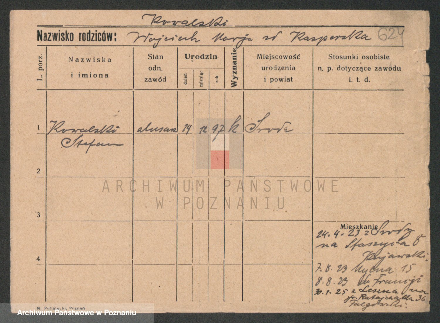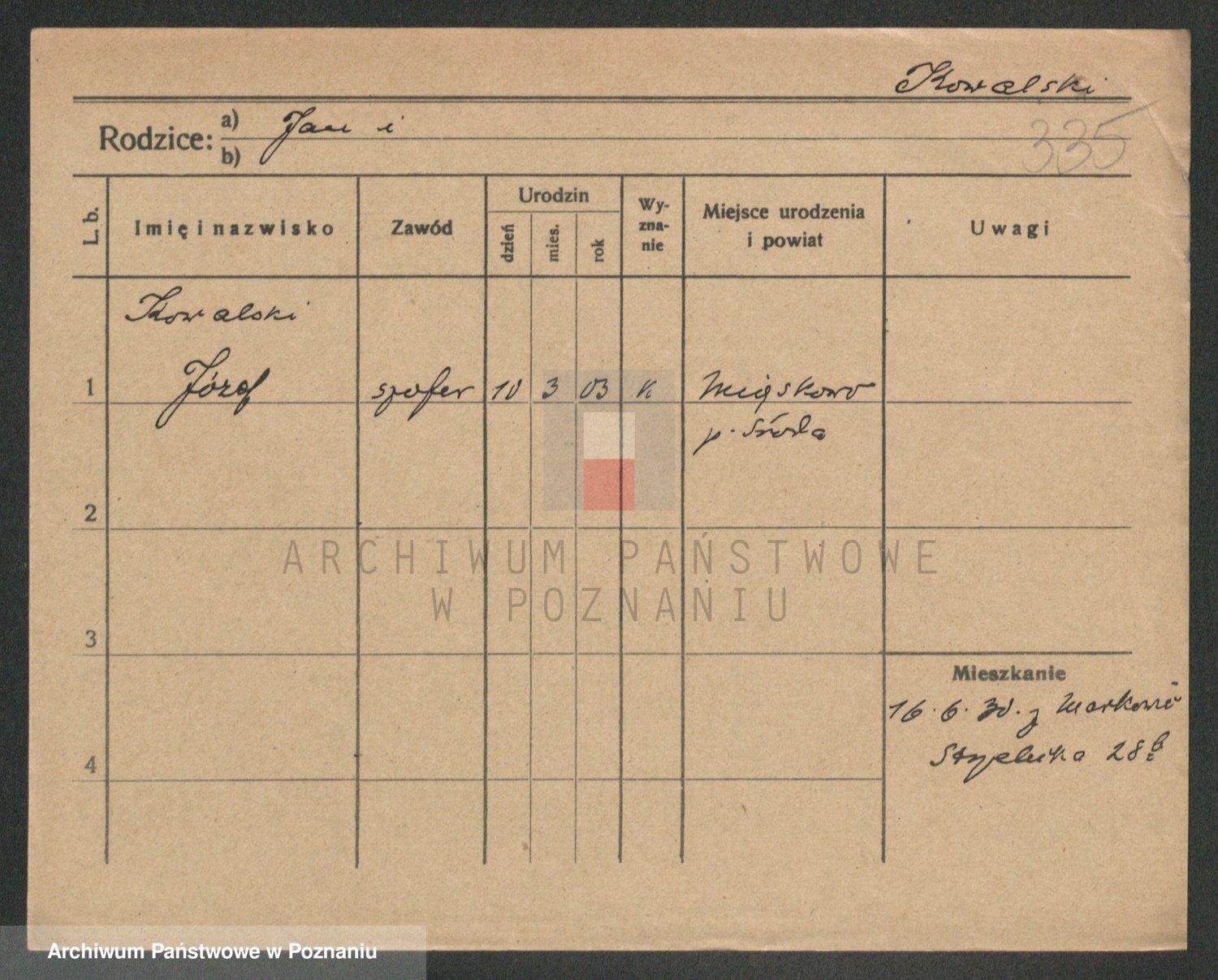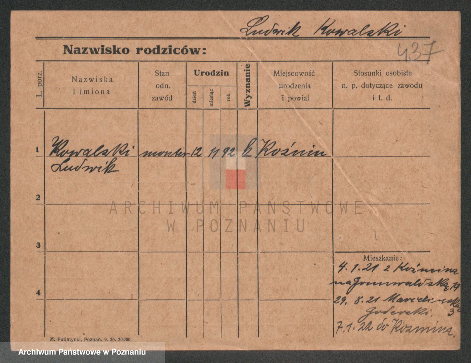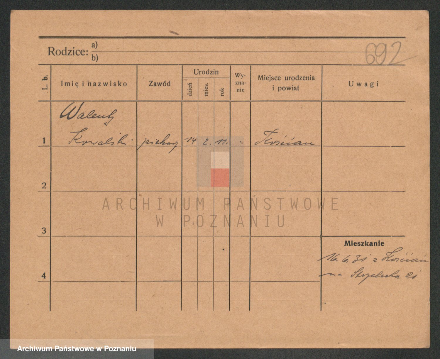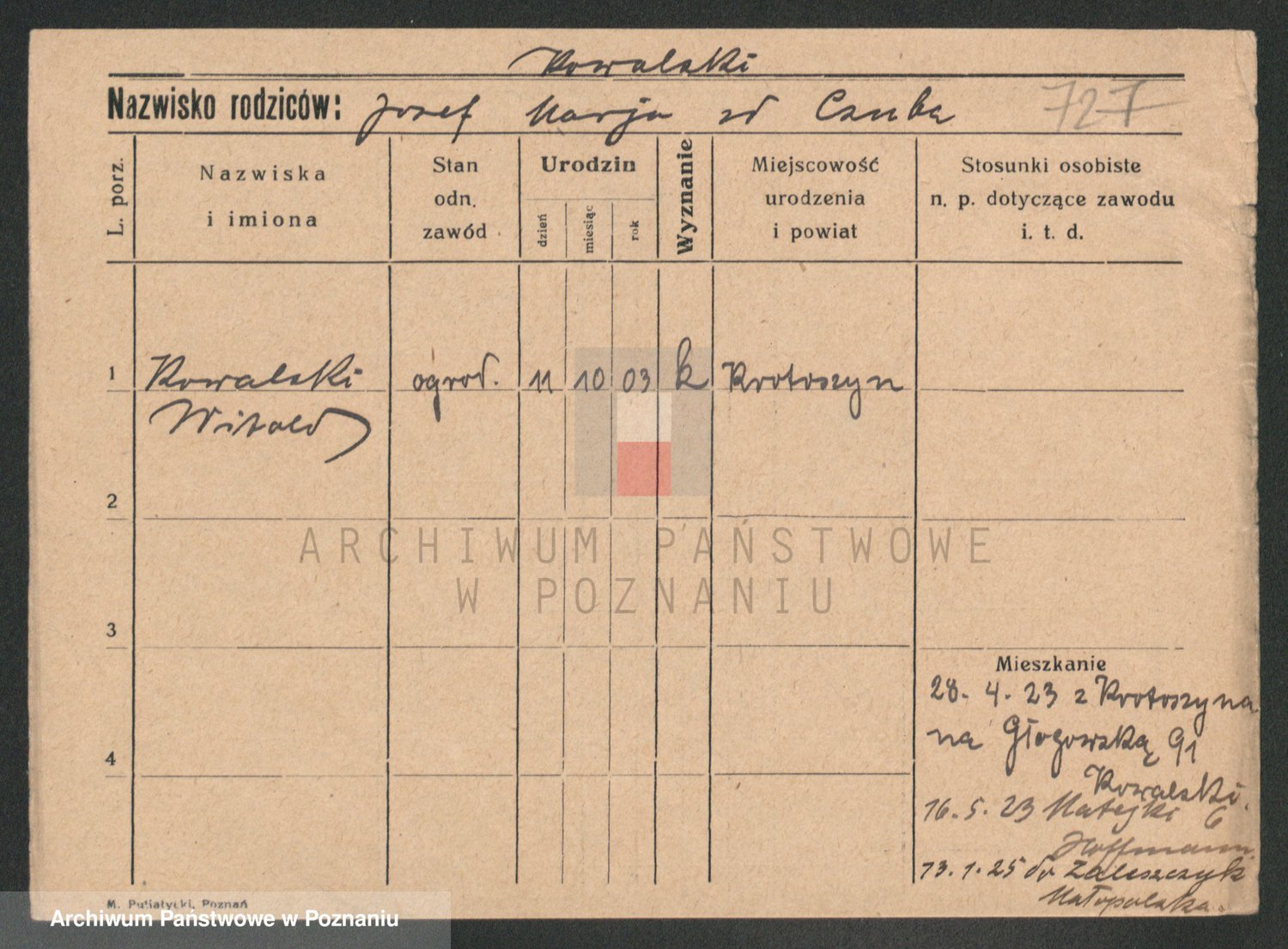 Podgląd karty osobowej dostępny jest po kliknięciu na nazwisko lub ikonkę karty. Można dokonywać powiększenia (ikony na górze) lub przechodzić między kolejnymi skanami (strzałki po bokach).