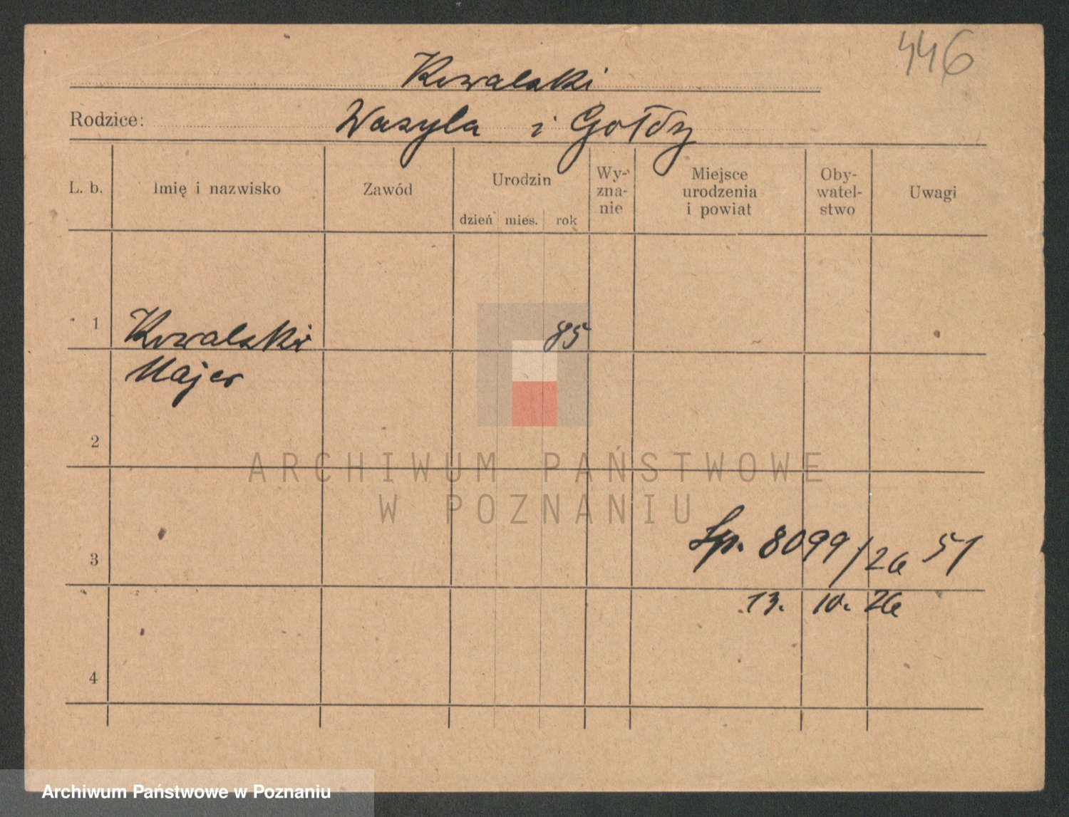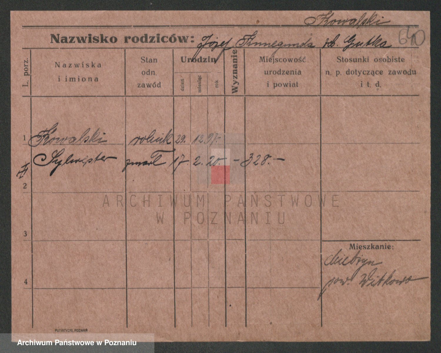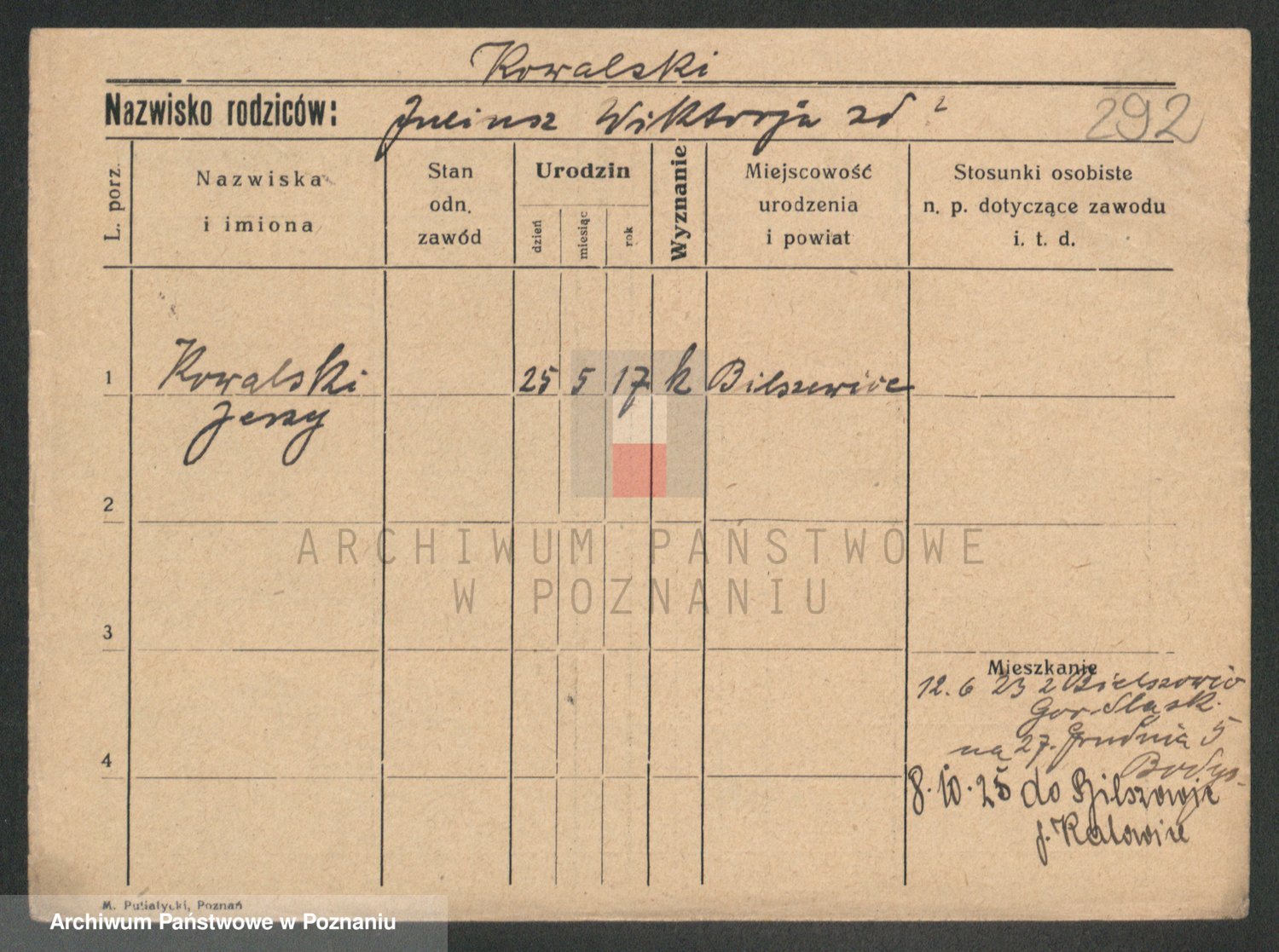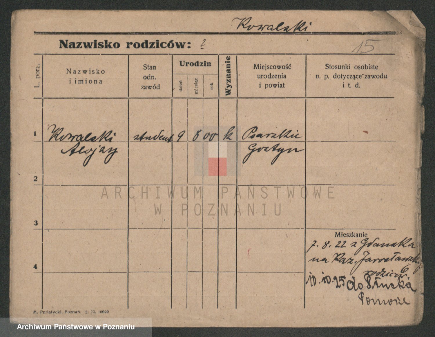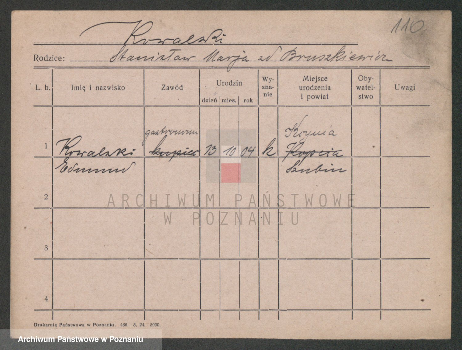 Podgląd karty osobowej dostępny jest po kliknięciu na nazwisko lub ikonkę karty. Można dokonywać powiększenia (ikony na górze) lub przechodzić między kolejnymi skanami (strzałki po bokach).