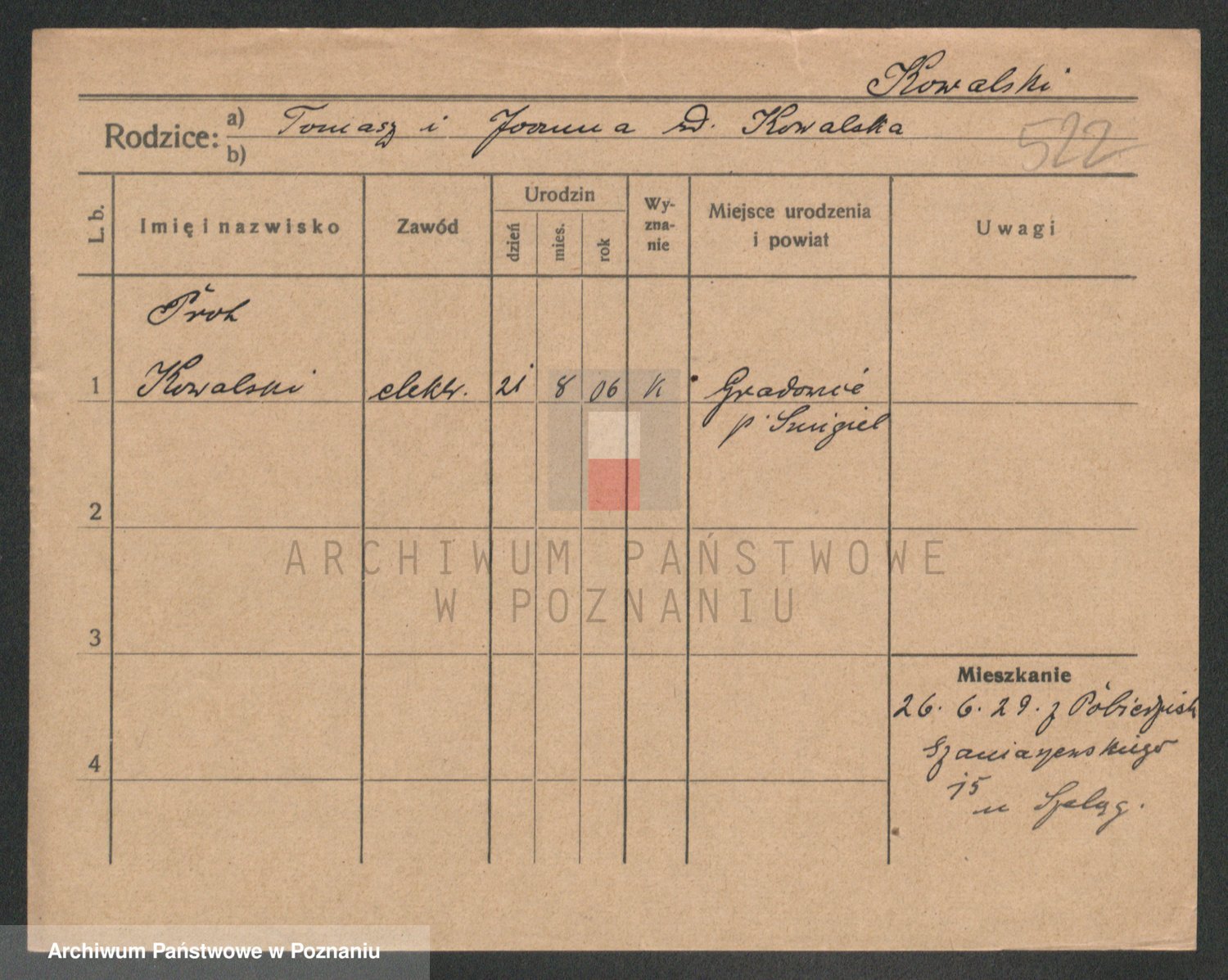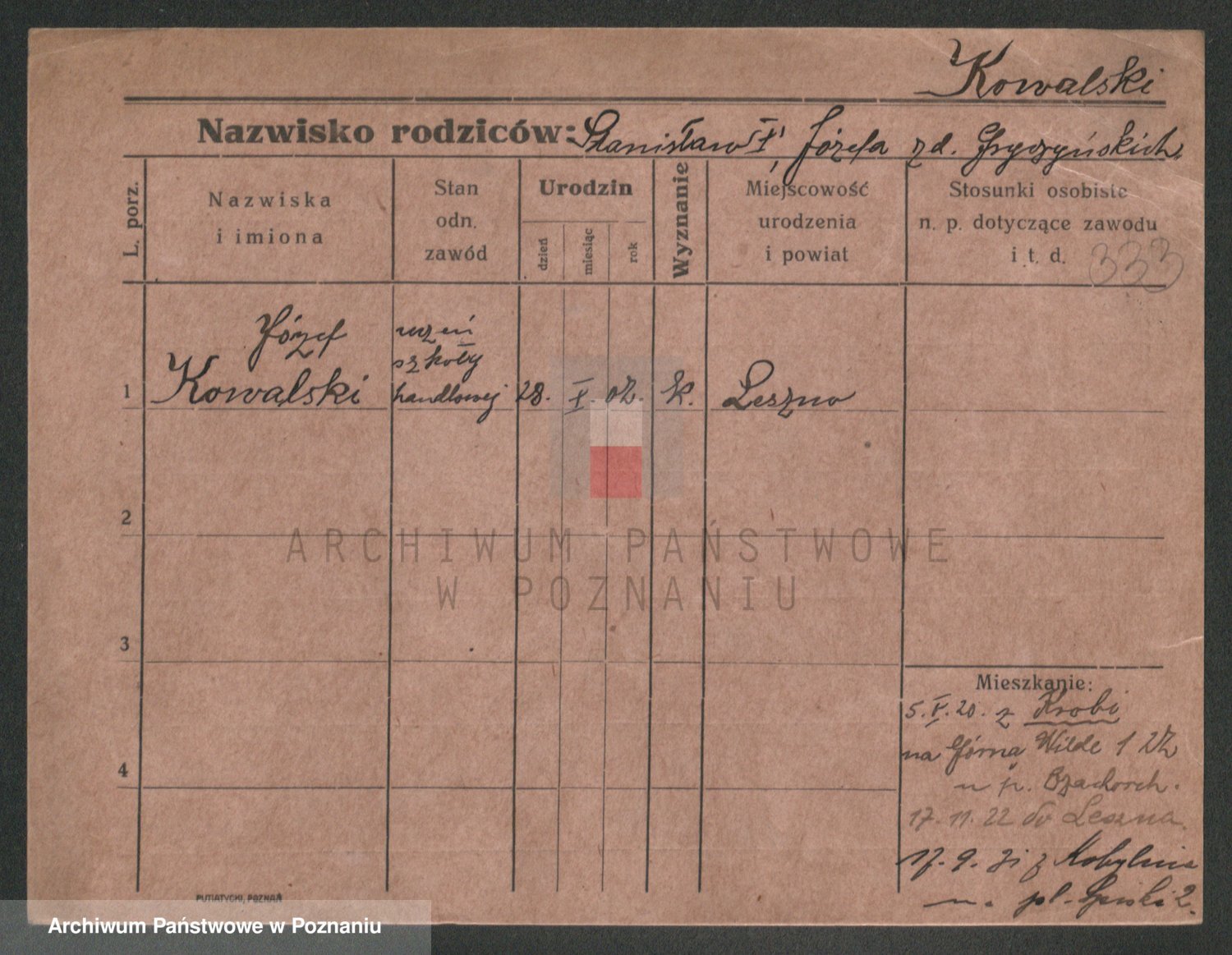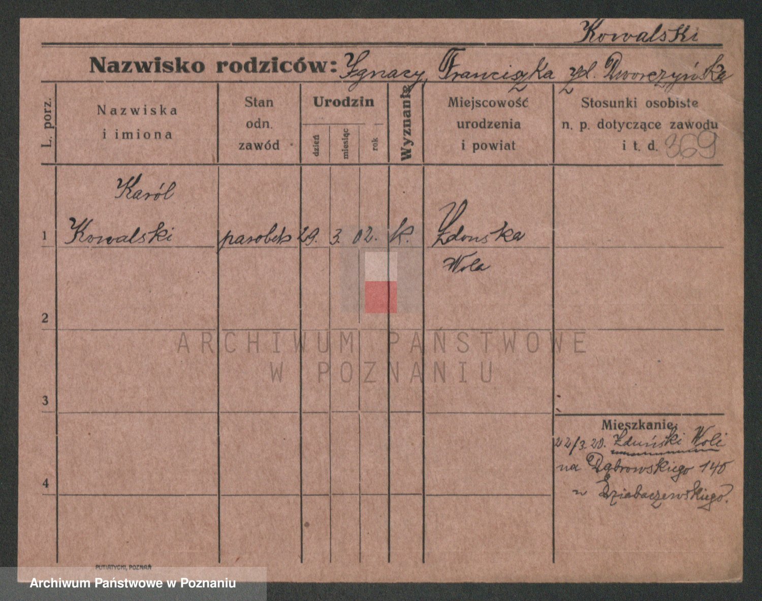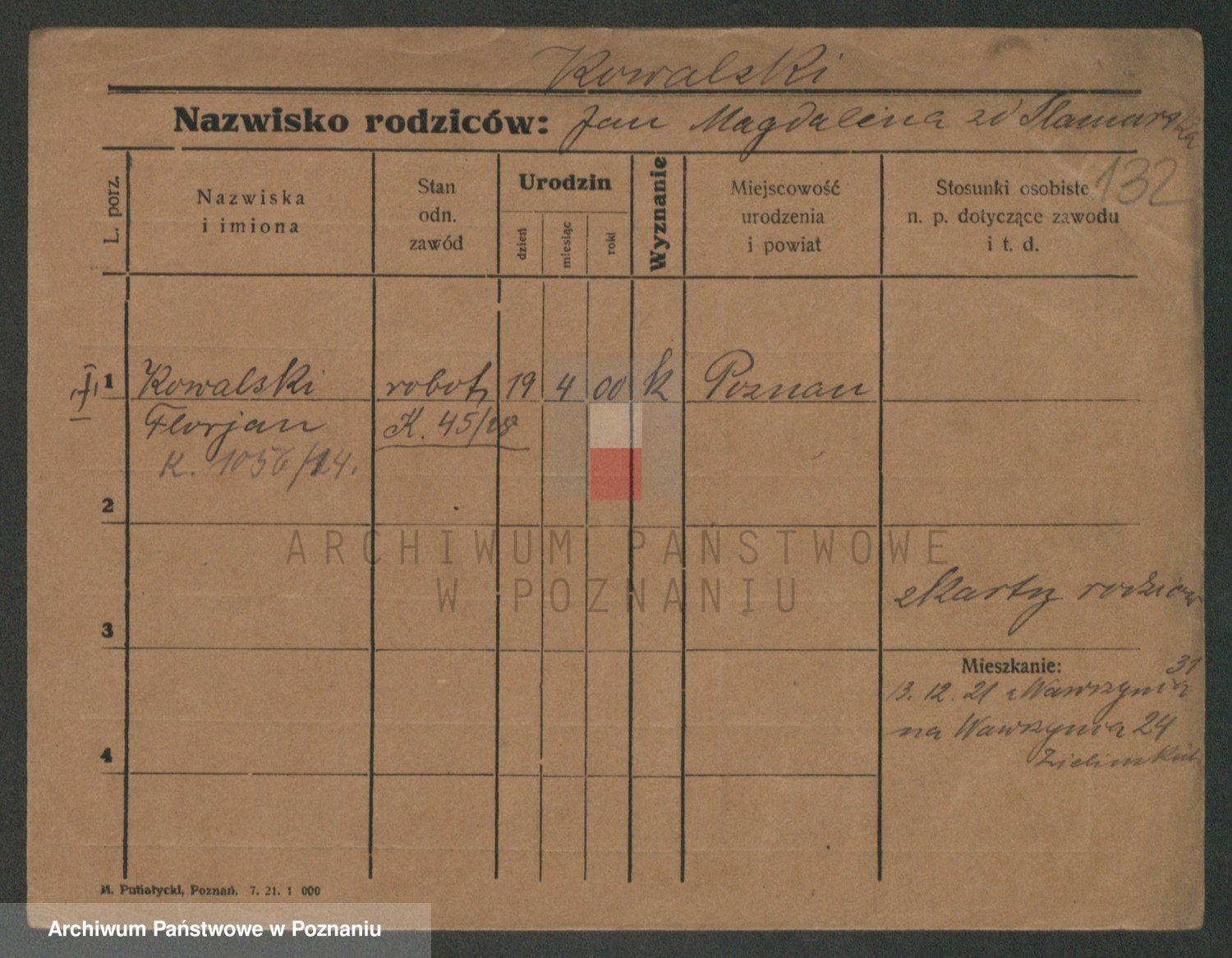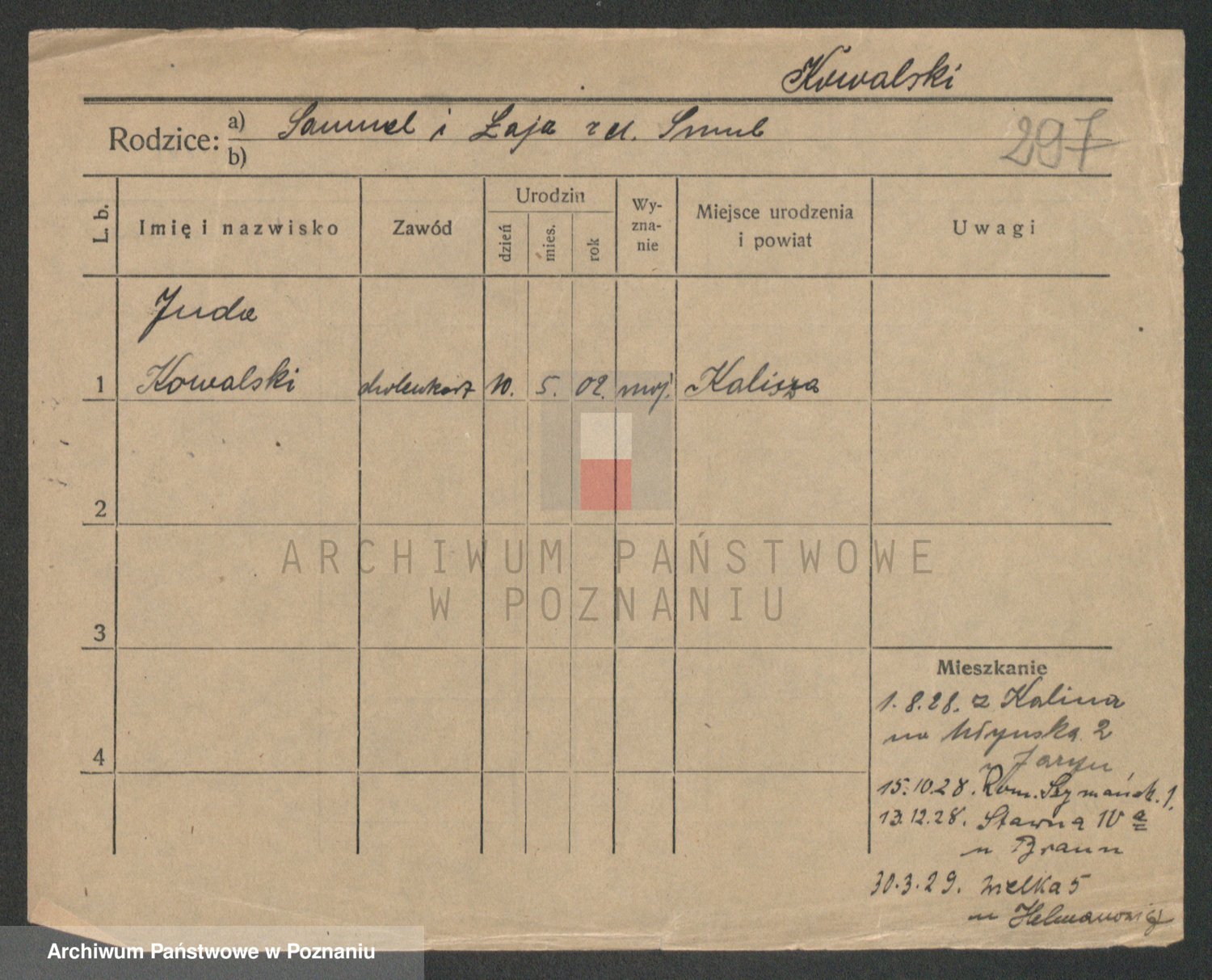 Podgląd karty osobowej dostępny jest po kliknięciu na nazwisko lub ikonkę karty. Można dokonywać powiększenia (ikony na górze) lub przechodzić między kolejnymi skanami (strzałki po bokach).