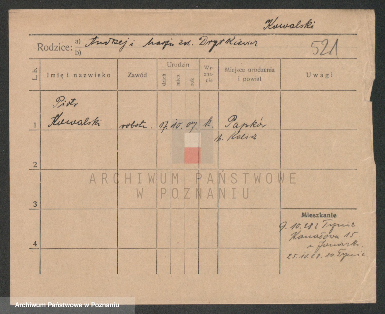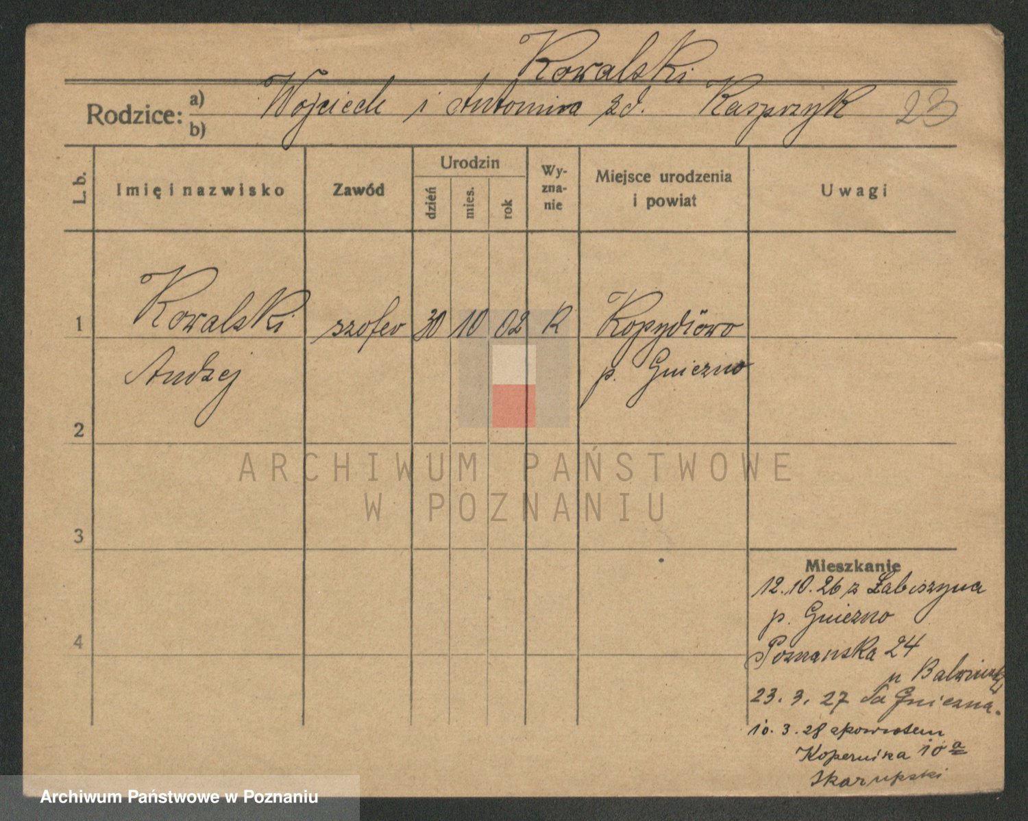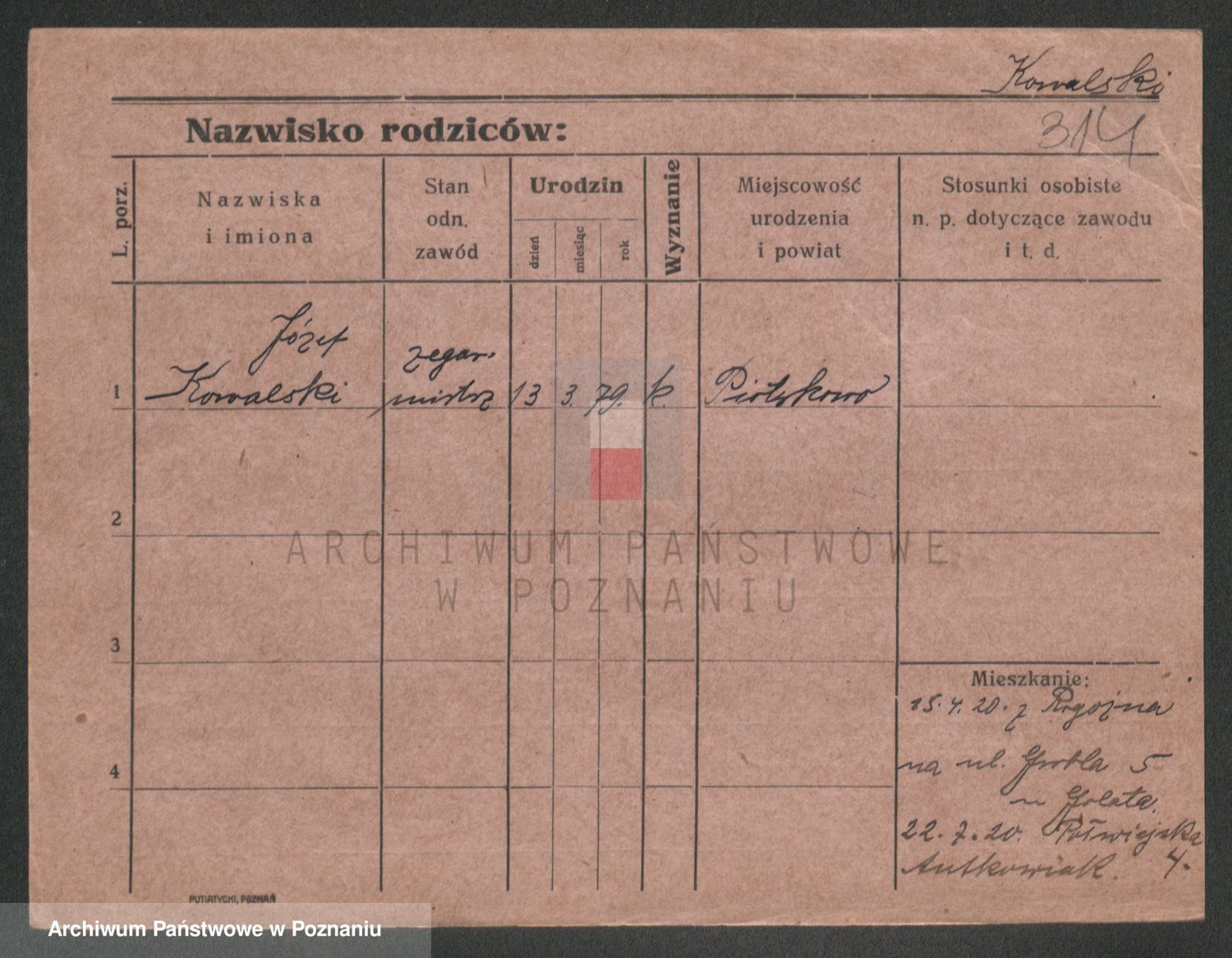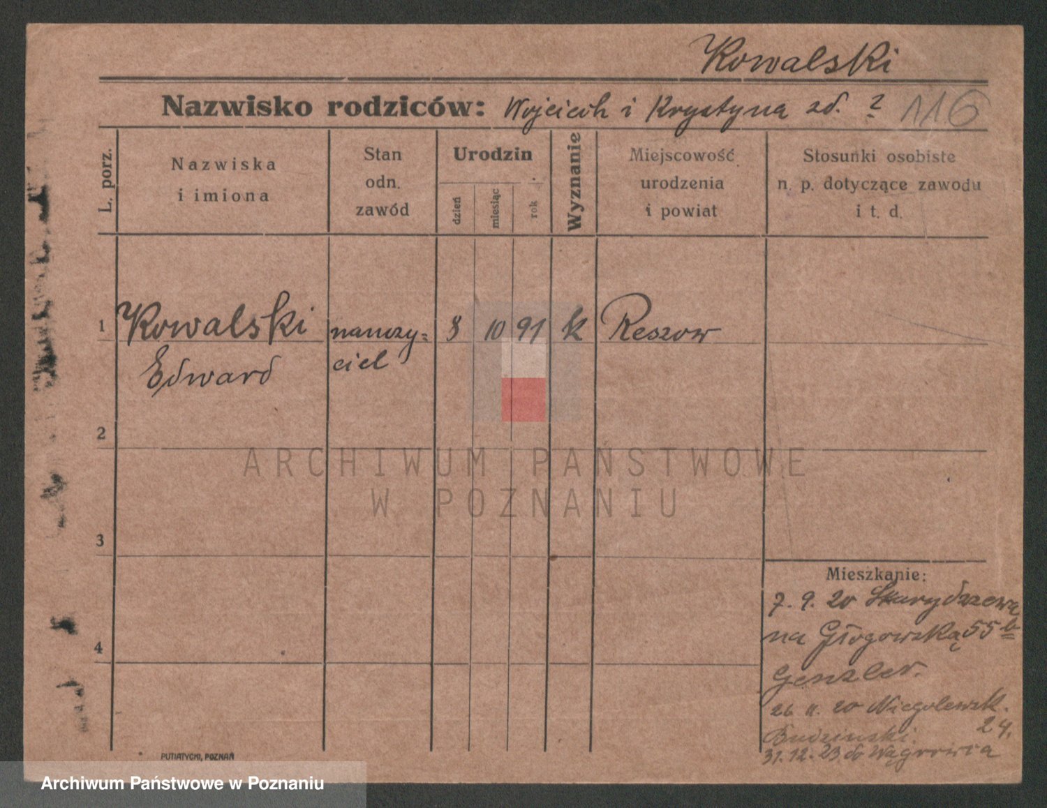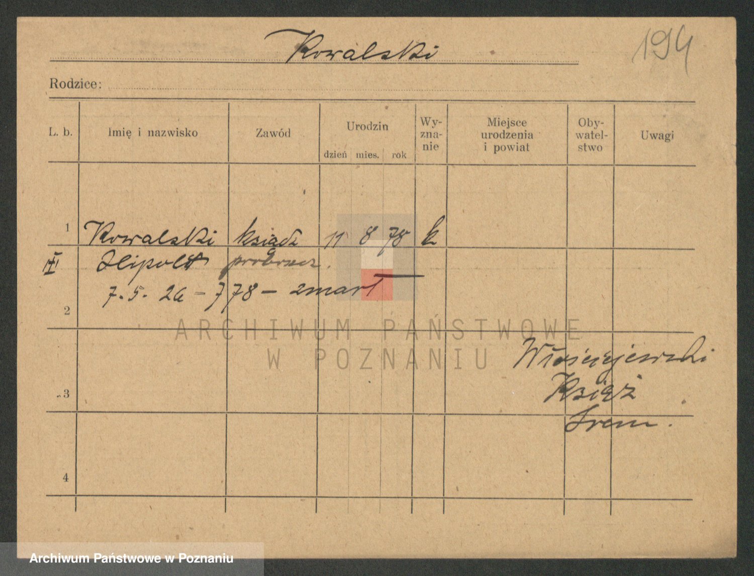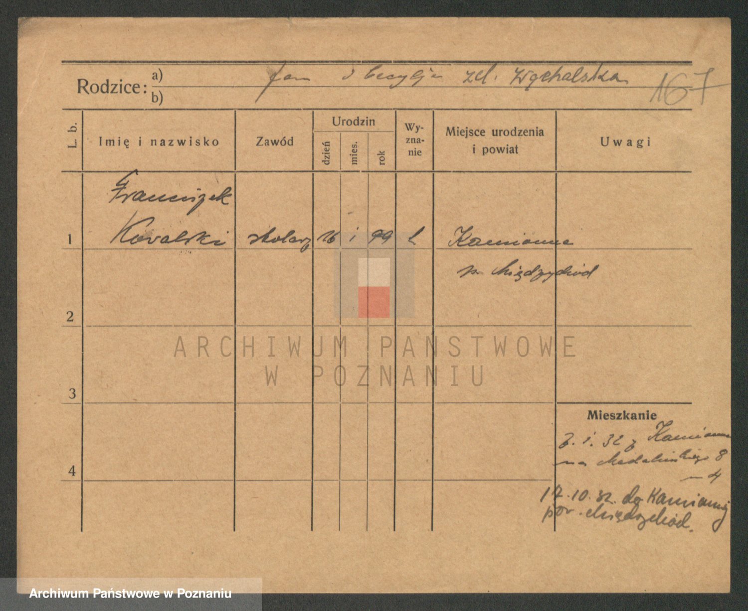 Podgląd karty osobowej dostępny jest po kliknięciu na nazwisko lub ikonkę karty. Można dokonywać powiększenia (ikony na górze) lub przechodzić między kolejnymi skanami (strzałki po bokach).