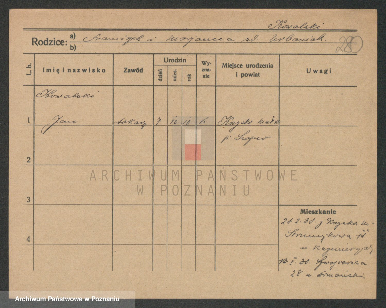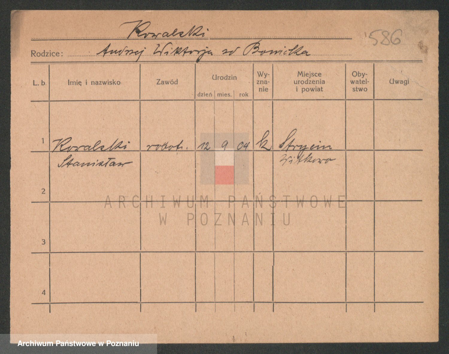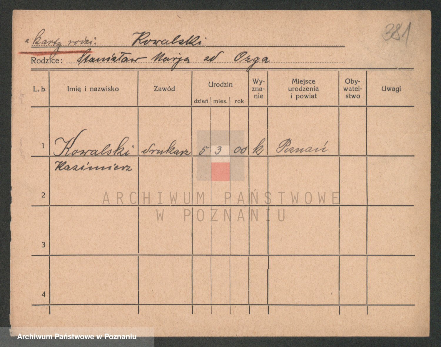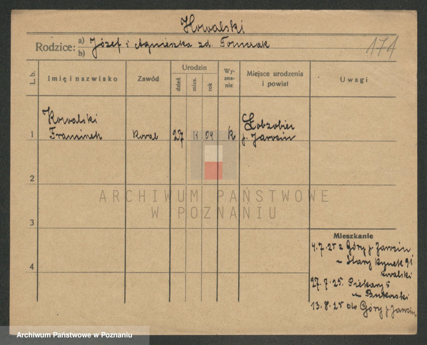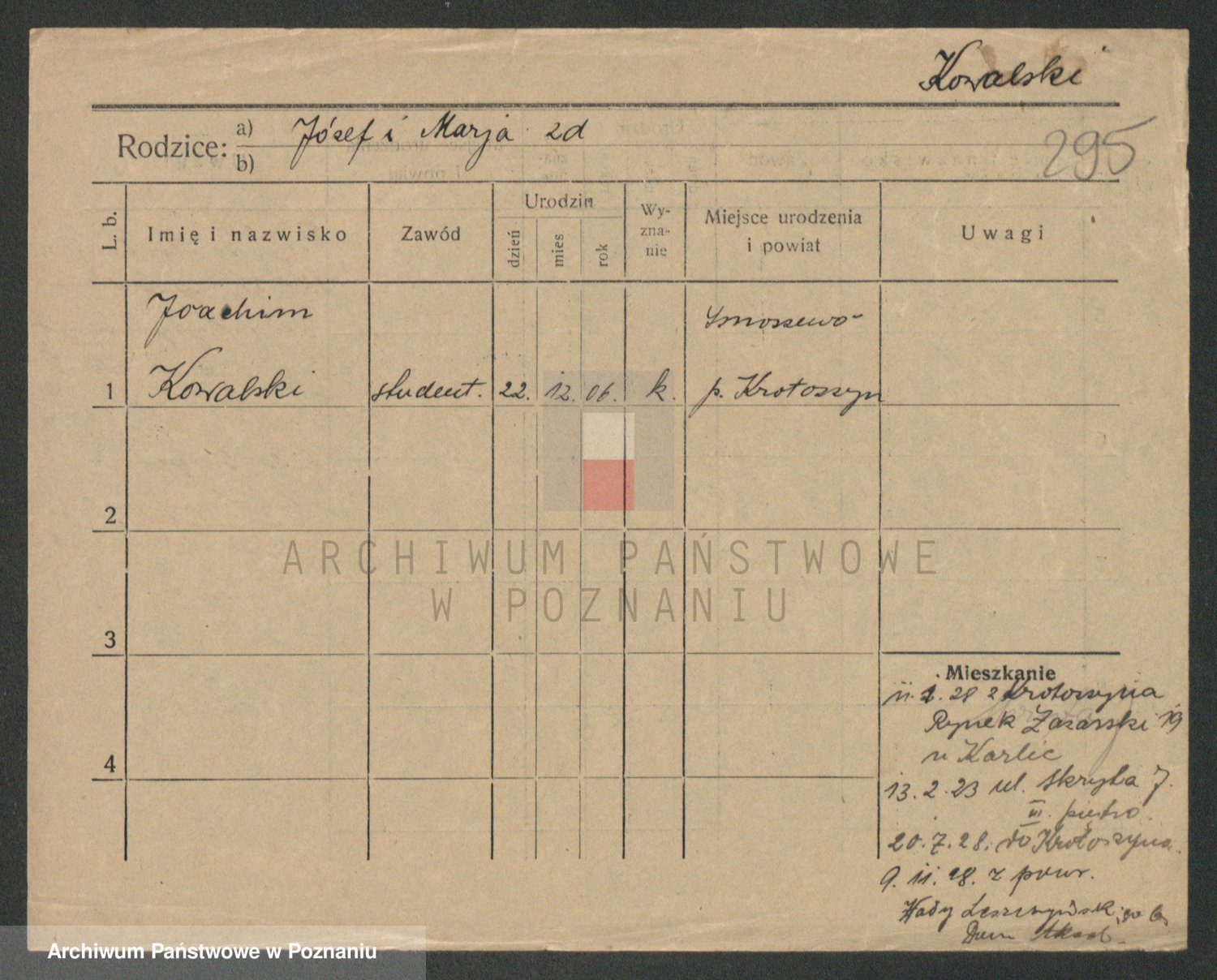 Podgląd karty osobowej dostępny jest po kliknięciu na nazwisko lub ikonkę karty. Można dokonywać powiększenia (ikony na górze) lub przechodzić między kolejnymi skanami (strzałki po bokach).