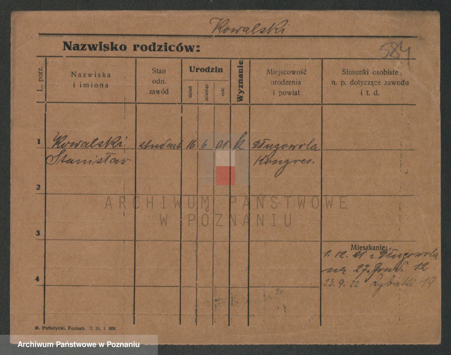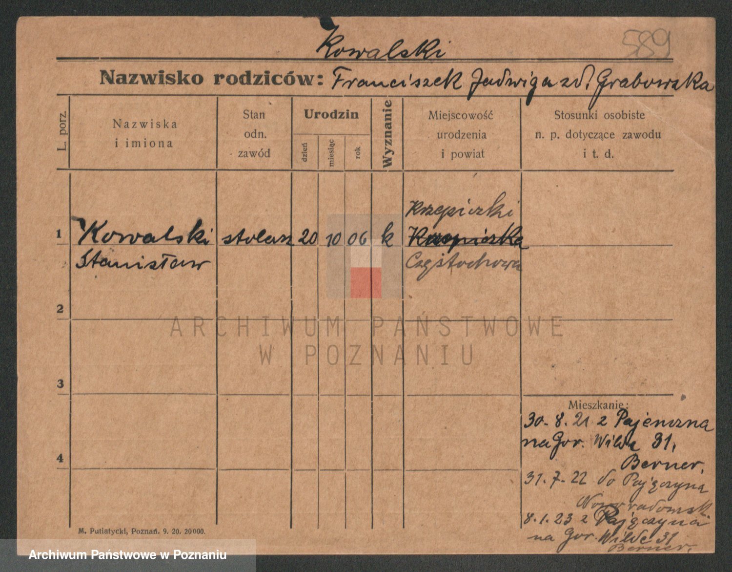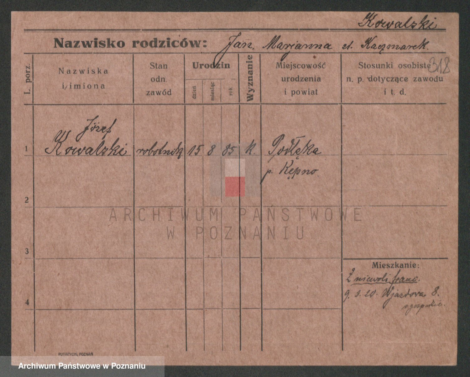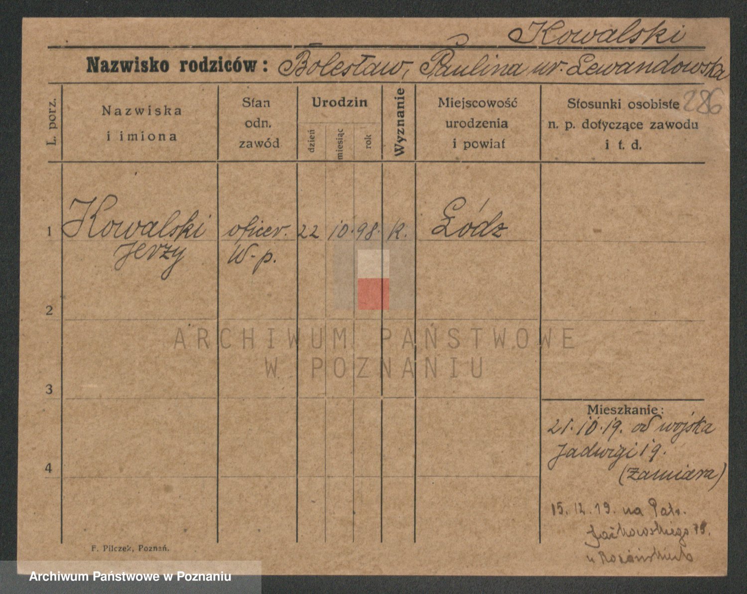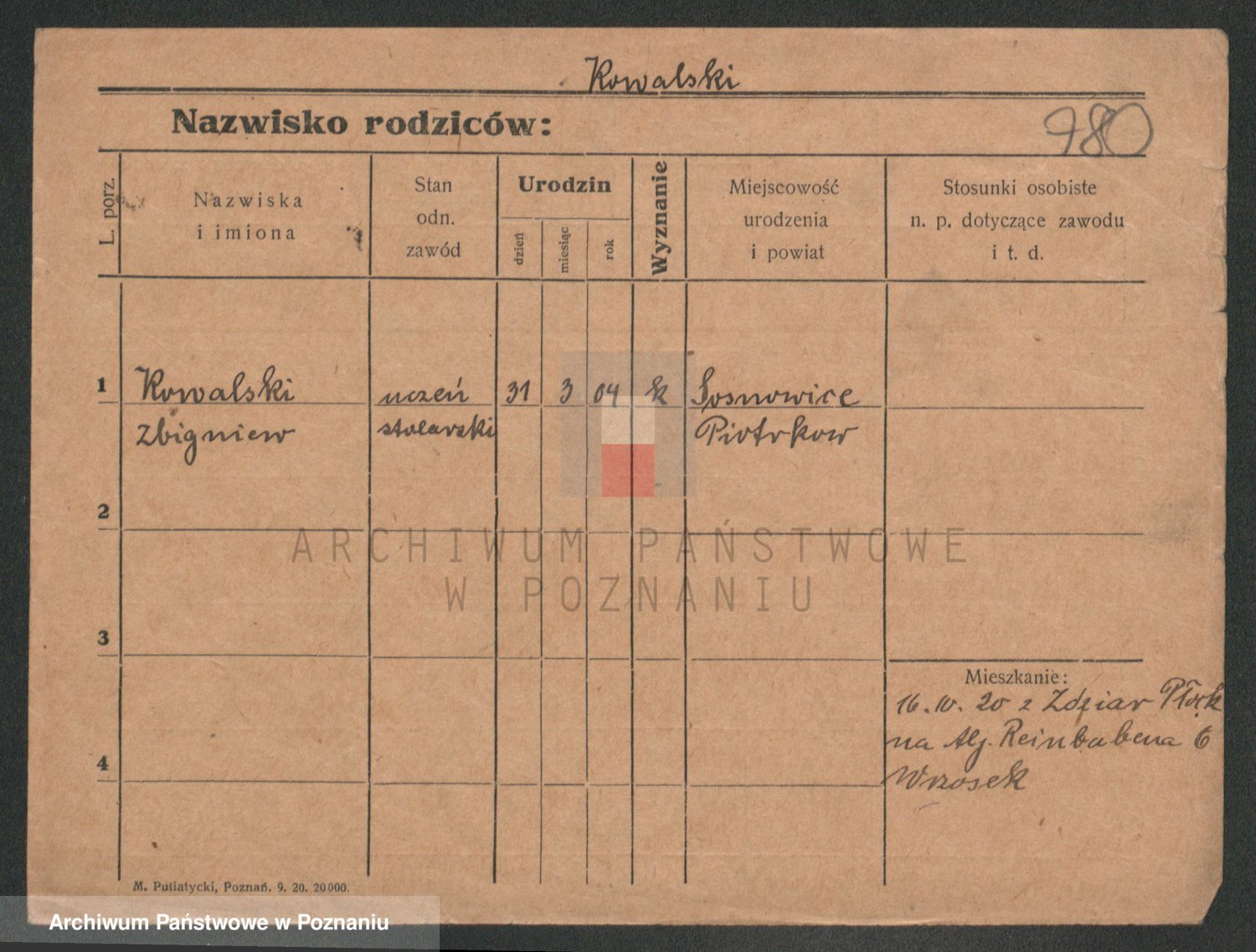 Podgląd karty osobowej dostępny jest po kliknięciu na nazwisko lub ikonkę karty. Można dokonywać powiększenia (ikony na górze) lub przechodzić między kolejnymi skanami (strzałki po bokach).