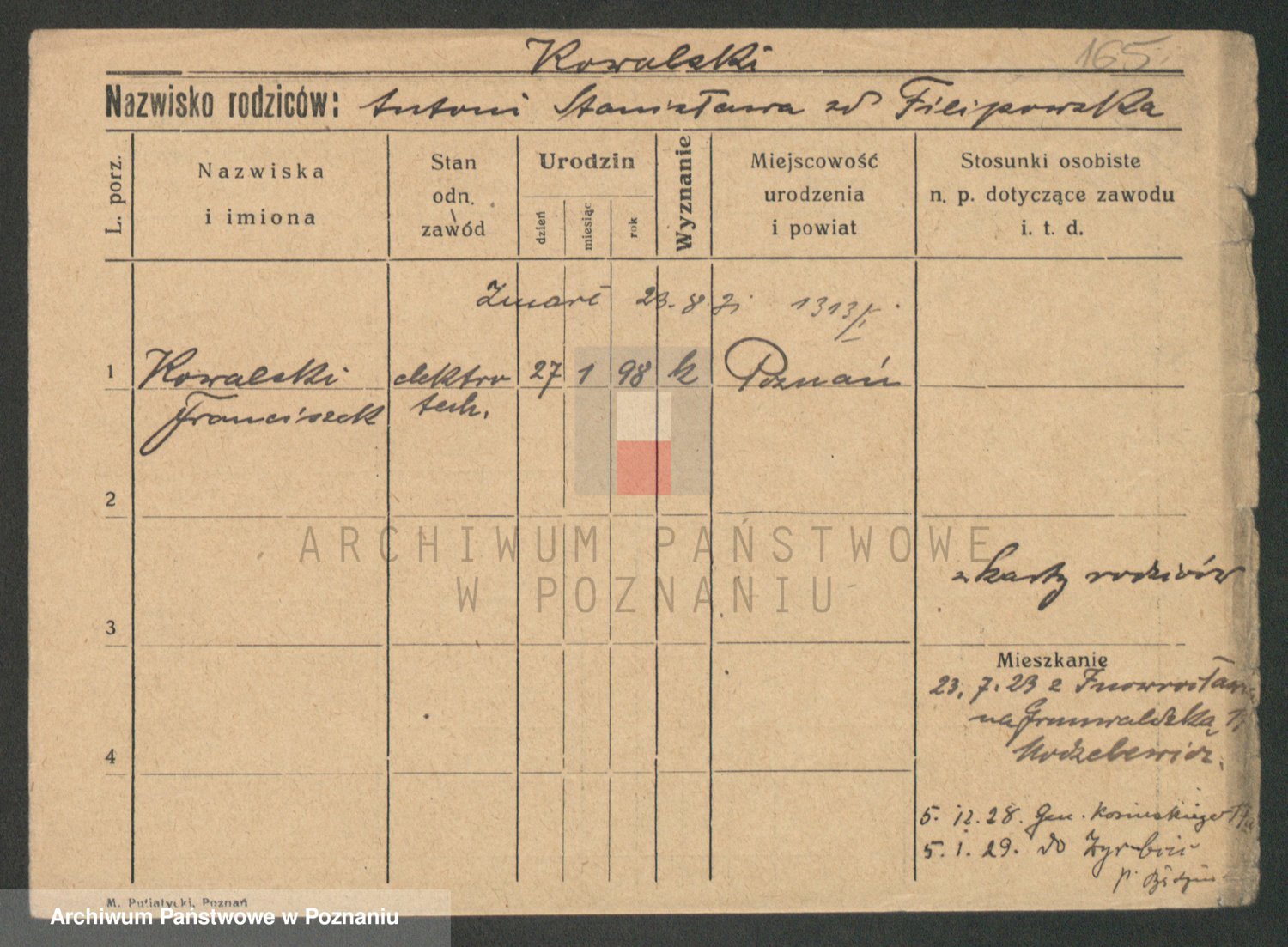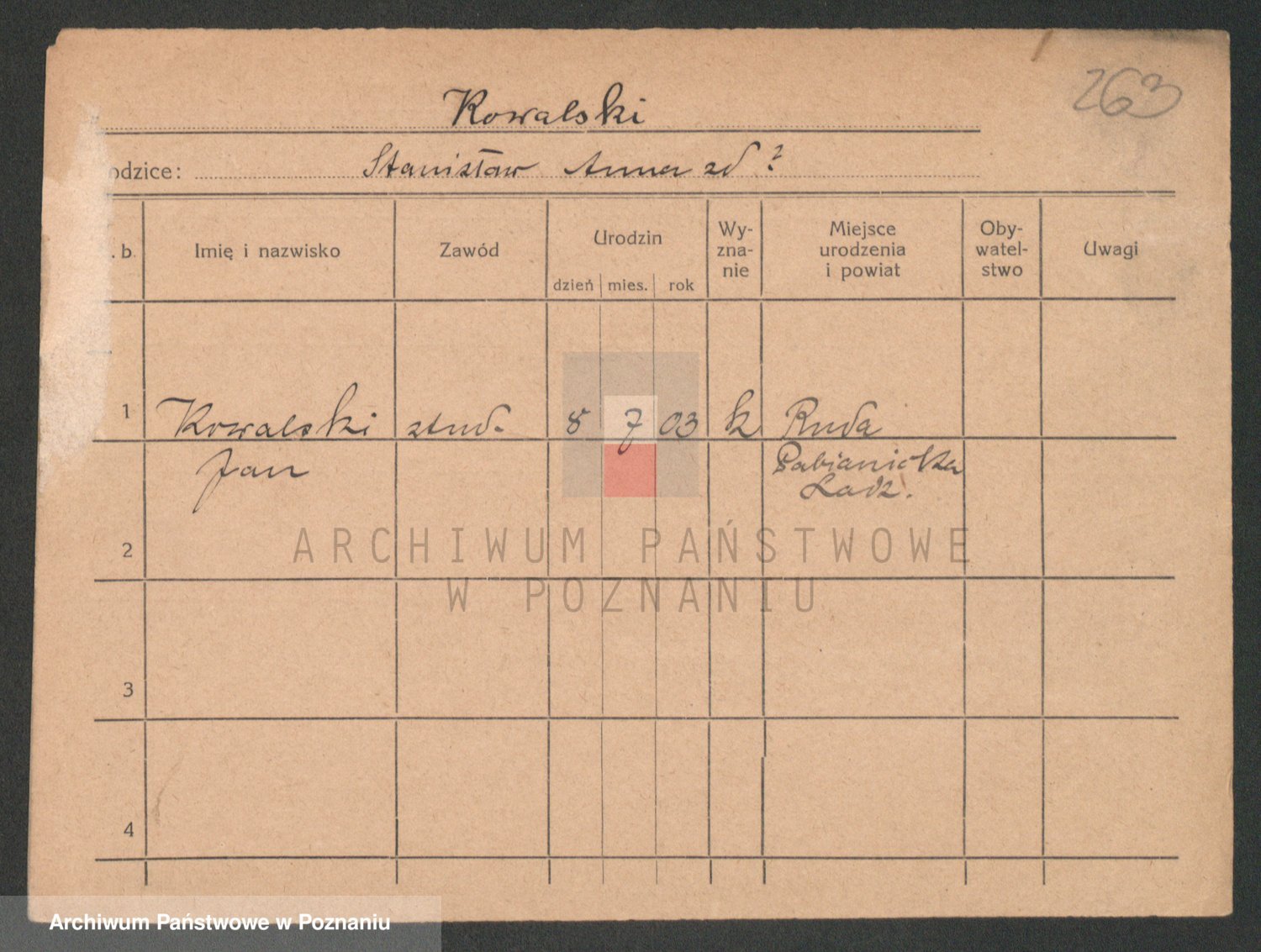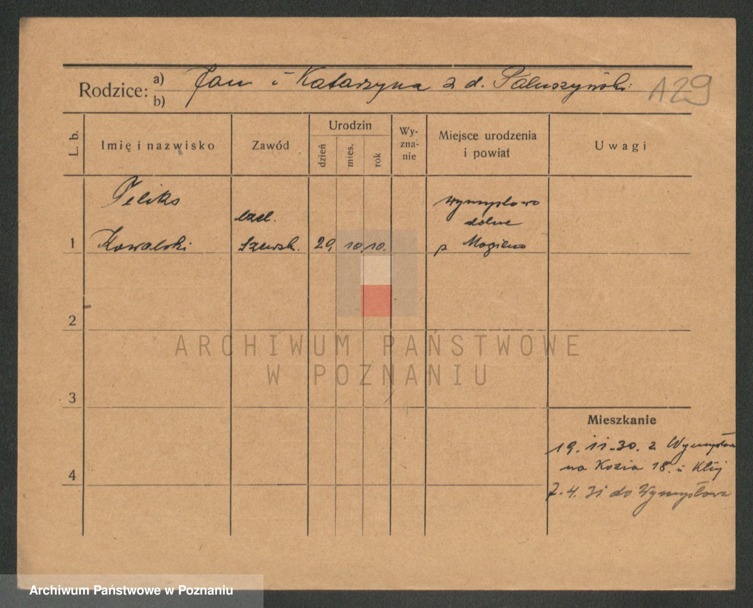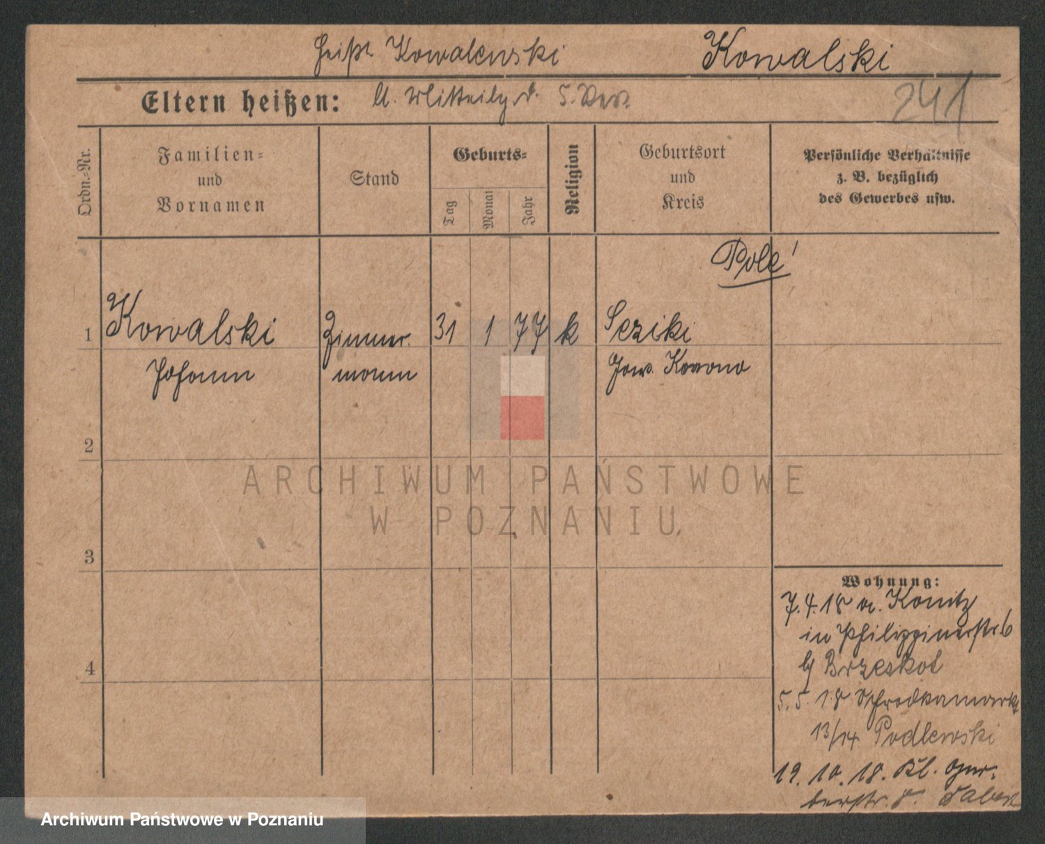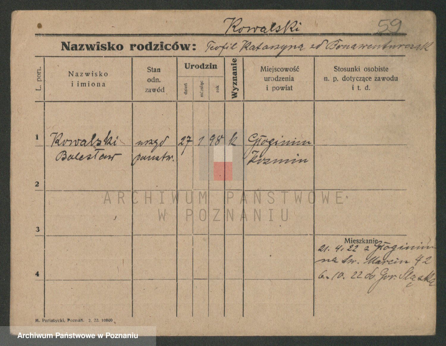 Podgląd karty osobowej dostępny jest po kliknięciu na nazwisko lub ikonkę karty. Można dokonywać powiększenia (ikony na górze) lub przechodzić między kolejnymi skanami (strzałki po bokach).