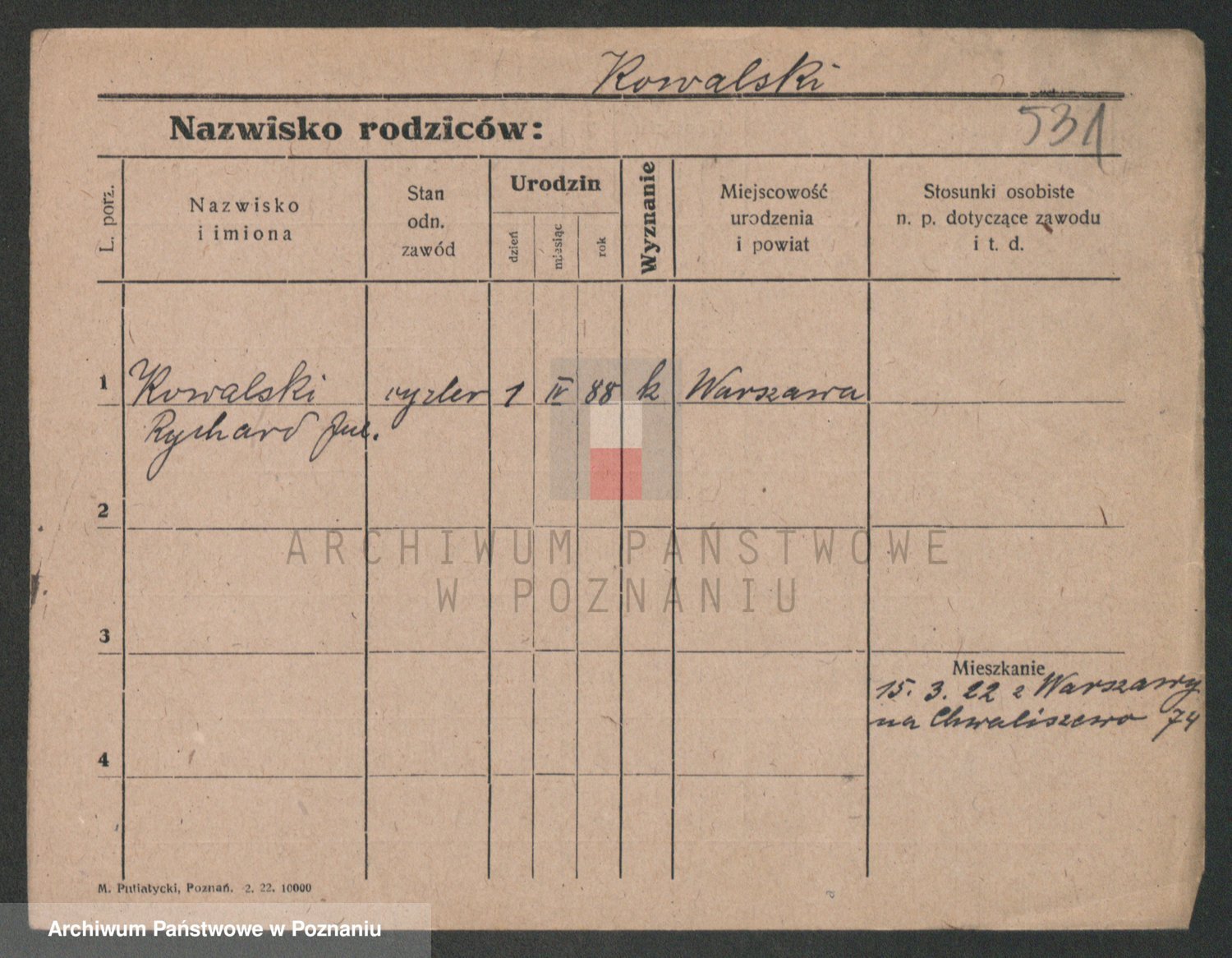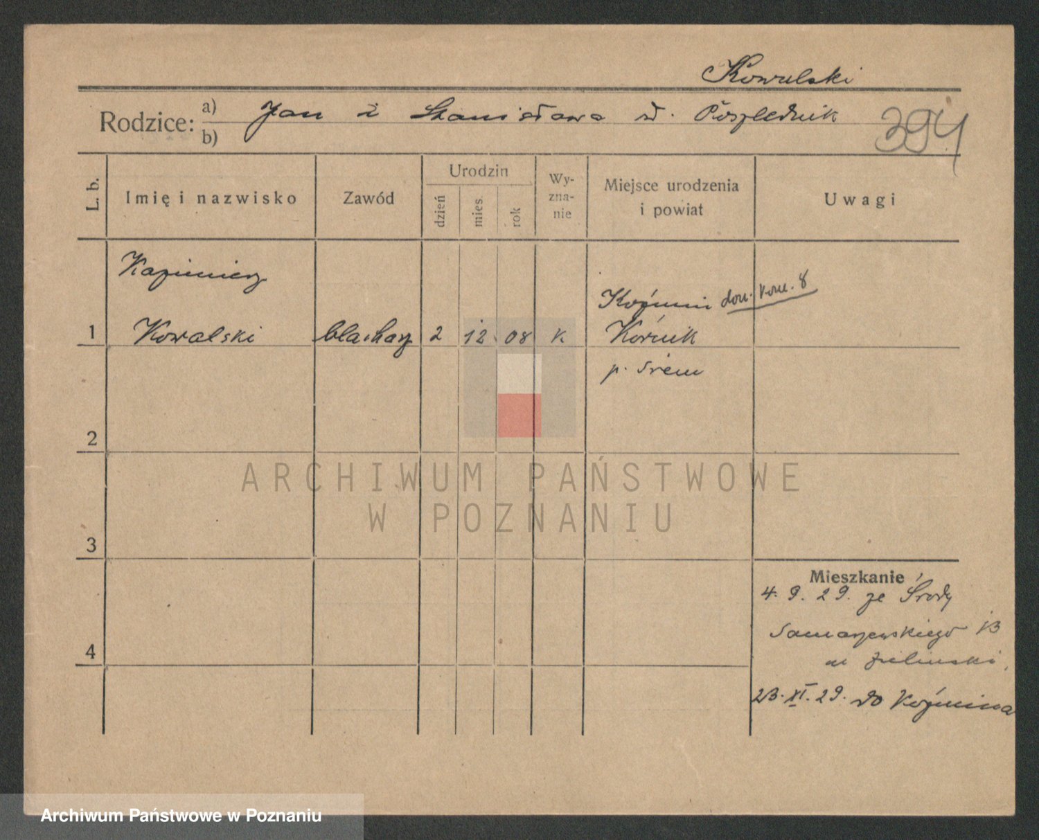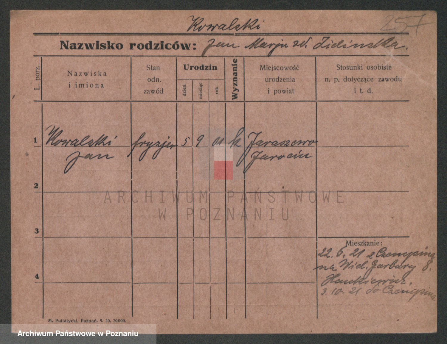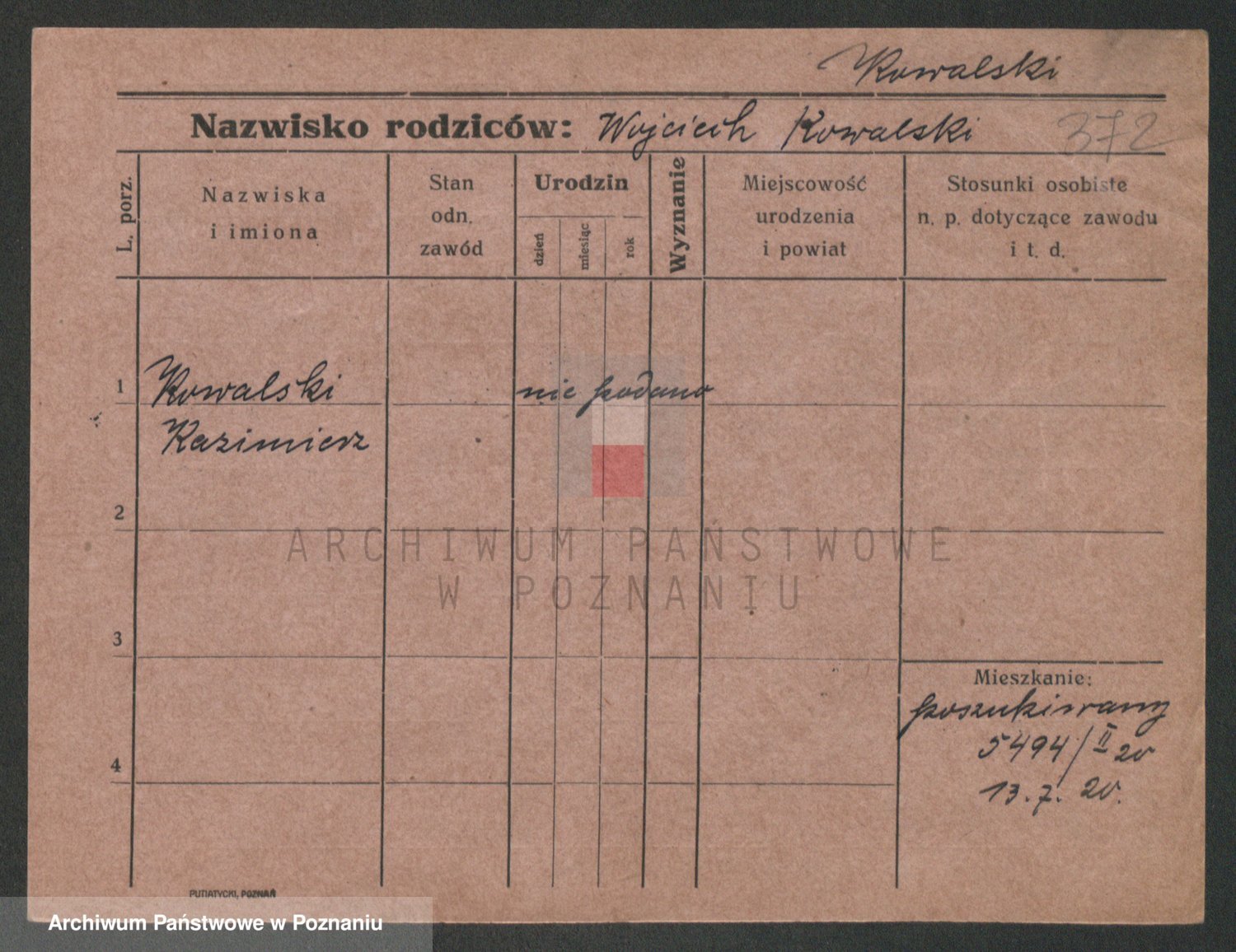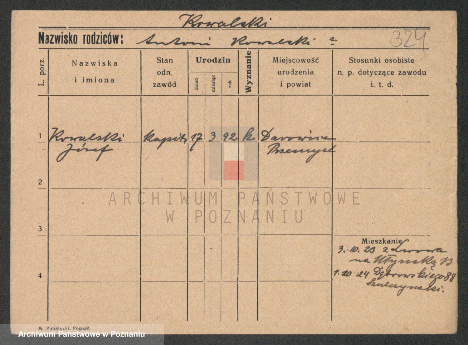 Podgląd karty osobowej dostępny jest po kliknięciu na nazwisko lub ikonkę karty. Można dokonywać powiększenia (ikony na górze) lub przechodzić między kolejnymi skanami (strzałki po bokach).