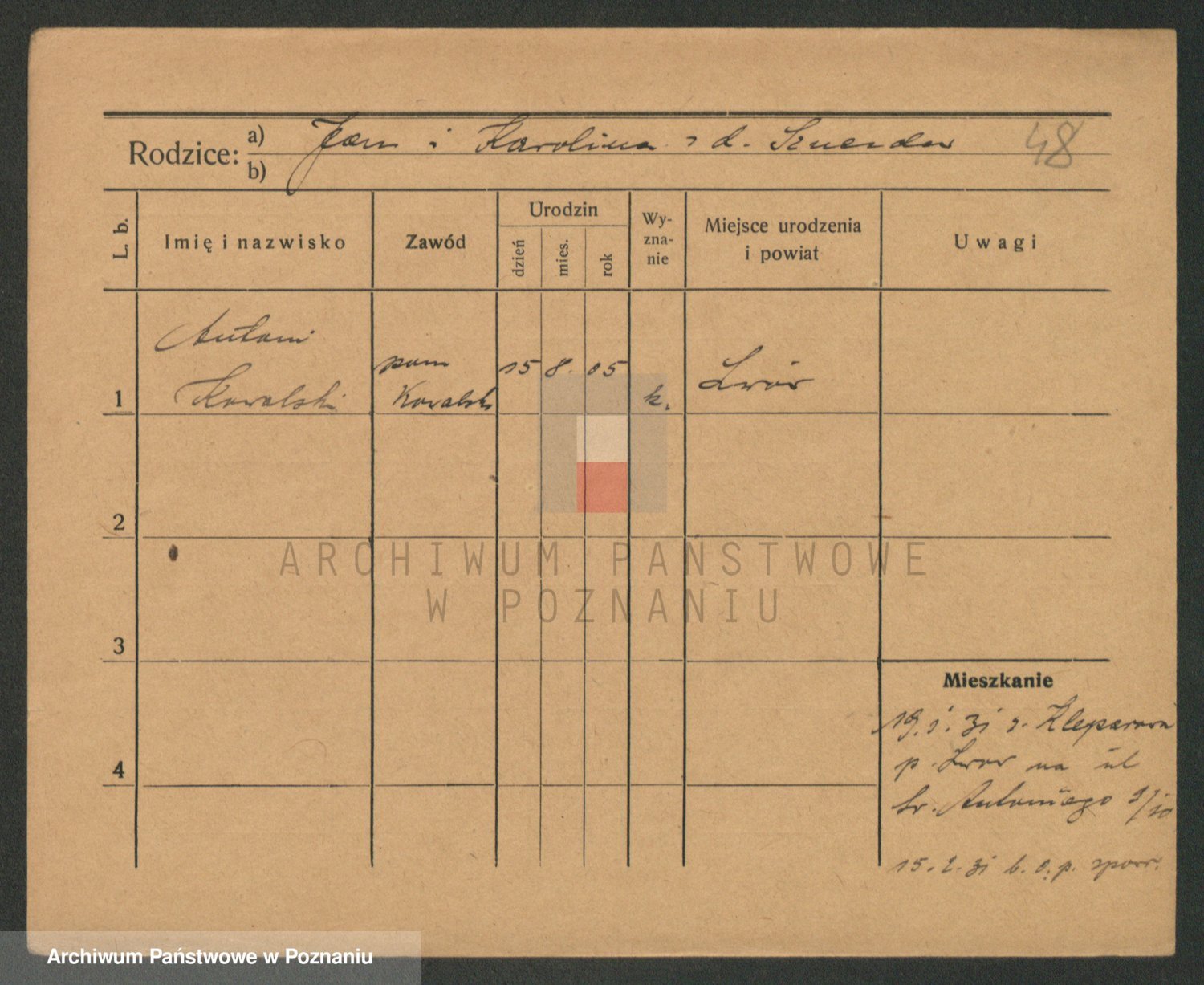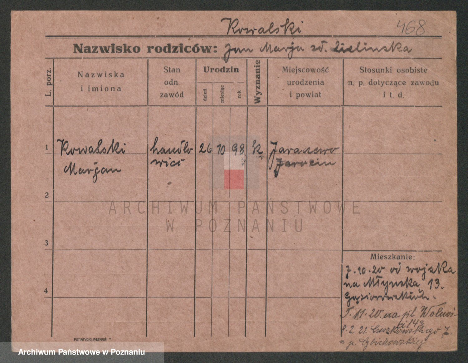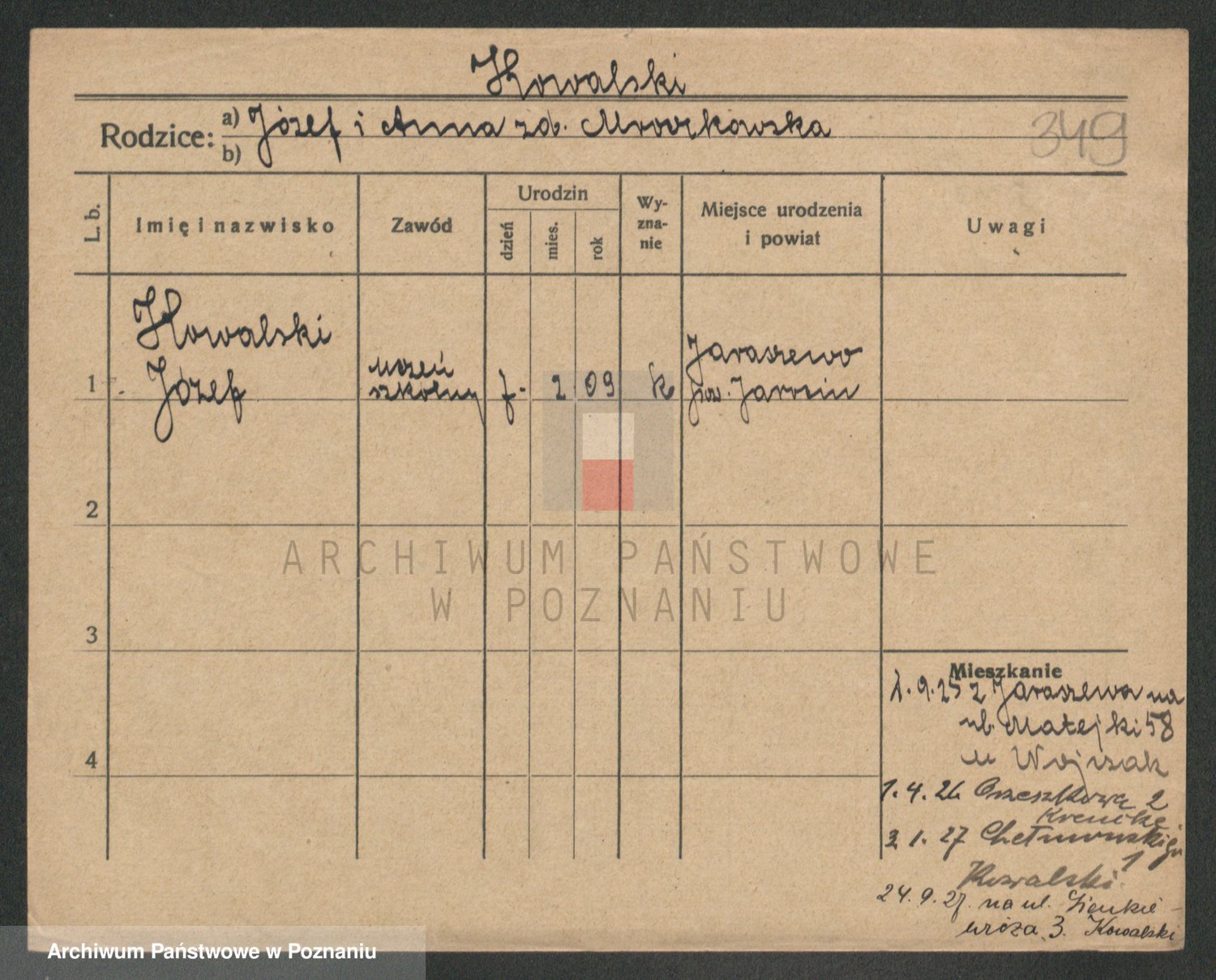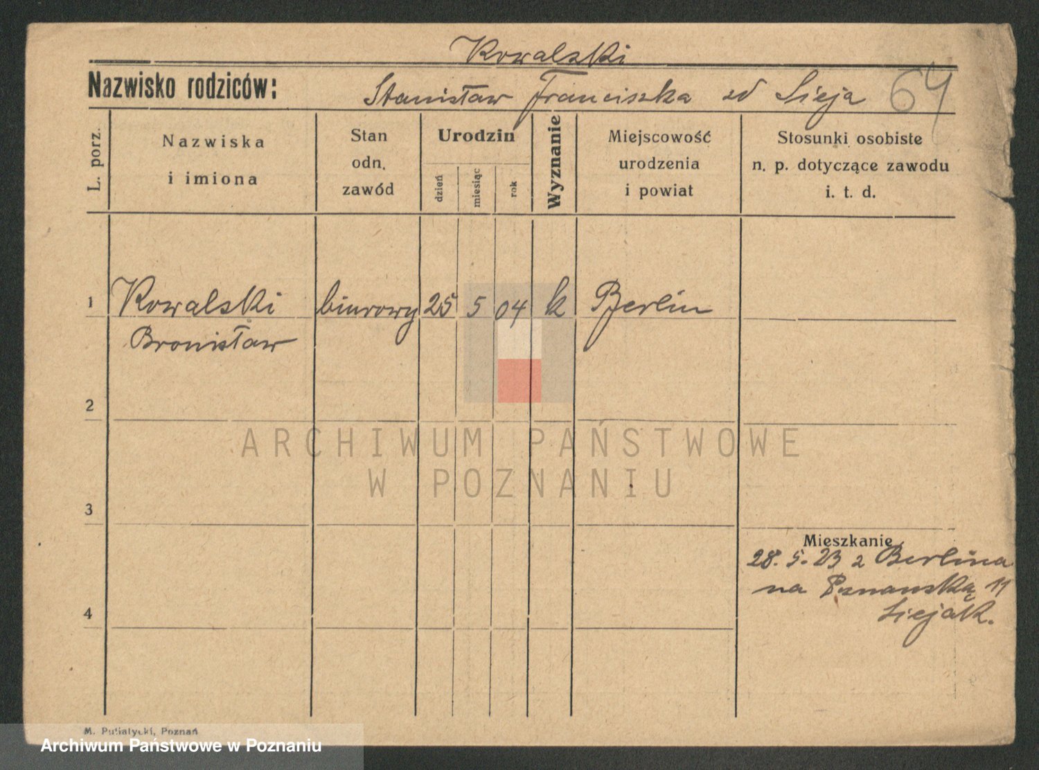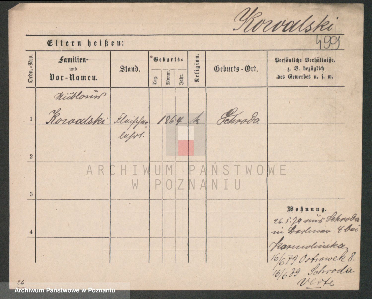 Podgląd karty osobowej dostępny jest po kliknięciu na nazwisko lub ikonkę karty. Można dokonywać powiększenia (ikony na górze) lub przechodzić między kolejnymi skanami (strzałki po bokach).