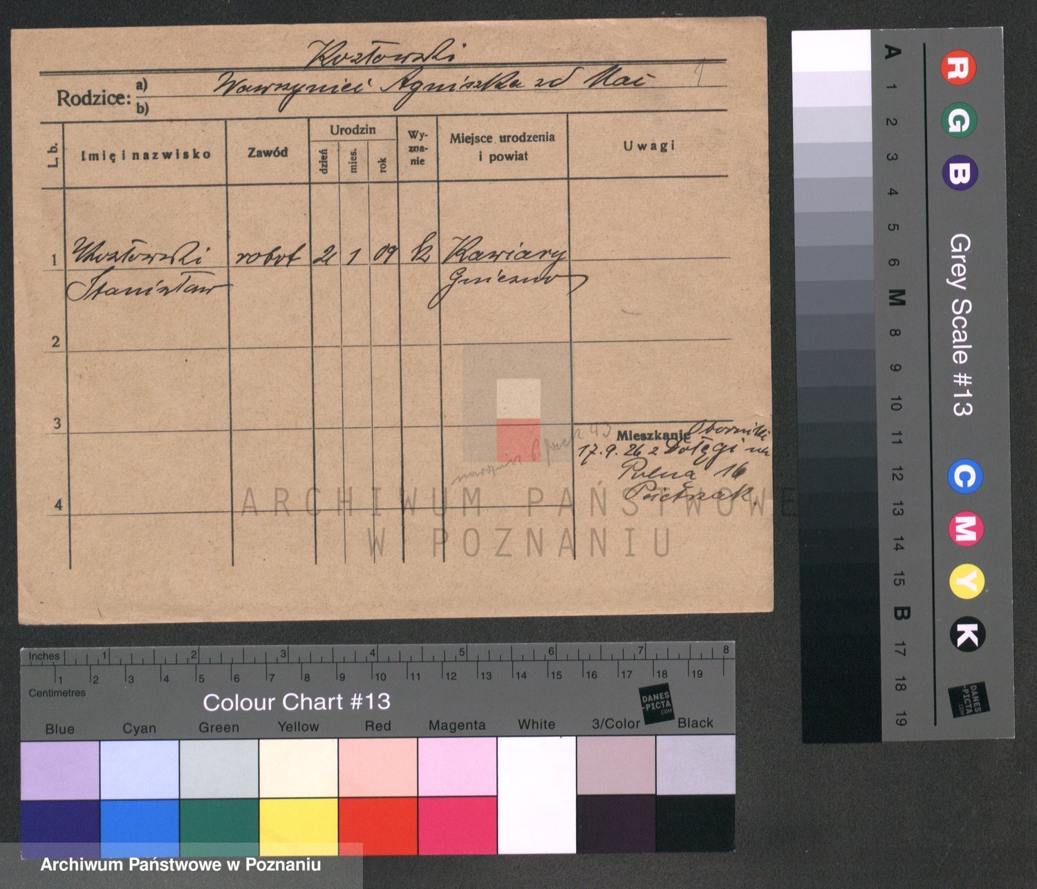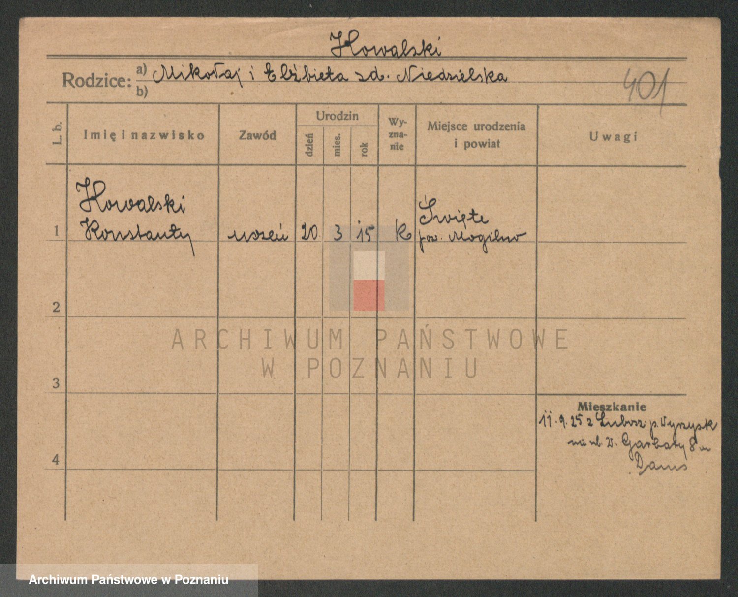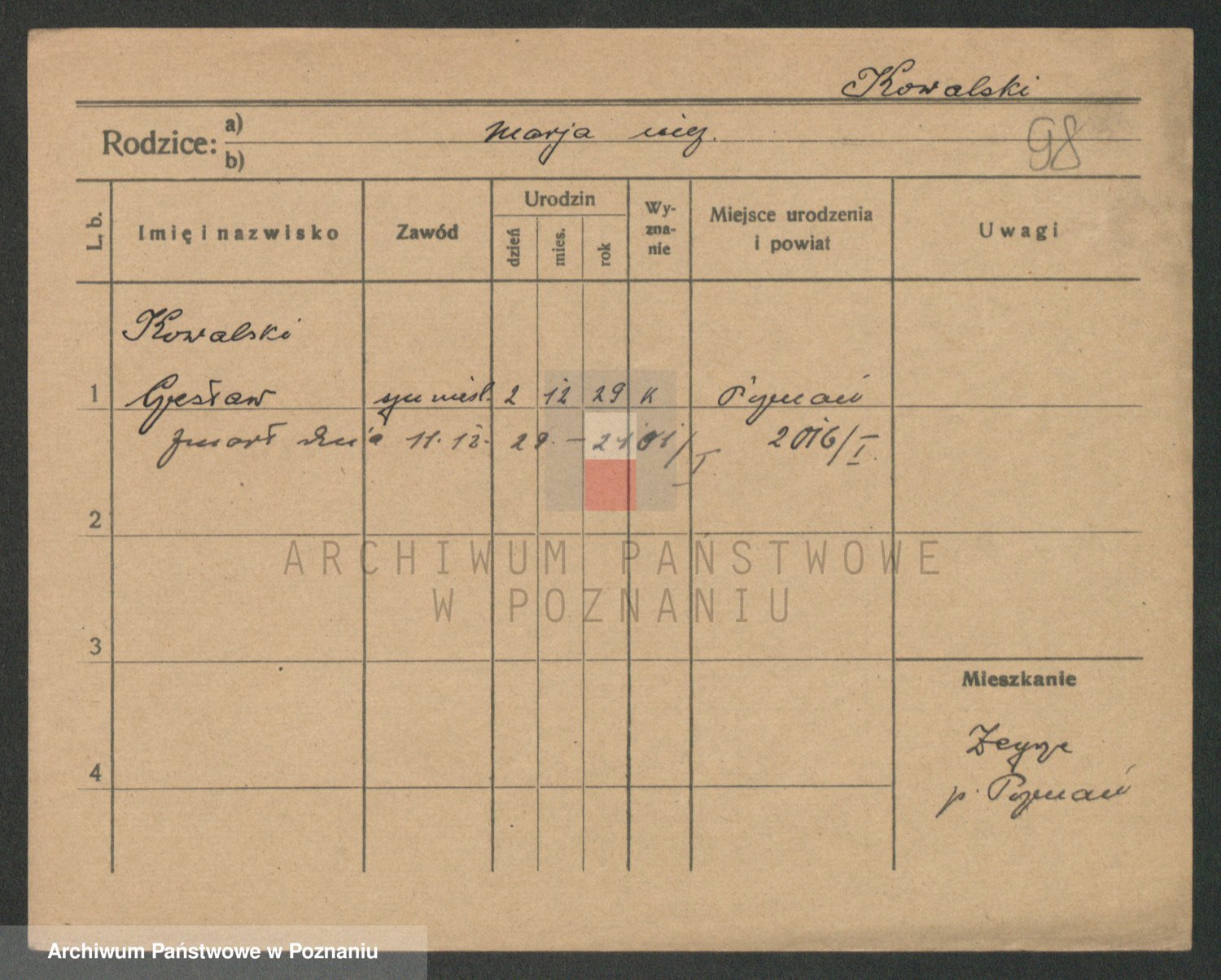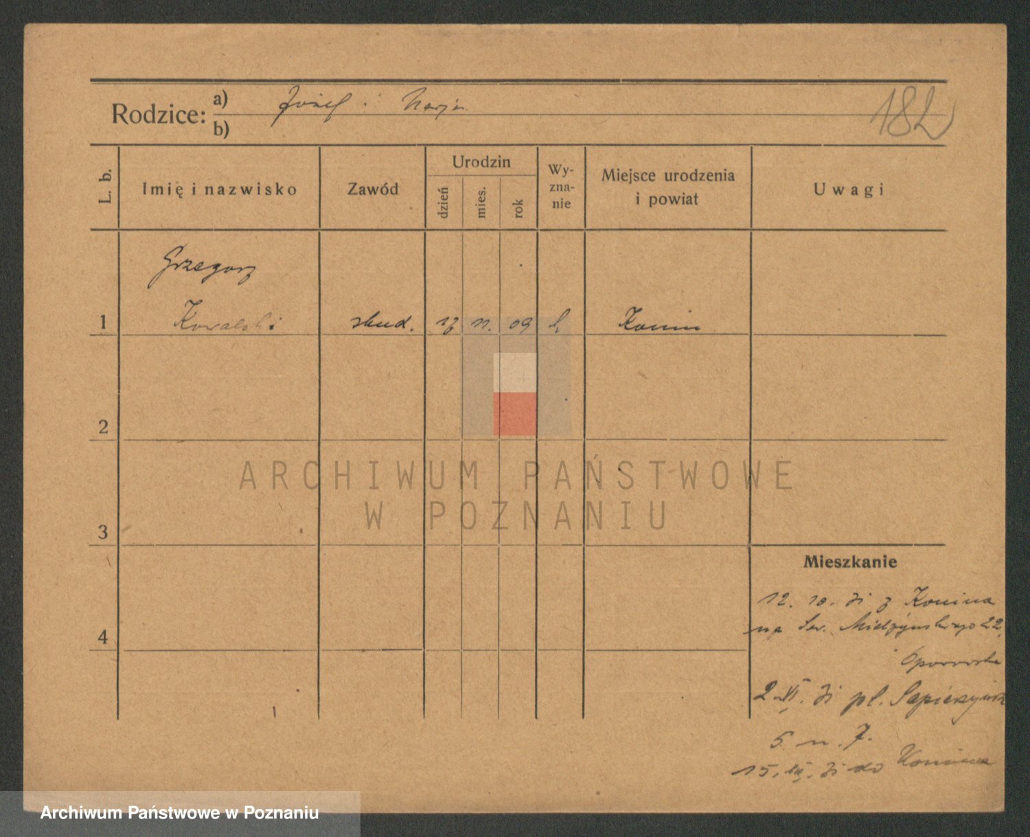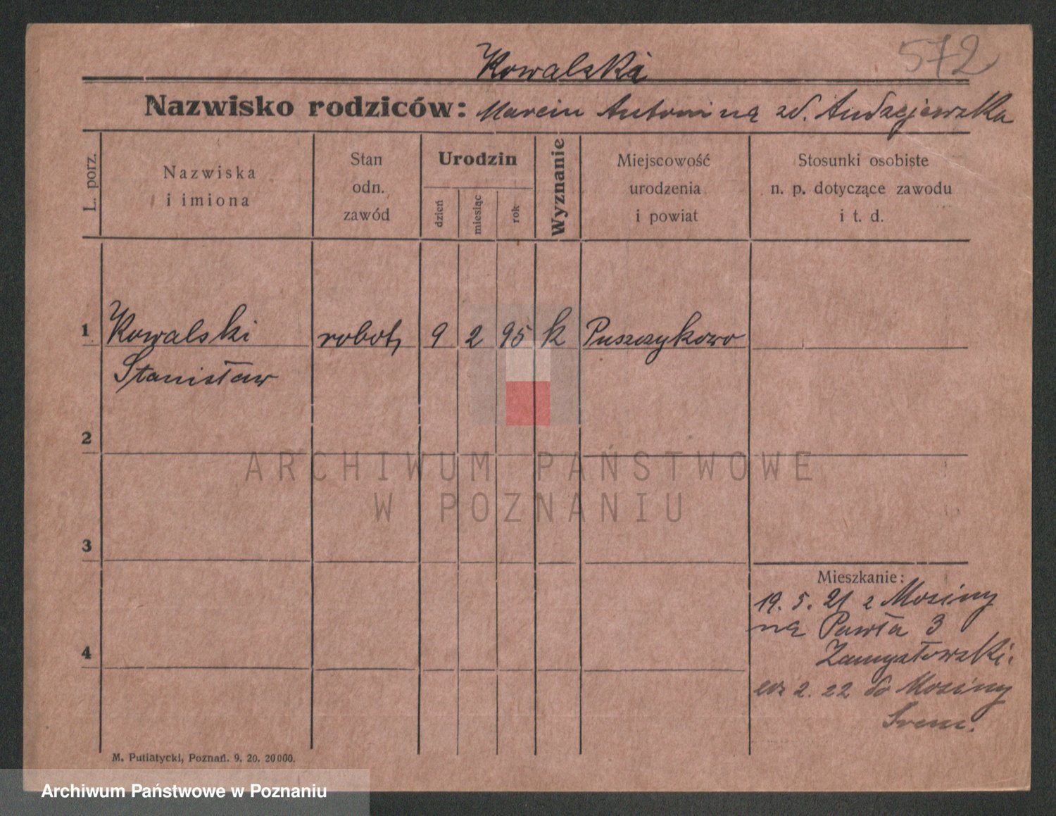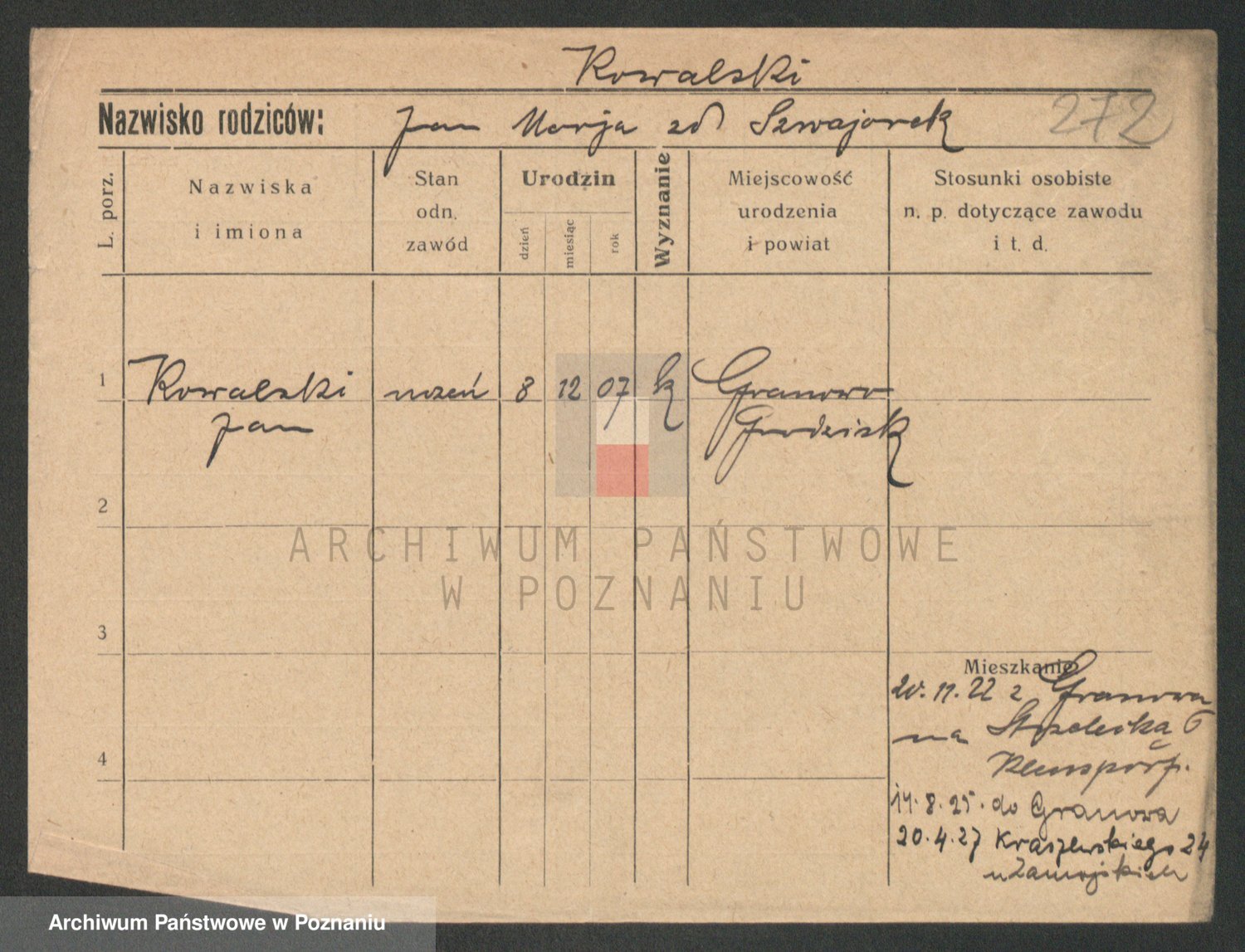 Podgląd karty osobowej dostępny jest po kliknięciu na nazwisko lub ikonkę karty. Można dokonywać powiększenia (ikony na górze) lub przechodzić między kolejnymi skanami (strzałki po bokach).