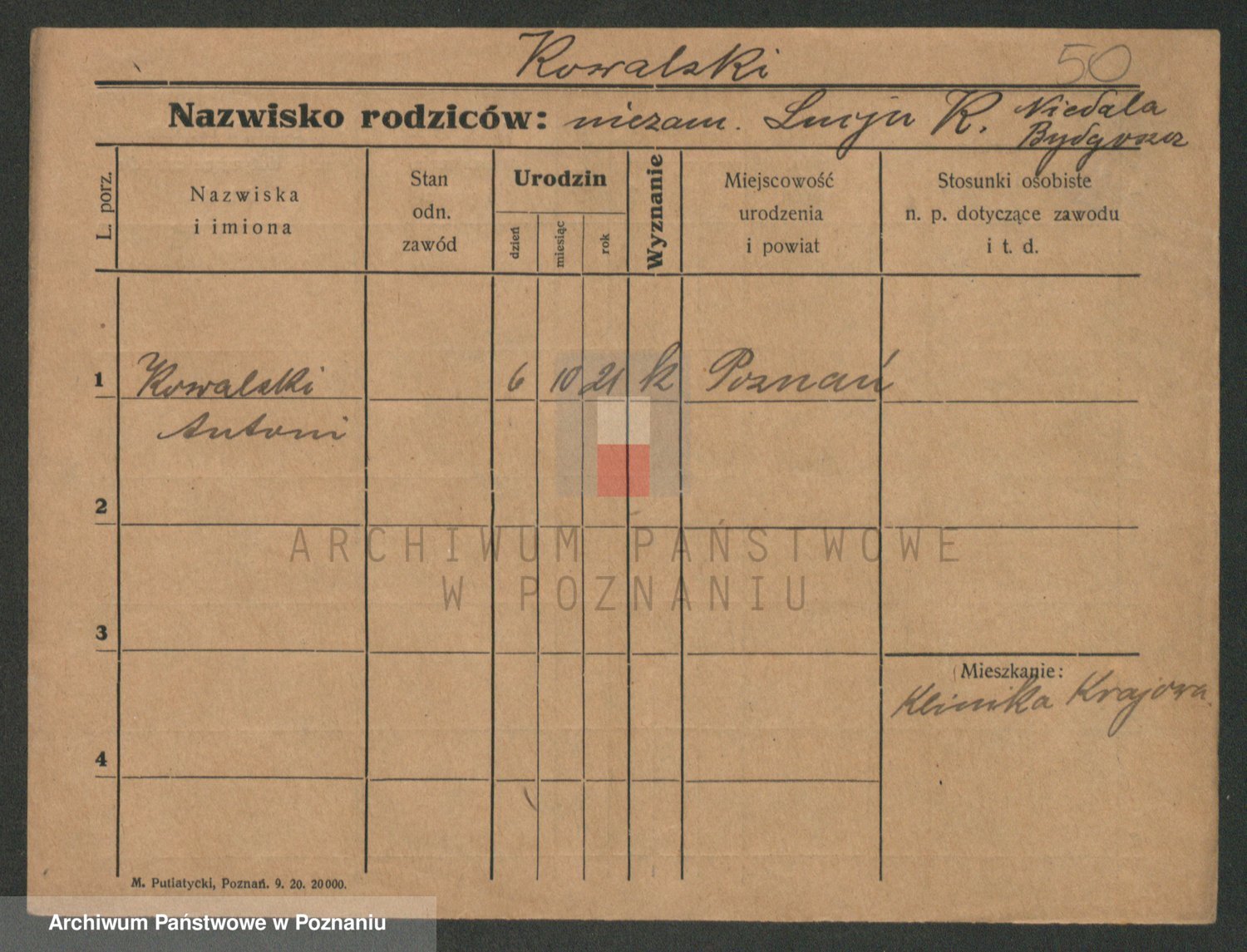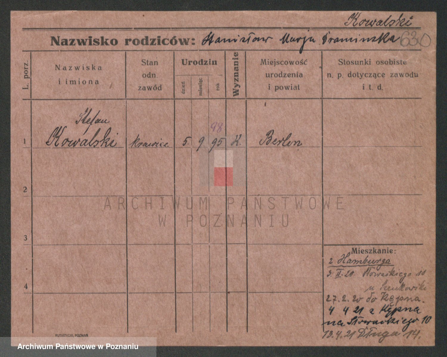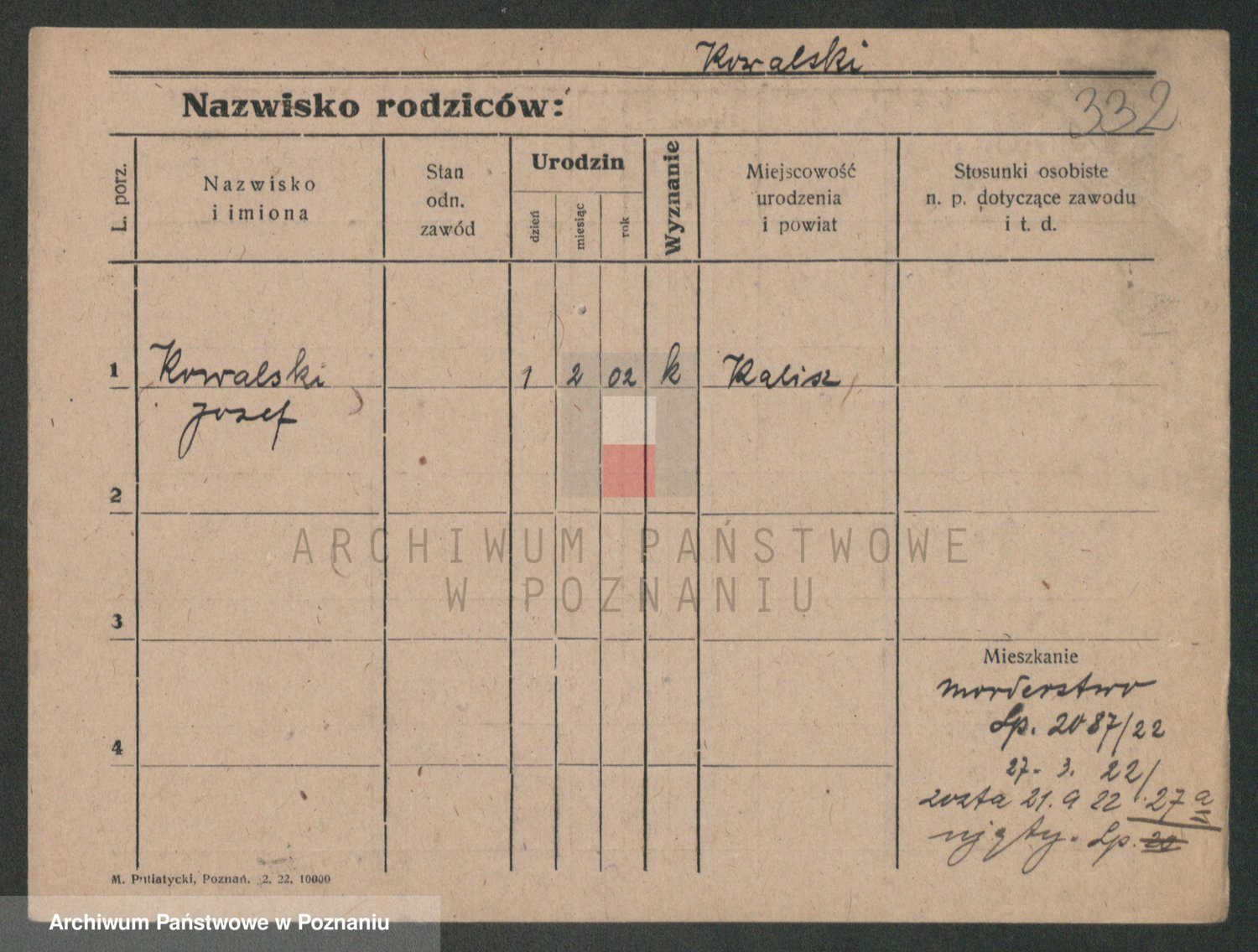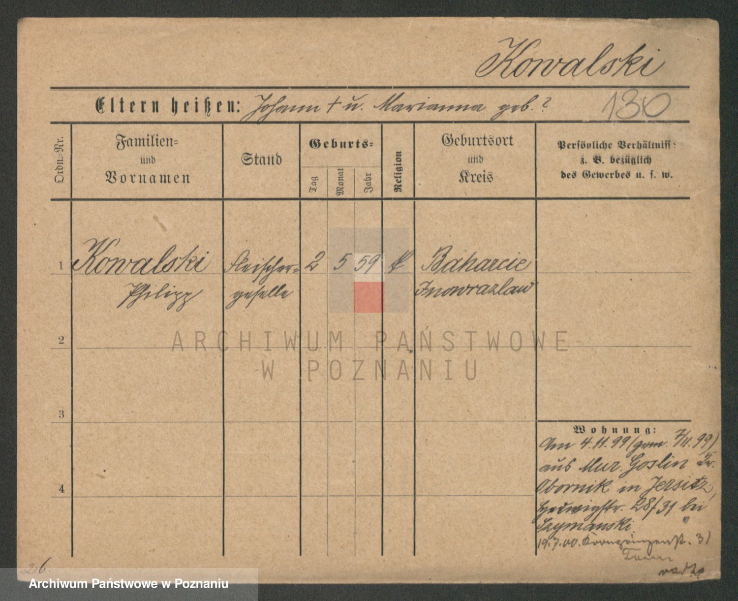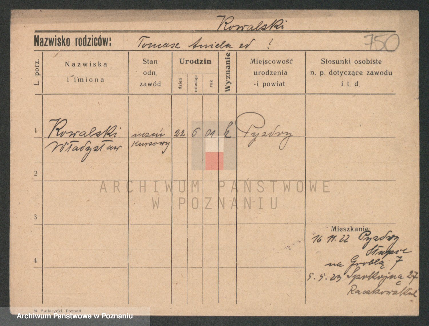 Podgląd karty osobowej dostępny jest po kliknięciu na nazwisko lub ikonkę karty. Można dokonywać powiększenia (ikony na górze) lub przechodzić między kolejnymi skanami (strzałki po bokach).